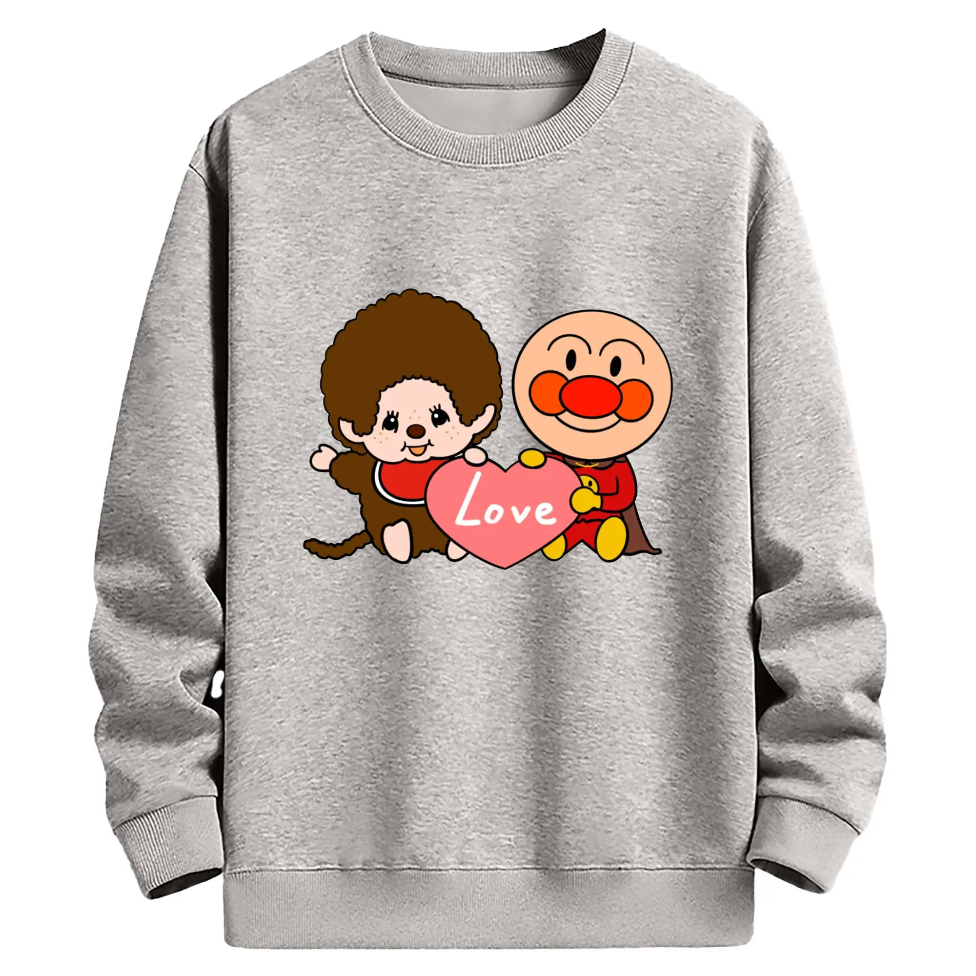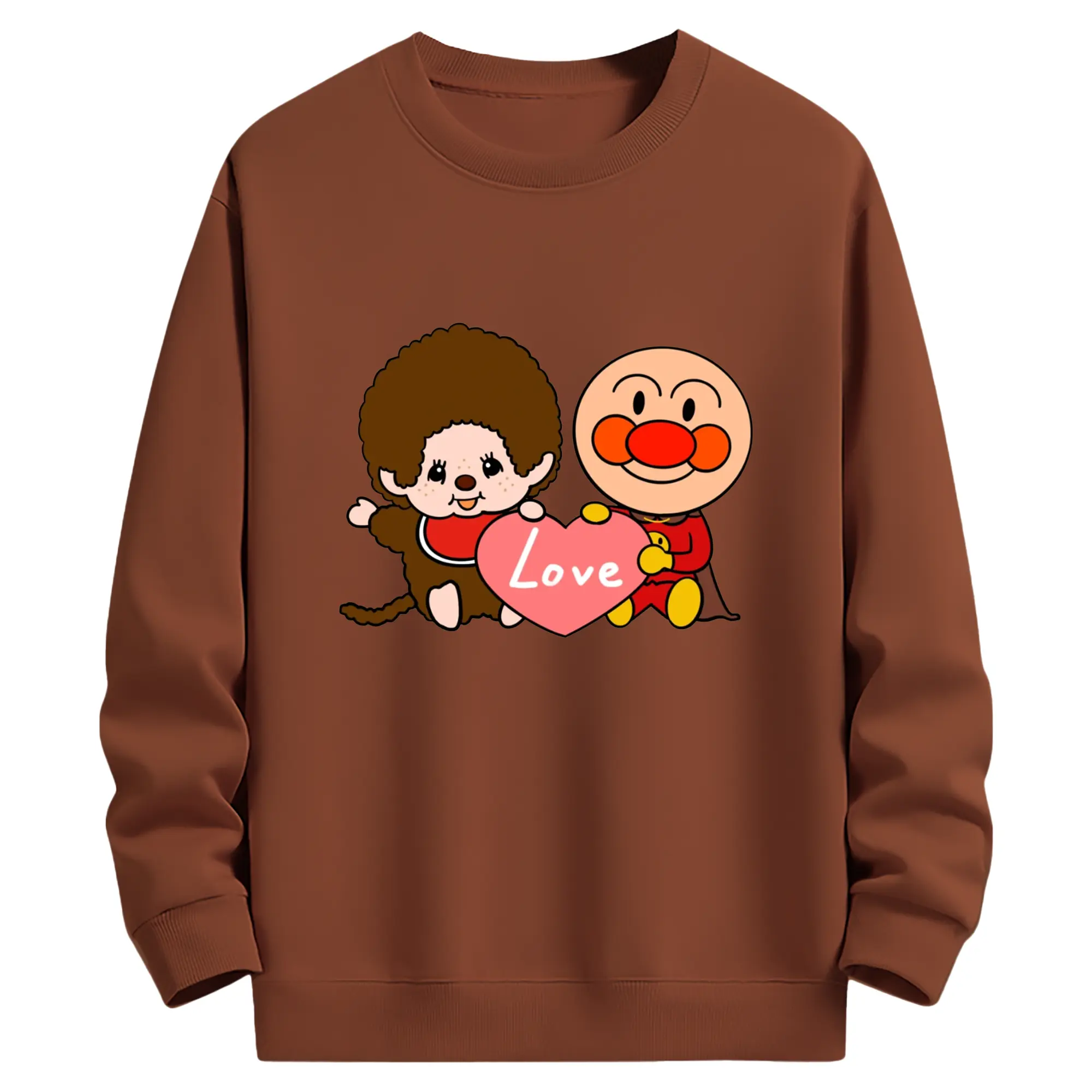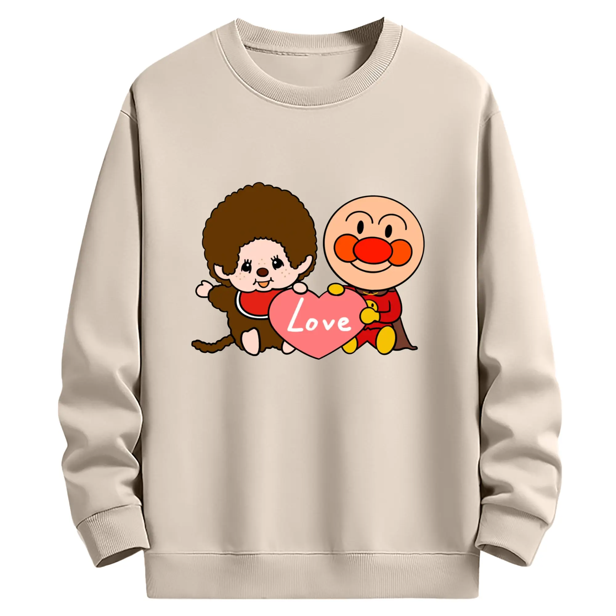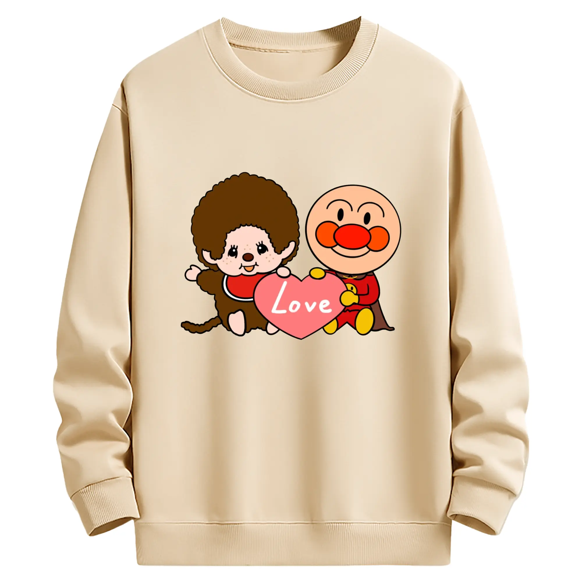 モンチッチ×アンパンマンコラボ限定 - 綿100% ヴィンテージ風 半袖Tシャツ ・ フロントプリント ・ 柔らか肌触り ・ 通気性 快適 ・ スポーツ カジュアル 外出用