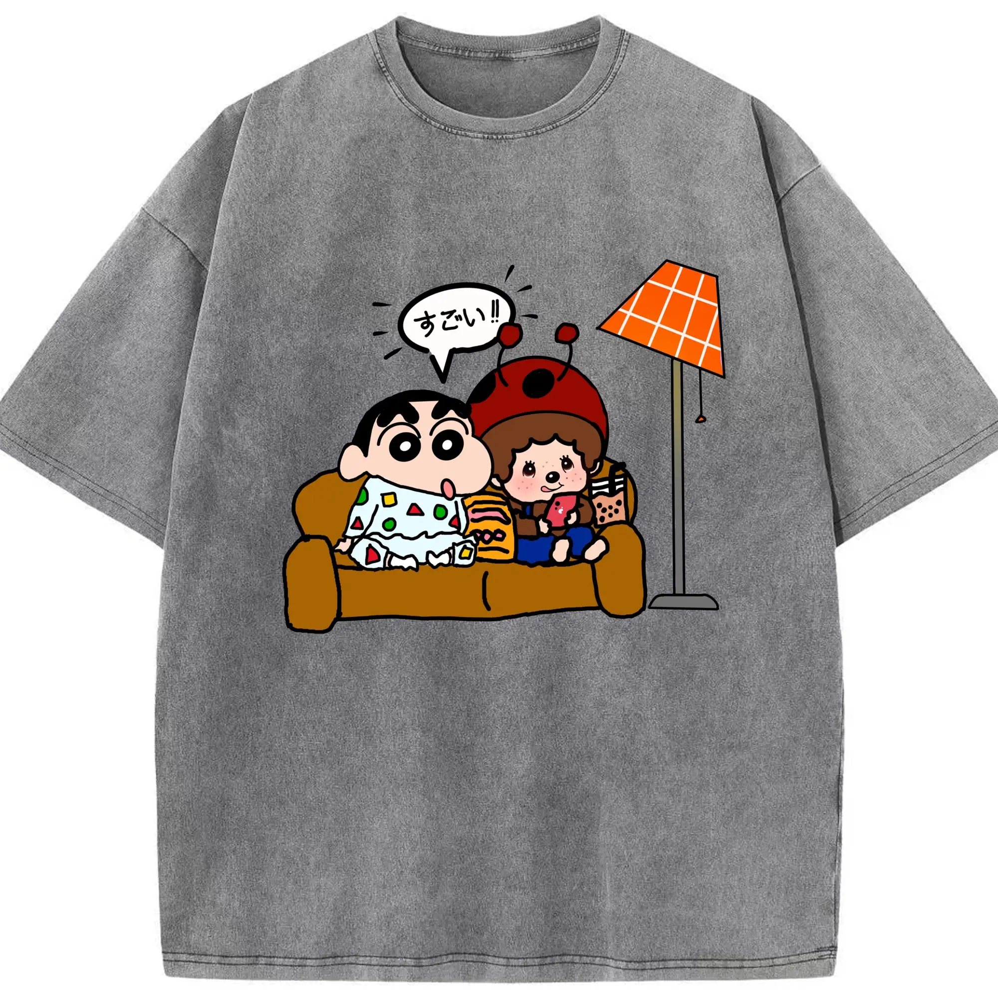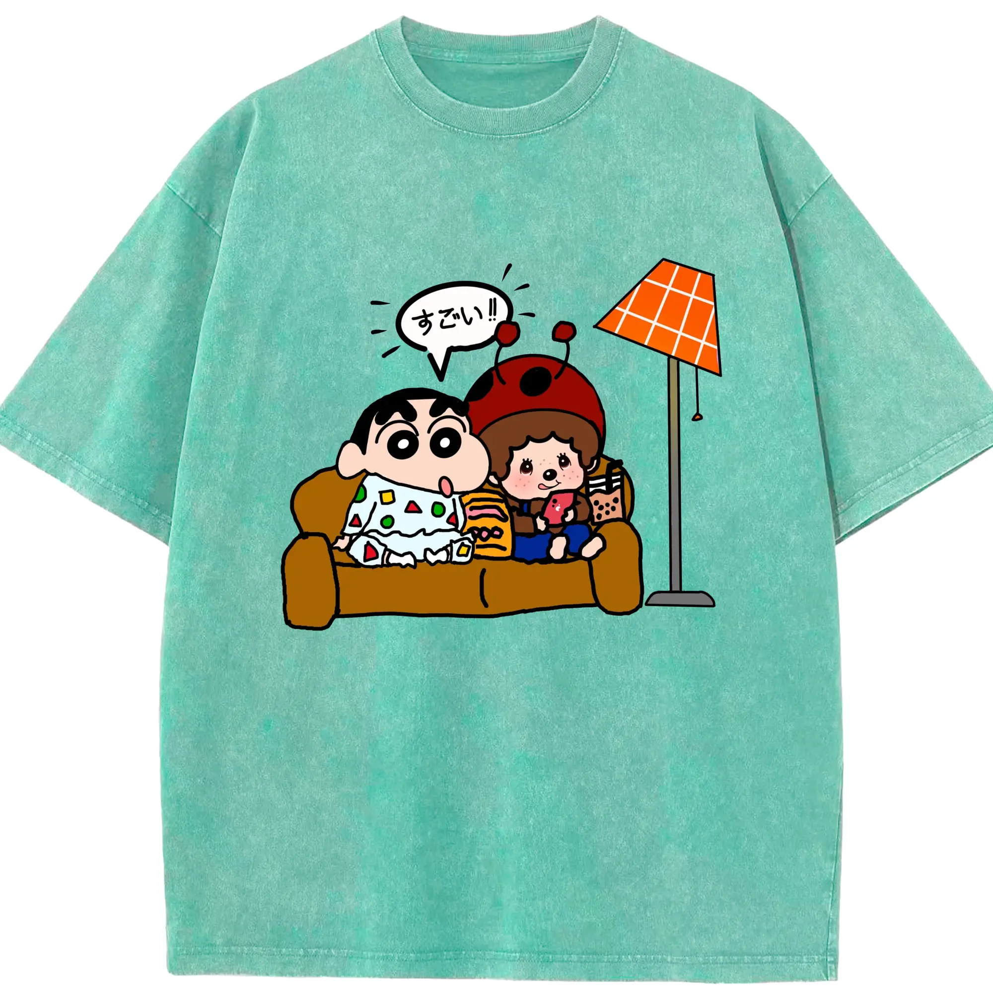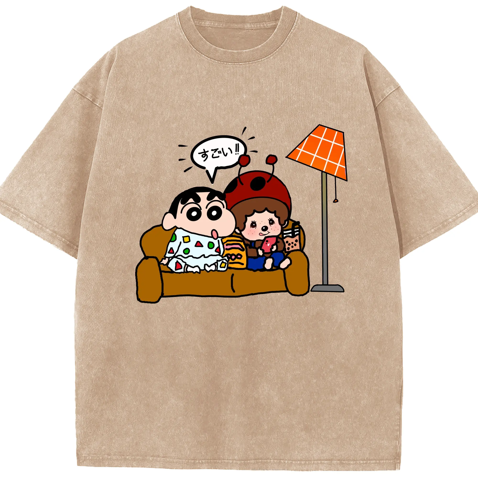 モンチッチ×クレヨンしんちゃんコラボ限定 - 綿100% 半袖Tシャツ ・ フロントプリント ・ 快適 通気性 ・ 日常使い 散歩 スポーツ用