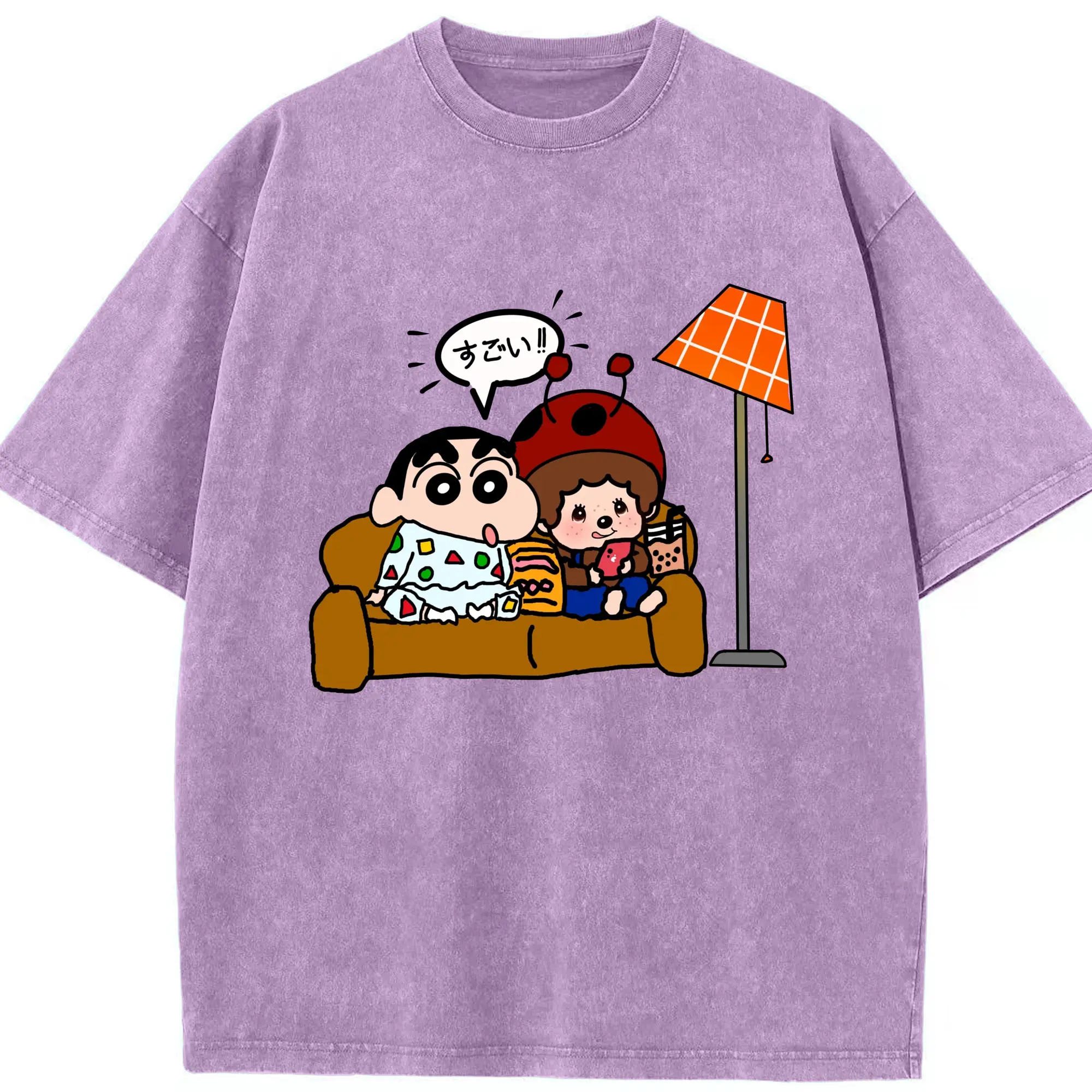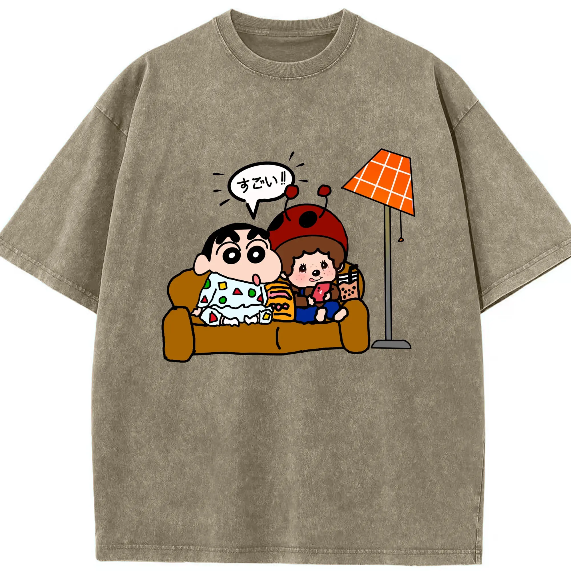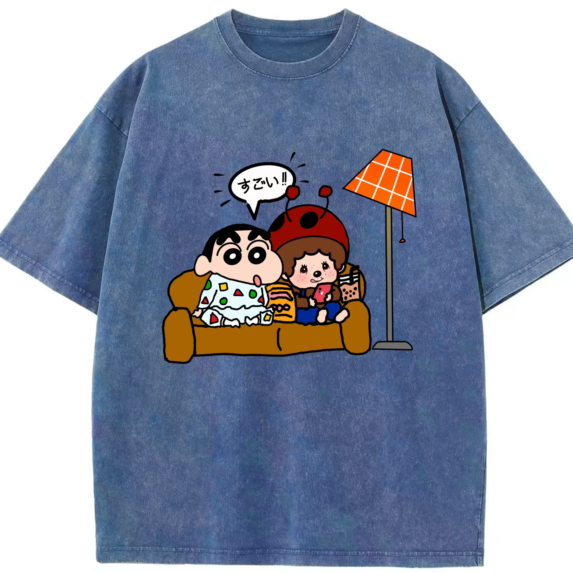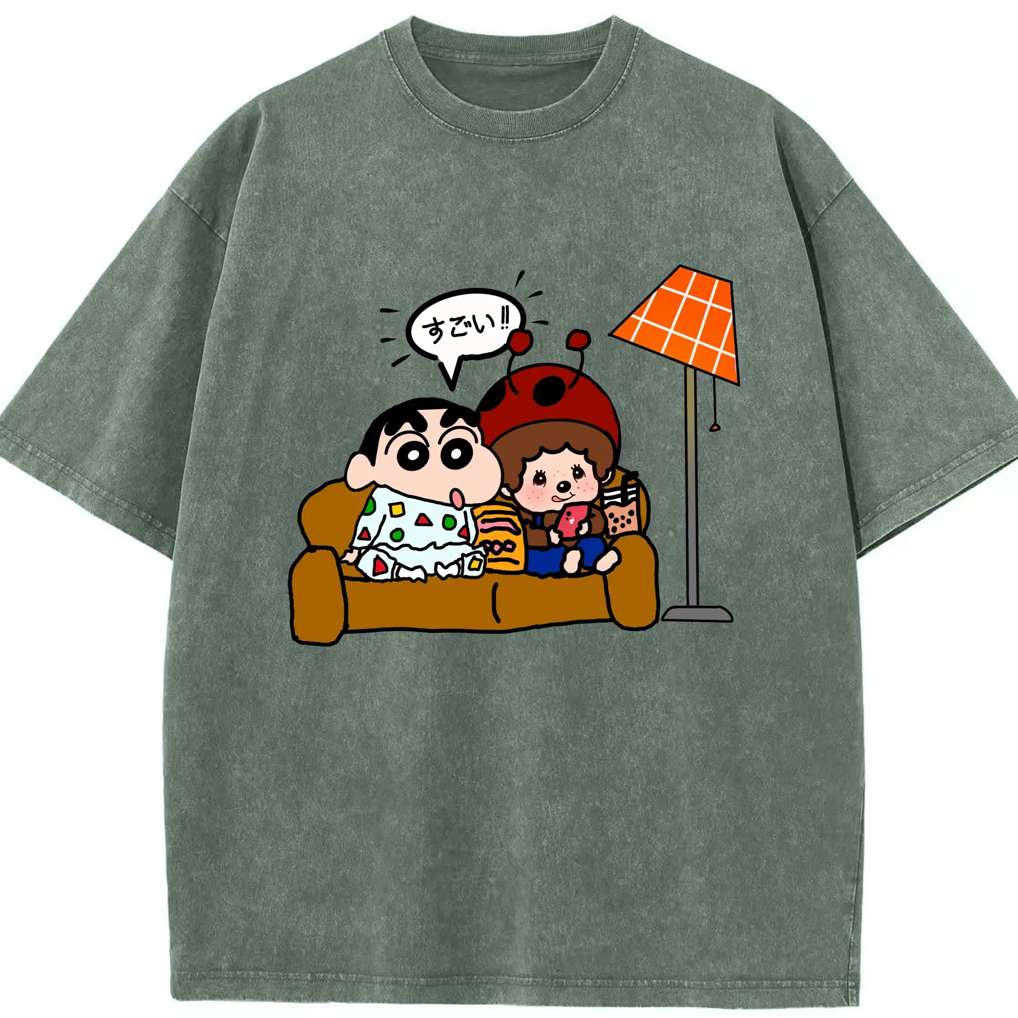 モンチッチ×クレヨンしんちゃんコラボ限定 - 綿100% 半袖Tシャツ ・ フロントプリント ・ 快適 通気性 ・ 日常使い 散歩 スポーツ用