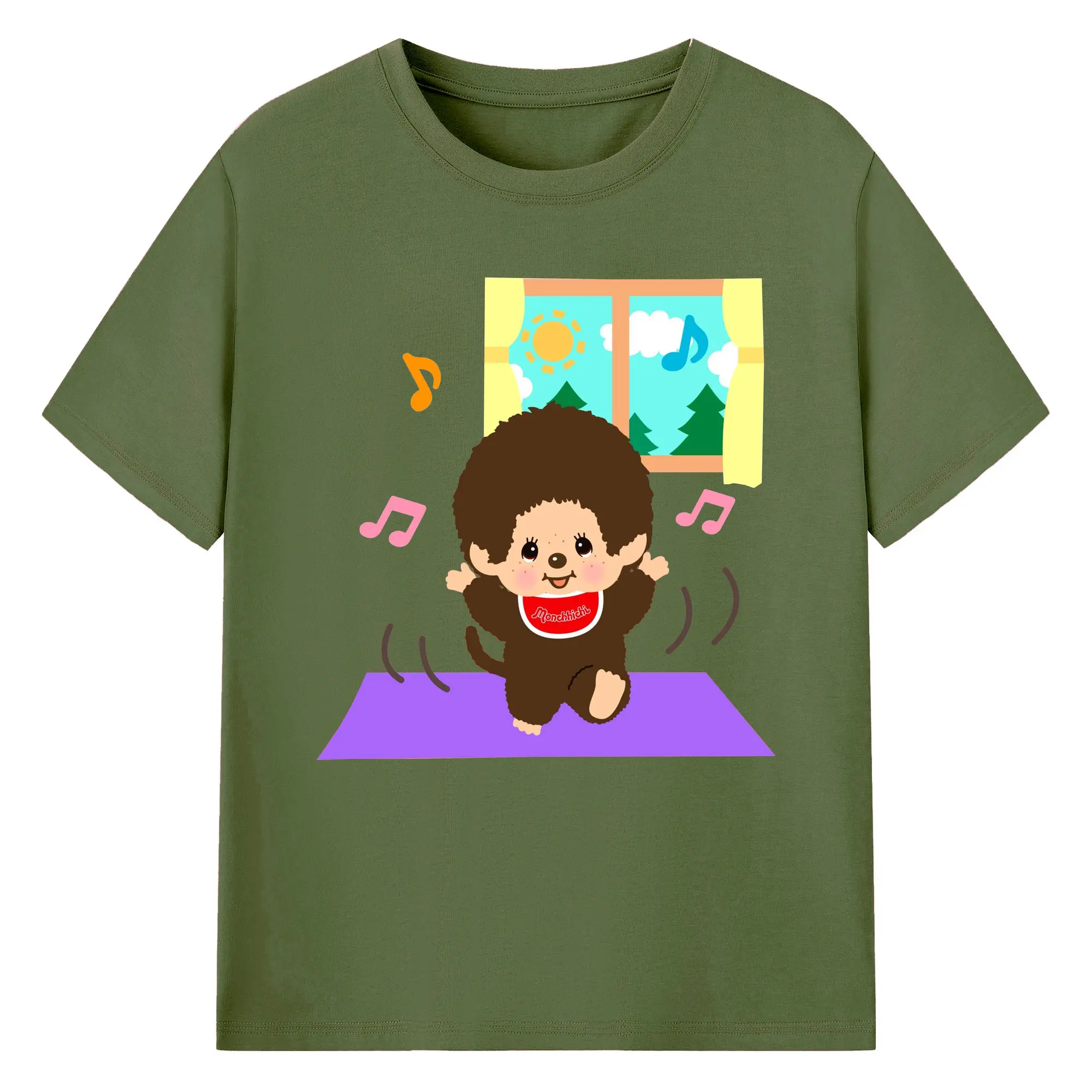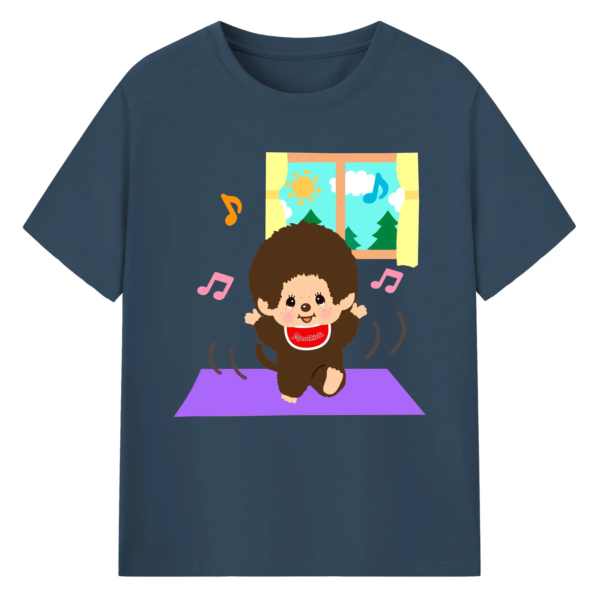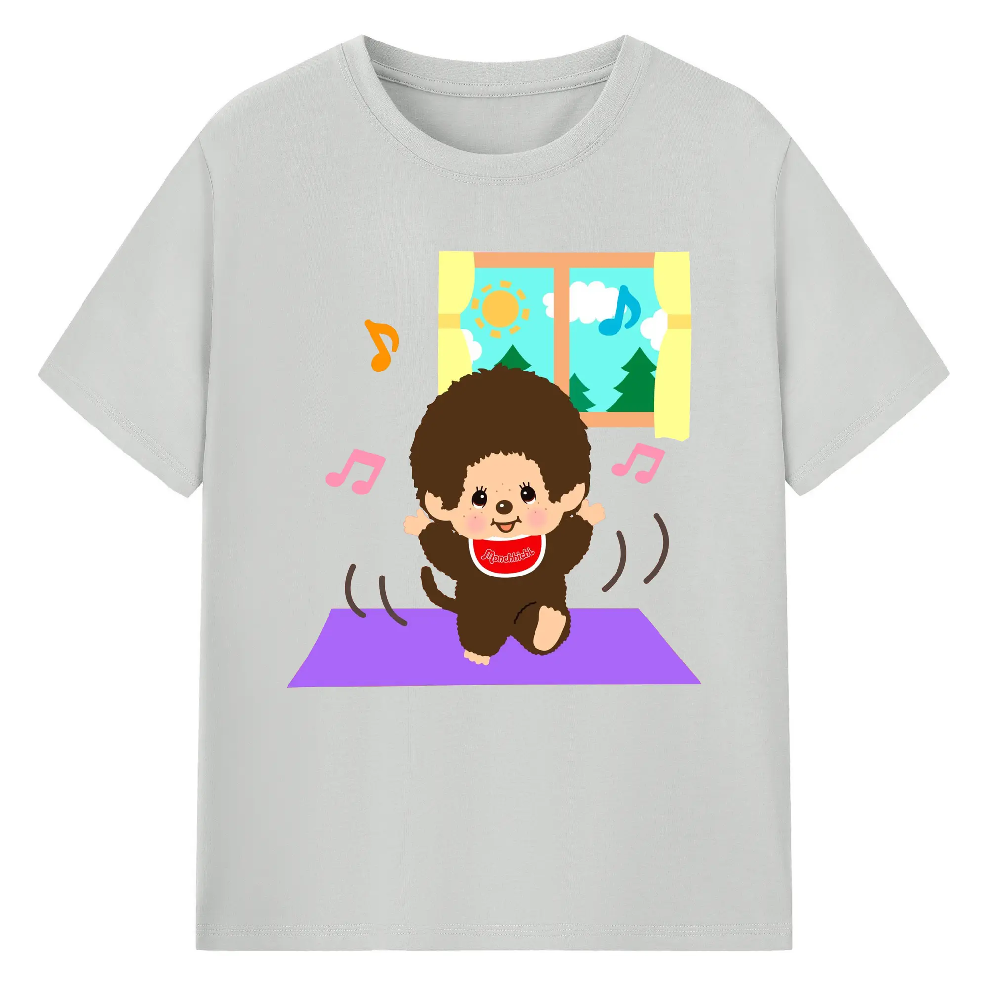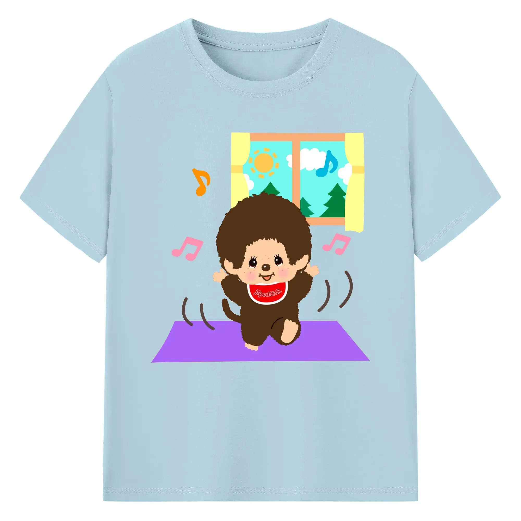 モンチッチミュージック 音符&リズム柄 可愛いキャラクター - 綿100% ヴィンテージ風 半袖Tシャツ ・ フロントプリント ・ 柔らか肌触り ・ 通気性 快適 ・ スポーツ カジュアル 外出用
