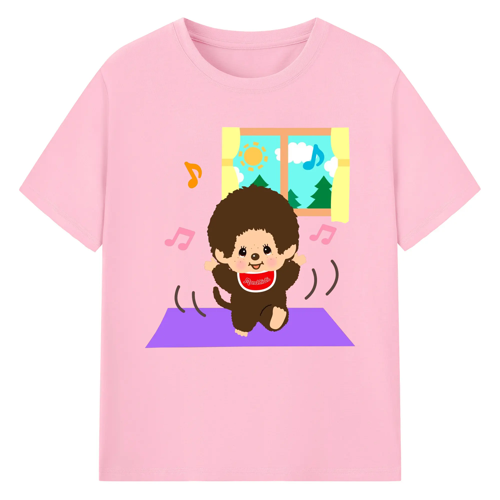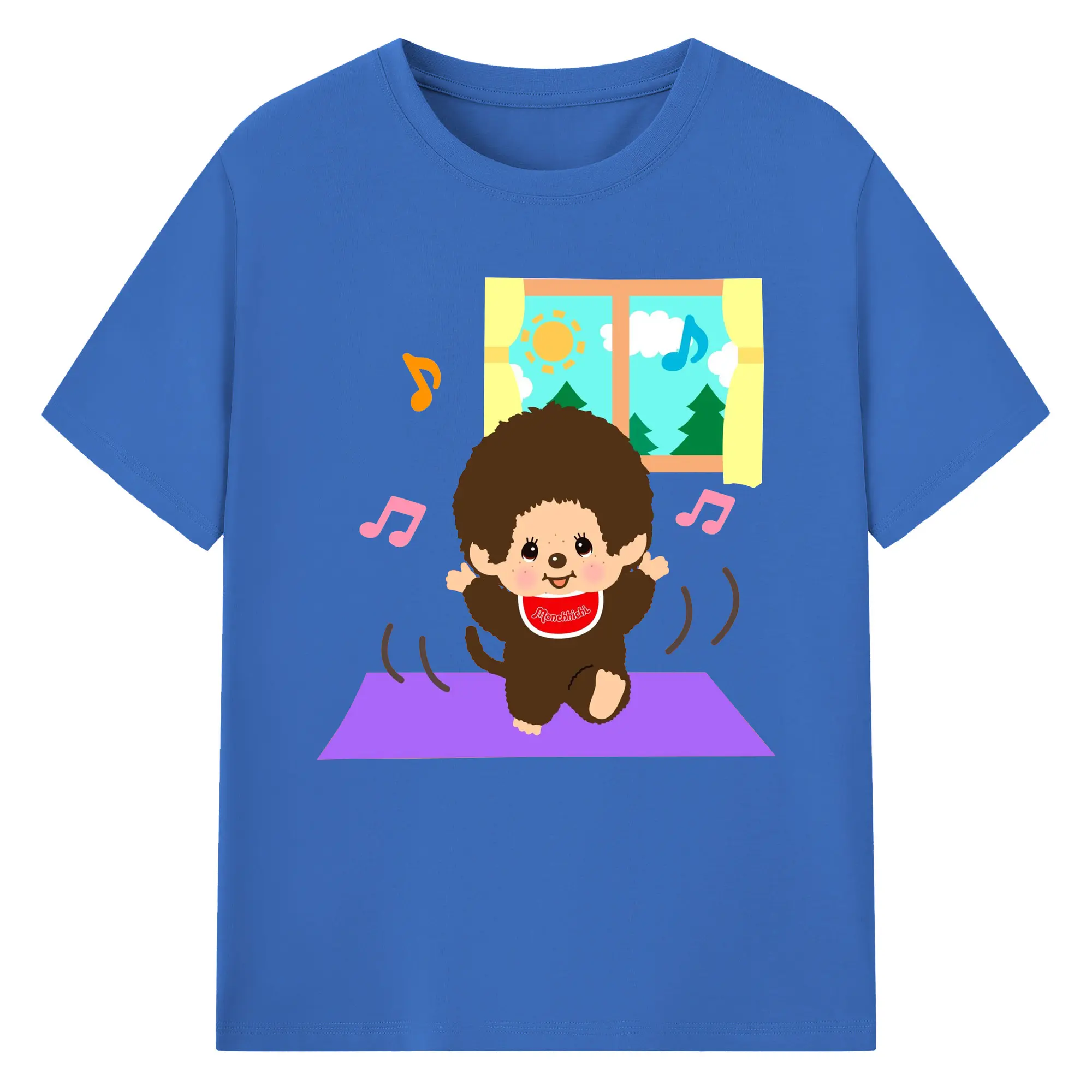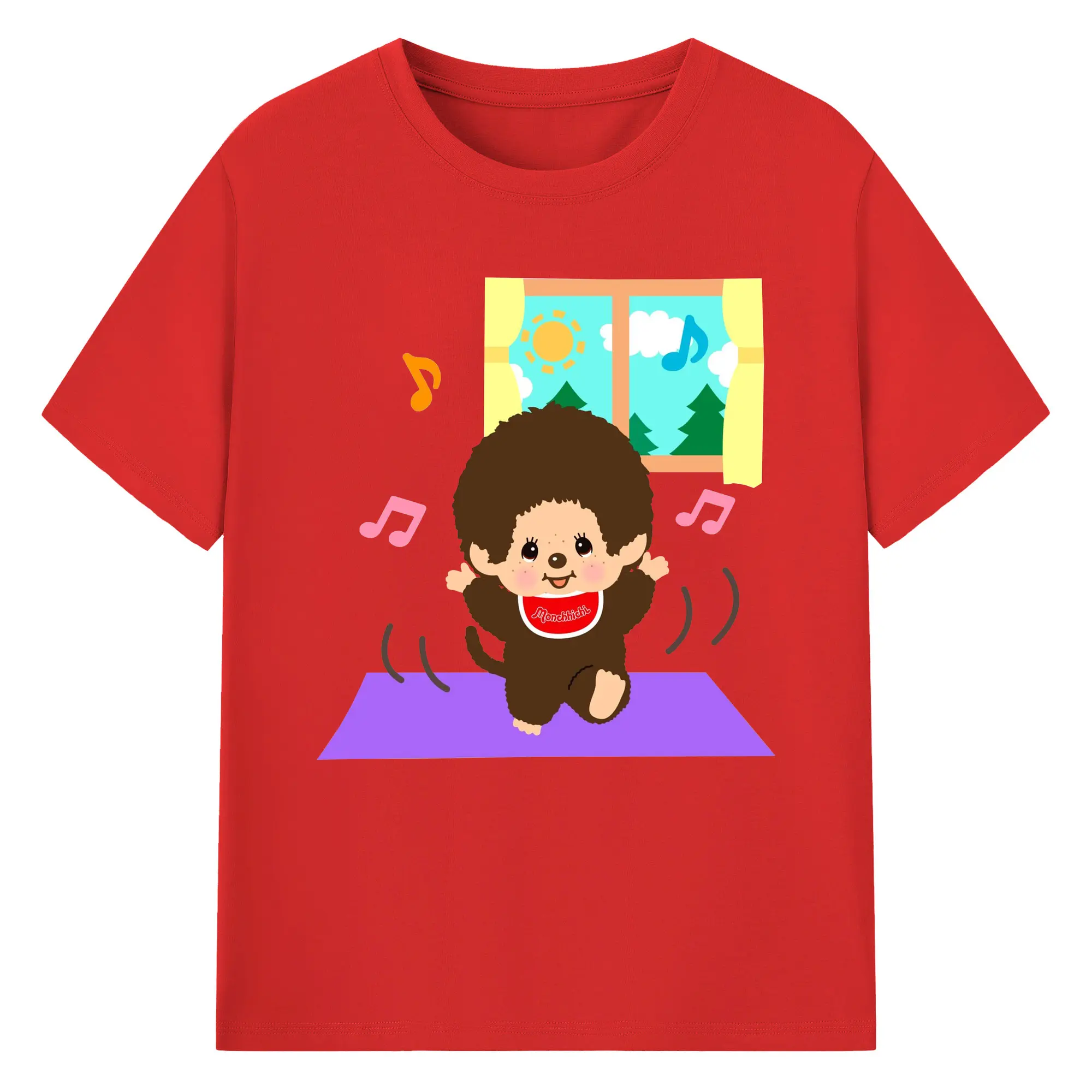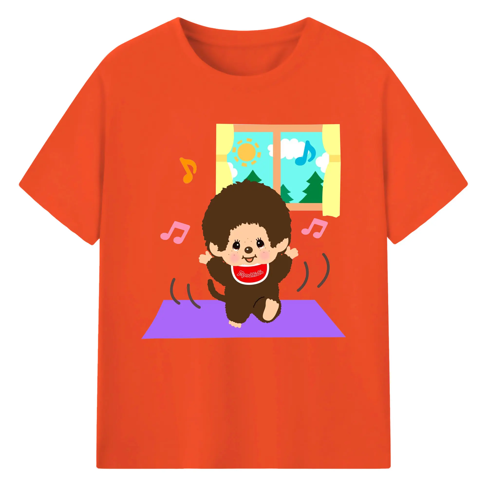 モンチッチミュージック 音符&リズム柄 可愛いキャラクター - 綿100% ヴィンテージ風 半袖Tシャツ ・ フロントプリント ・ 柔らか肌触り ・ 通気性 快適 ・ スポーツ カジュアル 外出用