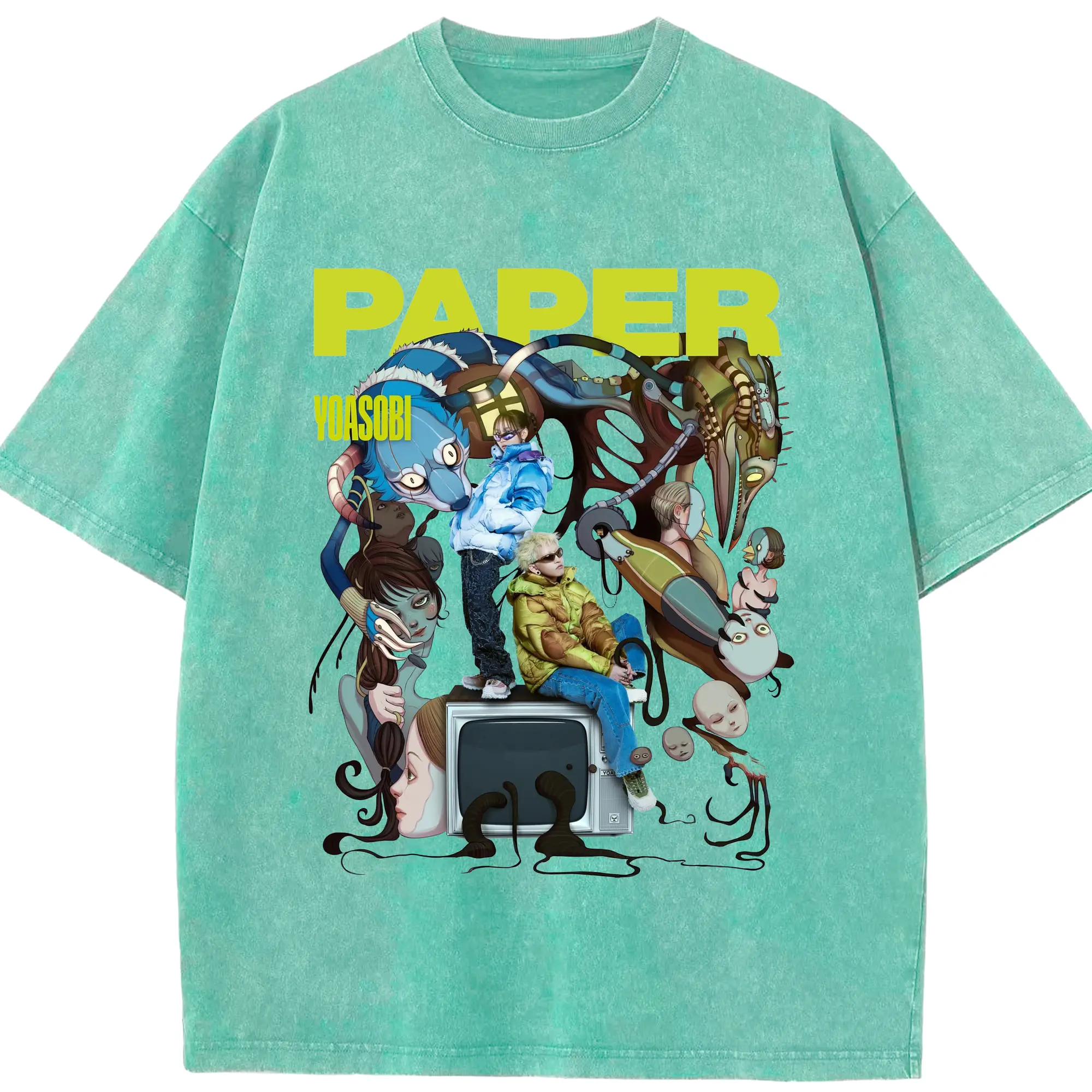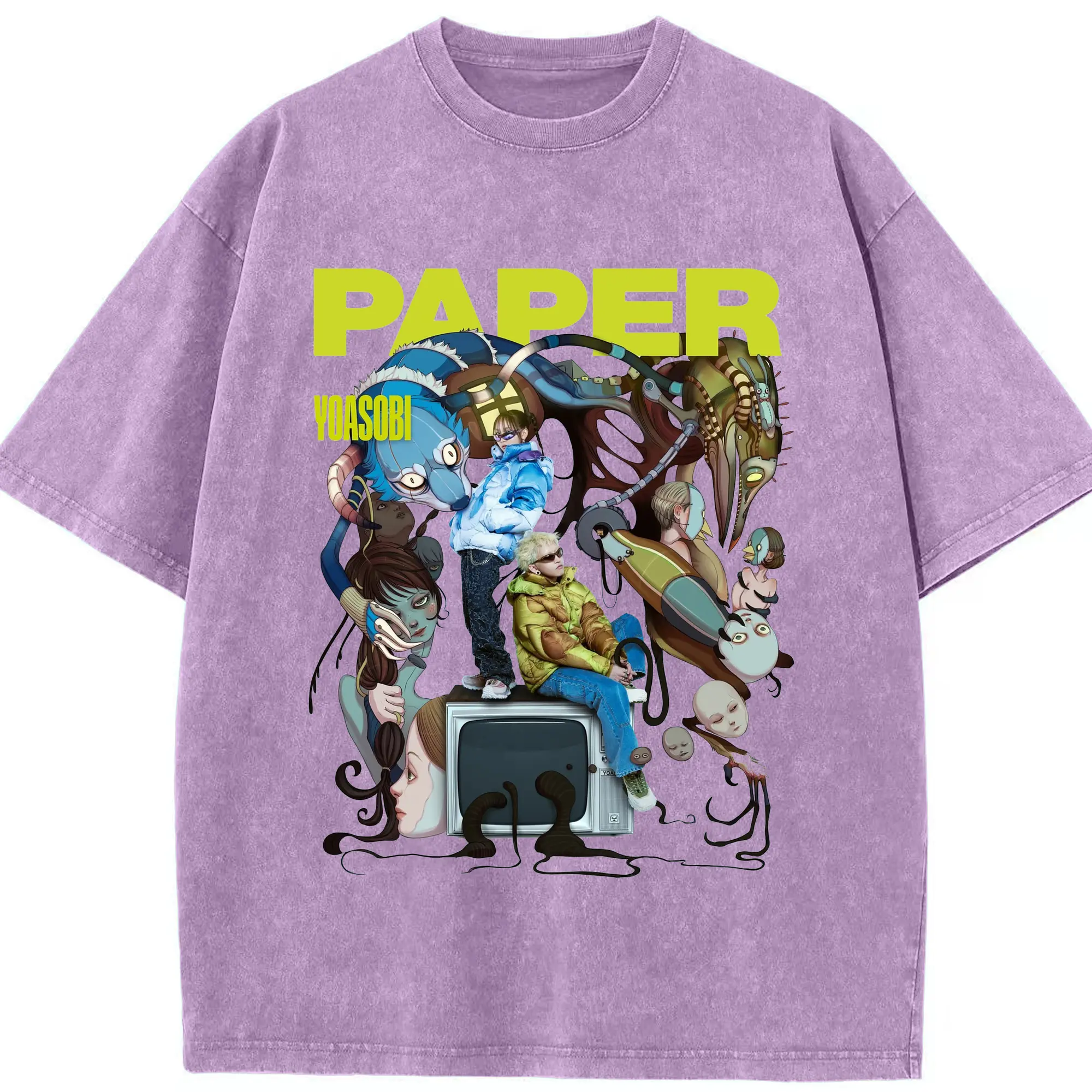 ヨアソビYOASOBIバンドポスター - 綿100% 半袖Tシャツ ・ フロントプリント ・ 快適 通気性 ・ 日常使い 散歩 スポーツ用