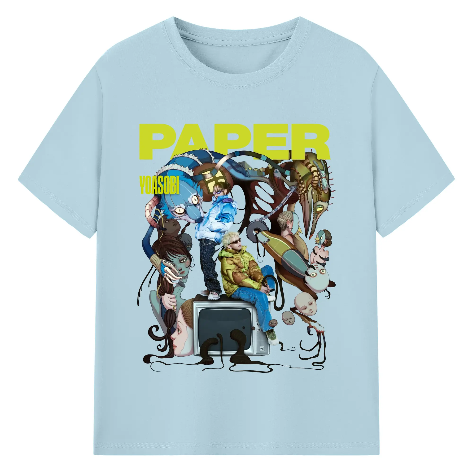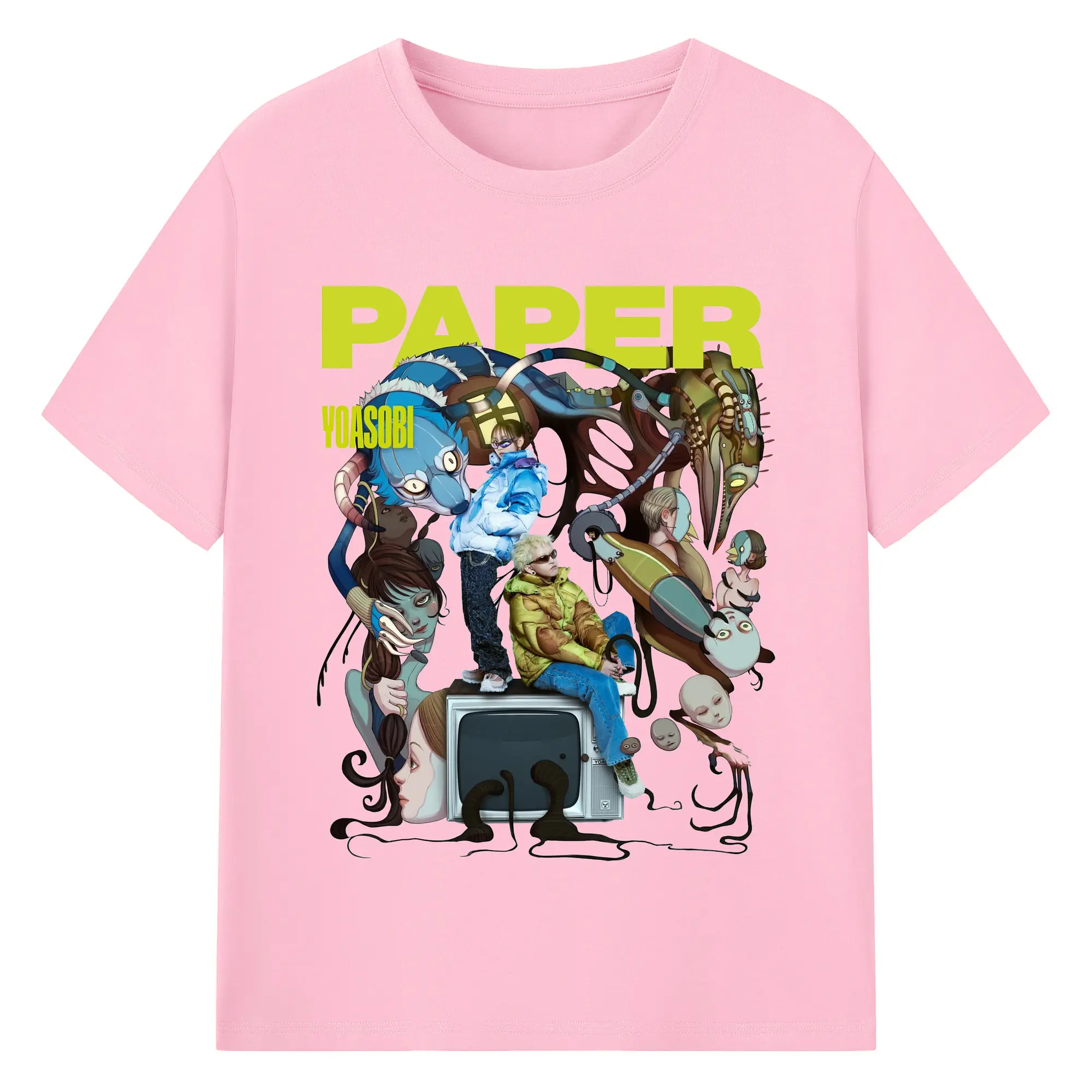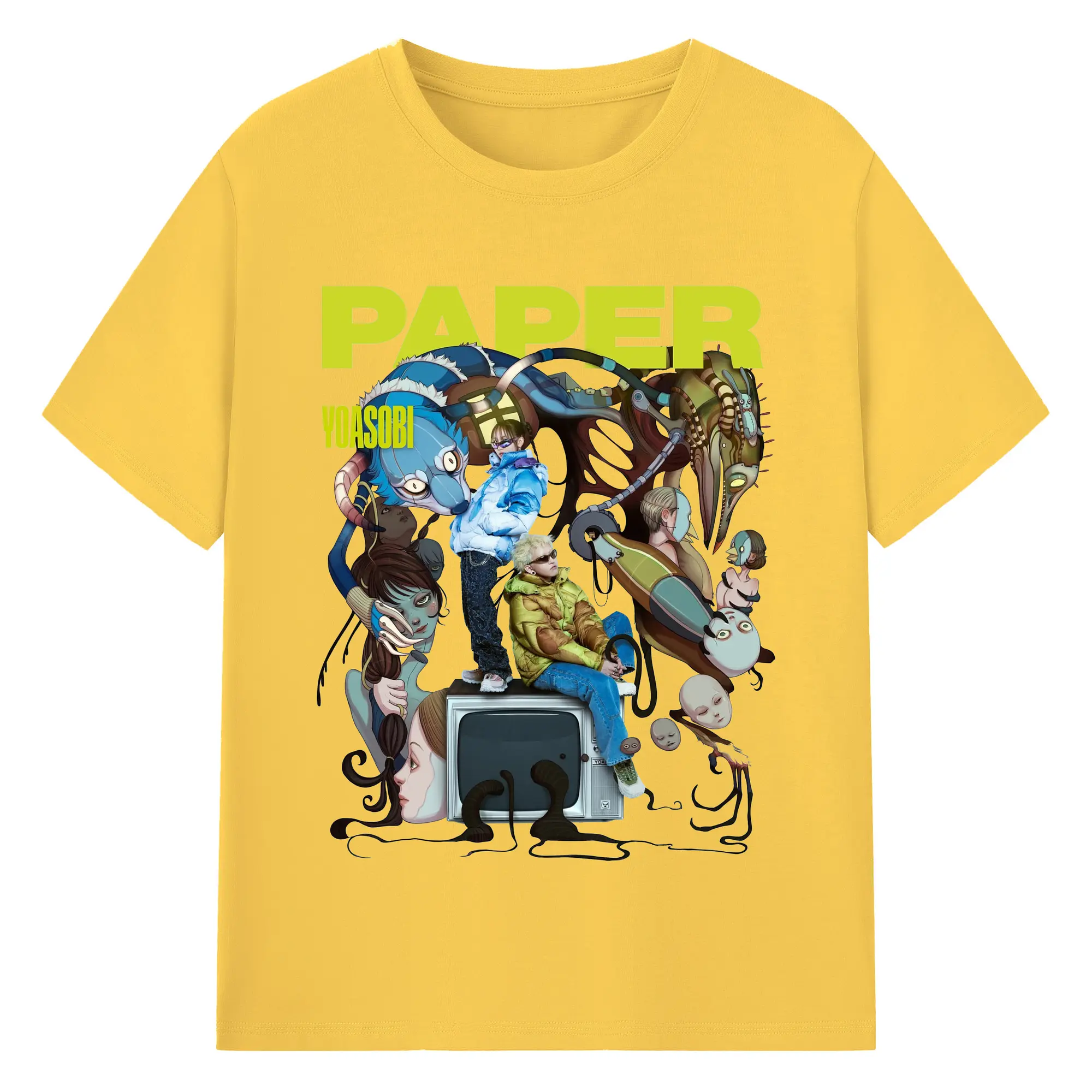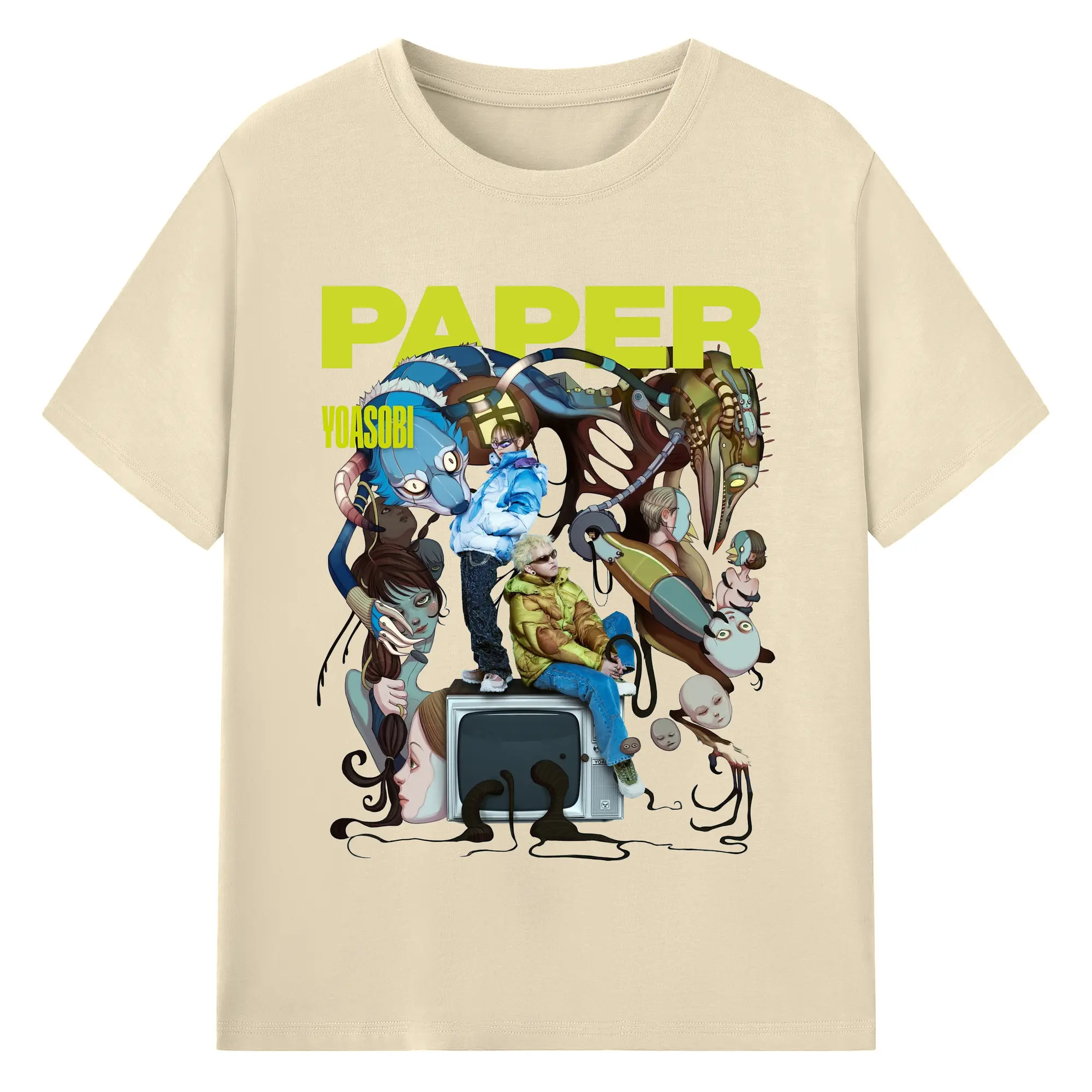 ヨアソビYOASOBIバンドポスター - 綿100% ヴィンテージ風 半袖Tシャツ ・ フロントプリント ・ 柔らか肌触り ・ 通気性 快適 ・ スポーツ カジュアル 外出用