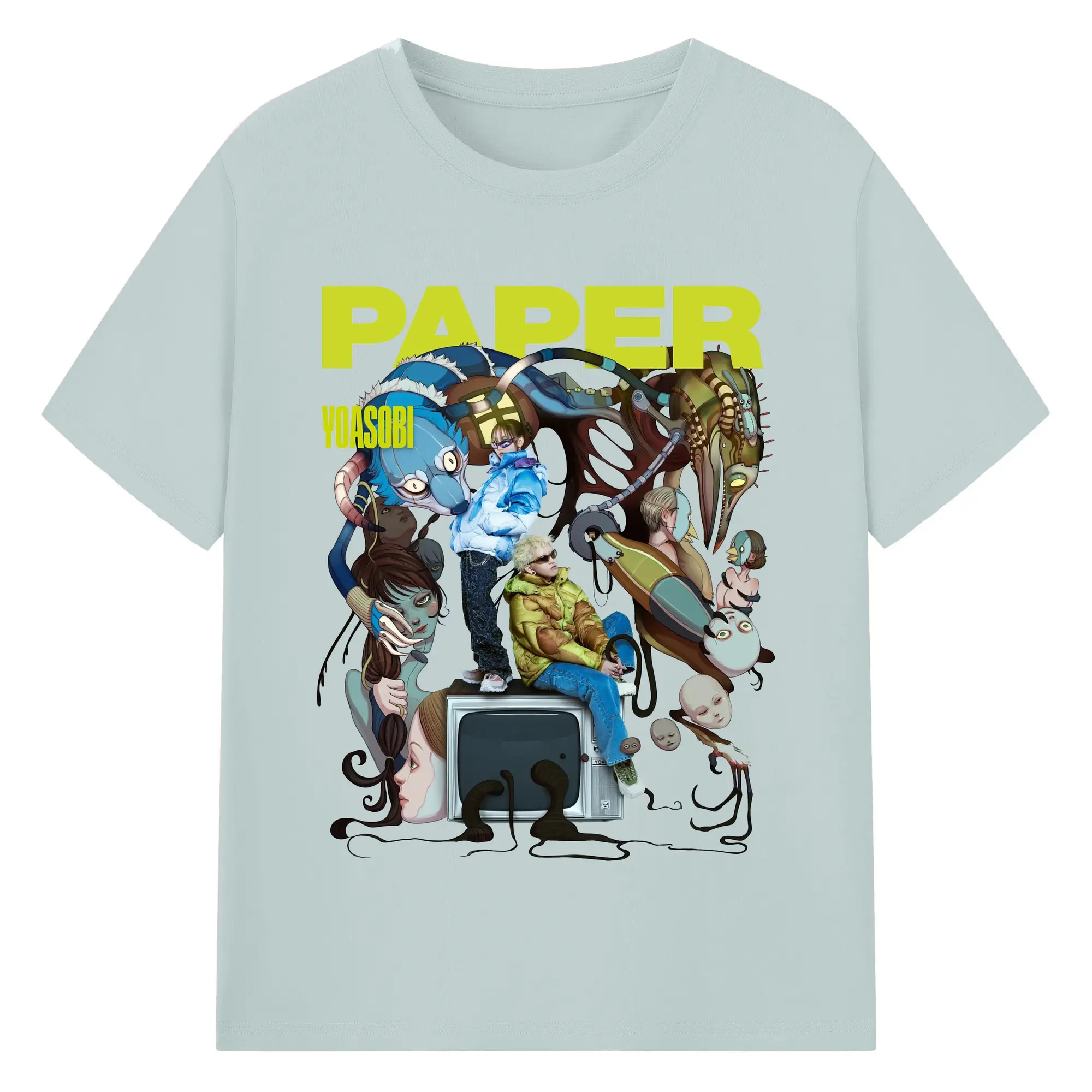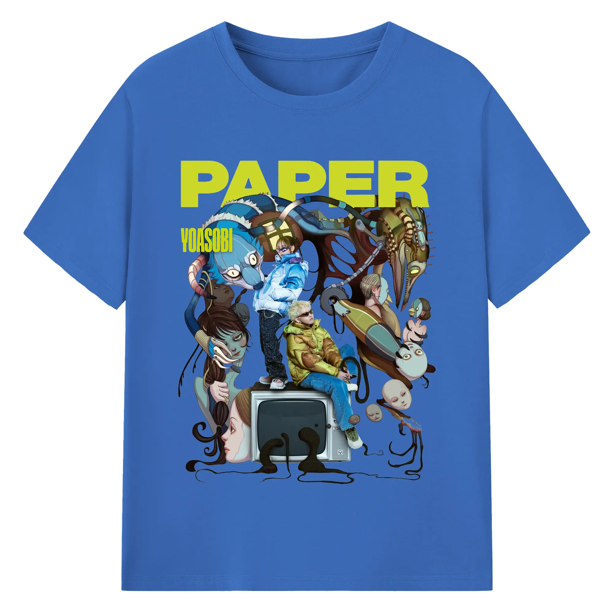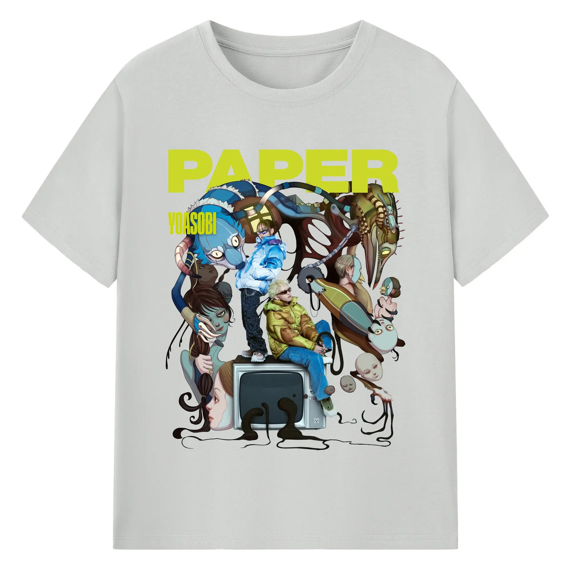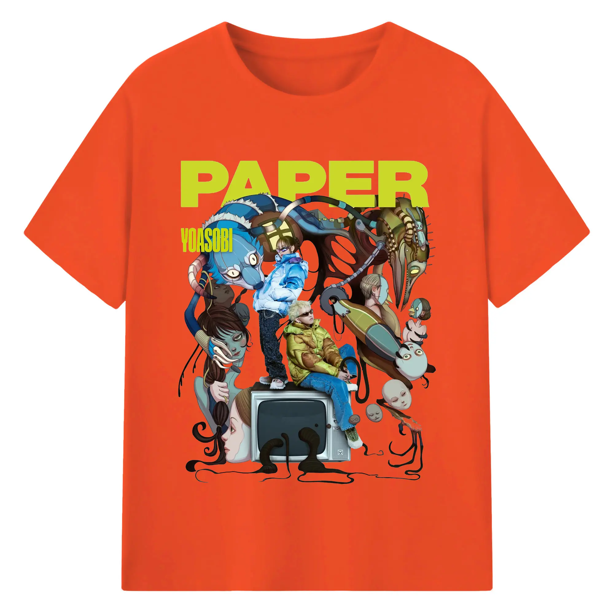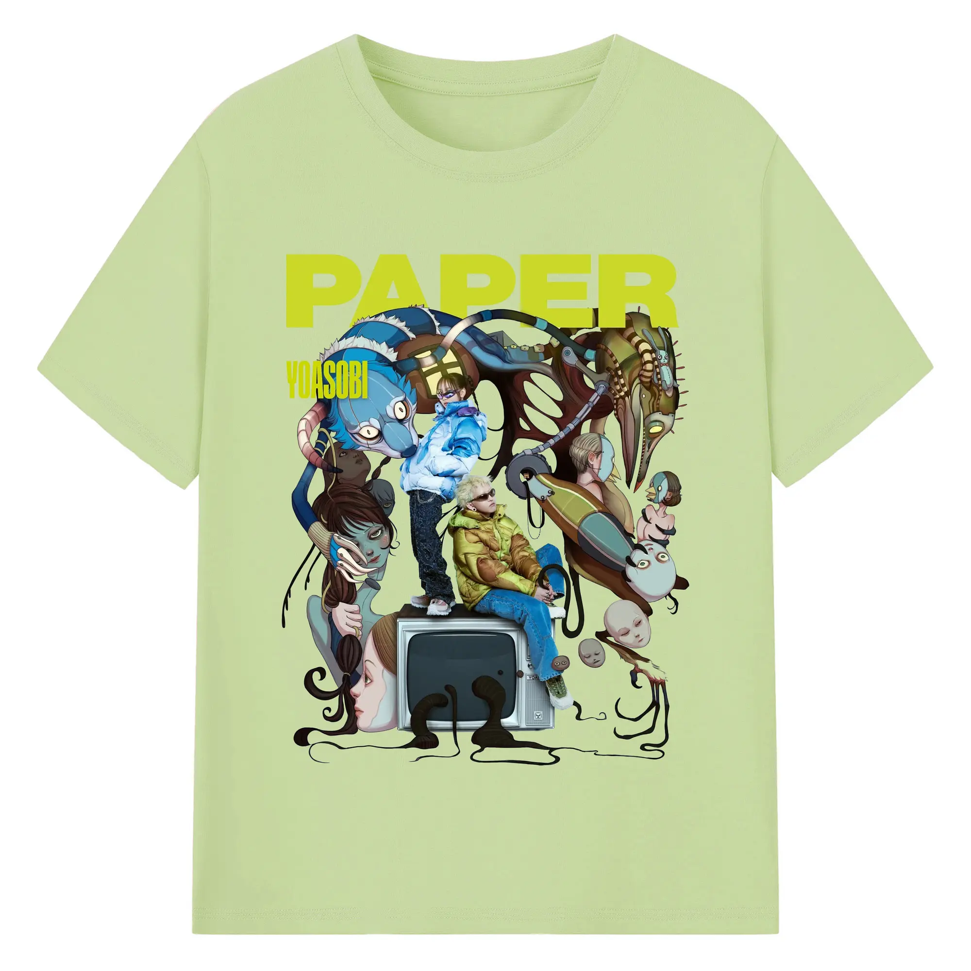 ヨアソビYOASOBIバンドポスター - 綿100% ヴィンテージ風 半袖Tシャツ ・ フロントプリント ・ 柔らか肌触り ・ 通気性 快適 ・ スポーツ カジュアル 外出用