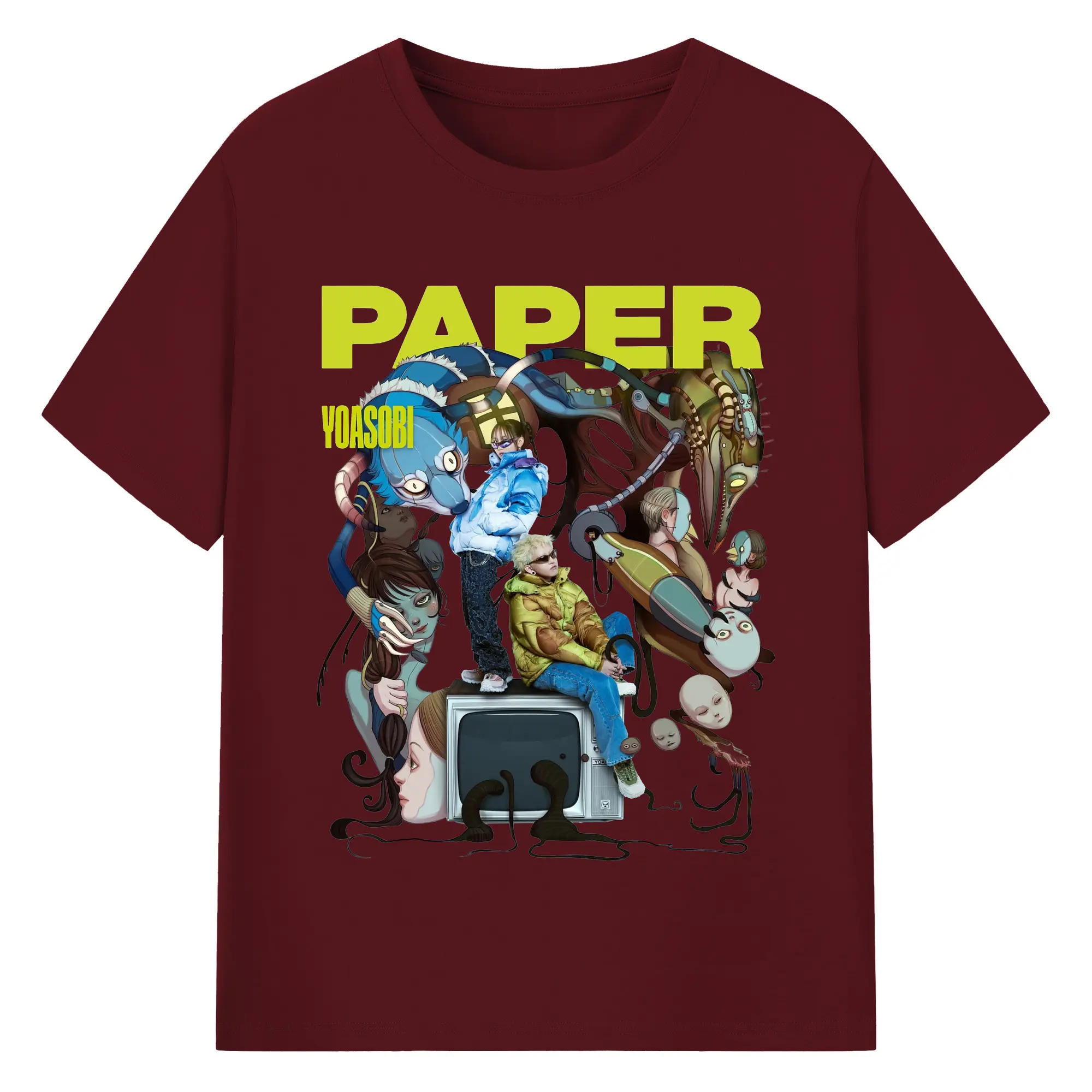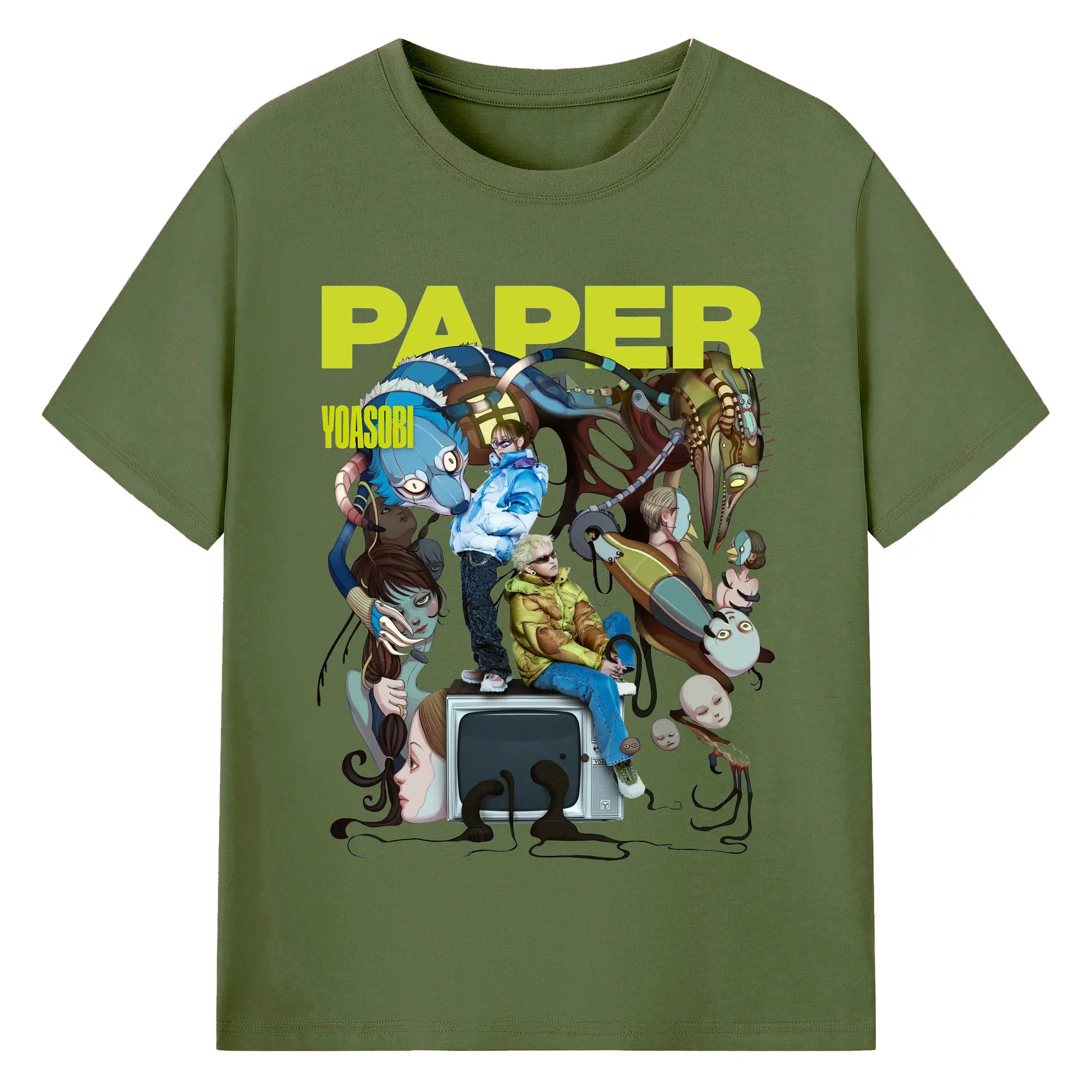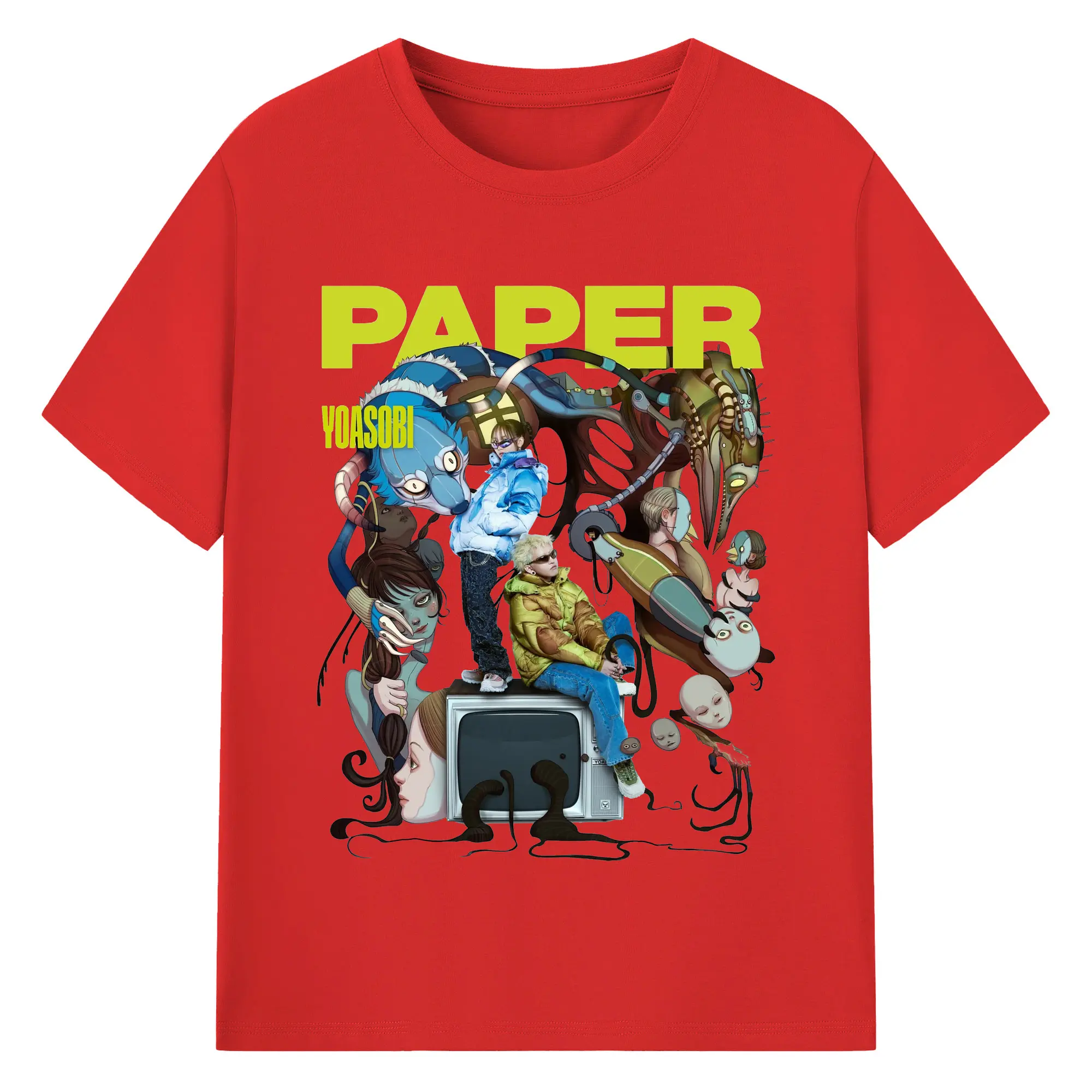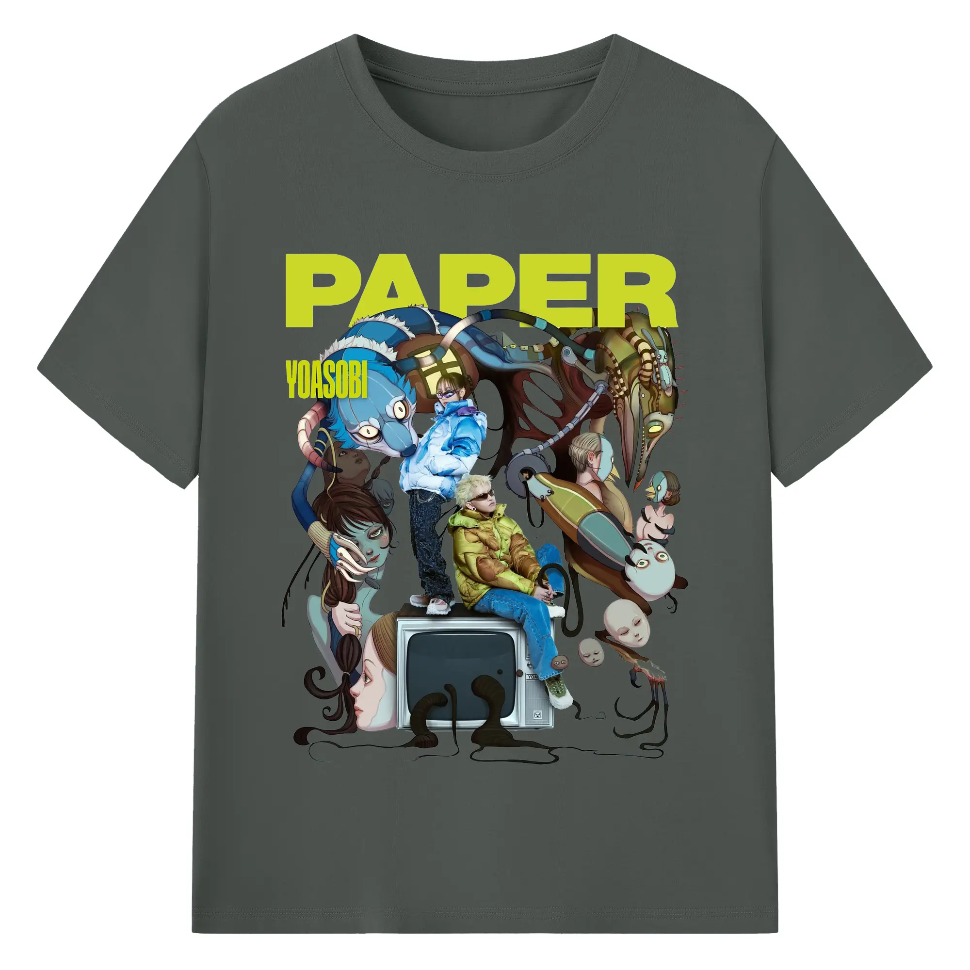 ヨアソビYOASOBIバンドポスター - 綿100% ヴィンテージ風 半袖Tシャツ ・ フロントプリント ・ 柔らか肌触り ・ 通気性 快適 ・ スポーツ カジュアル 外出用