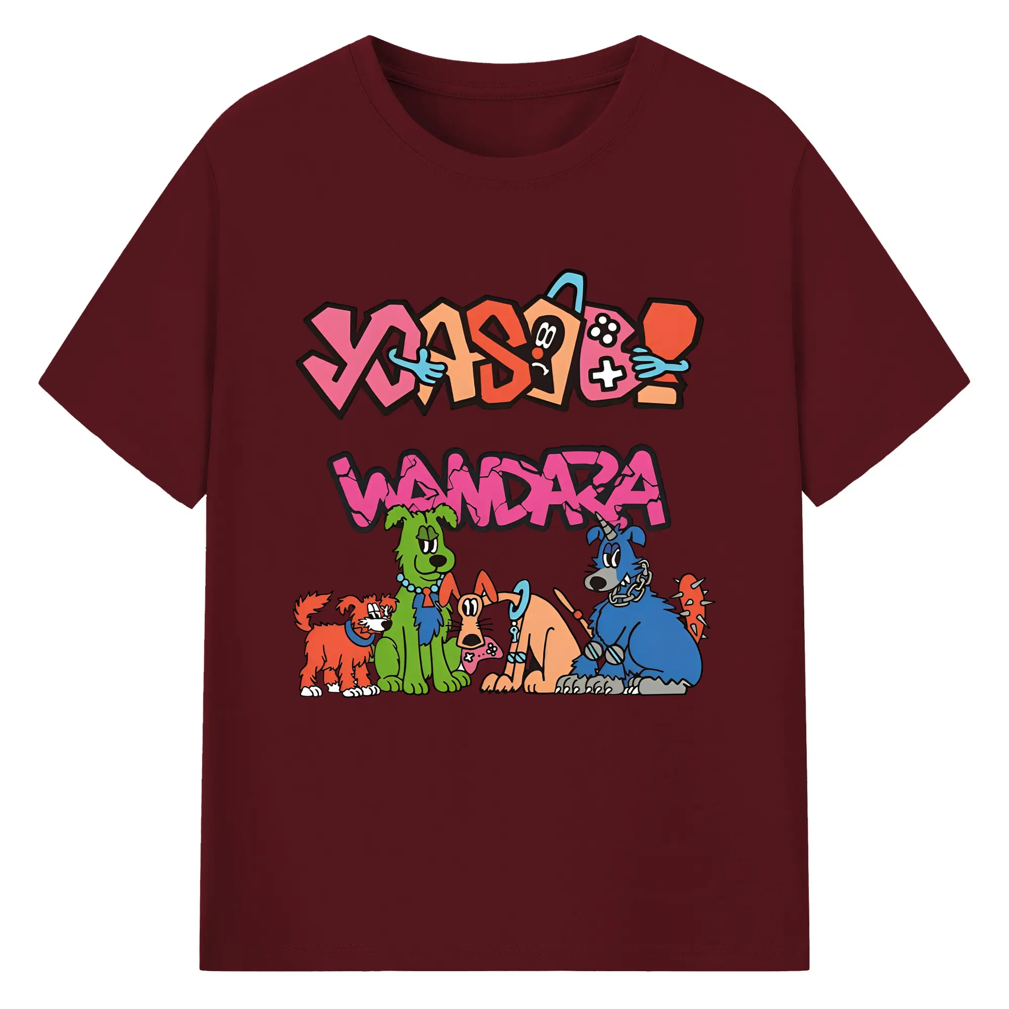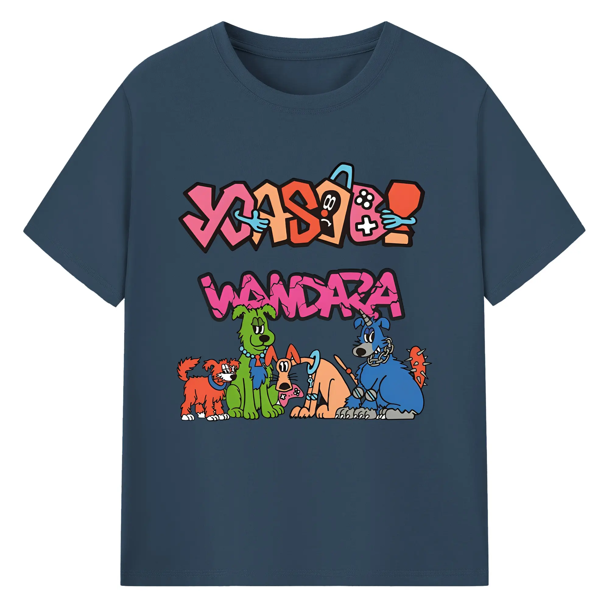 ヨアソビYOASOBI限定 - 綿100% ヴィンテージ風 半袖Tシャツ ・ フロントプリント ・ 柔らか肌触り ・ 通気性 快適 ・ スポーツ カジュアル 外出用