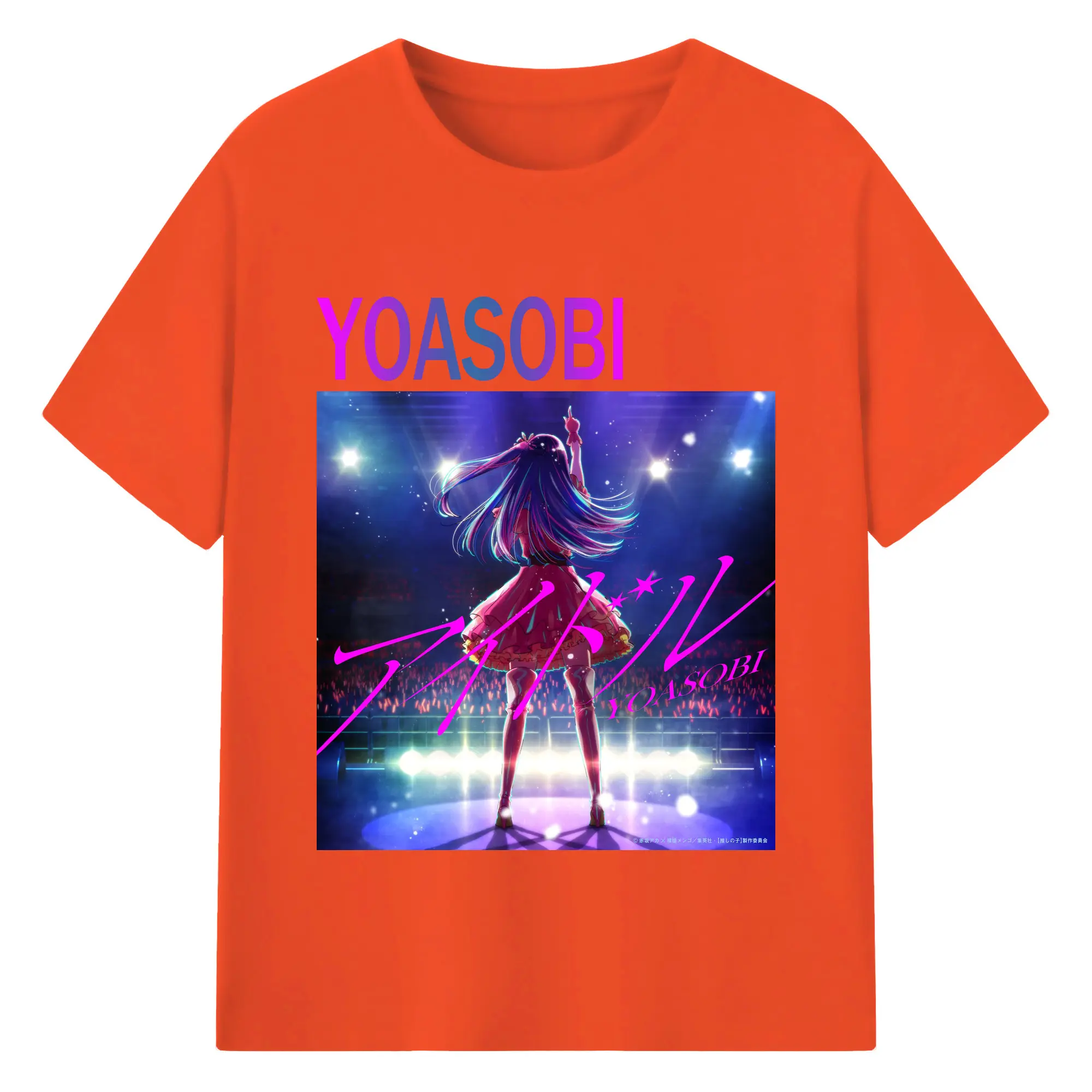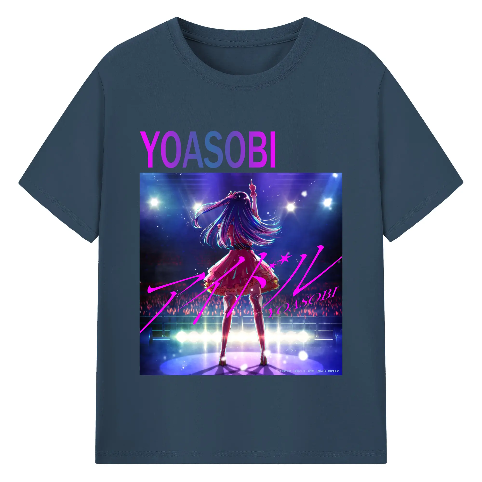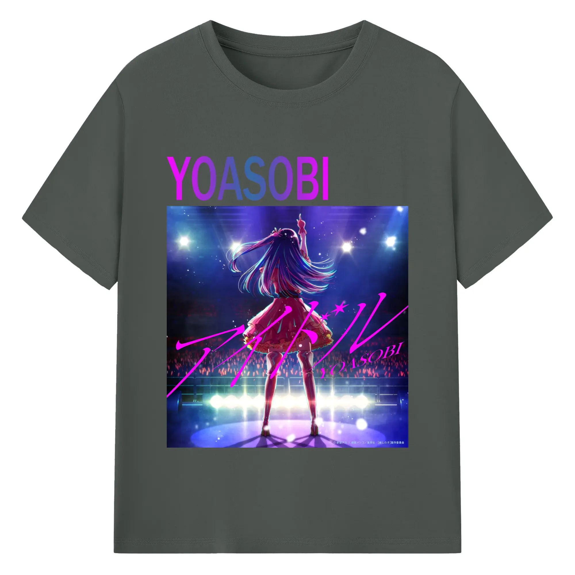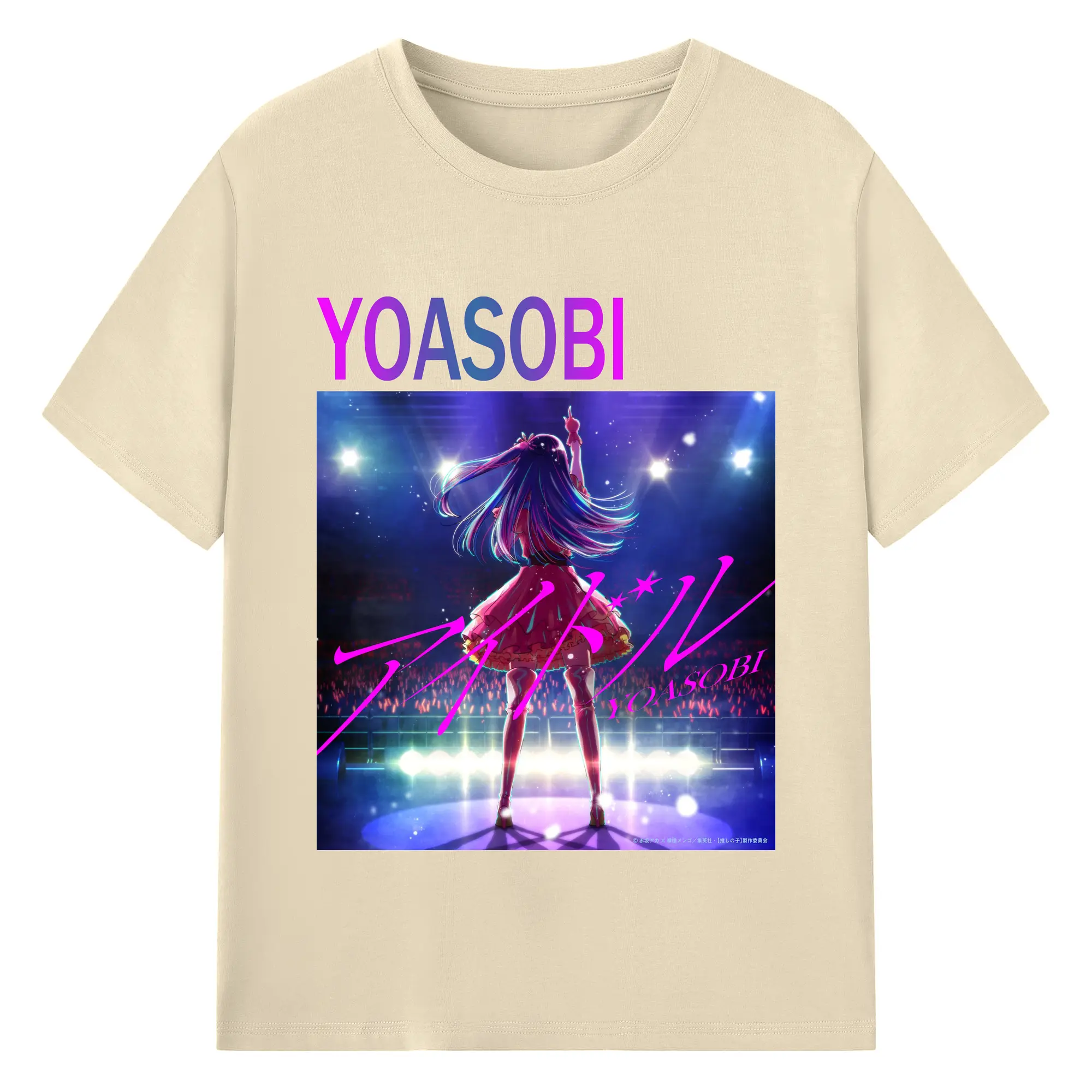 ヨアソビYOASOBI アイドル - 綿100% ヴィンテージ風 半袖Tシャツ ・ フロントプリント ・ 柔らか肌触り ・ 通気性 快適 ・ スポーツ カジュアル 外出用
