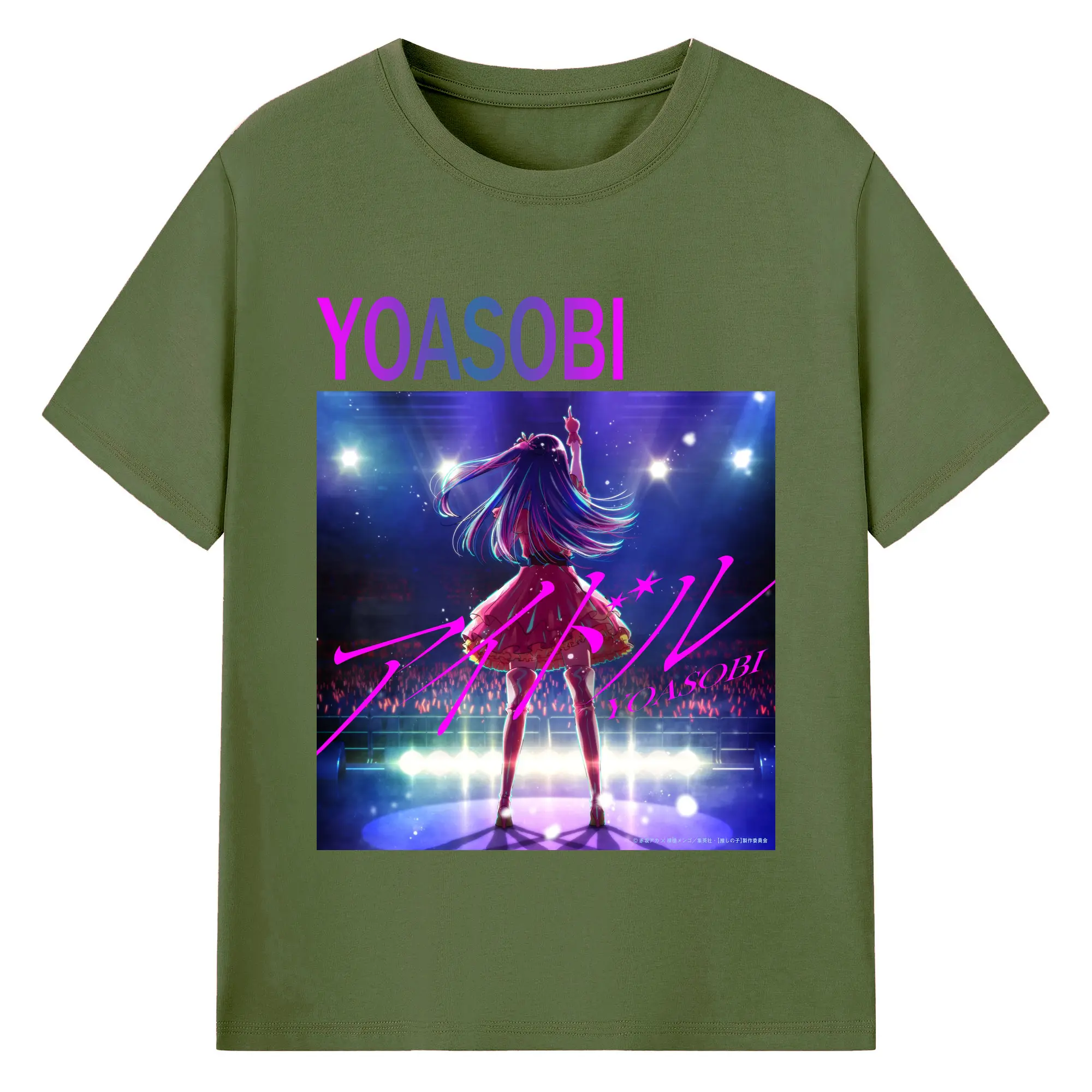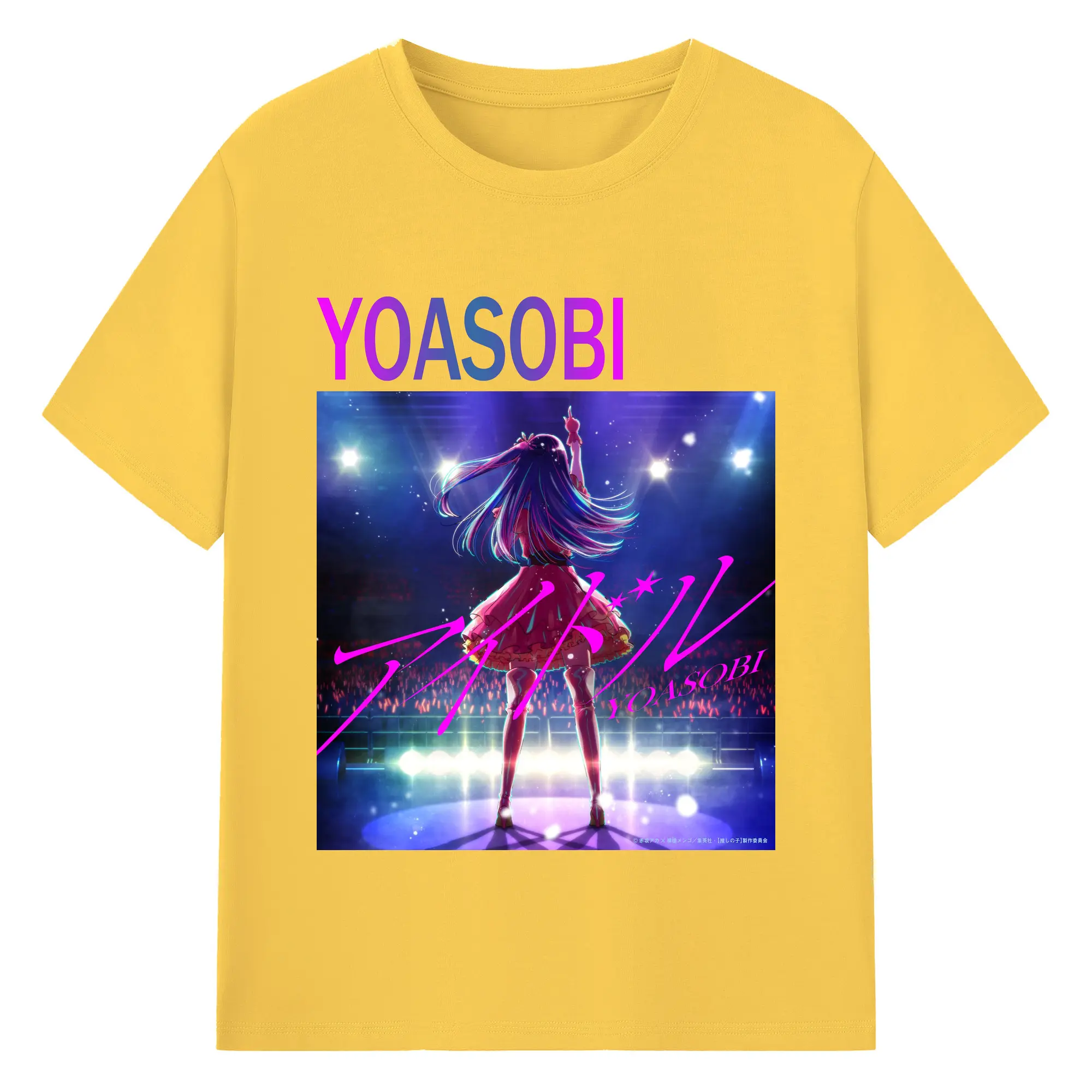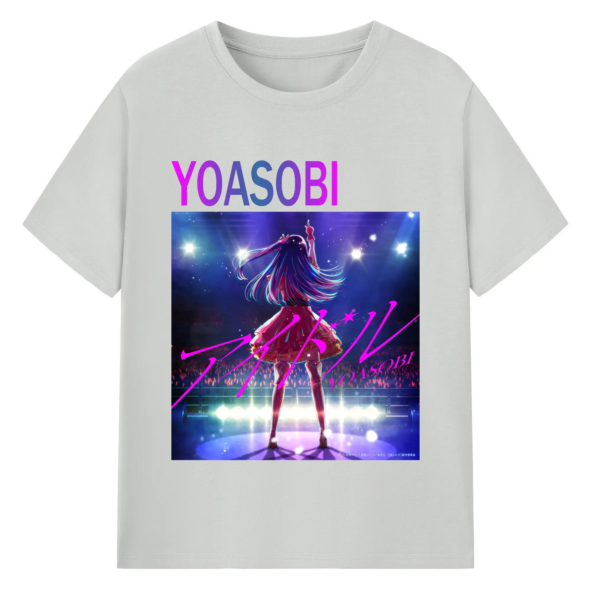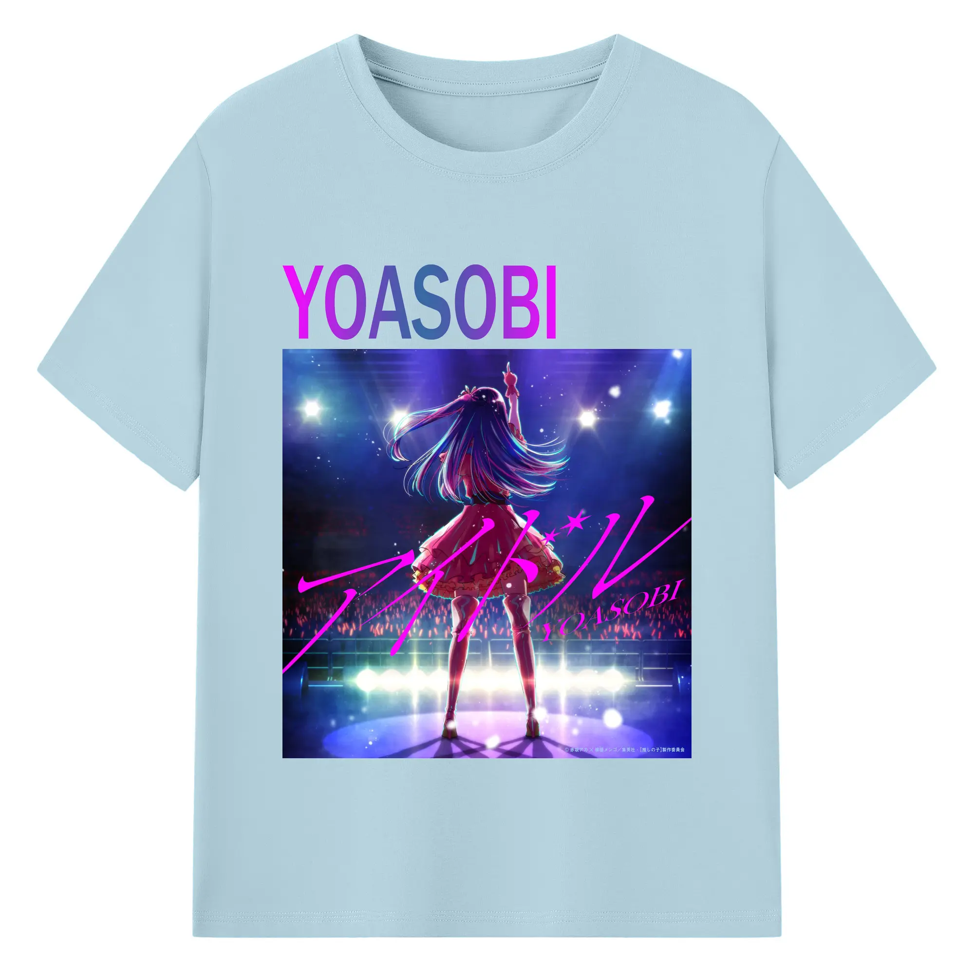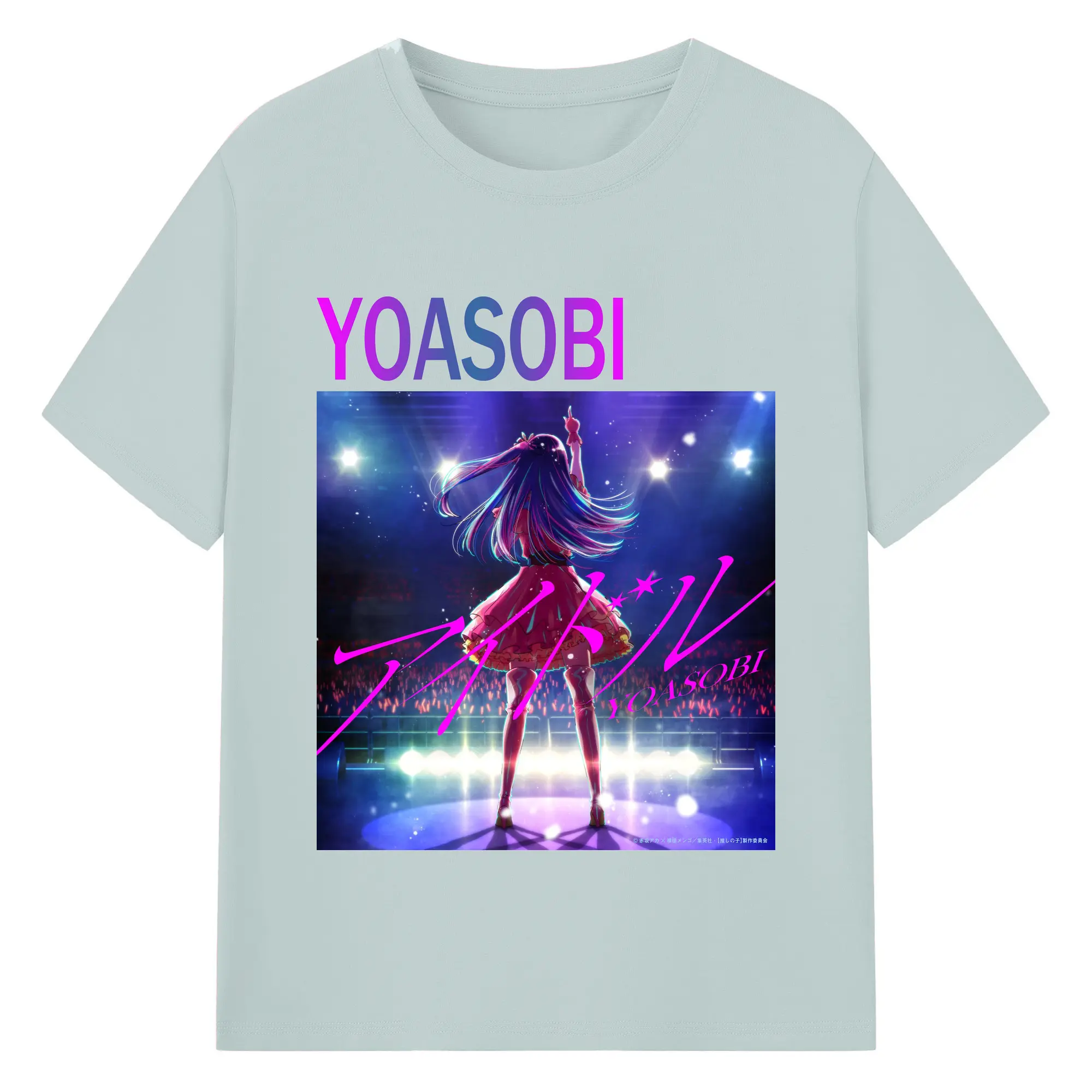 ヨアソビYOASOBI アイドル - 綿100% ヴィンテージ風 半袖Tシャツ ・ フロントプリント ・ 柔らか肌触り ・ 通気性 快適 ・ スポーツ カジュアル 外出用