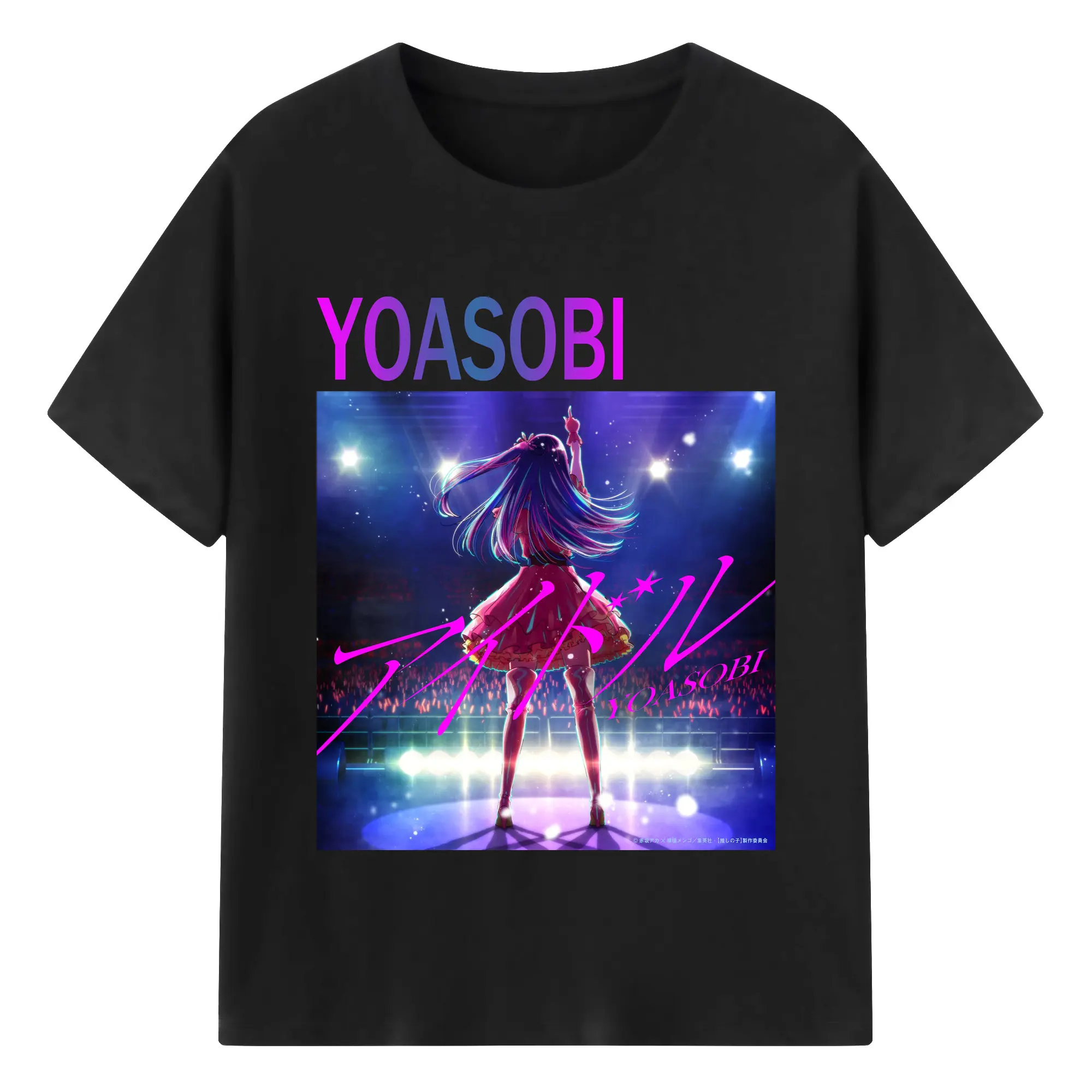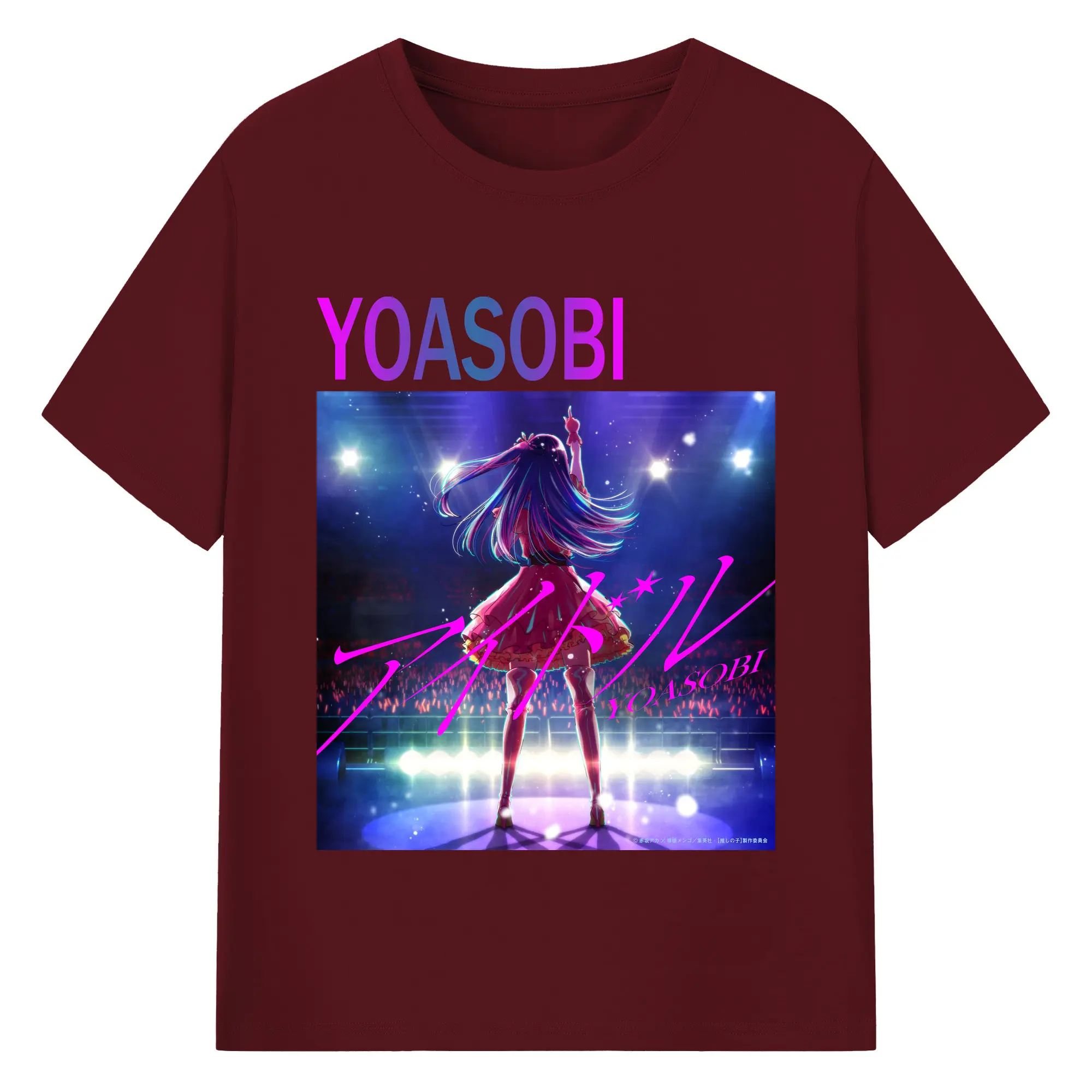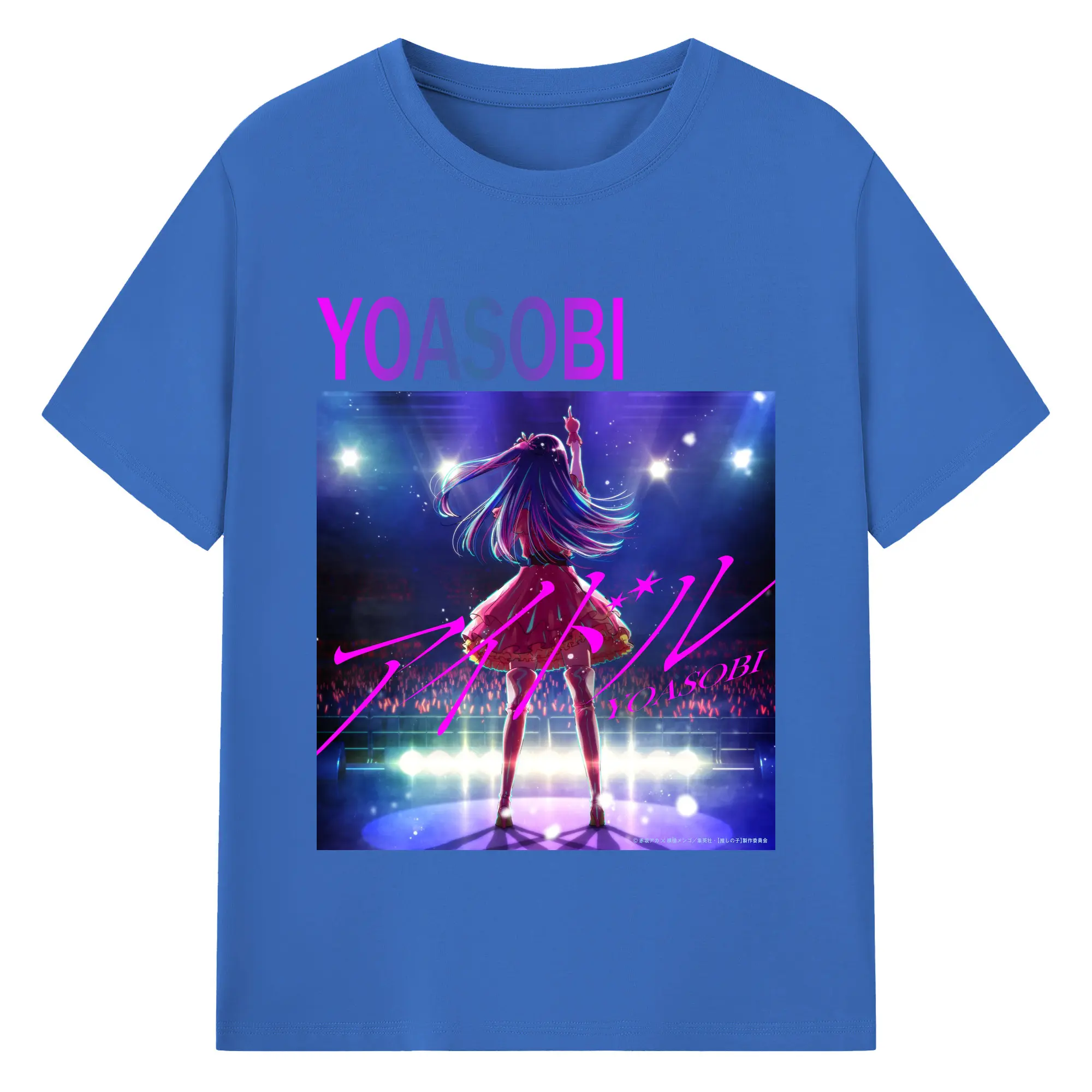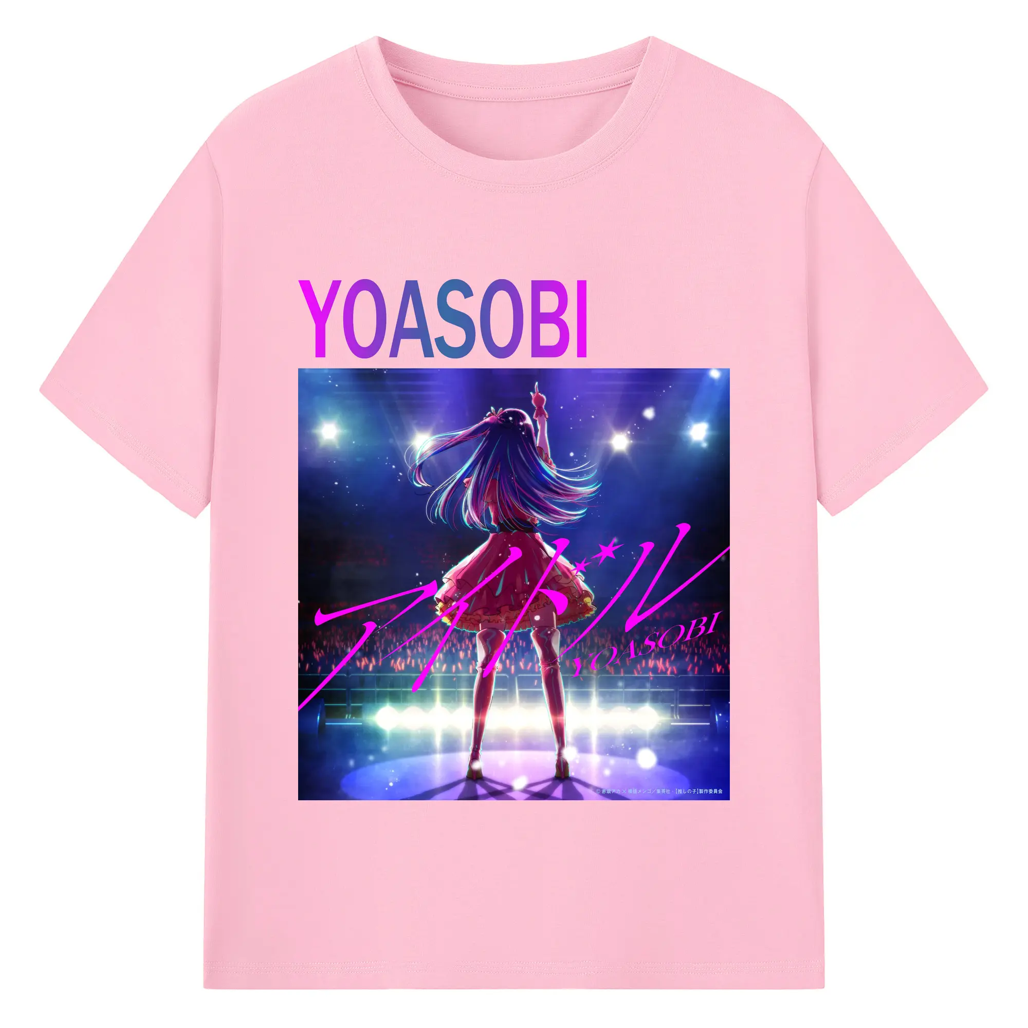 ヨアソビYOASOBI アイドル - 綿100% ヴィンテージ風 半袖Tシャツ ・ フロントプリント ・ 柔らか肌触り ・ 通気性 快適 ・ スポーツ カジュアル 外出用