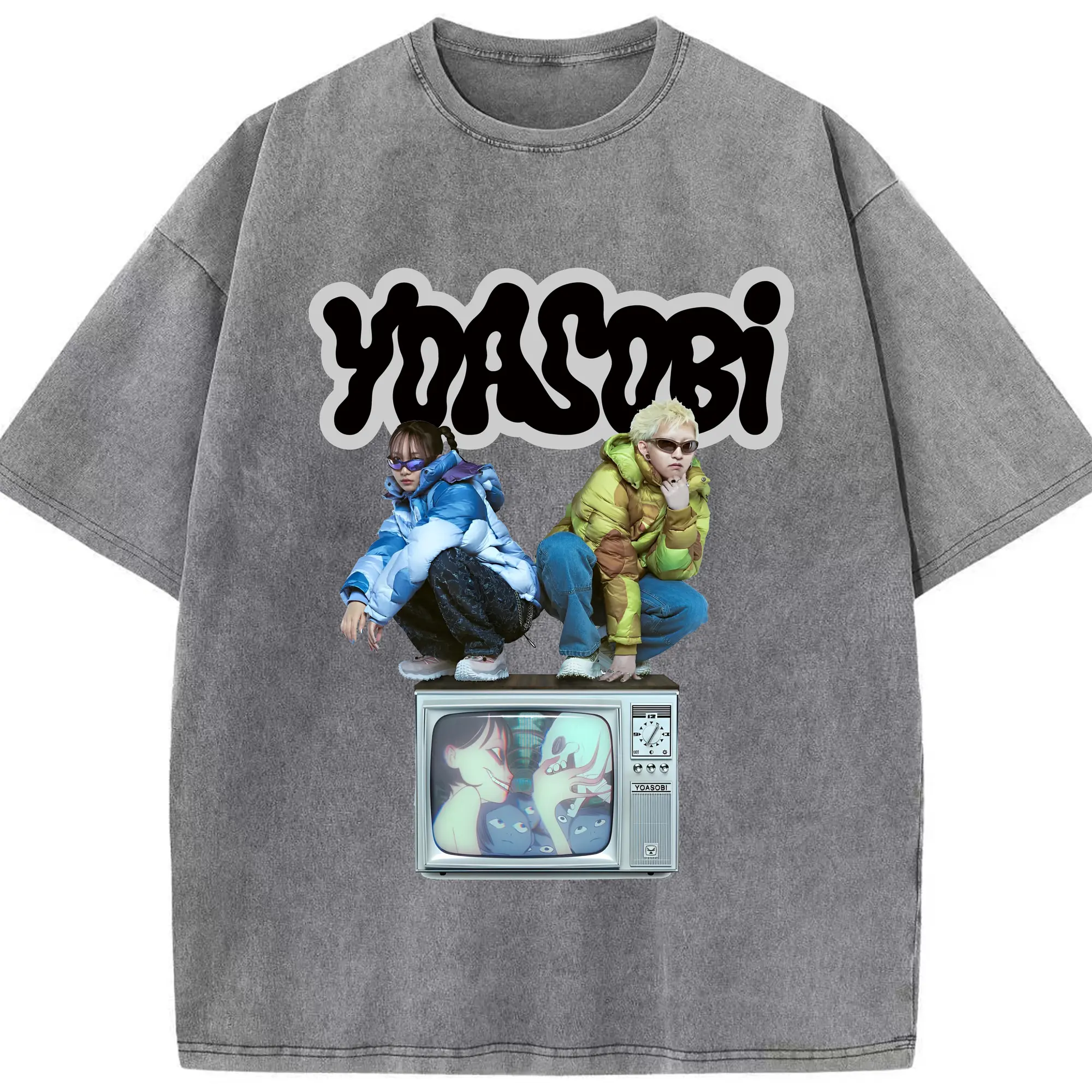 ヨアソビYOASOBI バンドポスター - 綿100% 半袖Tシャツ ・ フロントプリント ・ 快適 通気性 ・ 日常使い 散歩 スポーツ用