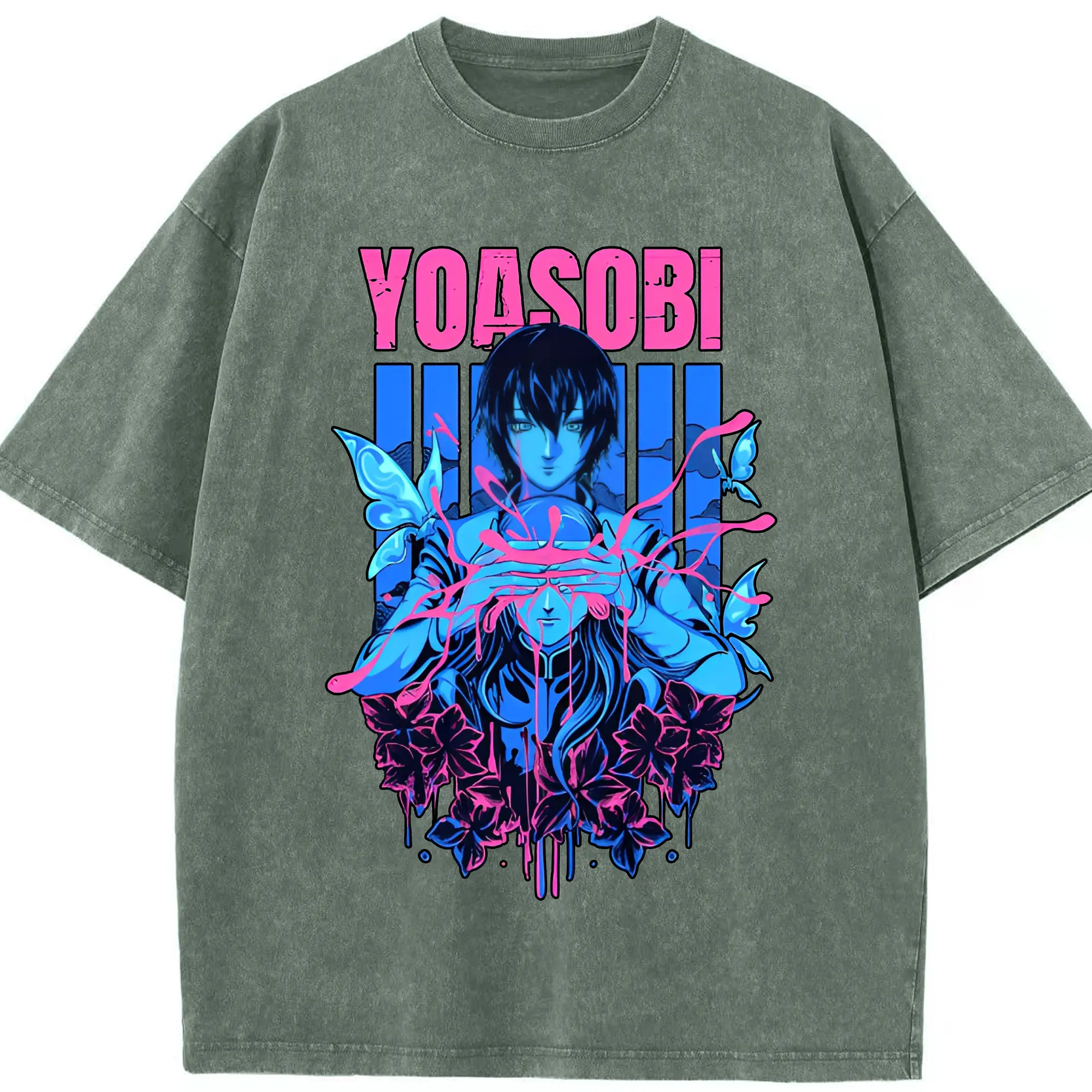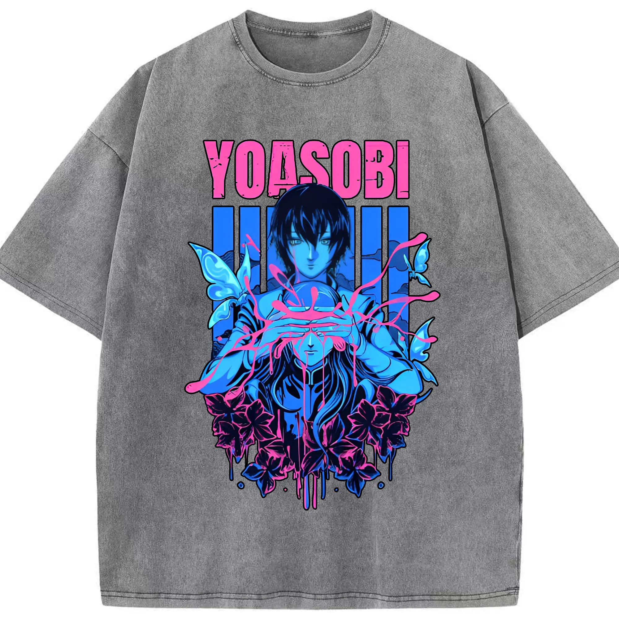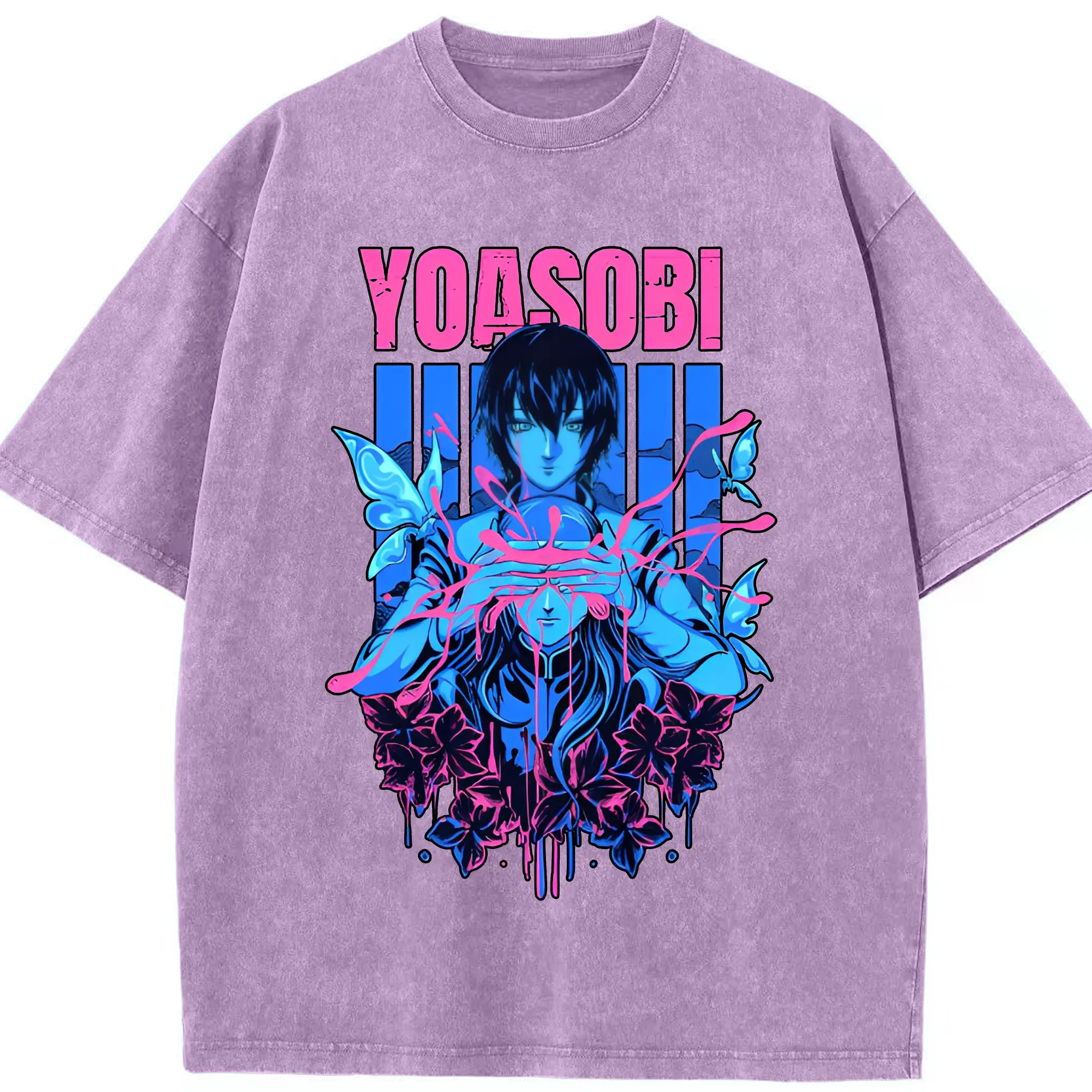 ヨアソビYOASOBI 夜に駆ける - 綿100% 半袖Tシャツ ・ フロントプリント ・ 快適 通気性 ・ 日常使い 散歩 スポーツ用