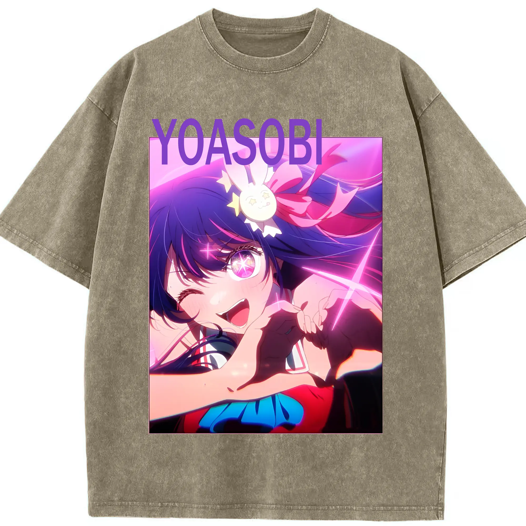 ヨアソビYOASOBI 幾田りら - 綿100% ヴィンテージ風 半袖Tシャツ ・ フロントプリント ・ 柔らか肌触り ・ 通気性 快適 ・ スポーツ カジュアル 外出用