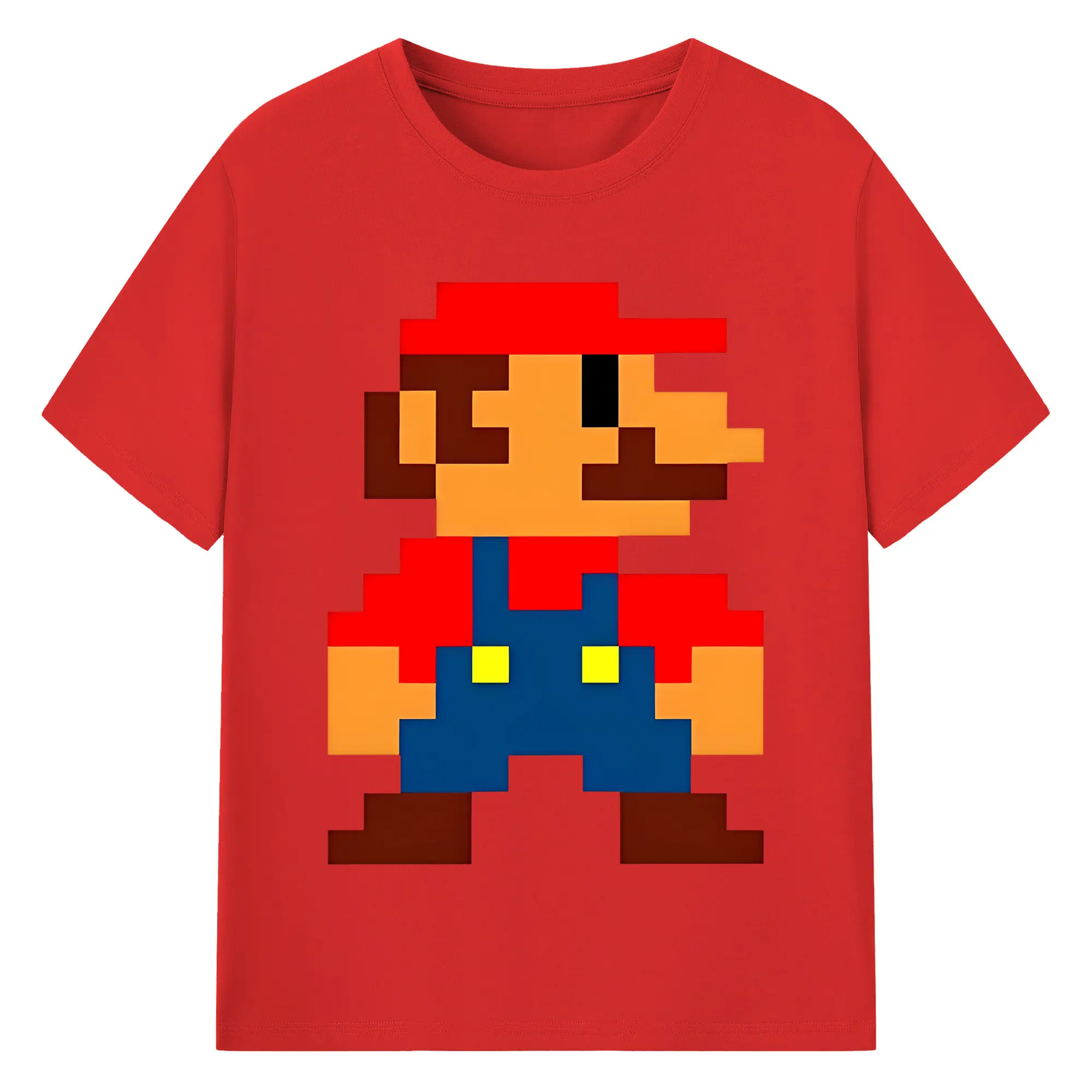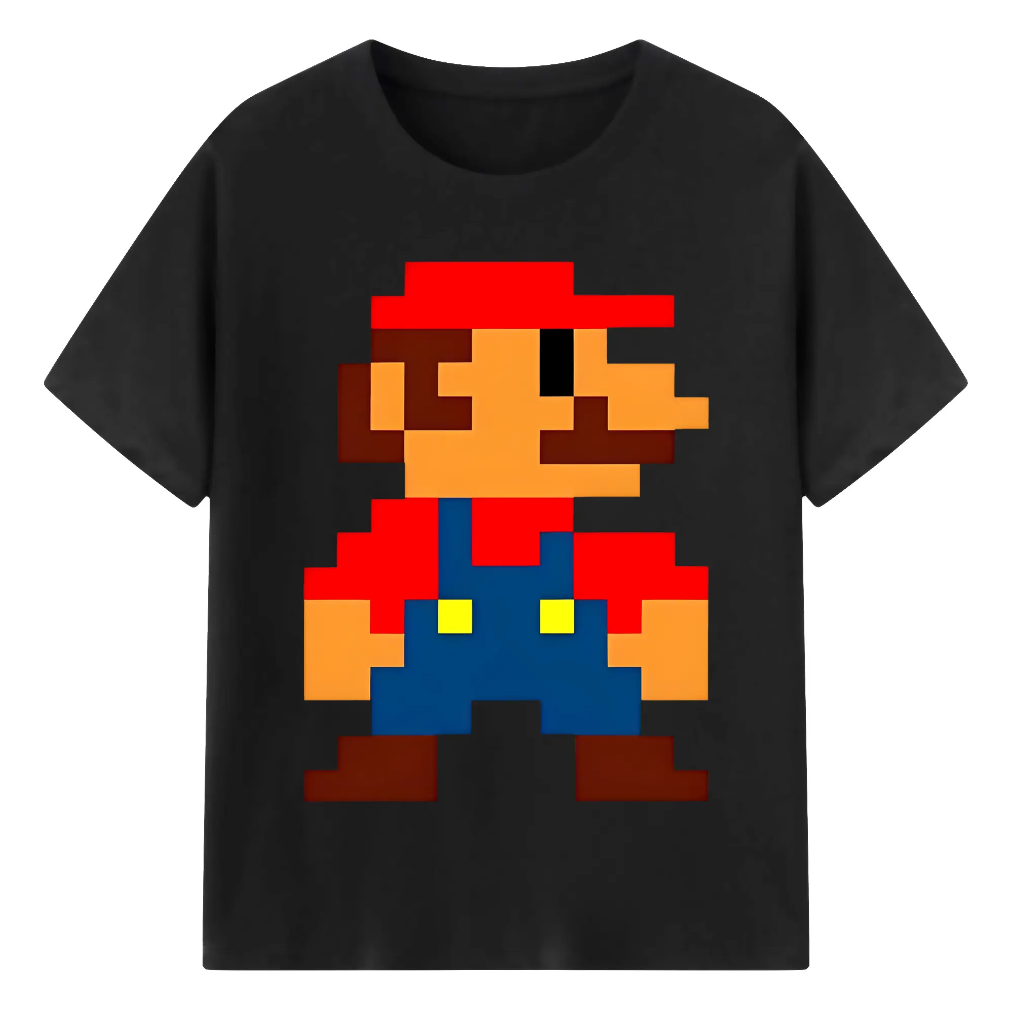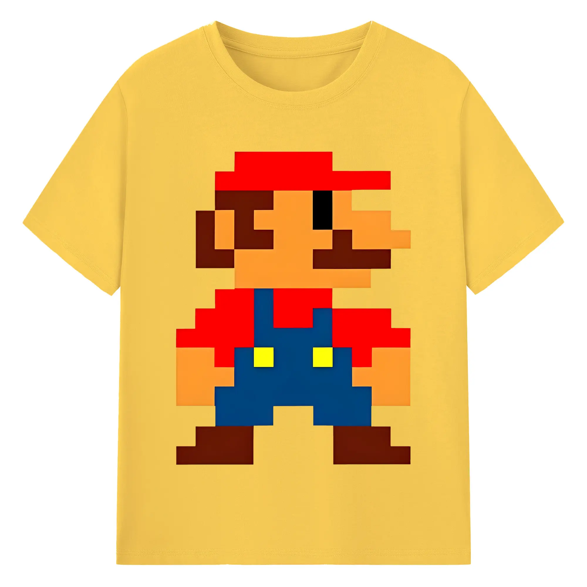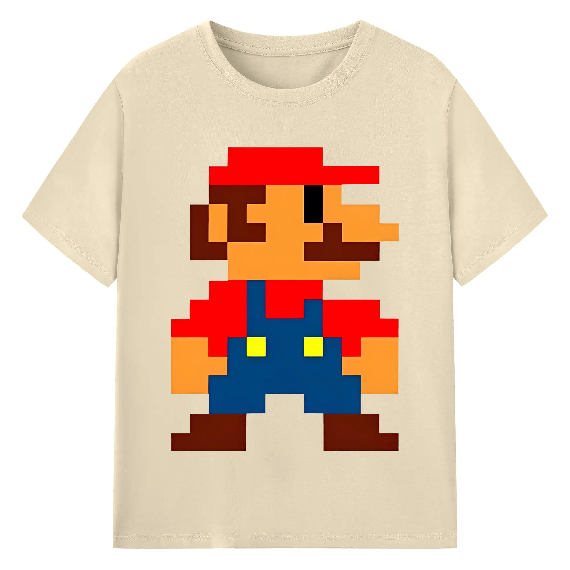 レトロゲーム風 スーパーマリオブラザーズ 8bit - 綿100% ヴィンテージ風 半袖Tシャツ ・ フロントプリント ・ 柔らか肌触り ・ 通気性 快適 ・ スポーツ カジュアル 外出用