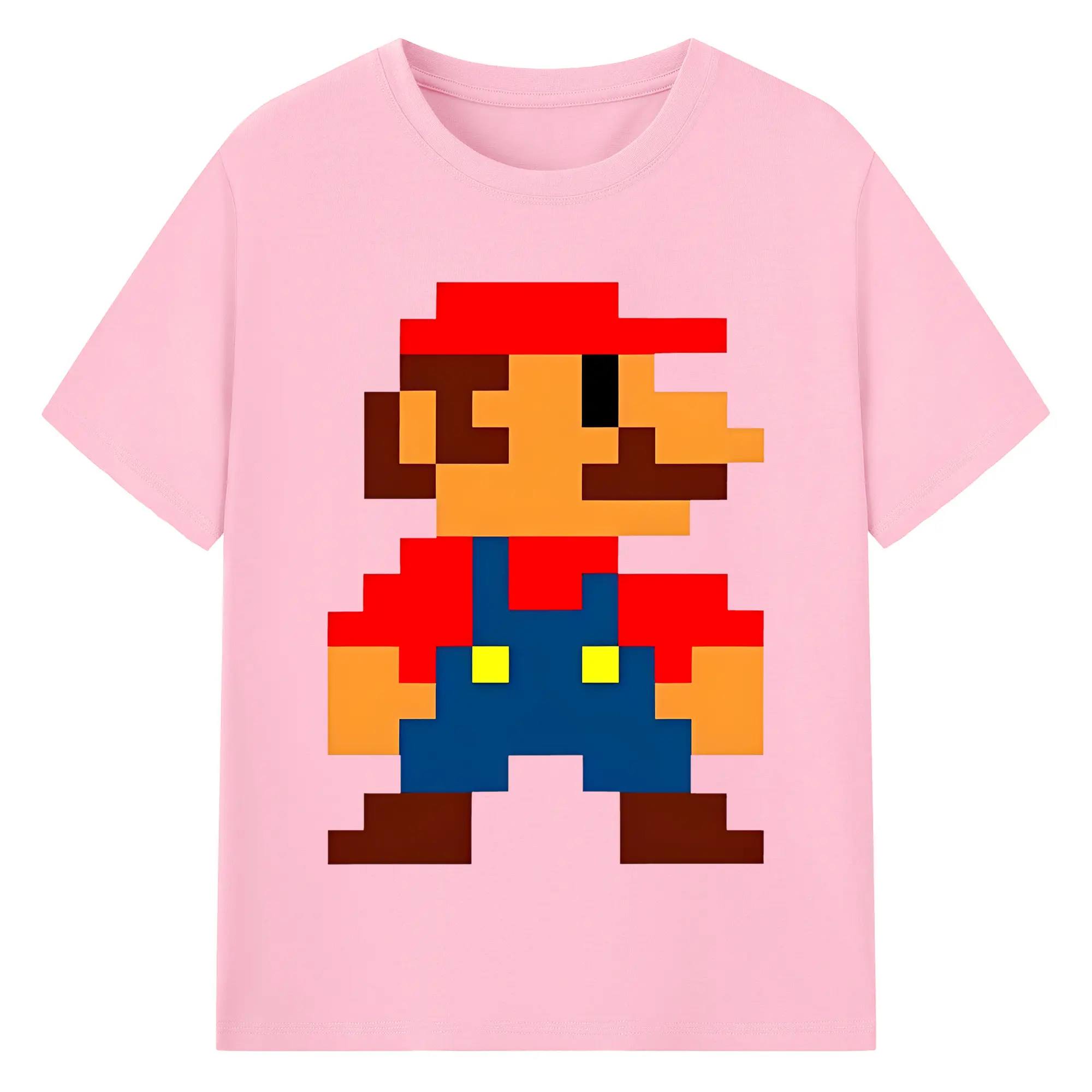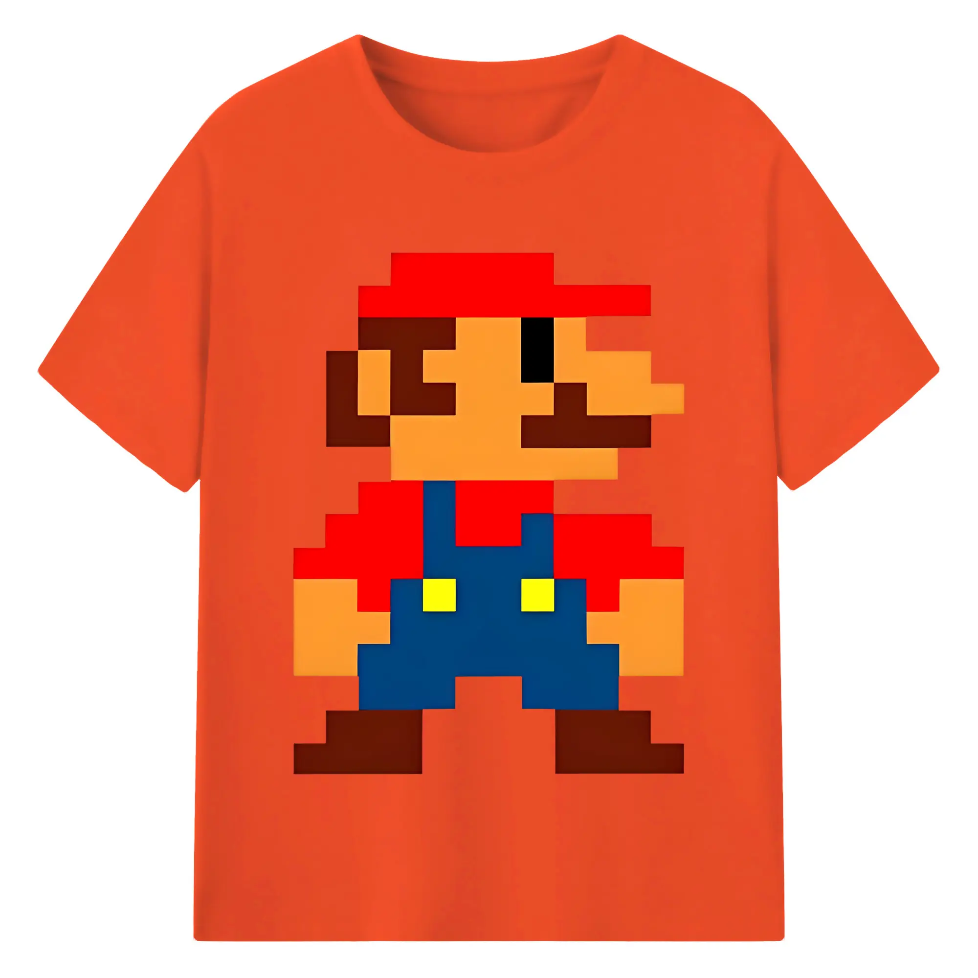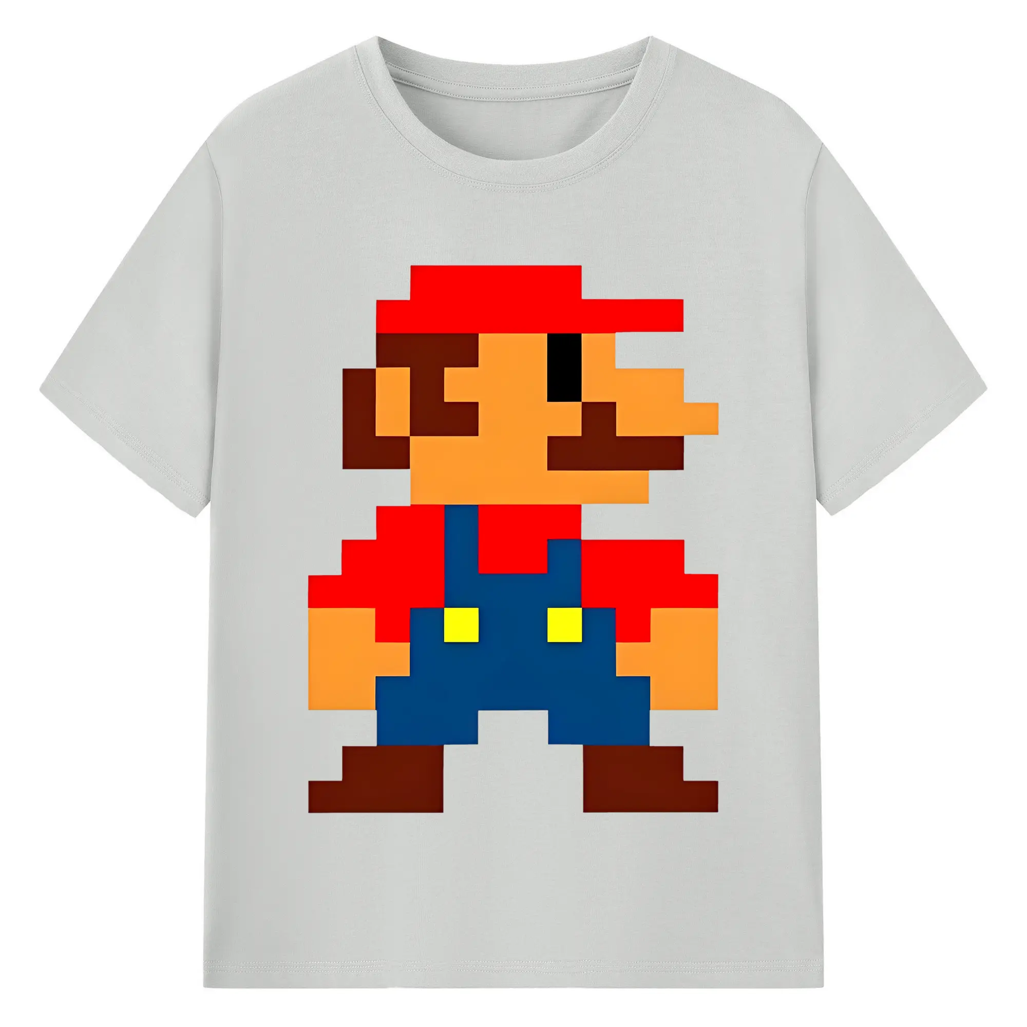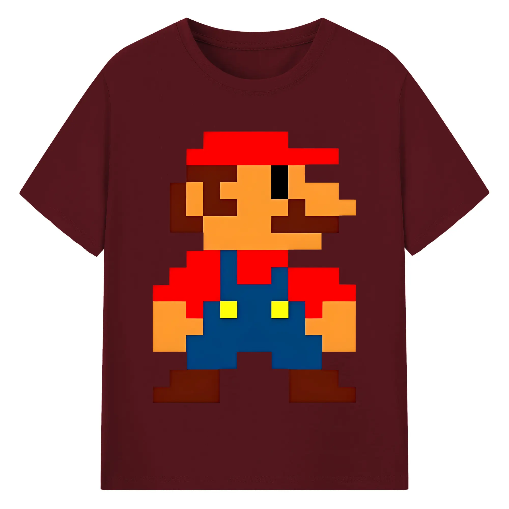 レトロゲーム風 スーパーマリオブラザーズ 8bit - 綿100% ヴィンテージ風 半袖Tシャツ ・ フロントプリント ・ 柔らか肌触り ・ 通気性 快適 ・ スポーツ カジュアル 外出用