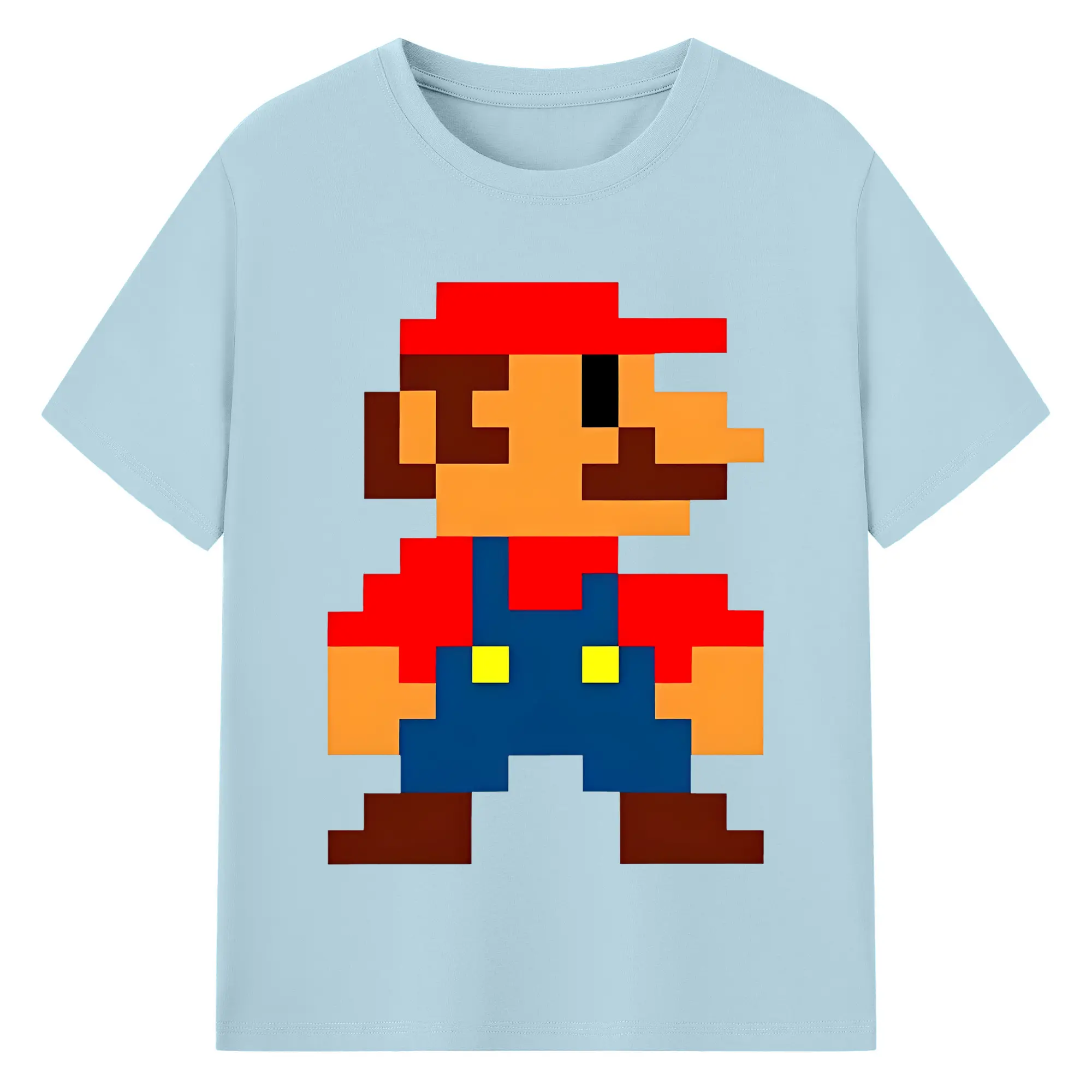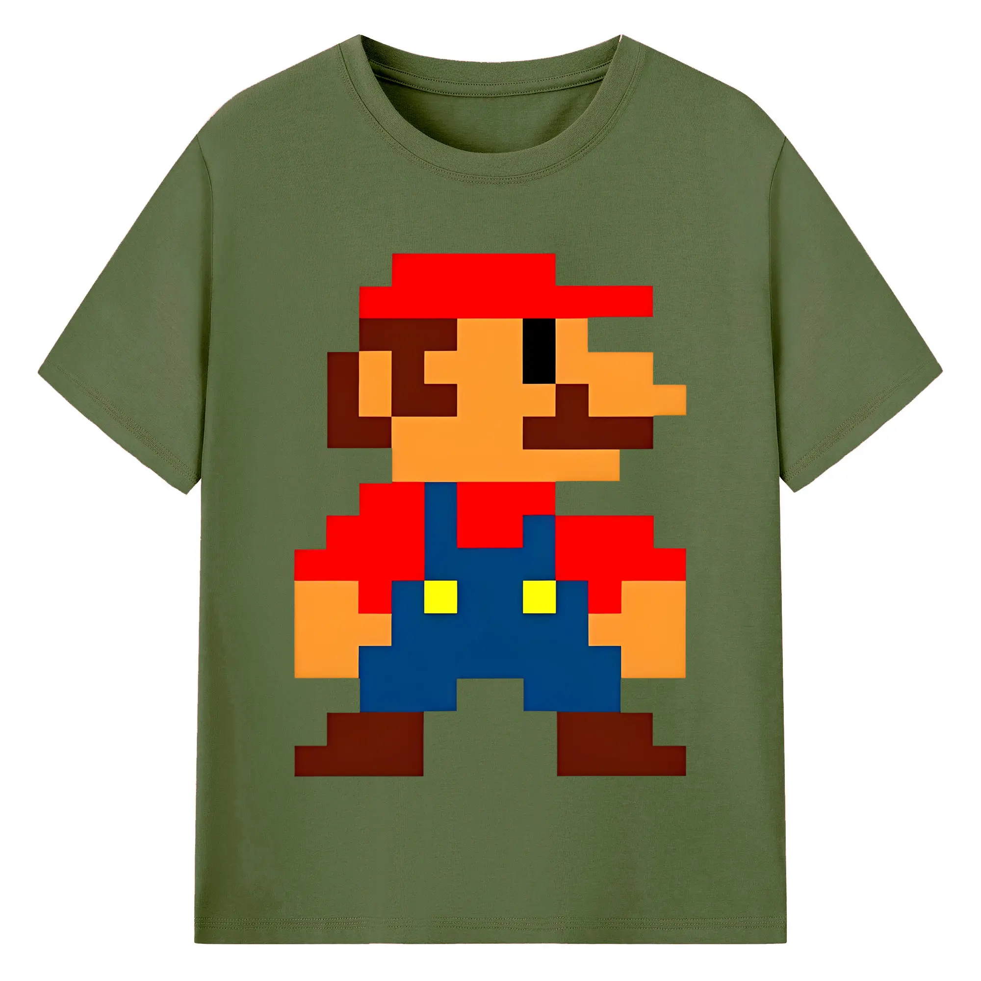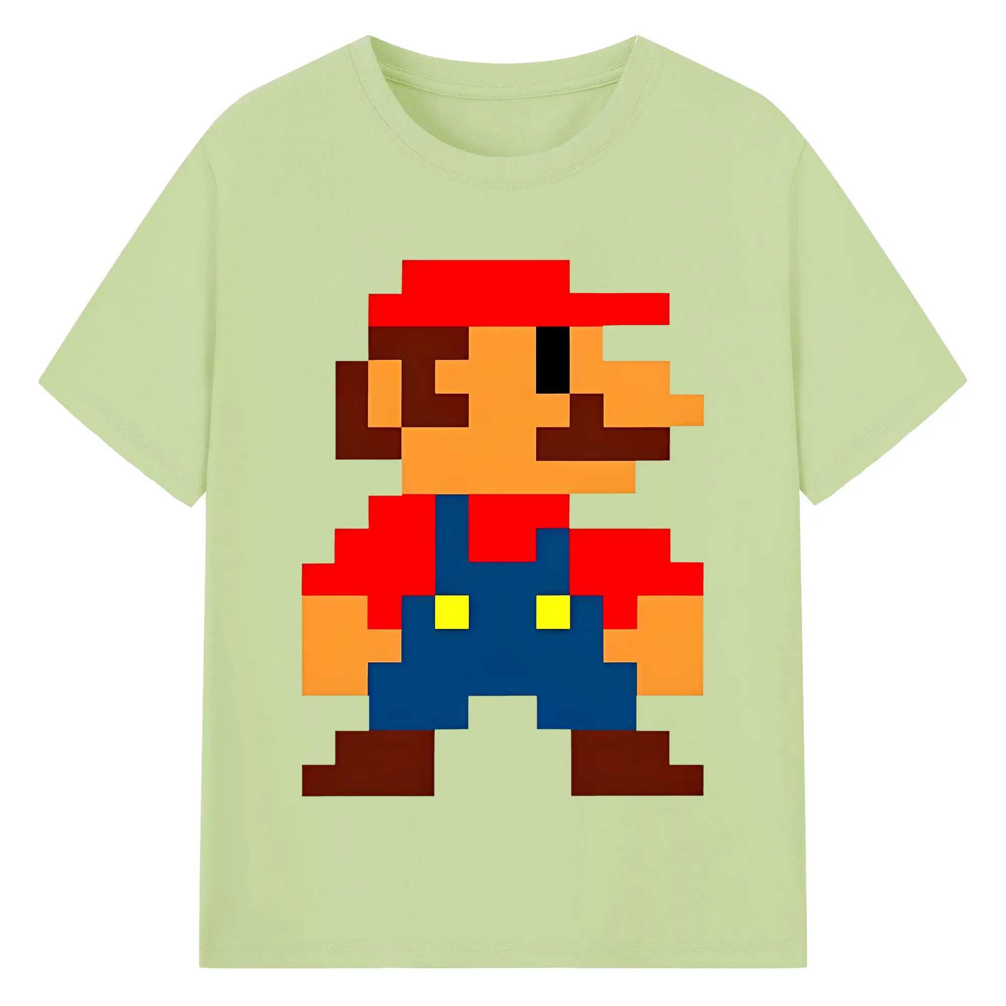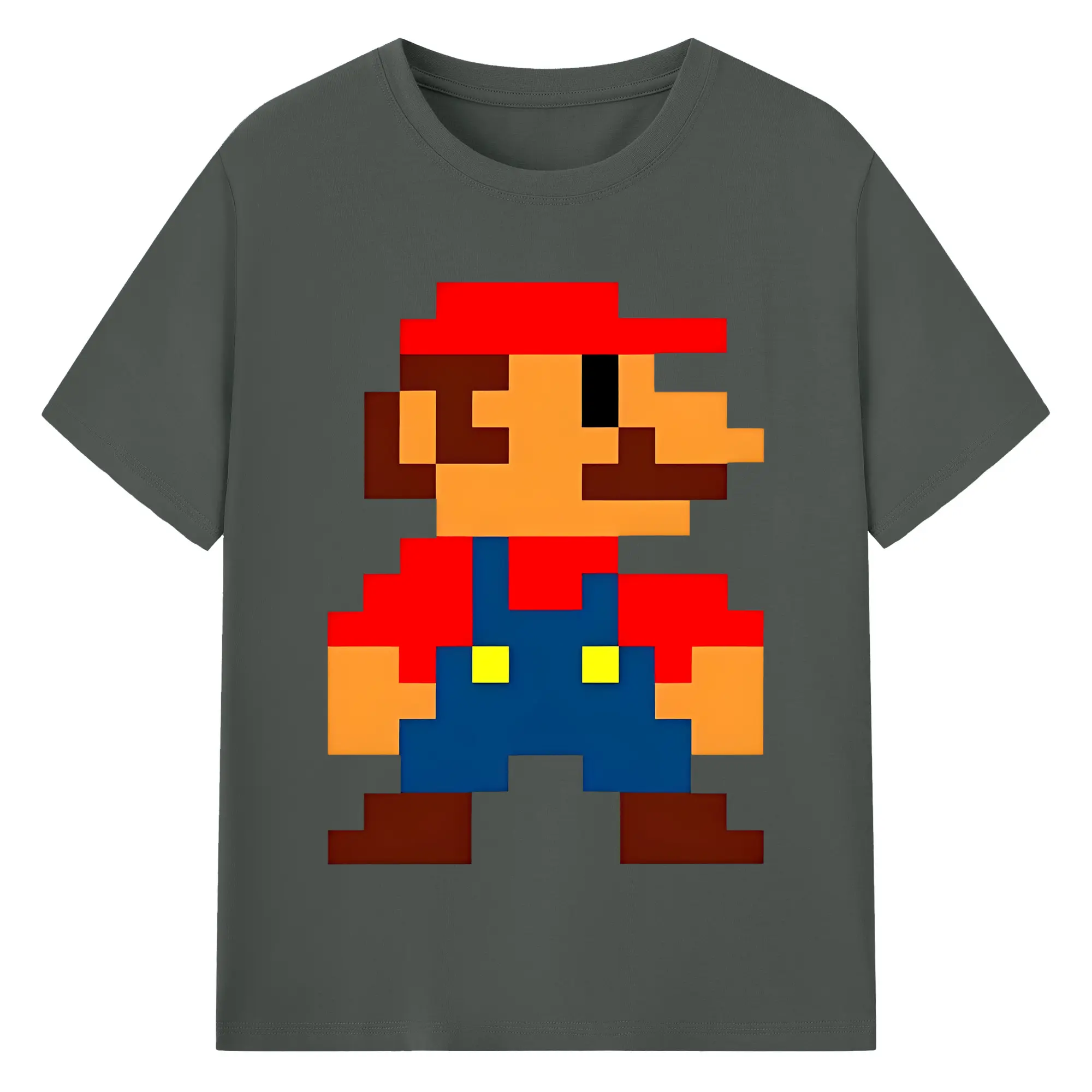 レトロゲーム風 スーパーマリオブラザーズ 8bit - 綿100% ヴィンテージ風 半袖Tシャツ ・ フロントプリント ・ 柔らか肌触り ・ 通気性 快適 ・ スポーツ カジュアル 外出用