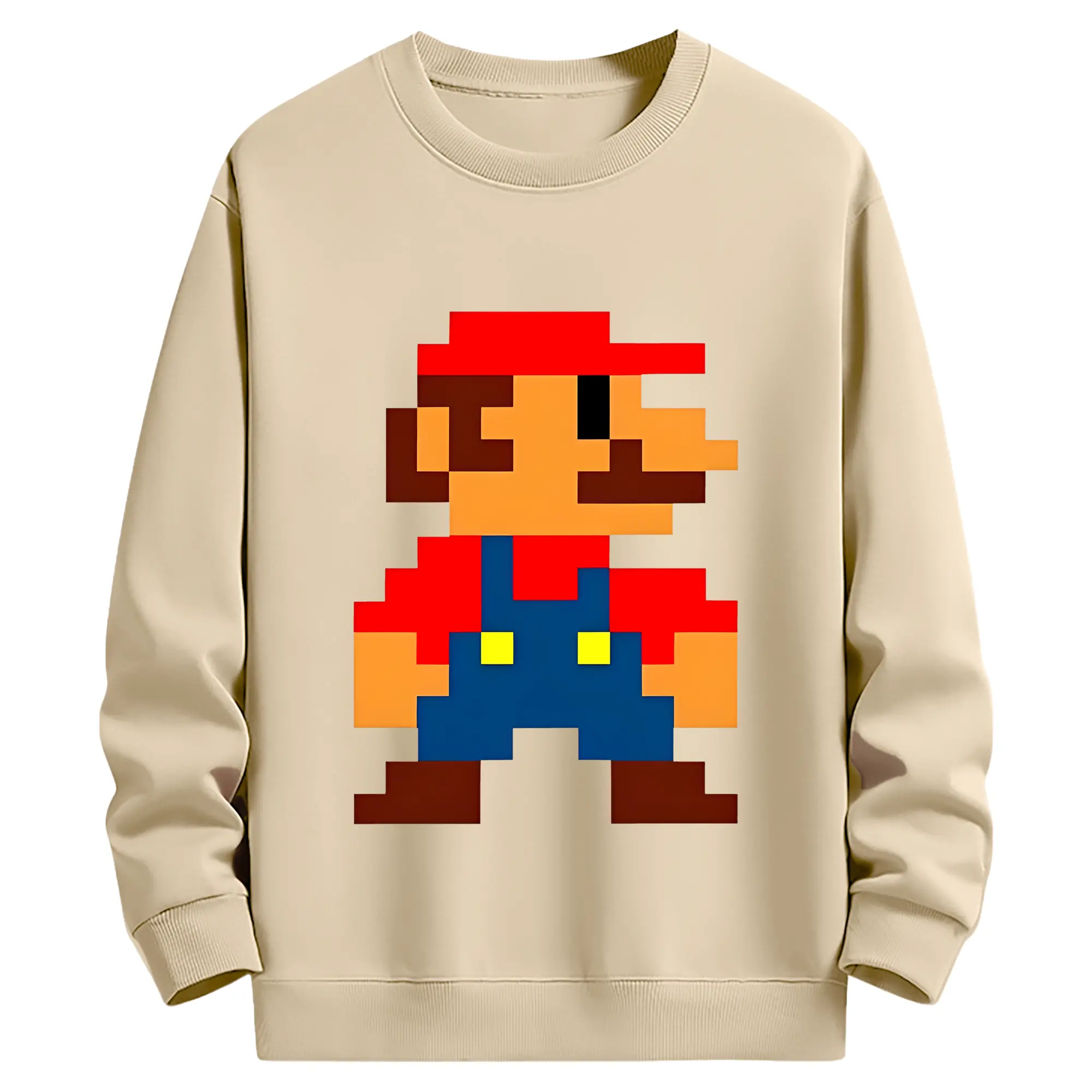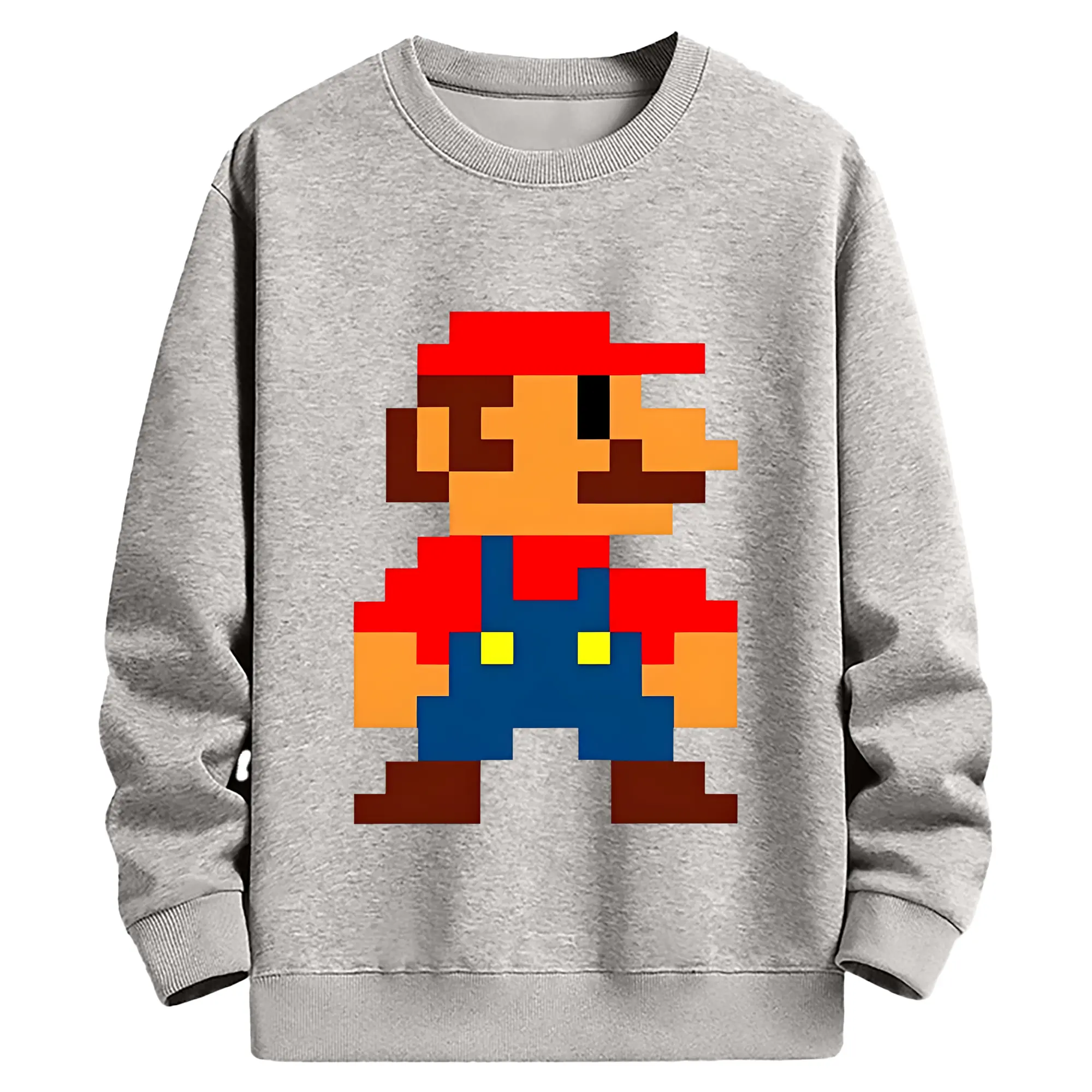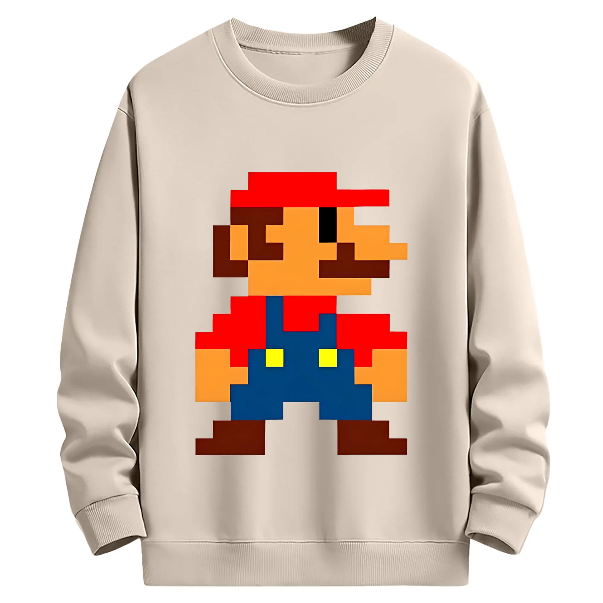 スーパーマリオ 8ビット 限定グラフィック - 高品質 クルーネック スウェット ・ コットン59% ポリエステル41% ・ ユニセックス 長袖 トレーナー ・ カジュアル デイリー スポーツ 散歩用