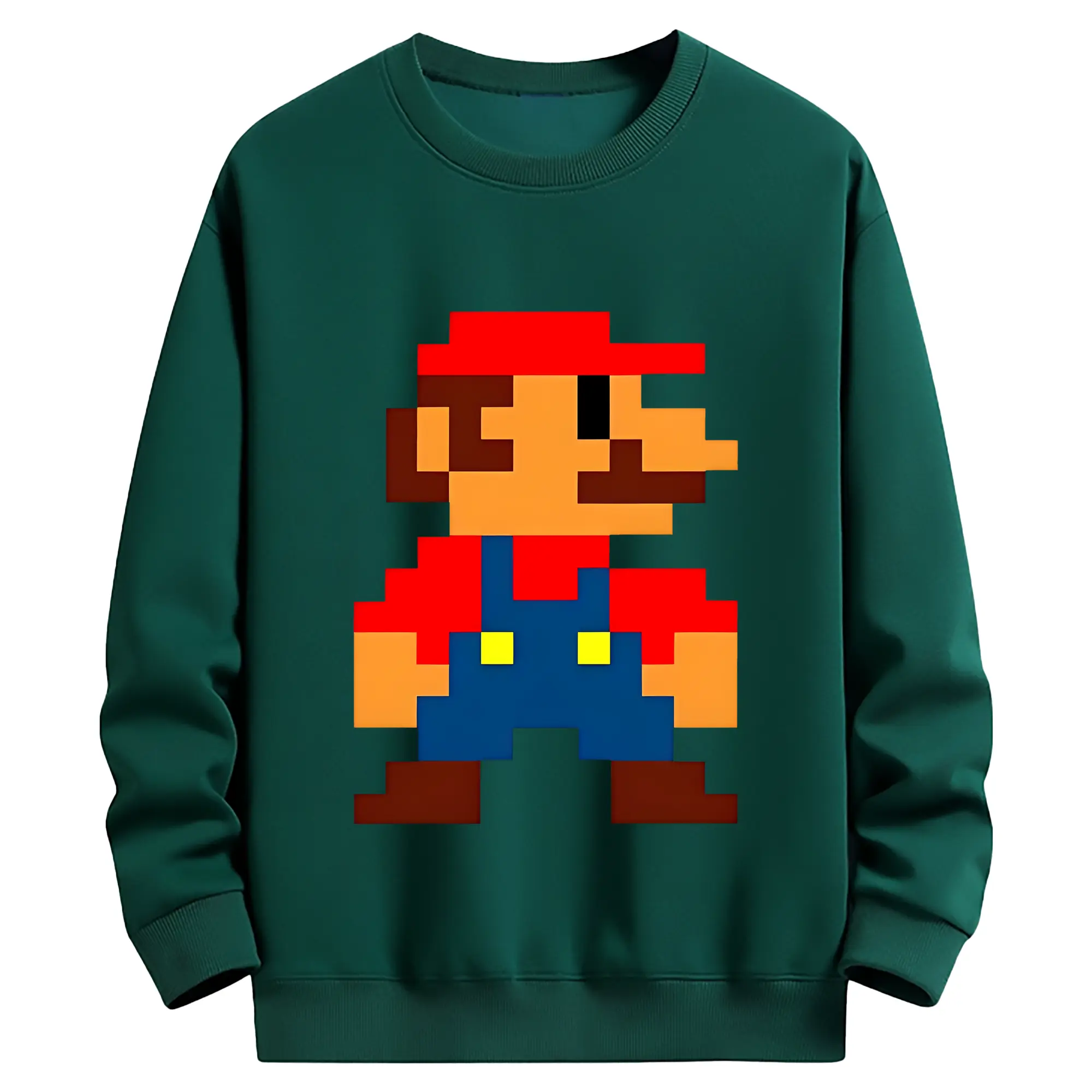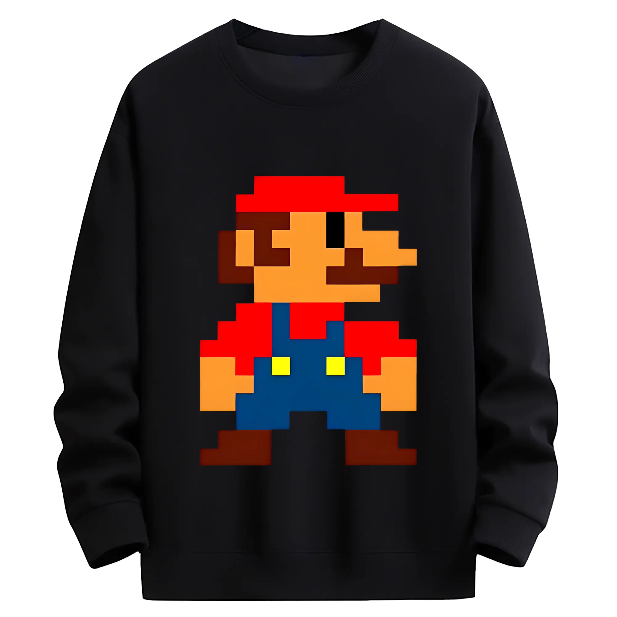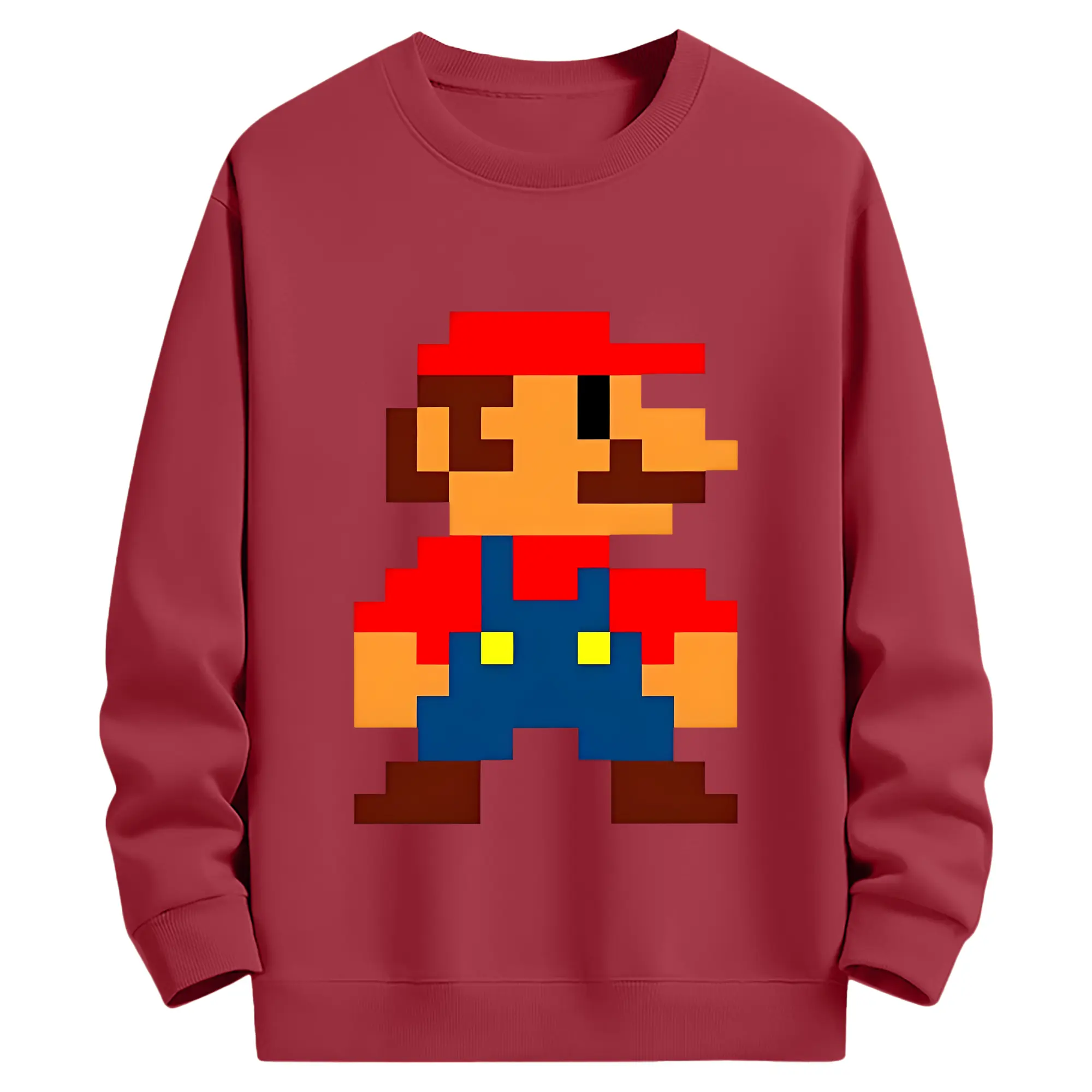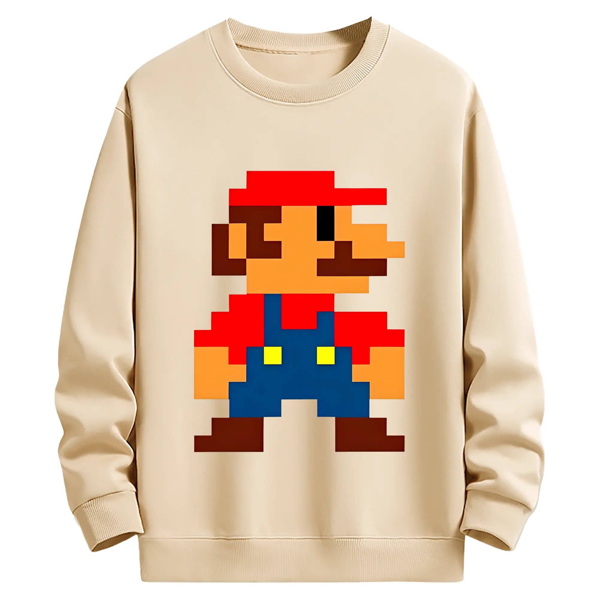 スーパーマリオ 8ビット 限定グラフィック - 高品質 クルーネック スウェット ・ コットン59% ポリエステル41% ・ ユニセックス 長袖 トレーナー ・ カジュアル デイリー スポーツ 散歩用
