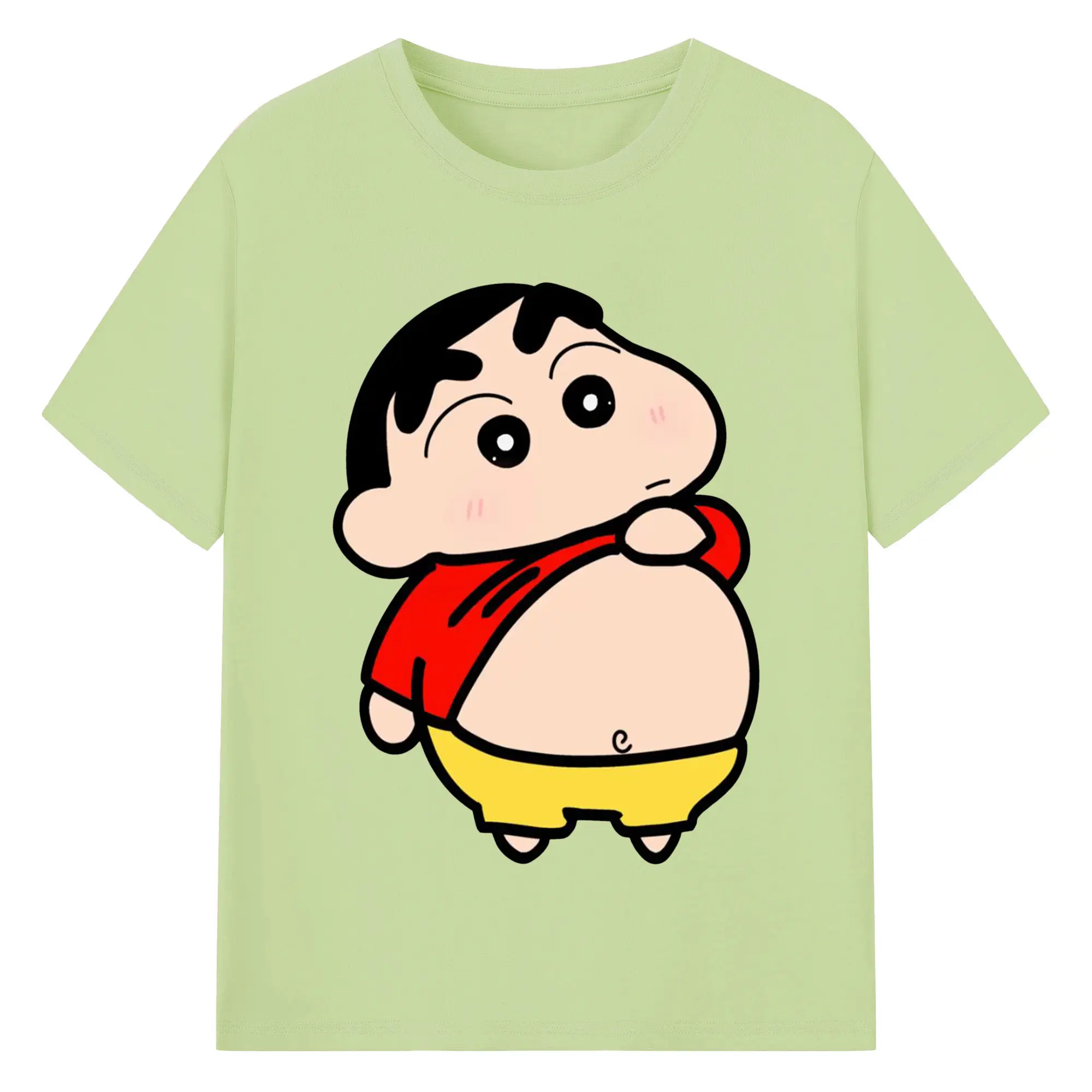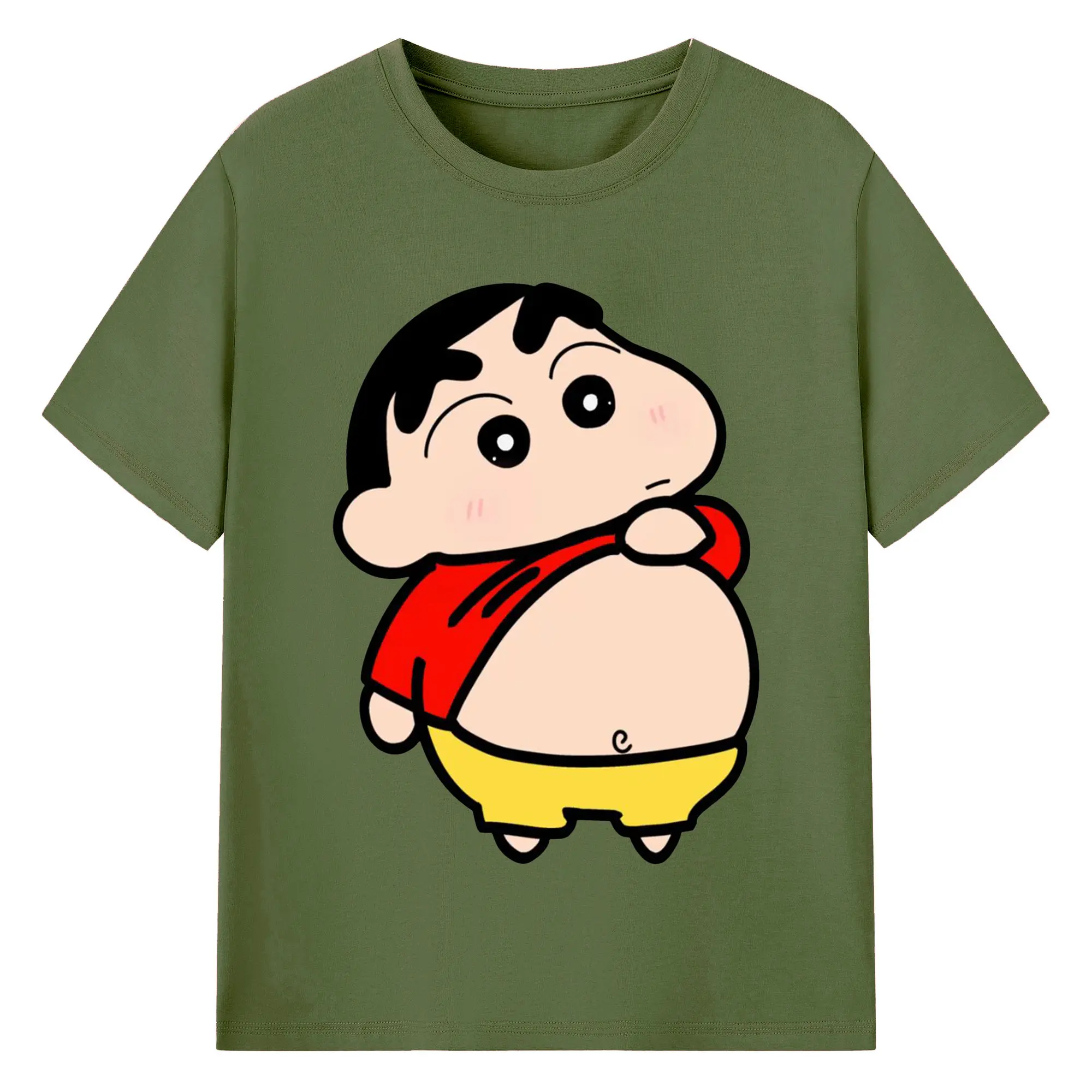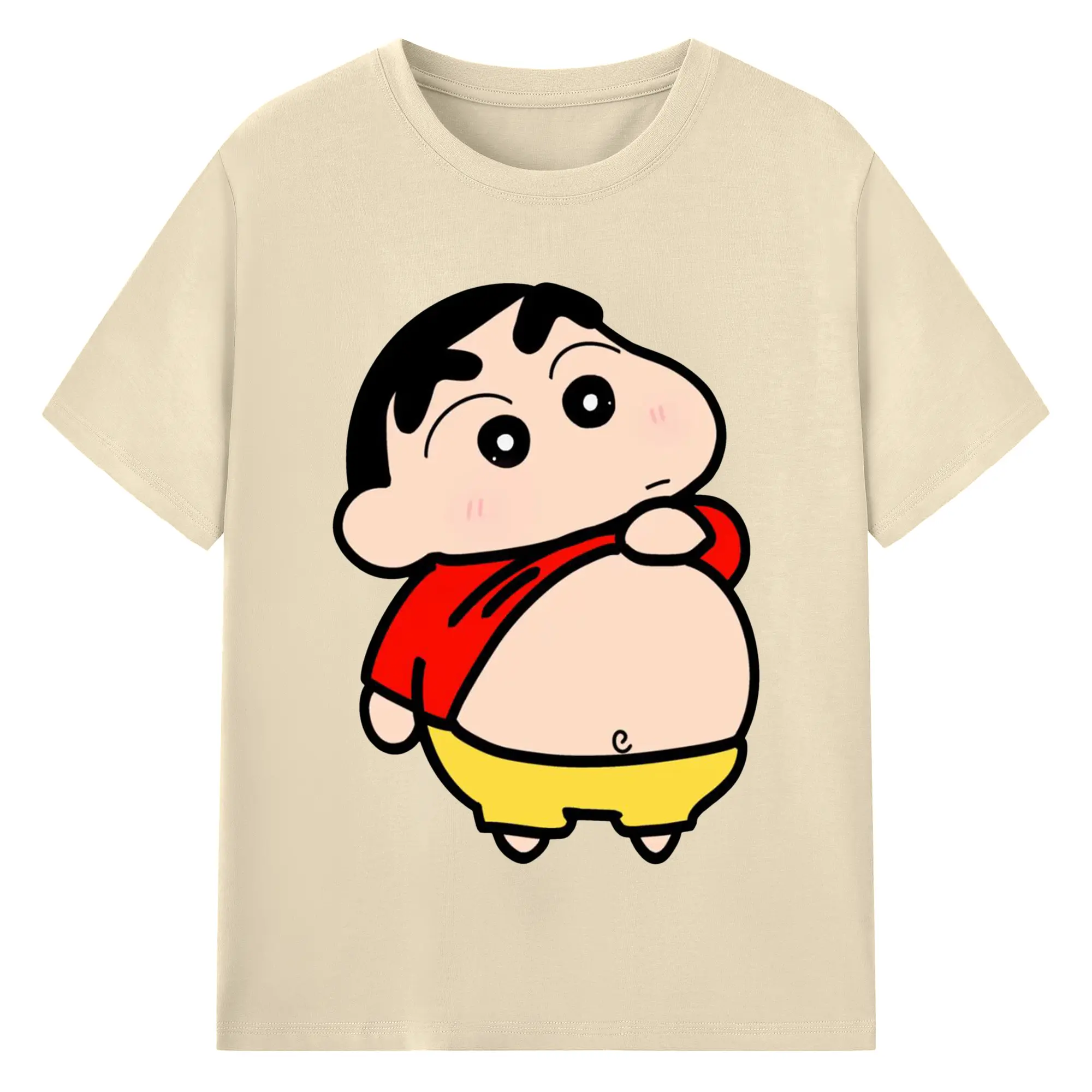 レヨンしんちゃん おなかチェック おもしろ - 綿100% ヴィンテージ風 半袖Tシャツ ・ フロントプリント ・ 柔らか肌触り ・ 通気性 快適 ・ スポーツ カジュアル 外出用