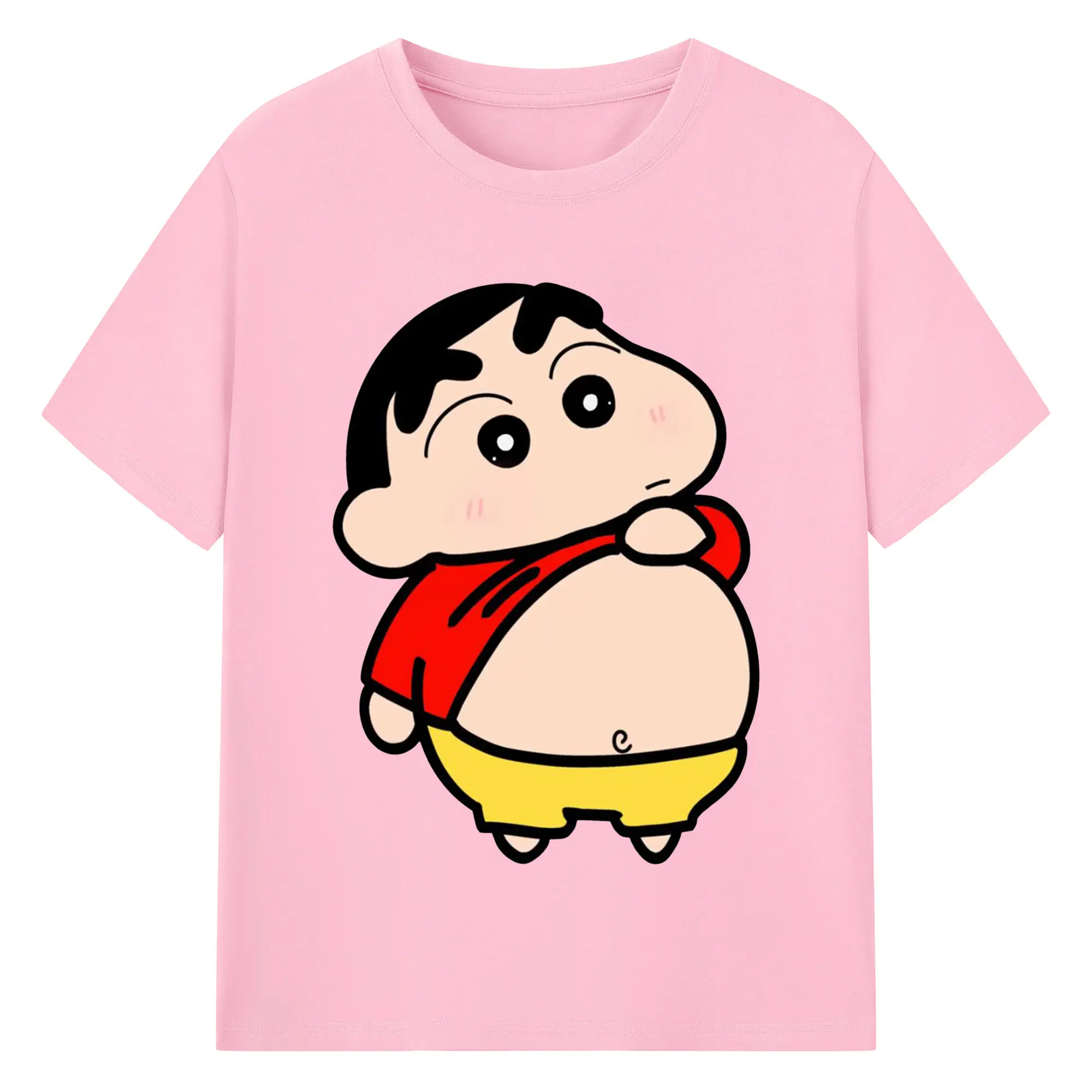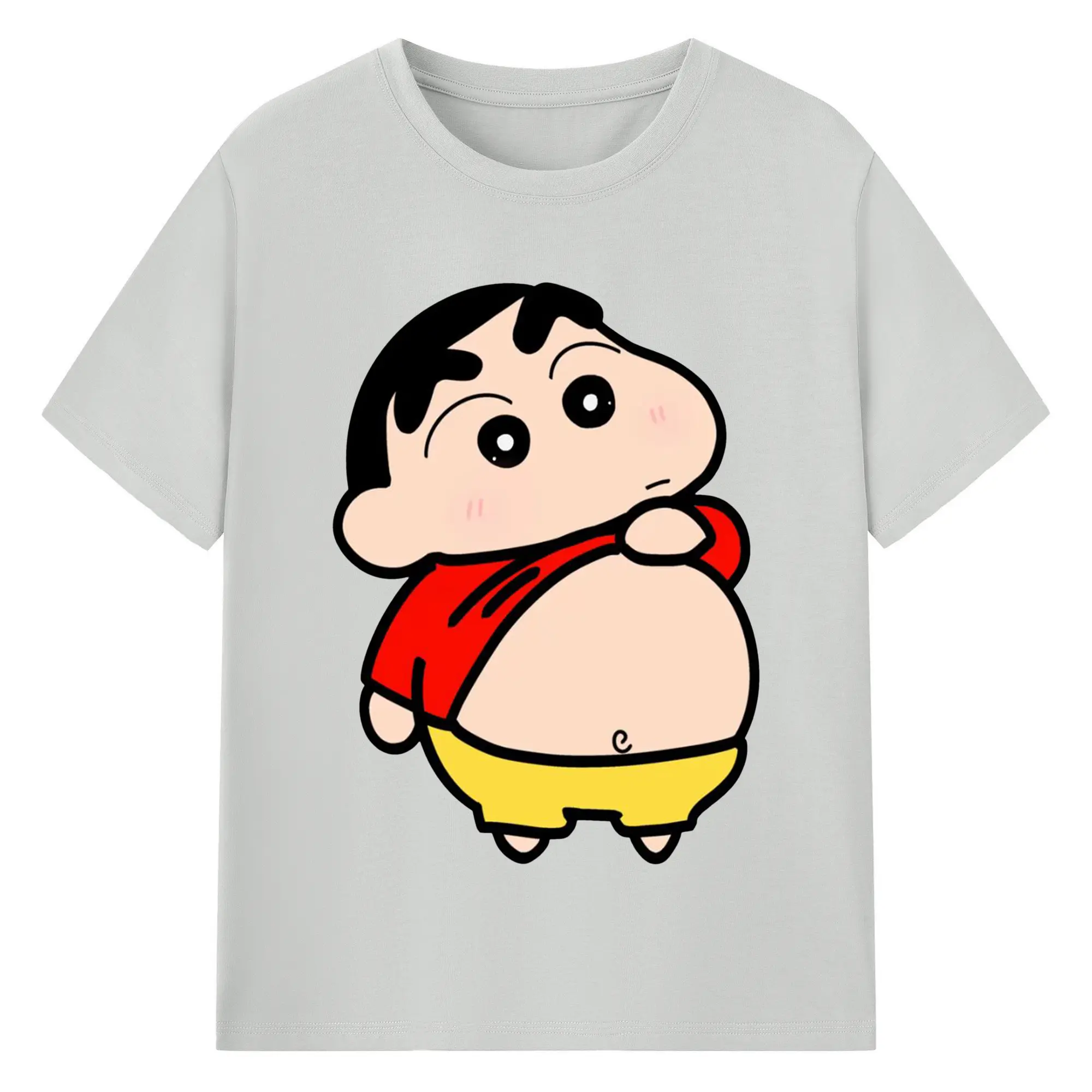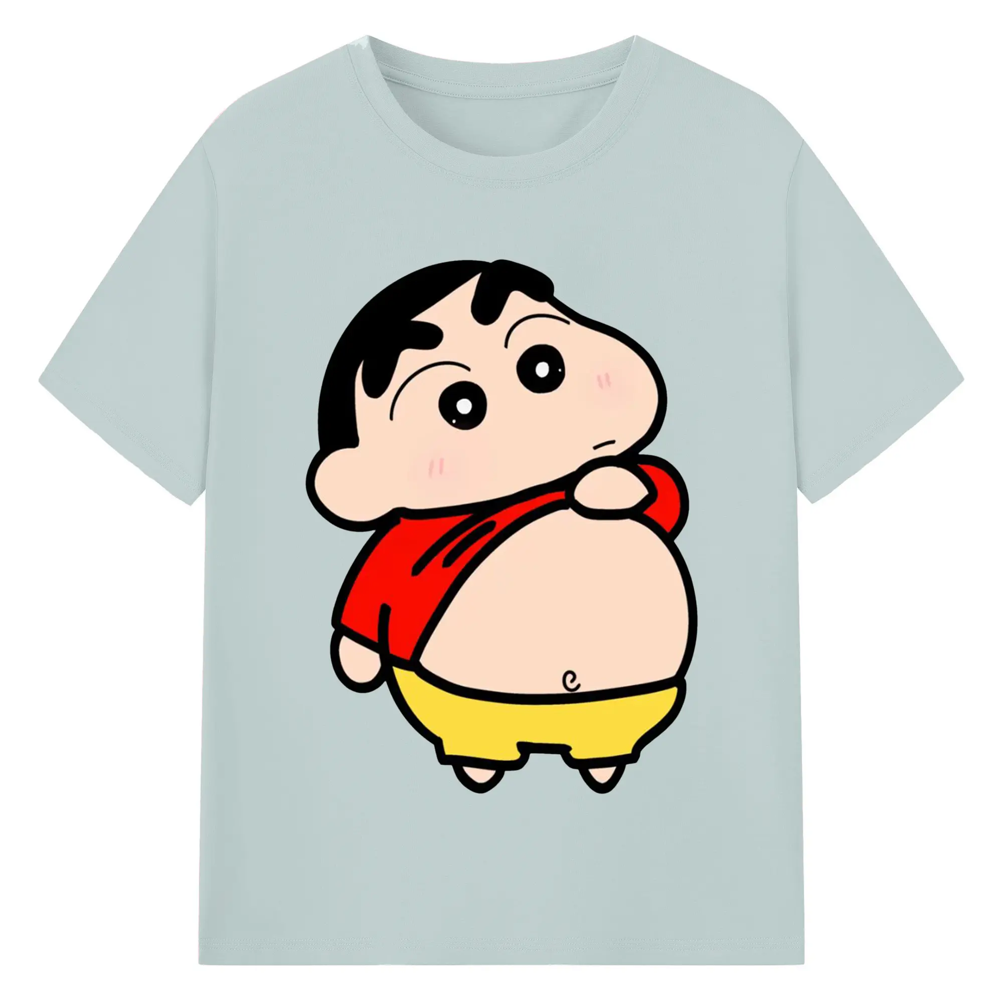 レヨンしんちゃん おなかチェック おもしろ - 綿100% ヴィンテージ風 半袖Tシャツ ・ フロントプリント ・ 柔らか肌触り ・ 通気性 快適 ・ スポーツ カジュアル 外出用