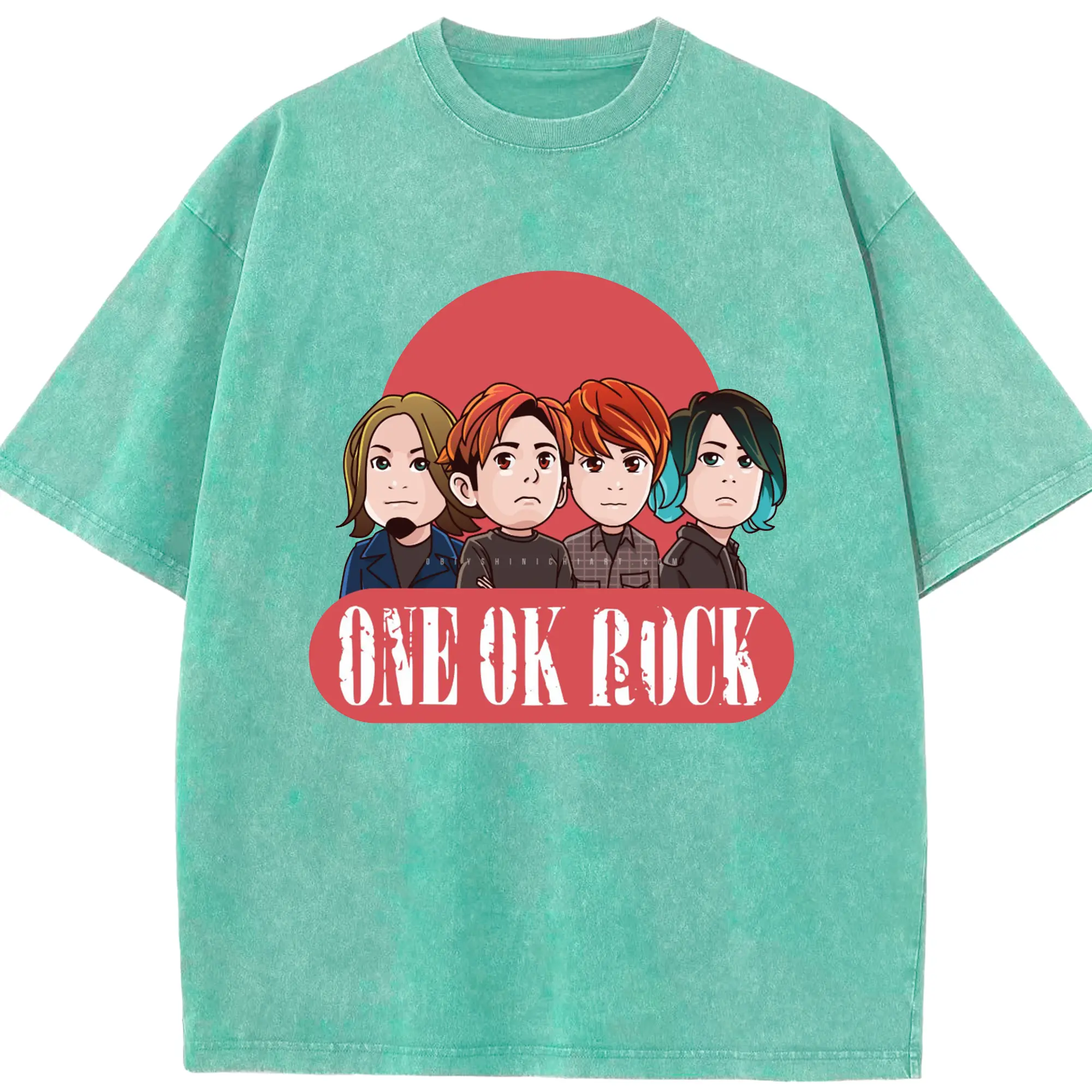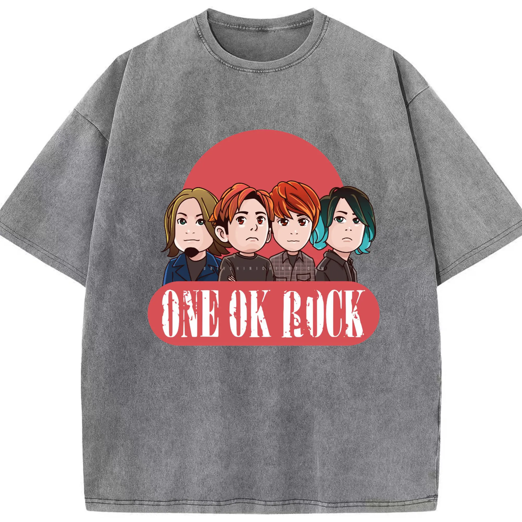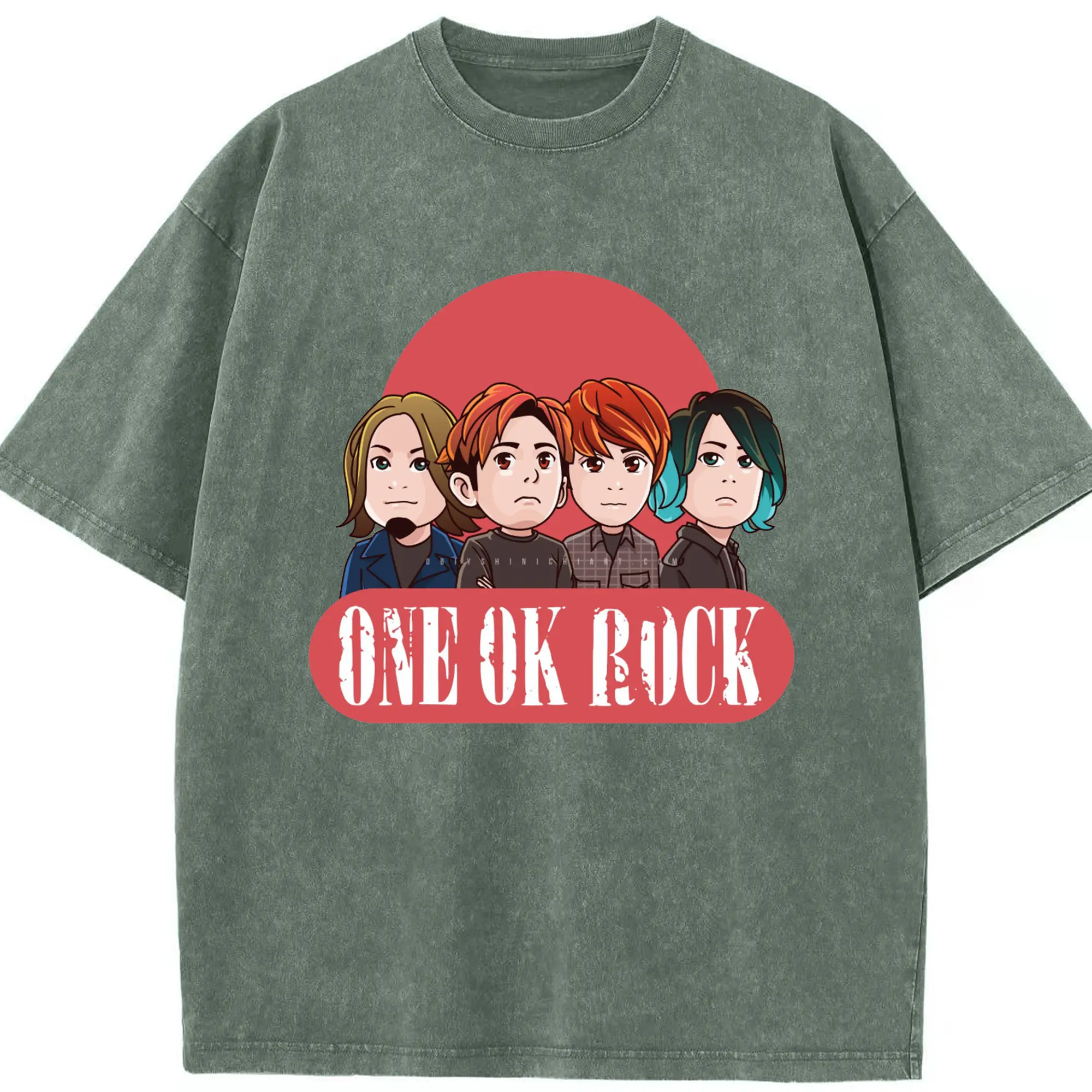ワンオクロックニューアルバム「DETOX」 - 綿100% ヴィンテージ風 半袖Tシャツ ・ フロントプリント ・ 柔らか肌触り ・ 通気性 快適 ・ スポーツ カジュアル 外出用