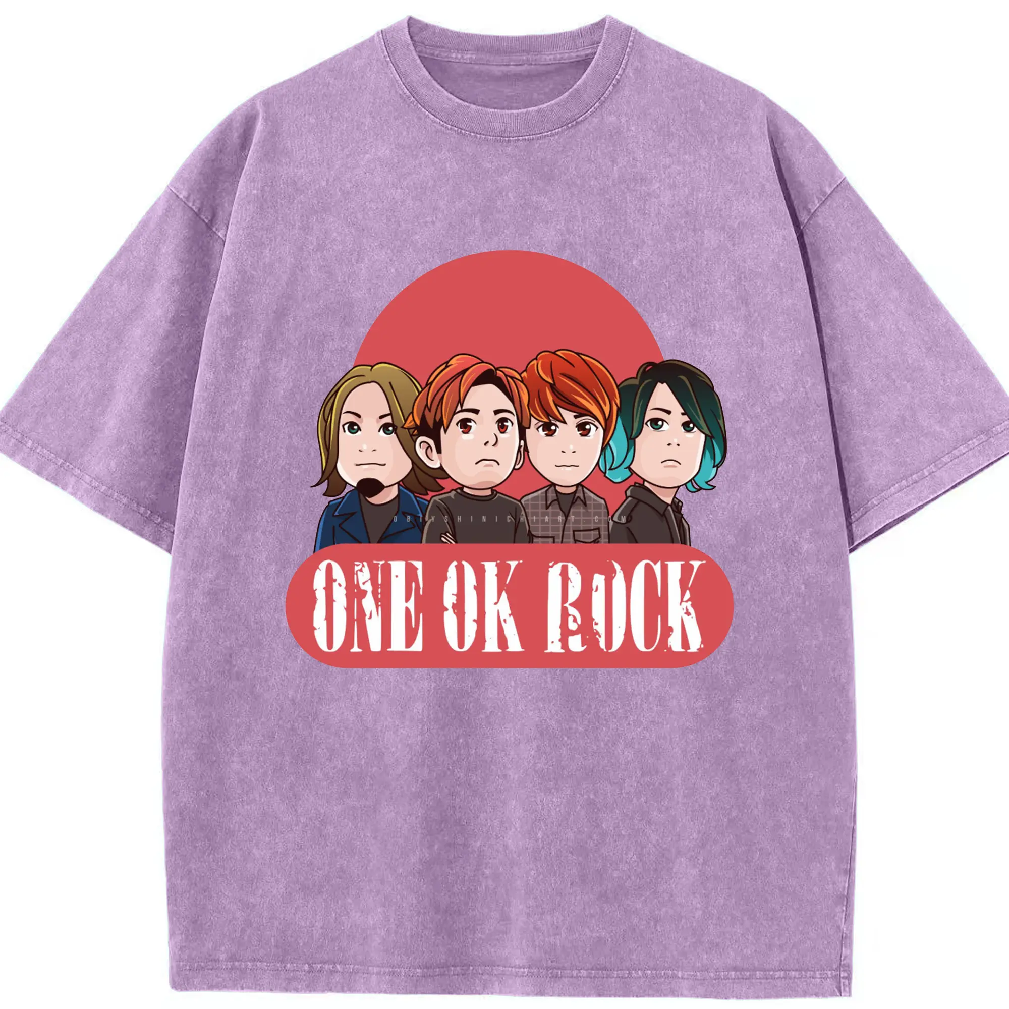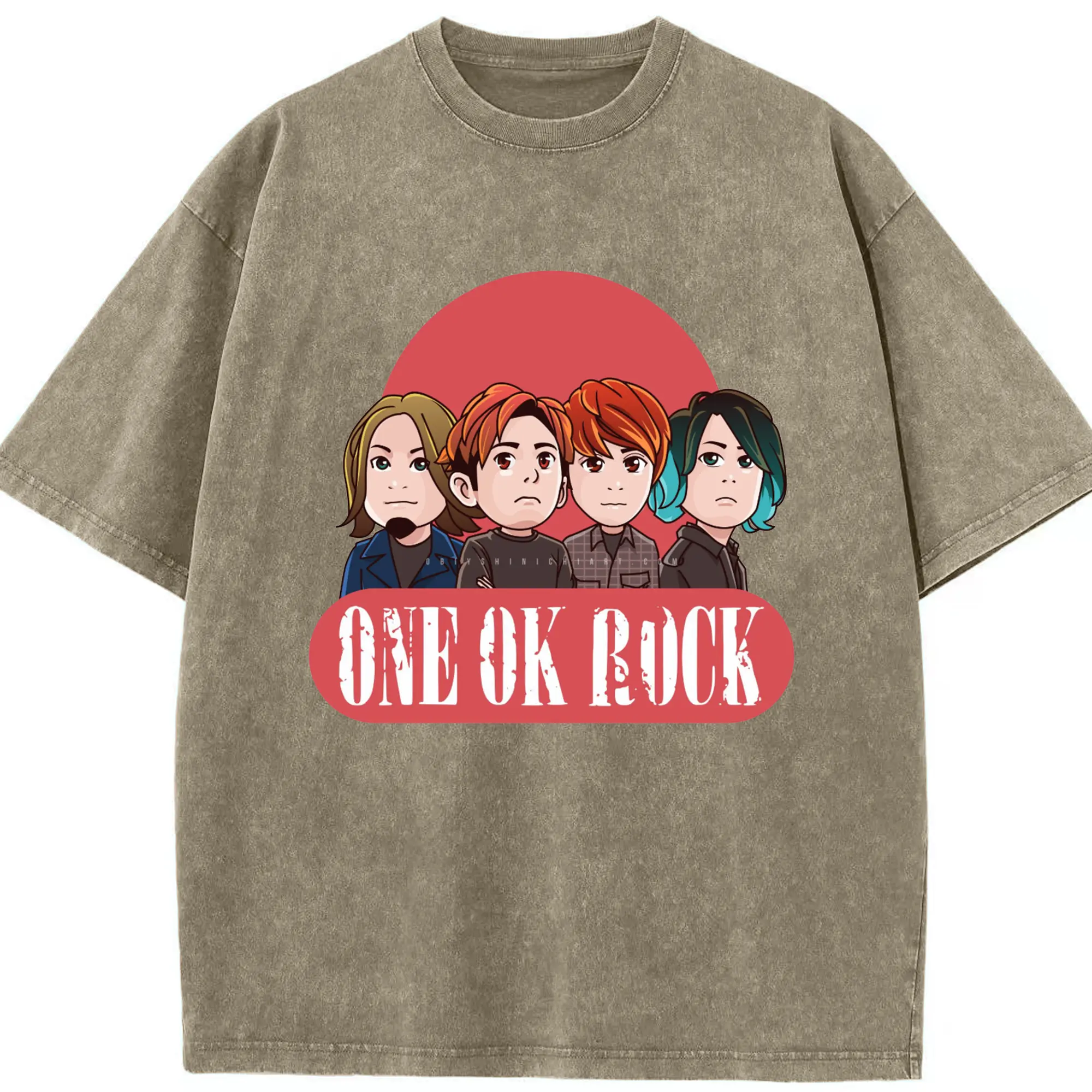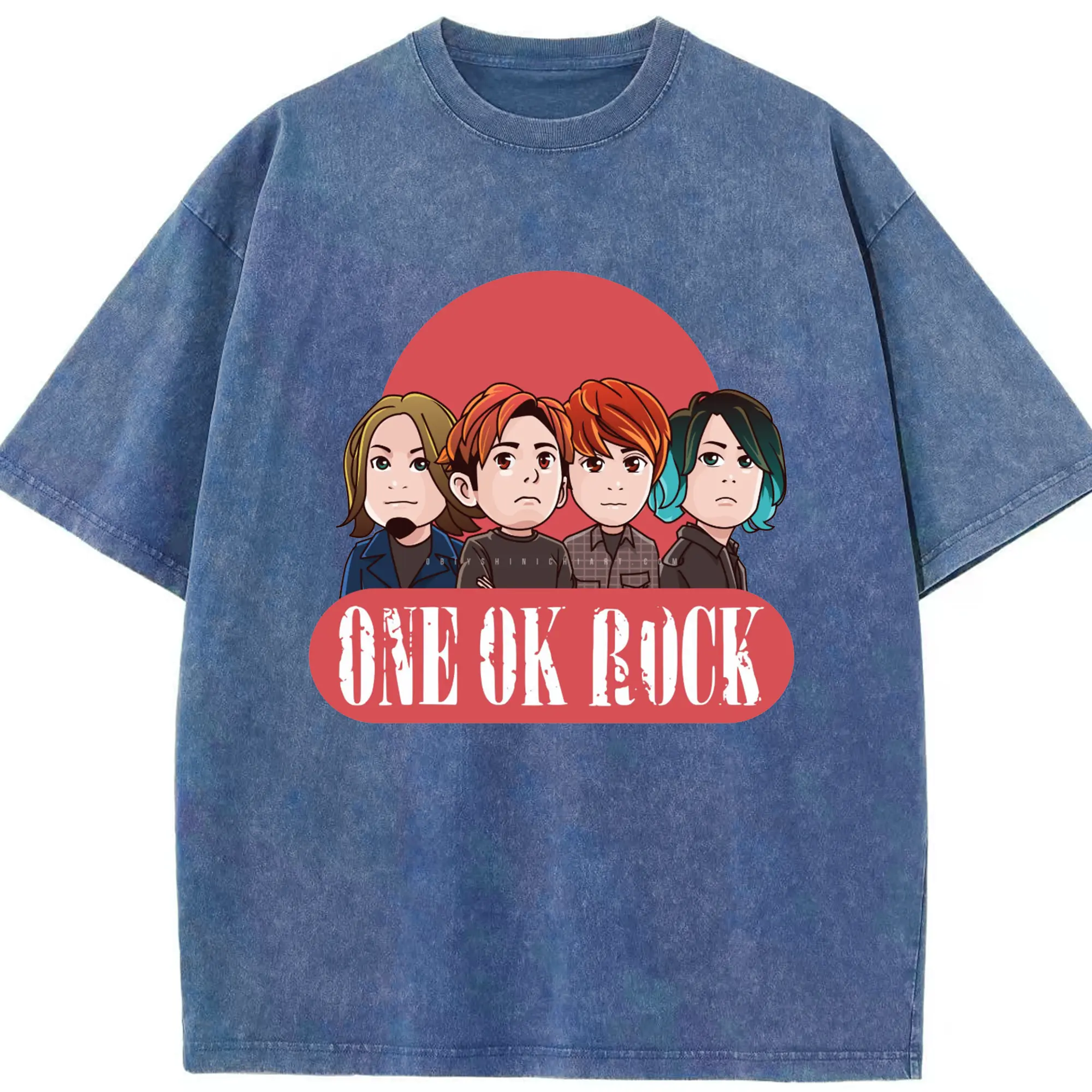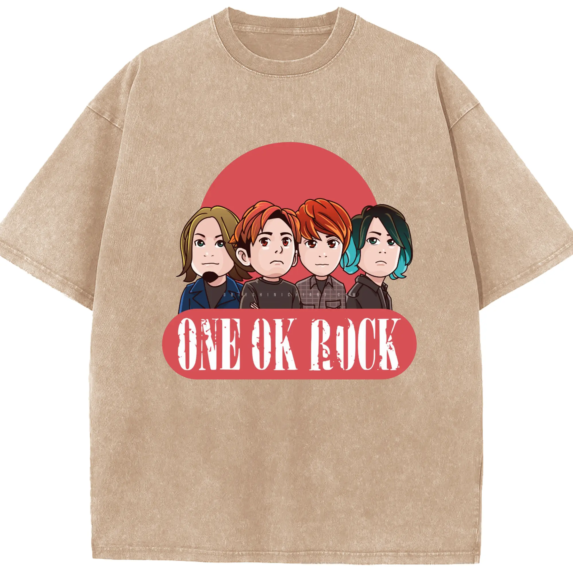 ワンオクロックニューアルバム「DETOX」 - 綿100% ヴィンテージ風 半袖Tシャツ ・ フロントプリント ・ 柔らか肌触り ・ 通気性 快適 ・ スポーツ カジュアル 外出用