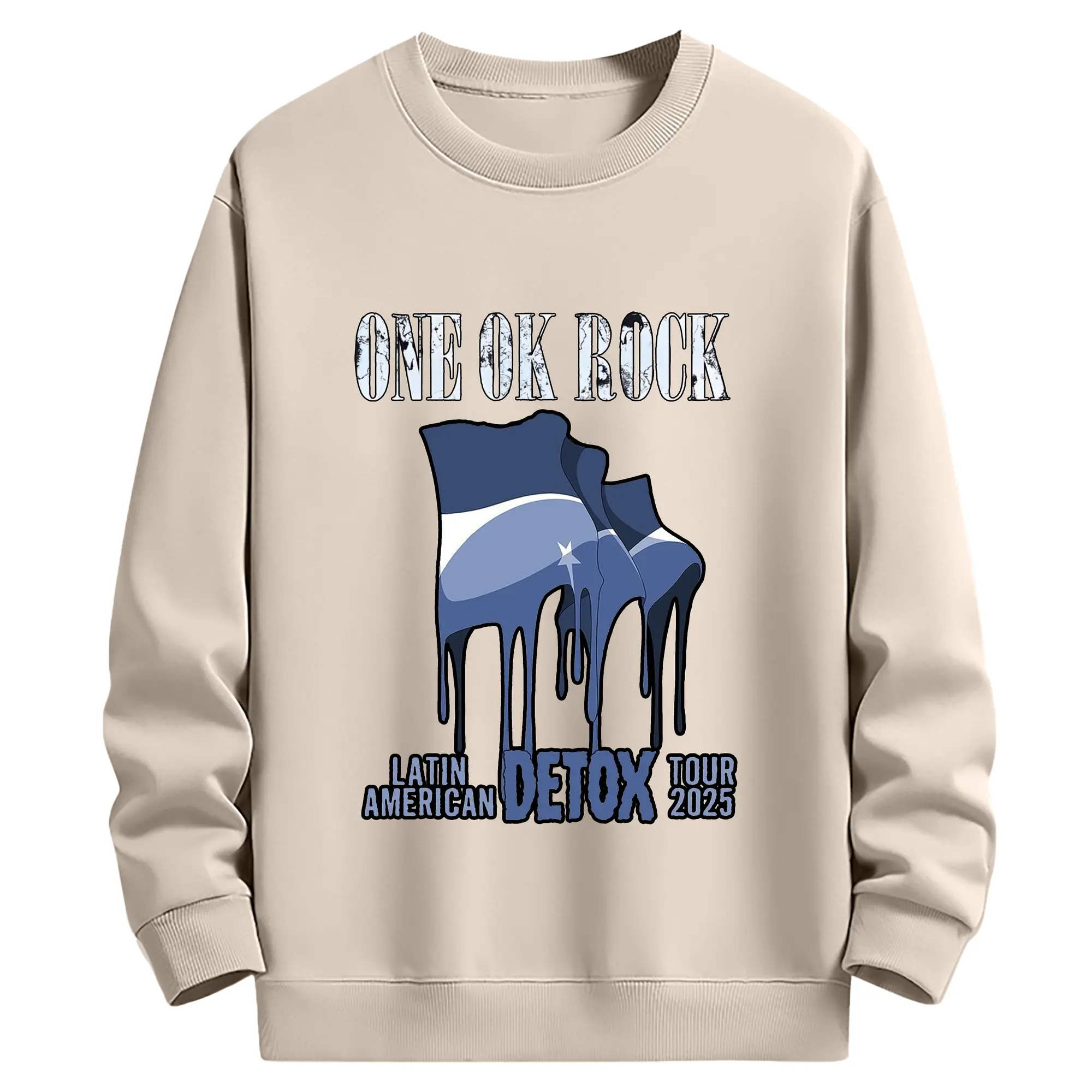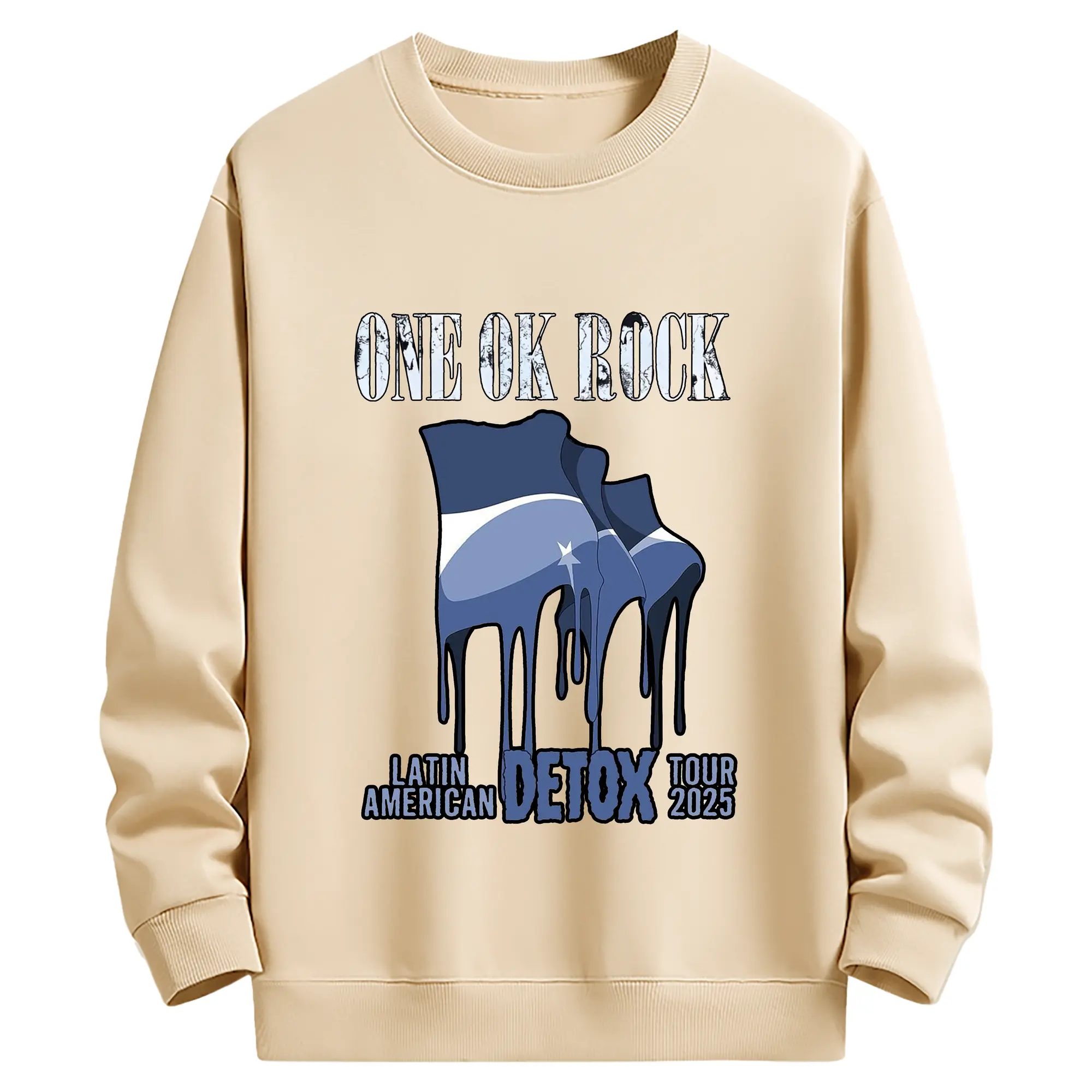 ワンオクロックニューアルバム「DETOX」 - 綿100% ヴィンテージ風 半袖Tシャツ ・ フロントプリント ・ 柔らか肌触り ・ 通気性 快適 ・ スポーツ カジュアル 外出用