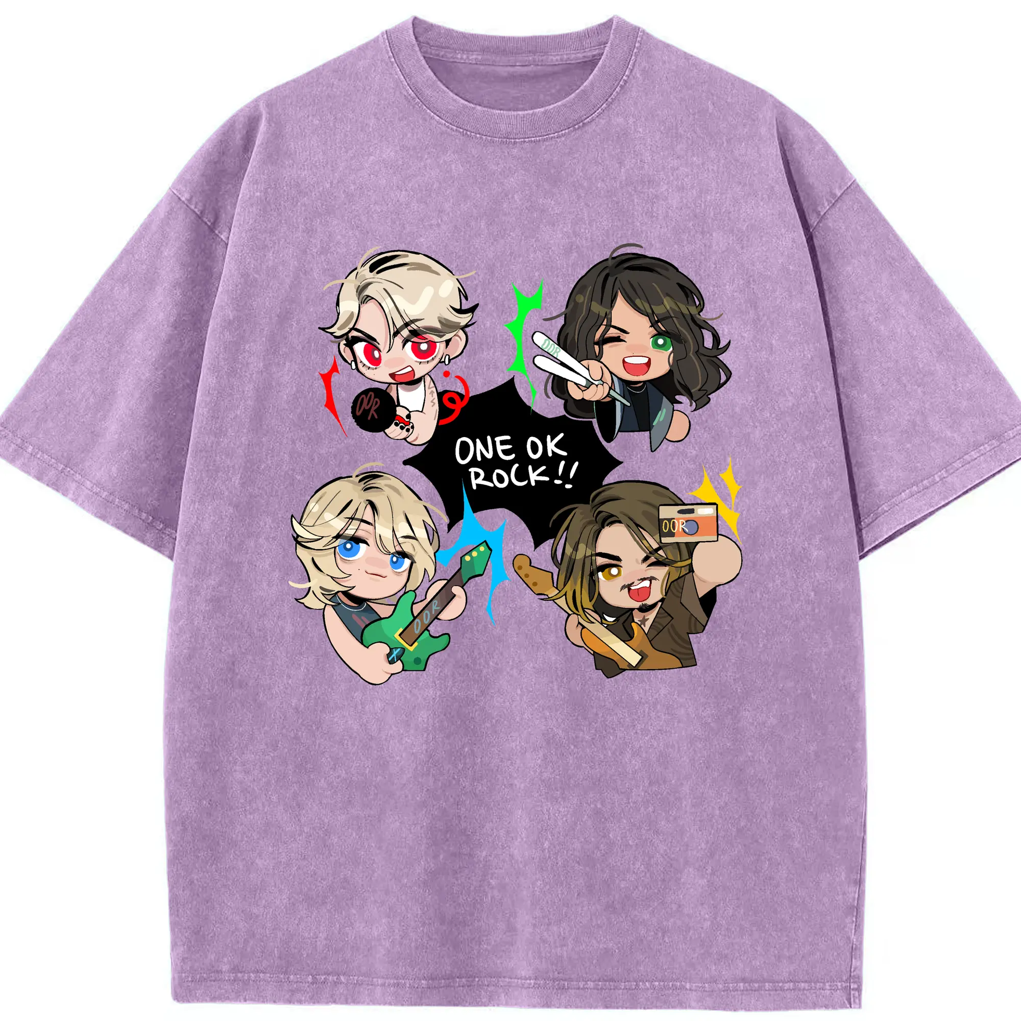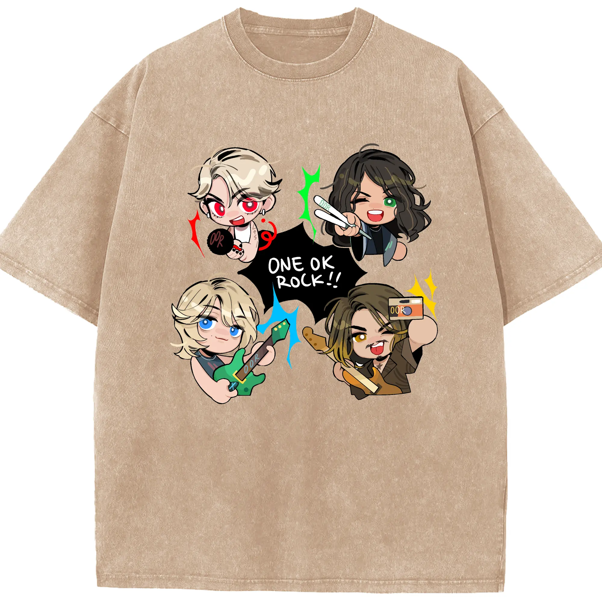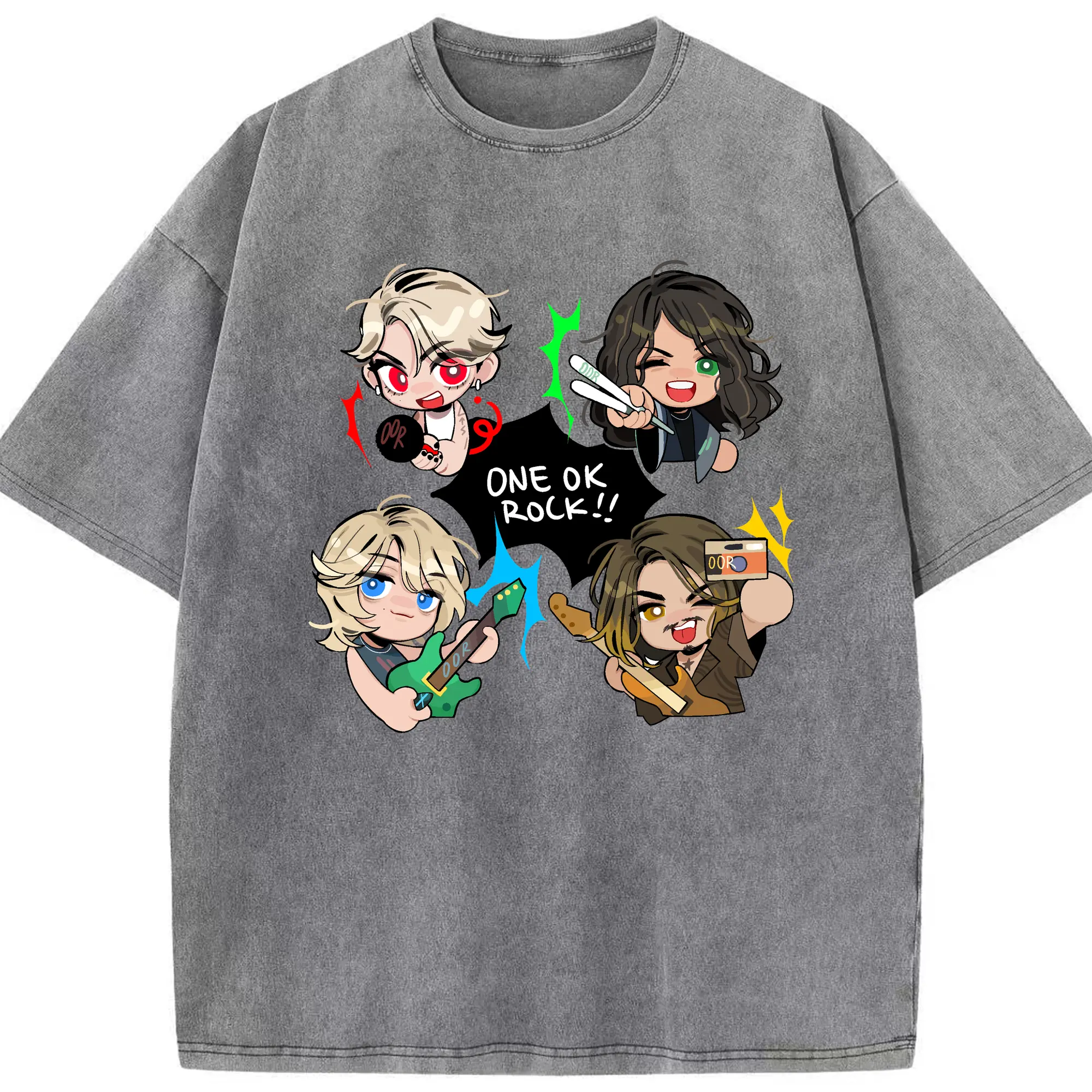ワンオクロックマンガ風 - 綿100% 半袖Tシャツ ・ フロントプリント ・ 快適 通気性 ・ 日常使い 散歩 スポーツ用