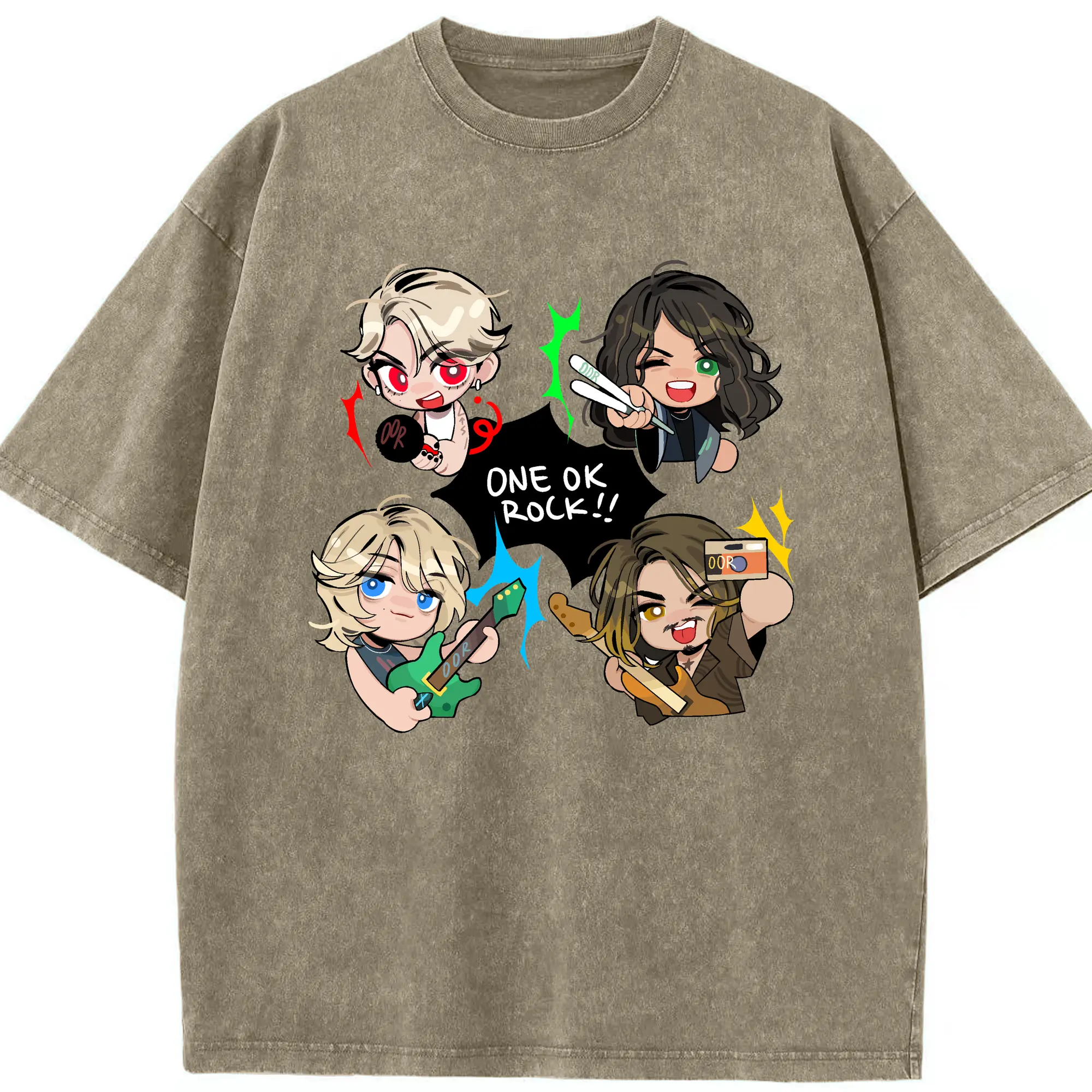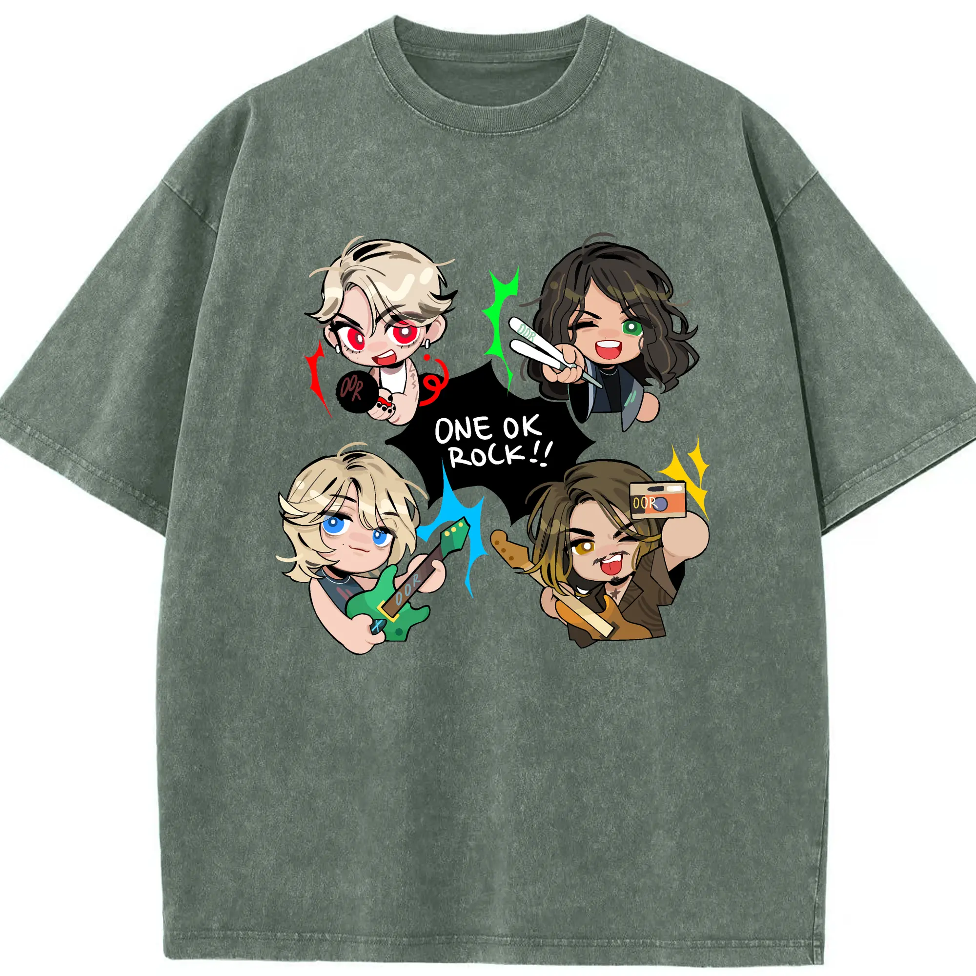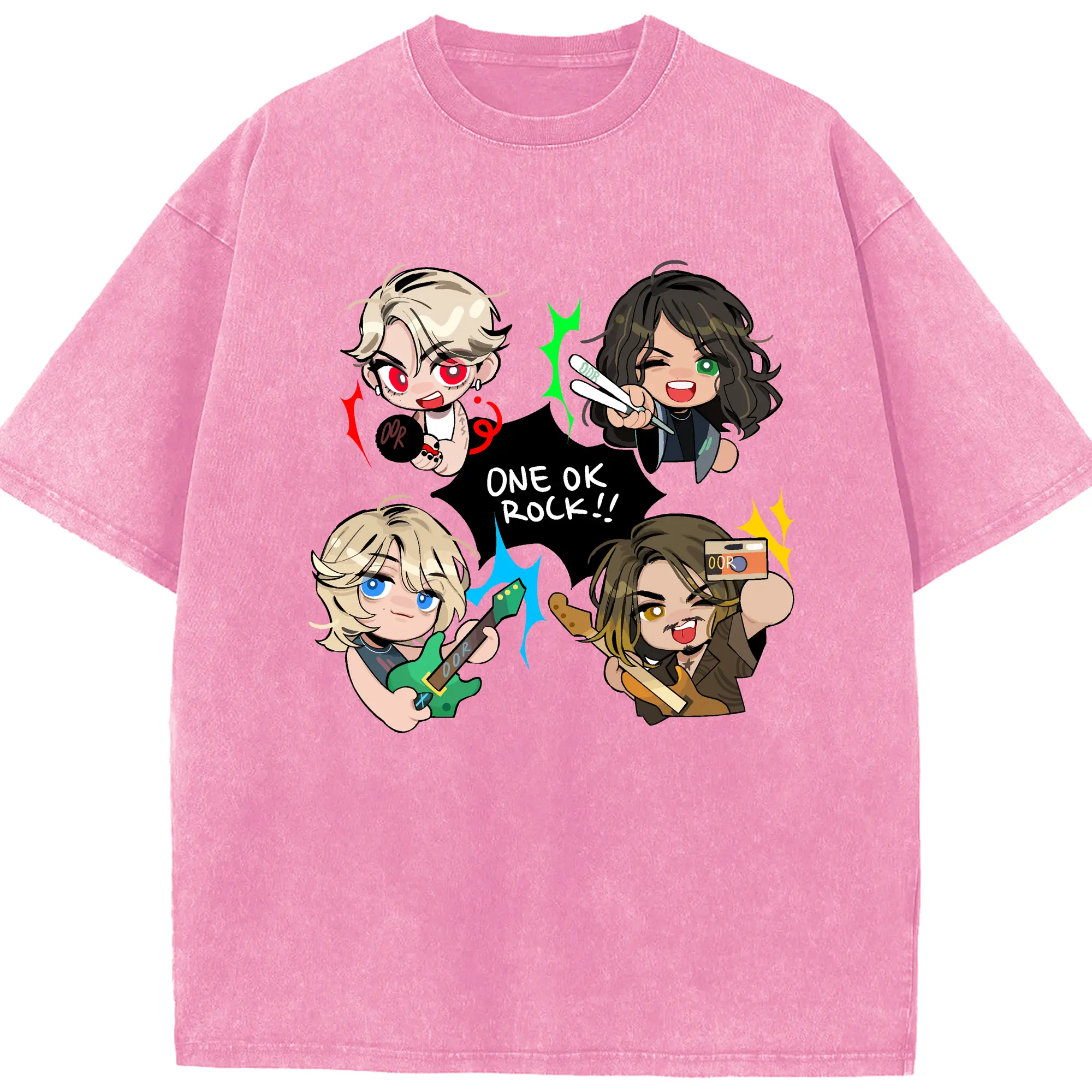 ワンオクロックマンガ風 - 綿100% 半袖Tシャツ ・ フロントプリント ・ 快適 通気性 ・ 日常使い 散歩 スポーツ用