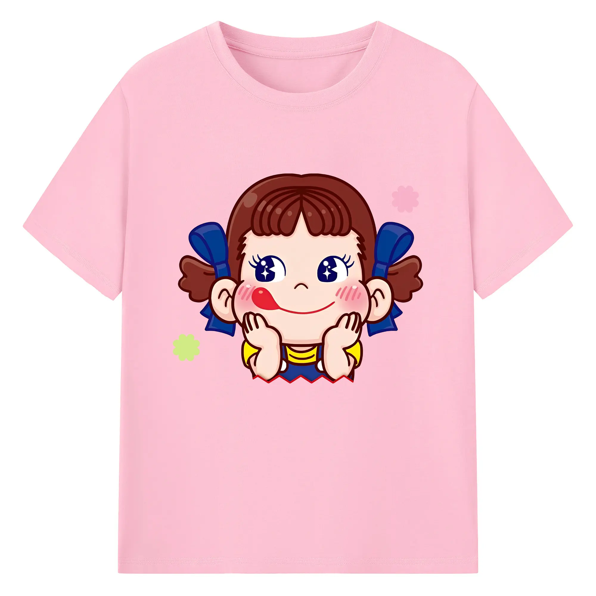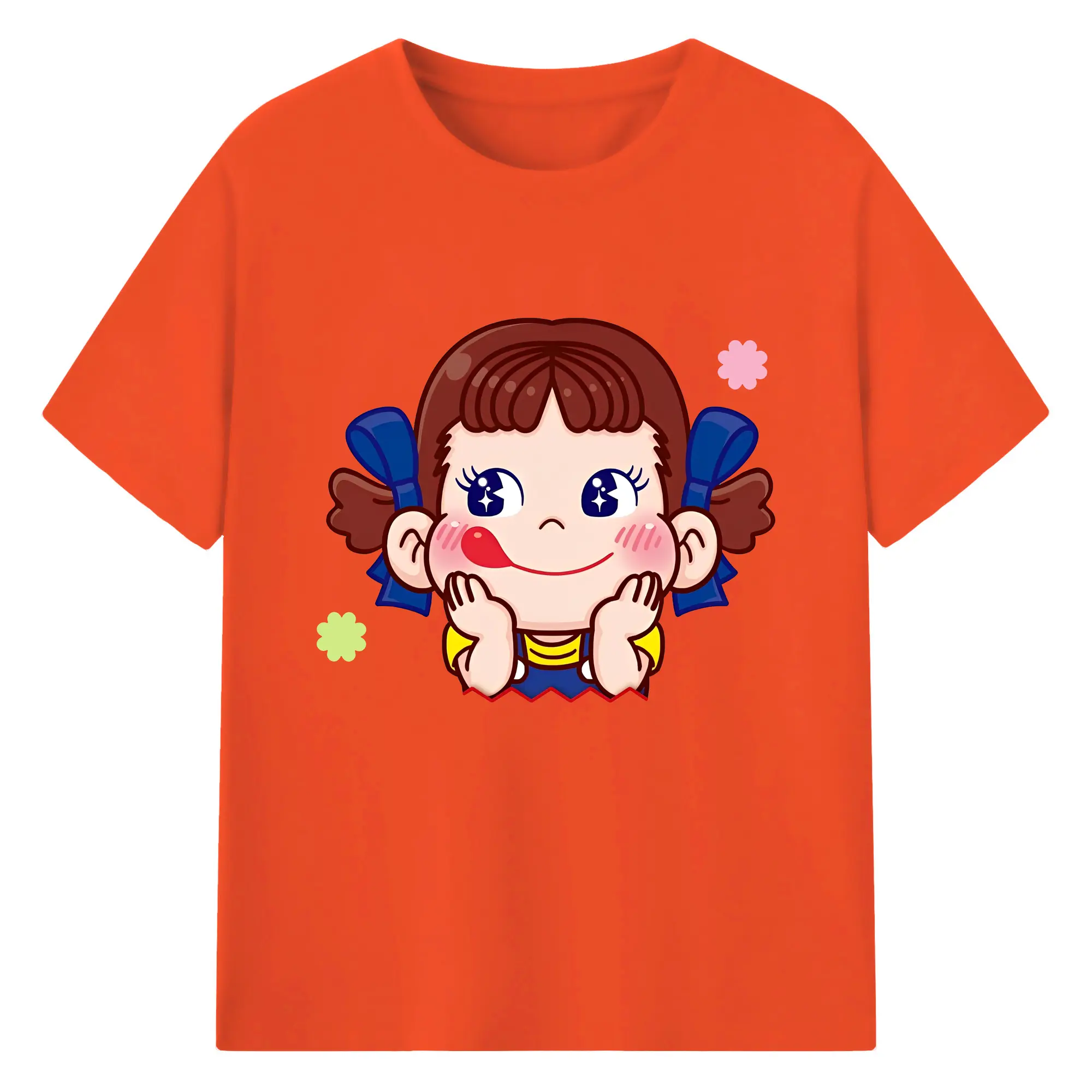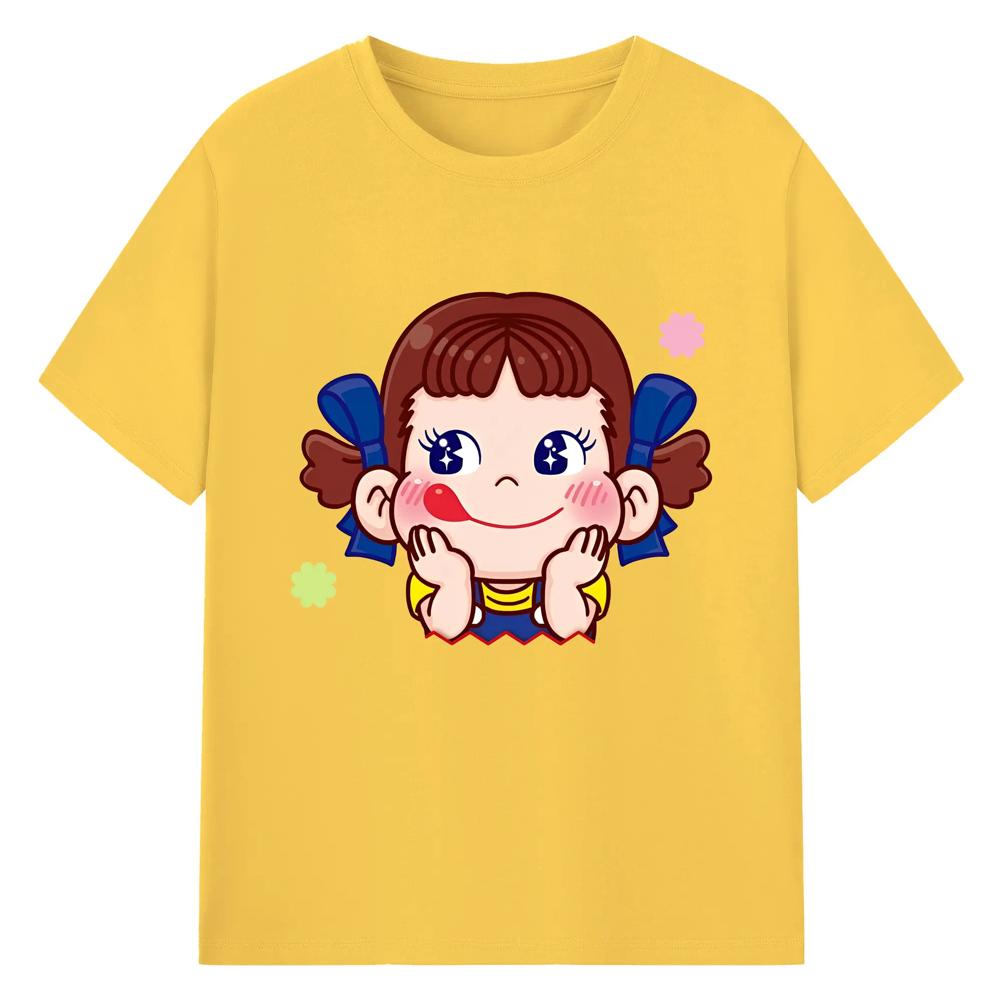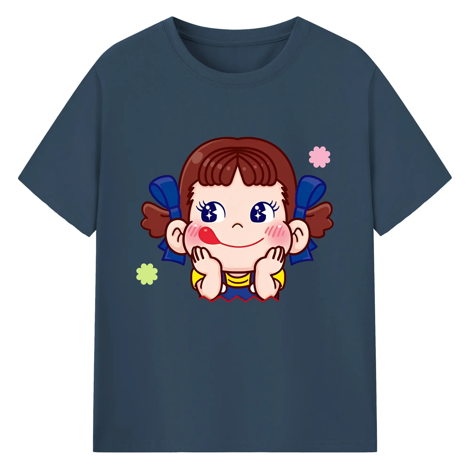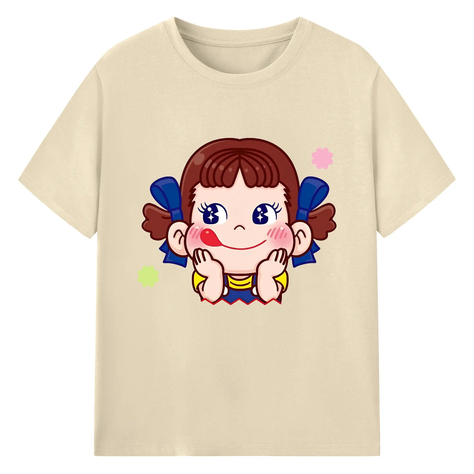 不二家ペコちゃん ドリーミングフェイス - 綿100% ヴィンテージ風 半袖Tシャツ ・ フロントプリント ・ 柔らか肌触り ・ 通気性 快適 ・ スポーツ カジュアル 外出用