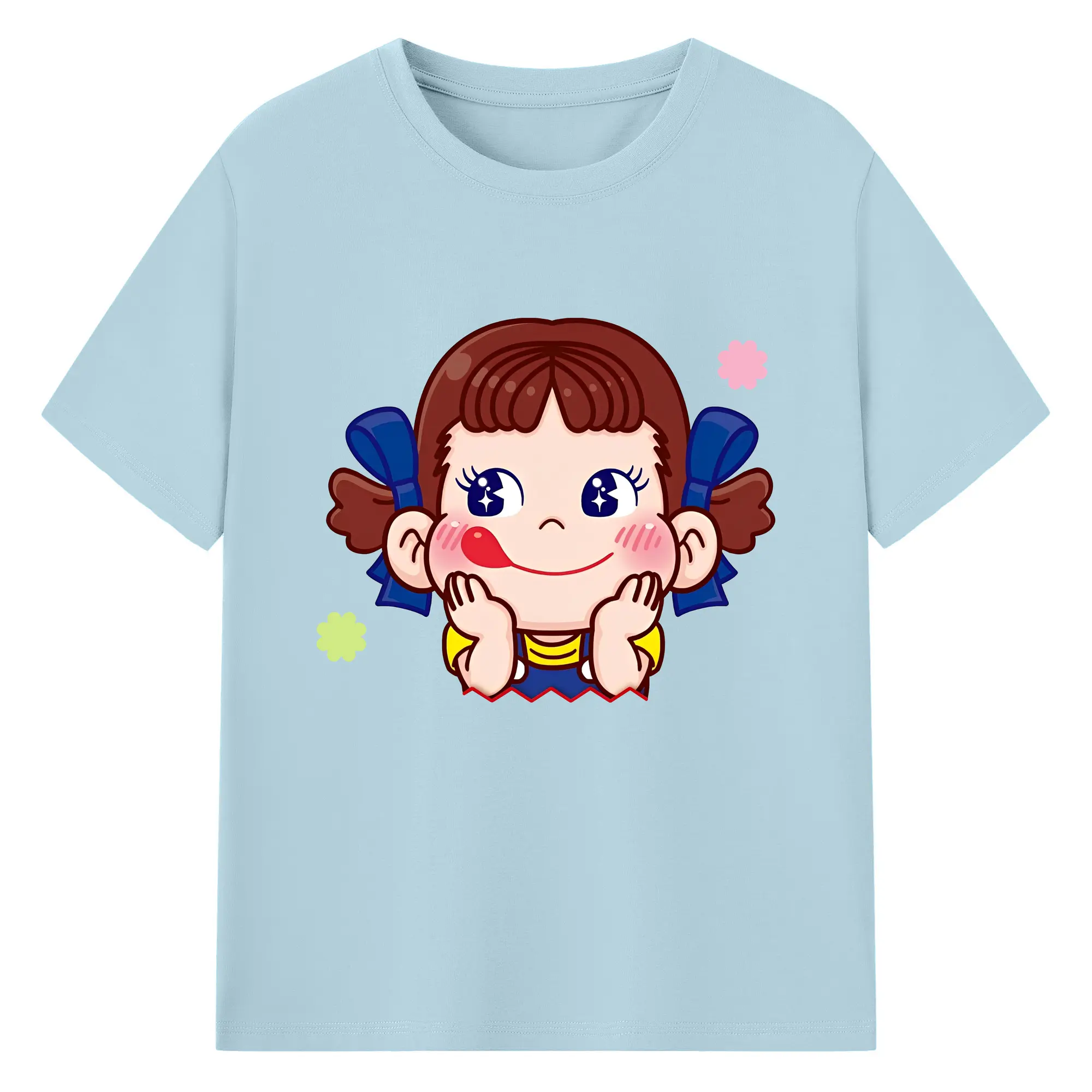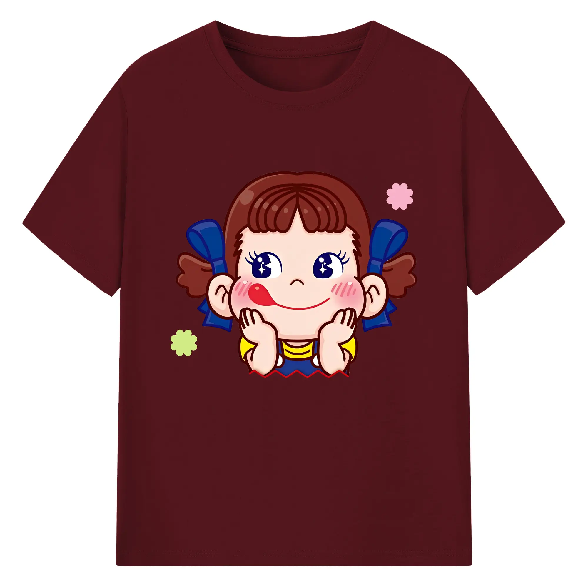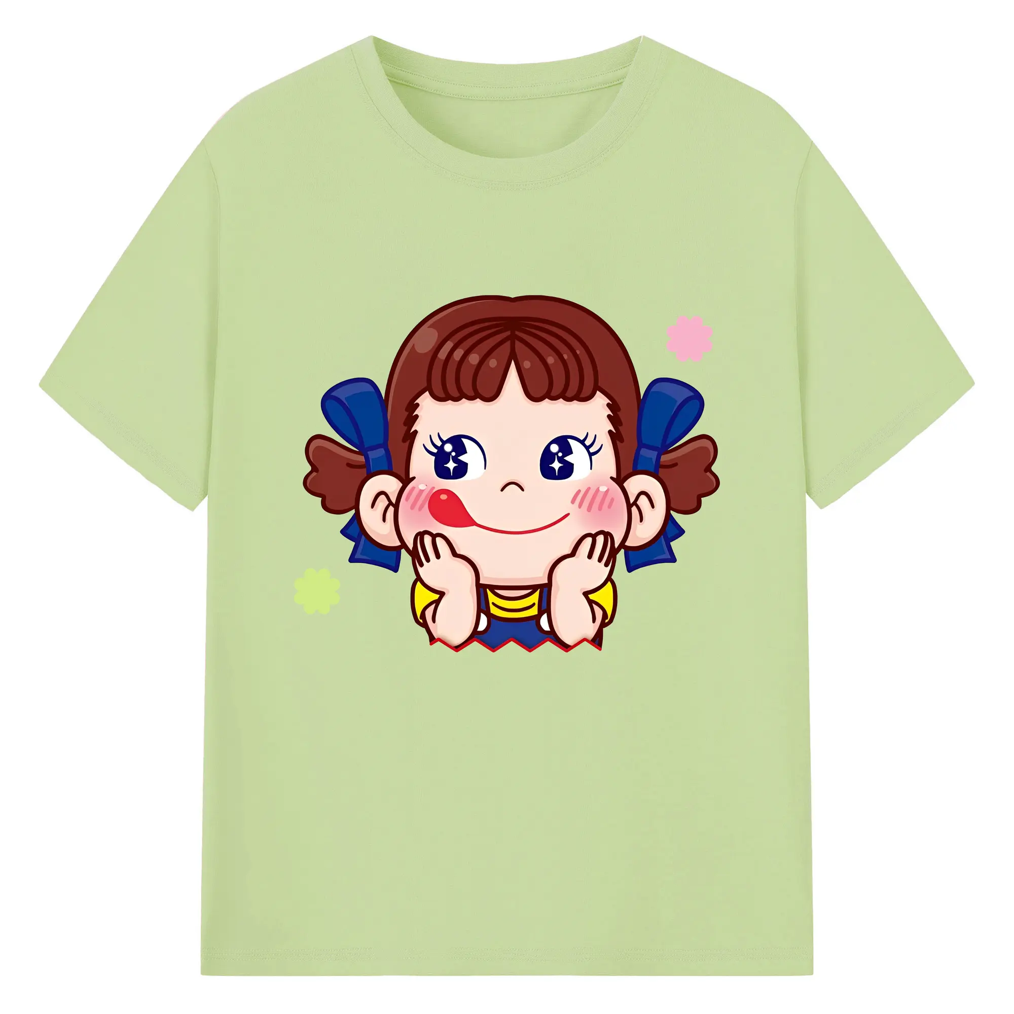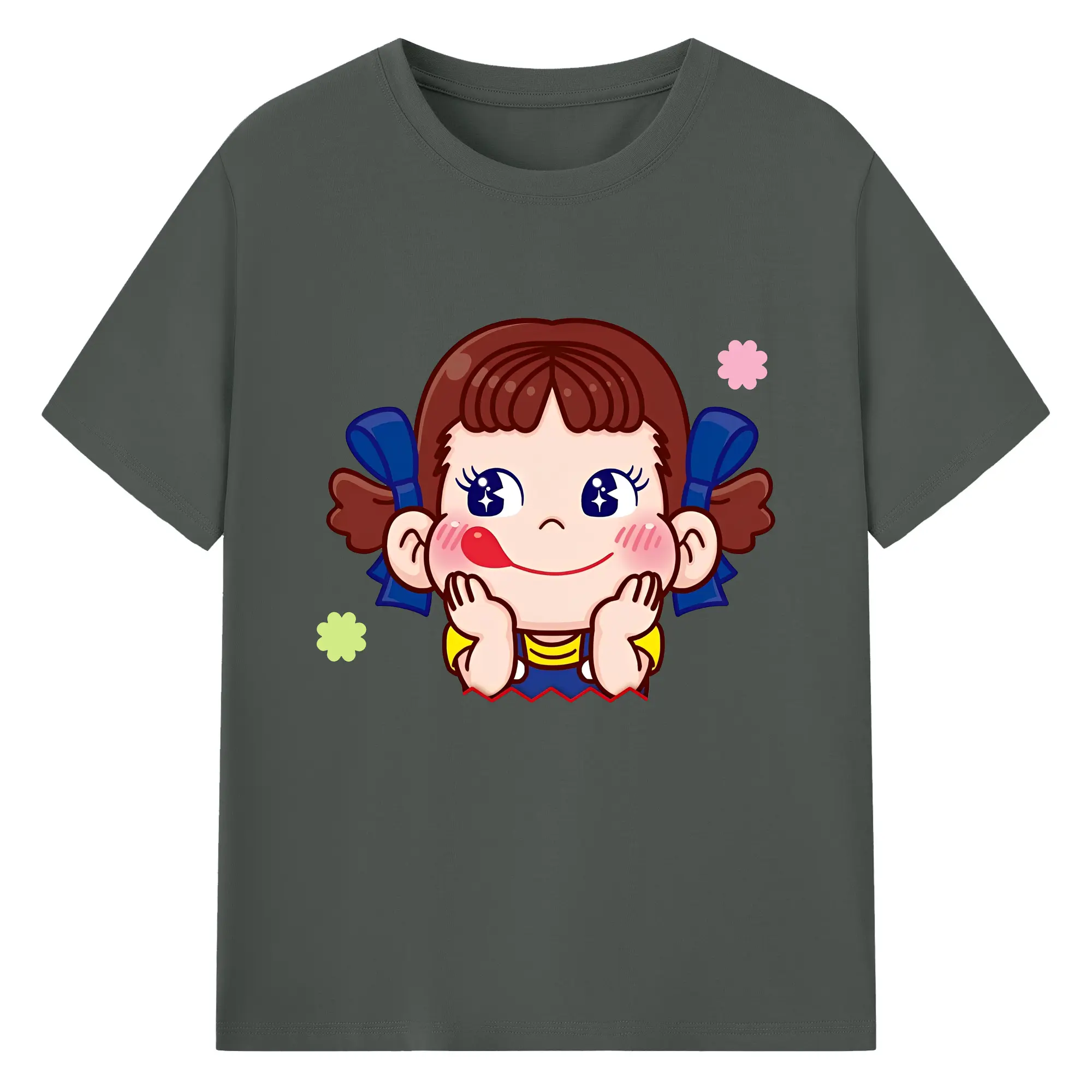 不二家ペコちゃん ドリーミングフェイス - 綿100% ヴィンテージ風 半袖Tシャツ ・ フロントプリント ・ 柔らか肌触り ・ 通気性 快適 ・ スポーツ カジュアル 外出用