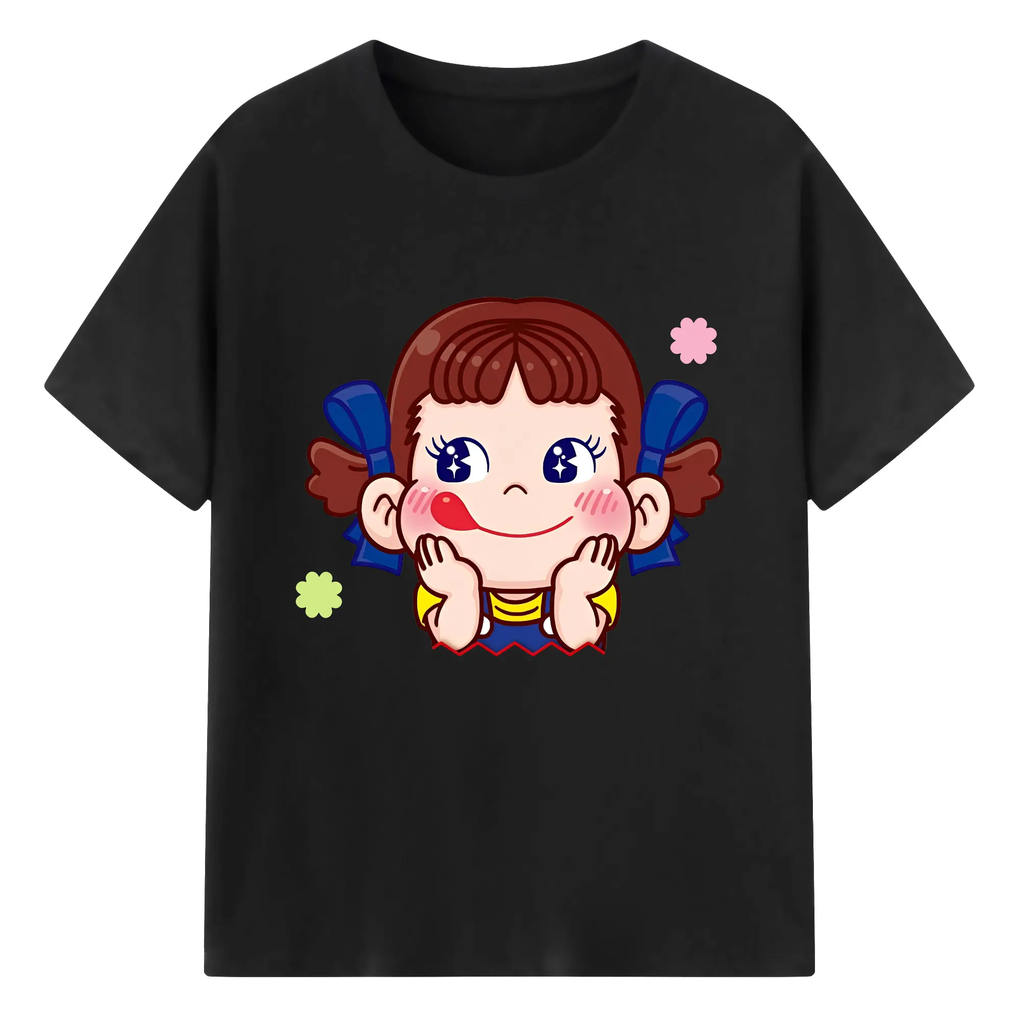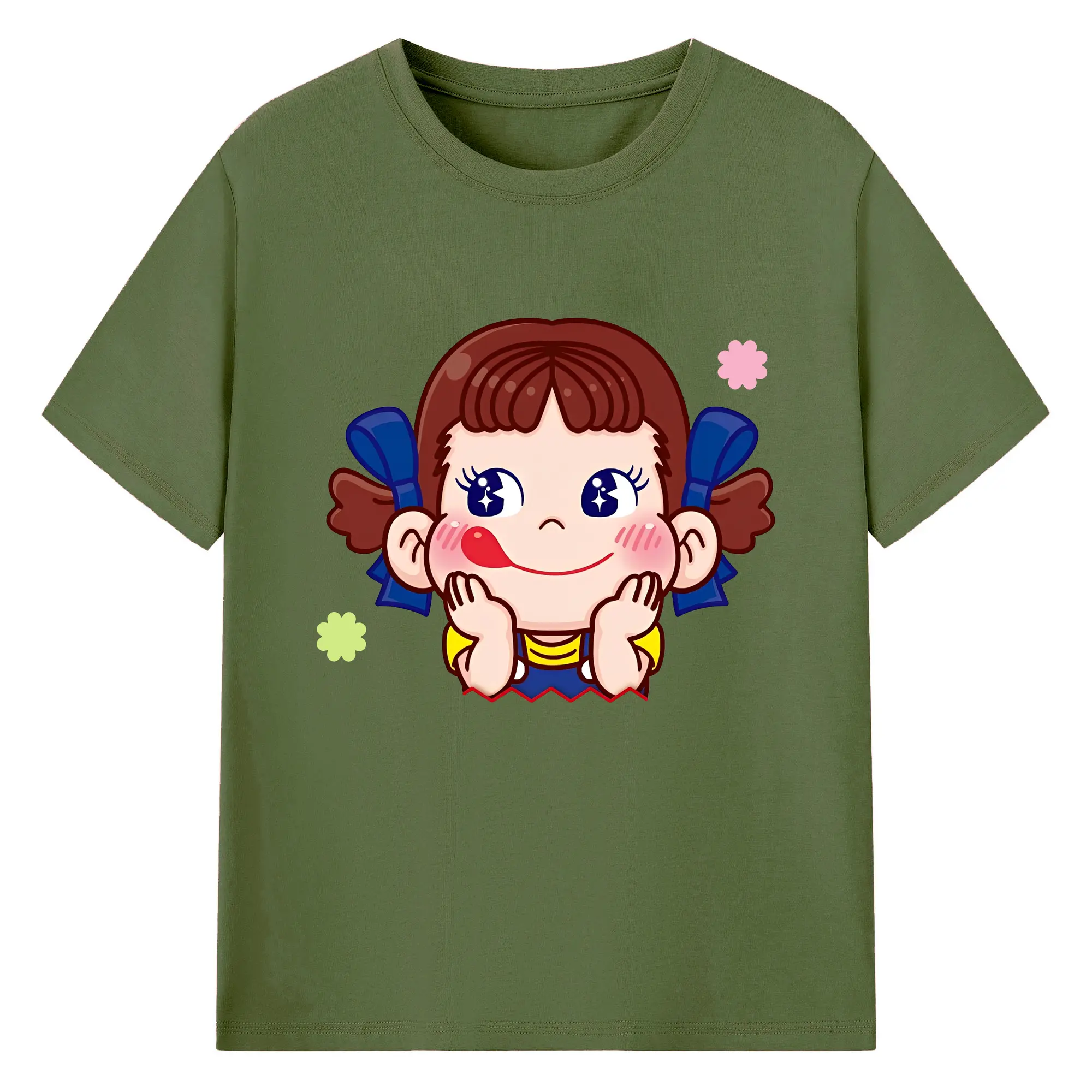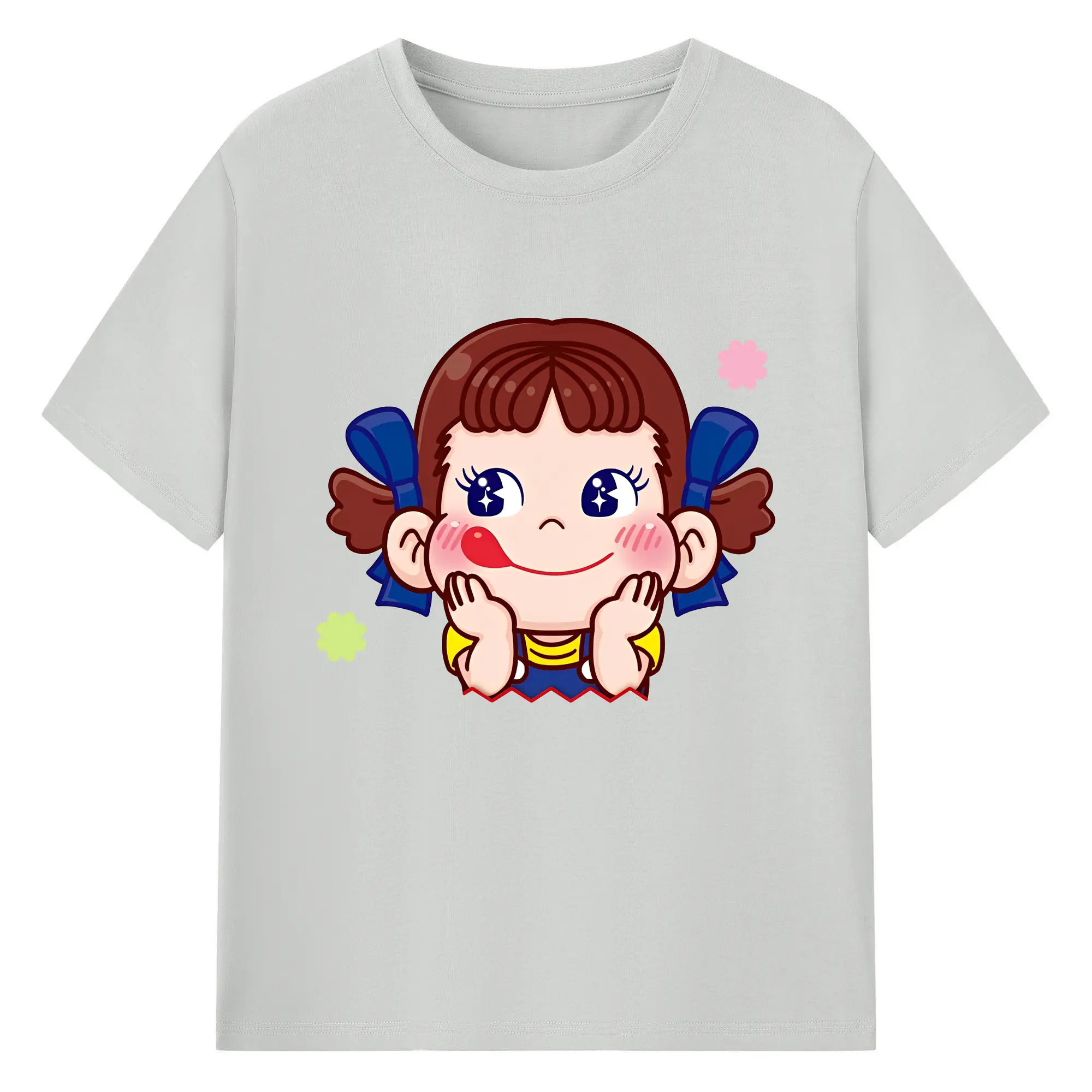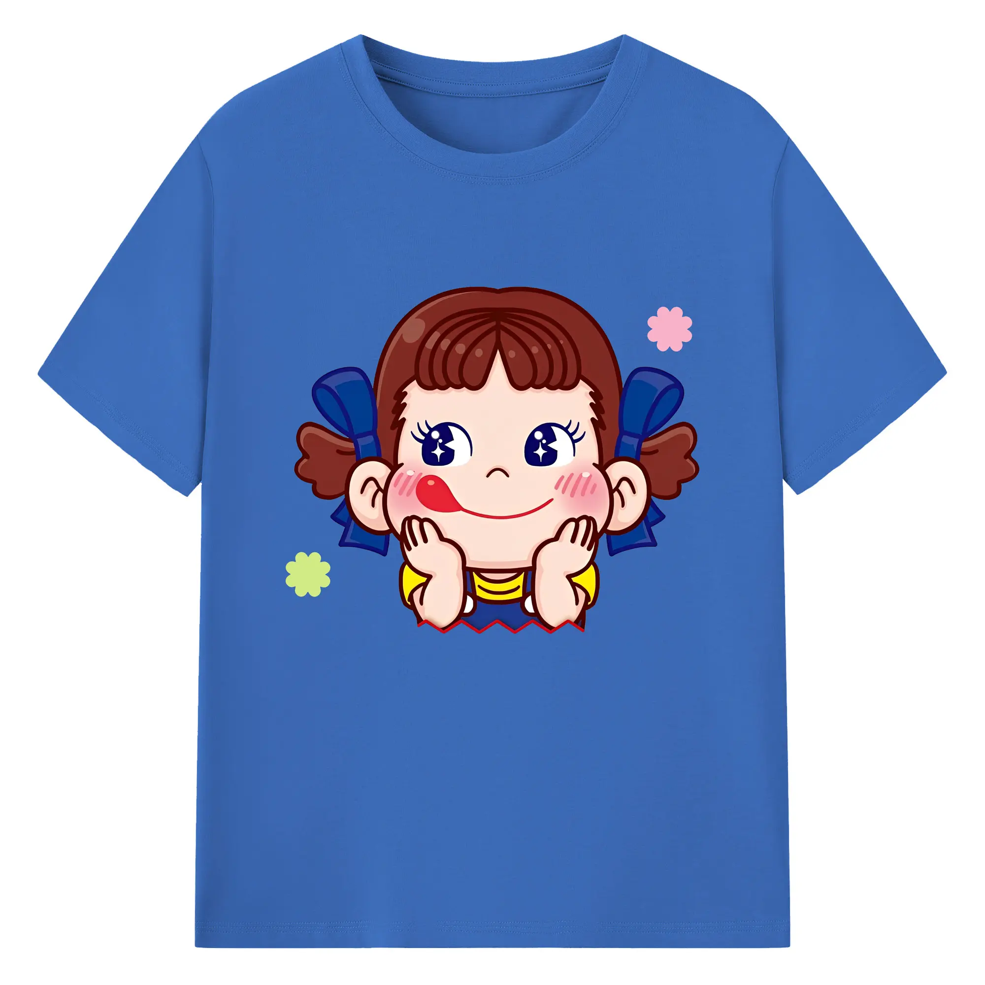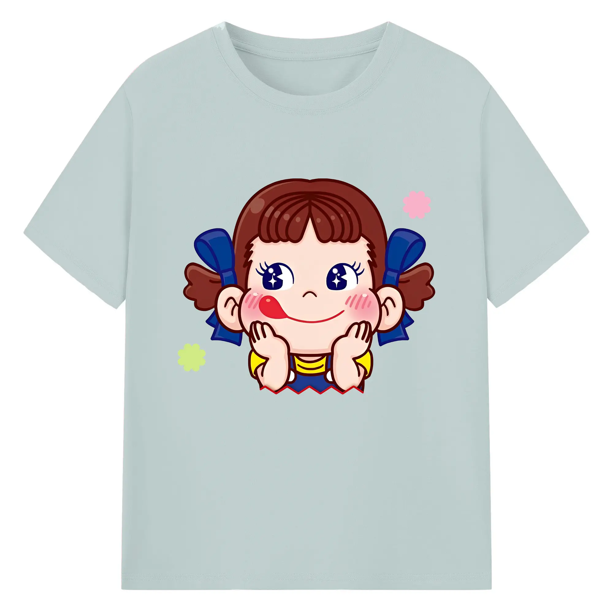 不二家ペコちゃん ドリーミングフェイス - 綿100% ヴィンテージ風 半袖Tシャツ ・ フロントプリント ・ 柔らか肌触り ・ 通気性 快適 ・ スポーツ カジュアル 外出用