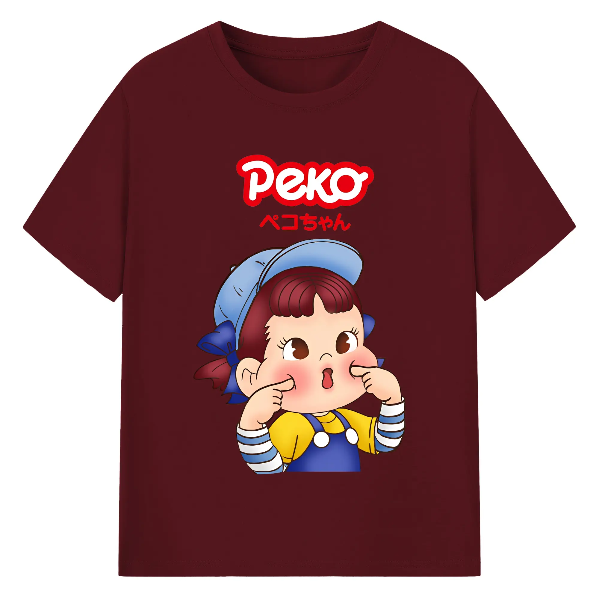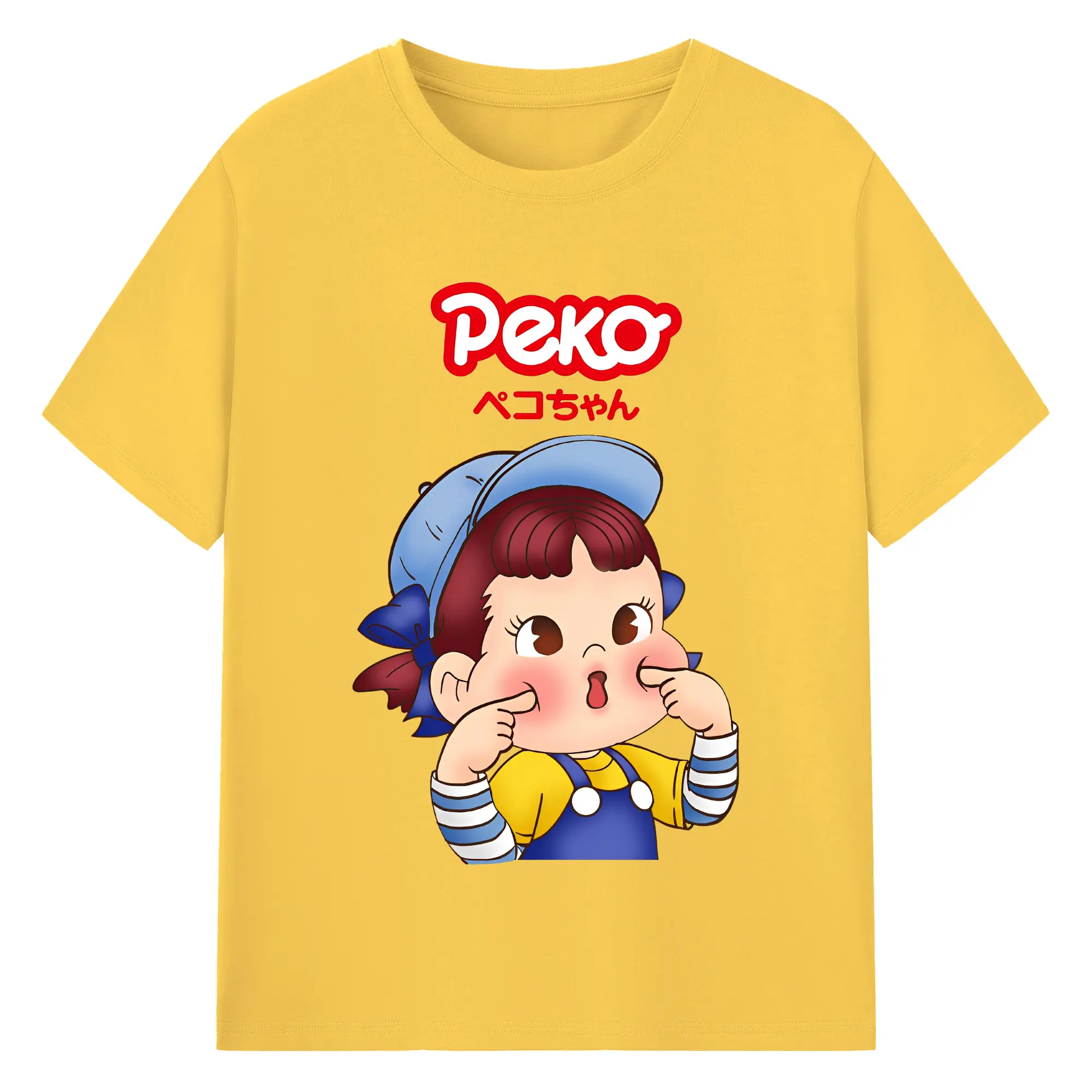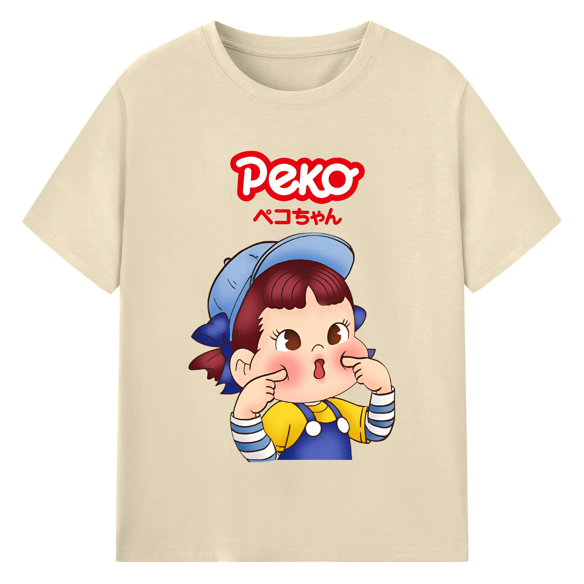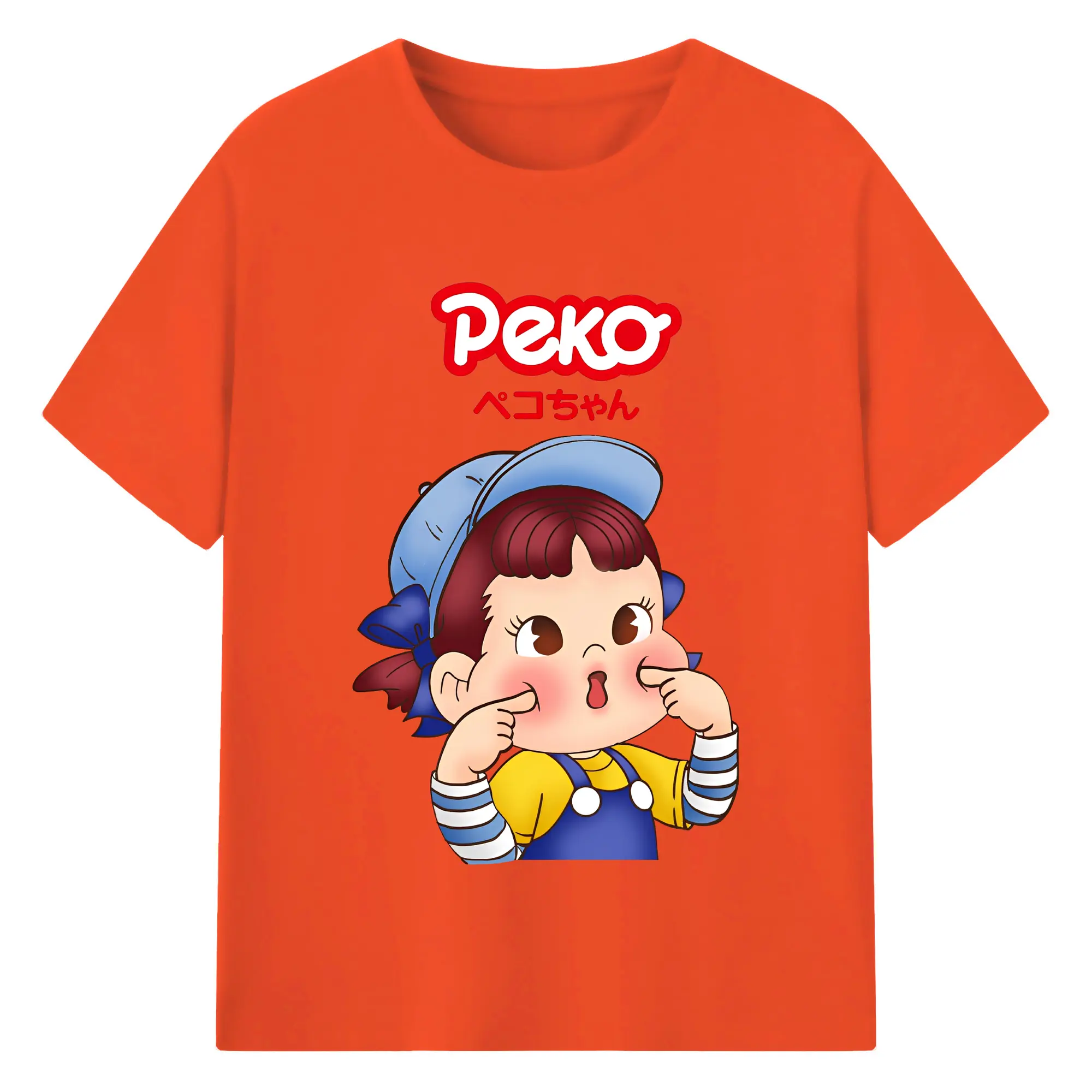不二家ペコちゃん 変顔デザイン - 綿100% ヴィンテージ風 半袖Tシャツ ・ フロントプリント ・ 柔らか肌触り ・ 通気性 快適 ・ スポーツ カジュアル 外出用