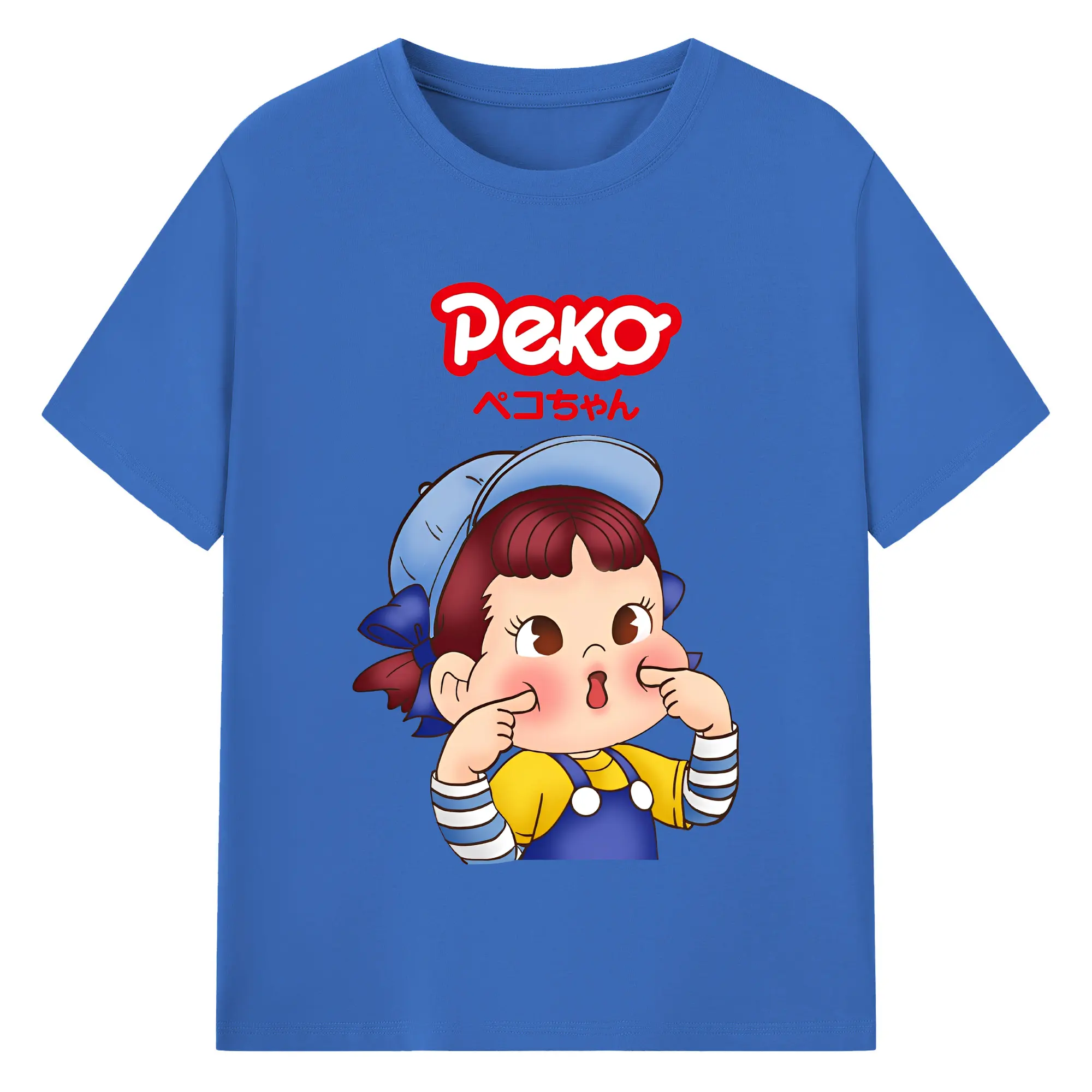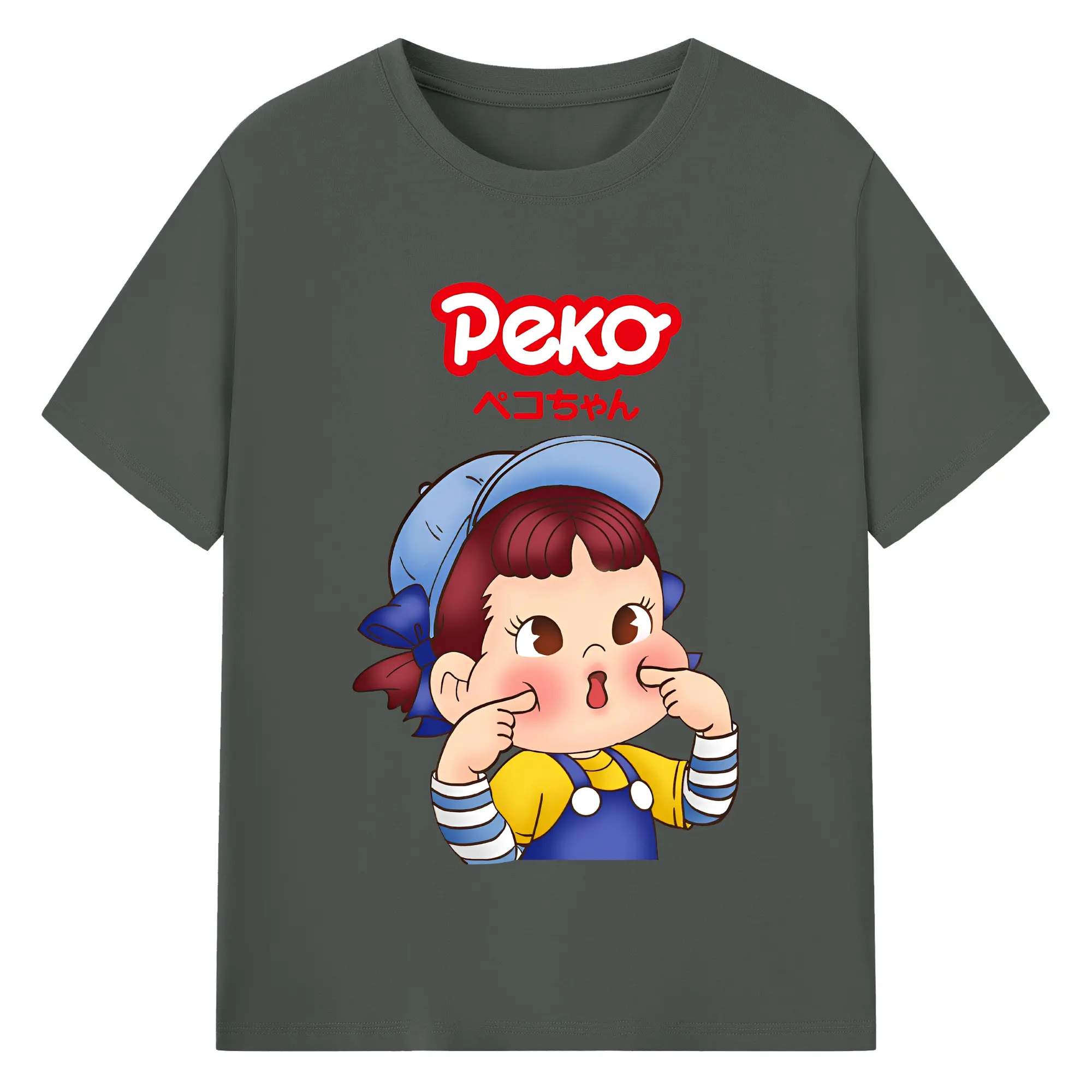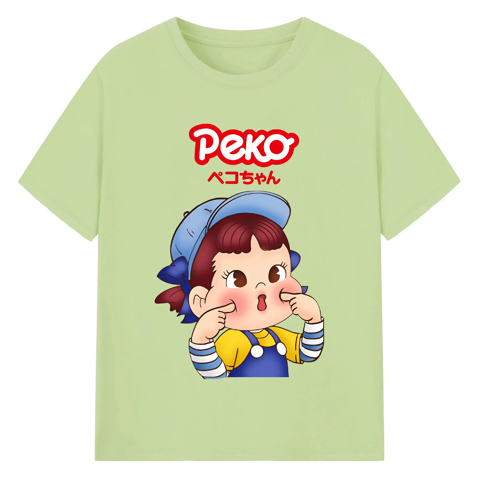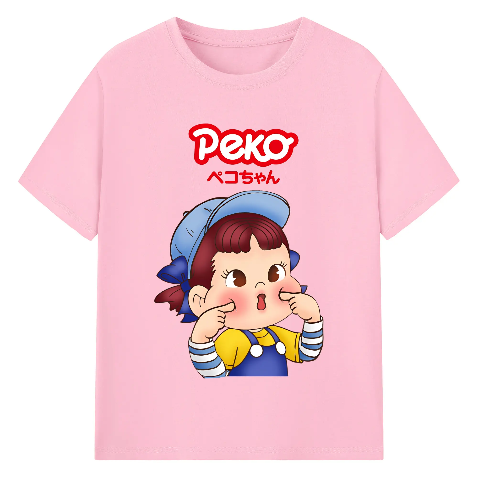 不二家ペコちゃん 変顔デザイン - 綿100% ヴィンテージ風 半袖Tシャツ ・ フロントプリント ・ 柔らか肌触り ・ 通気性 快適 ・ スポーツ カジュアル 外出用