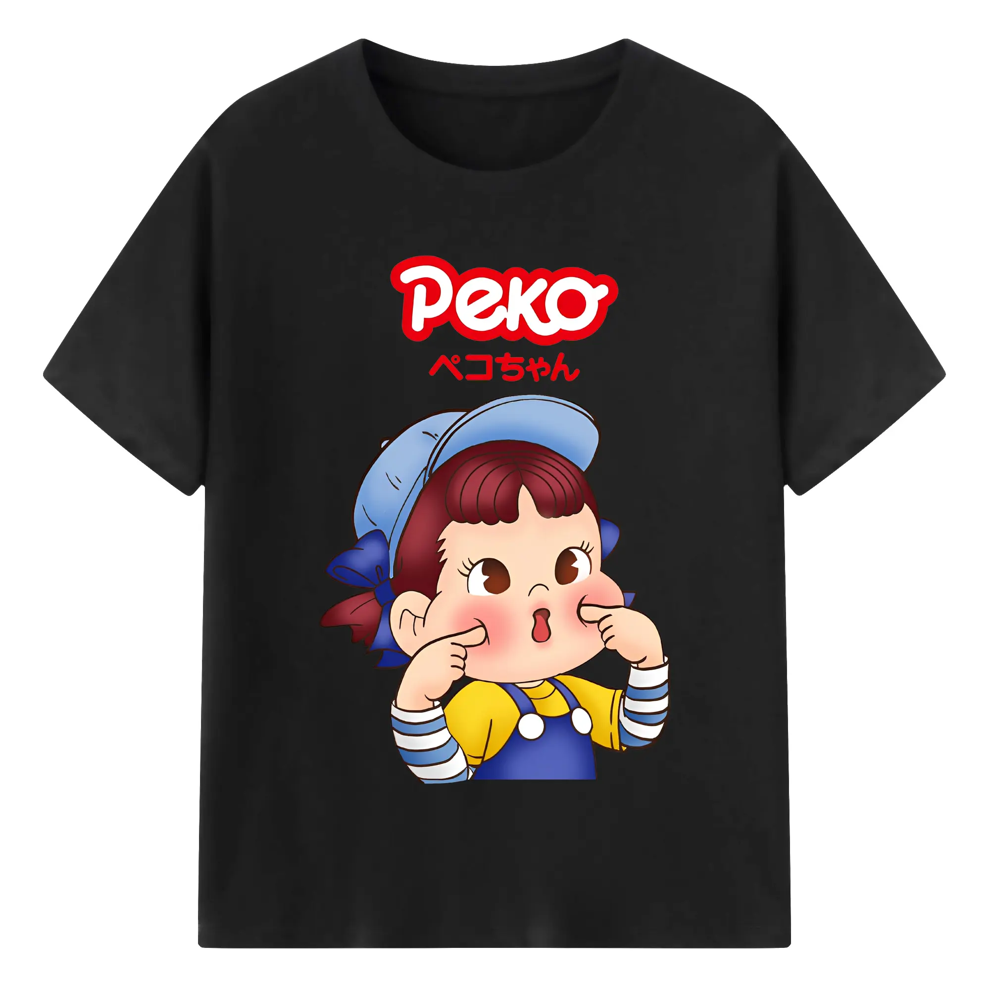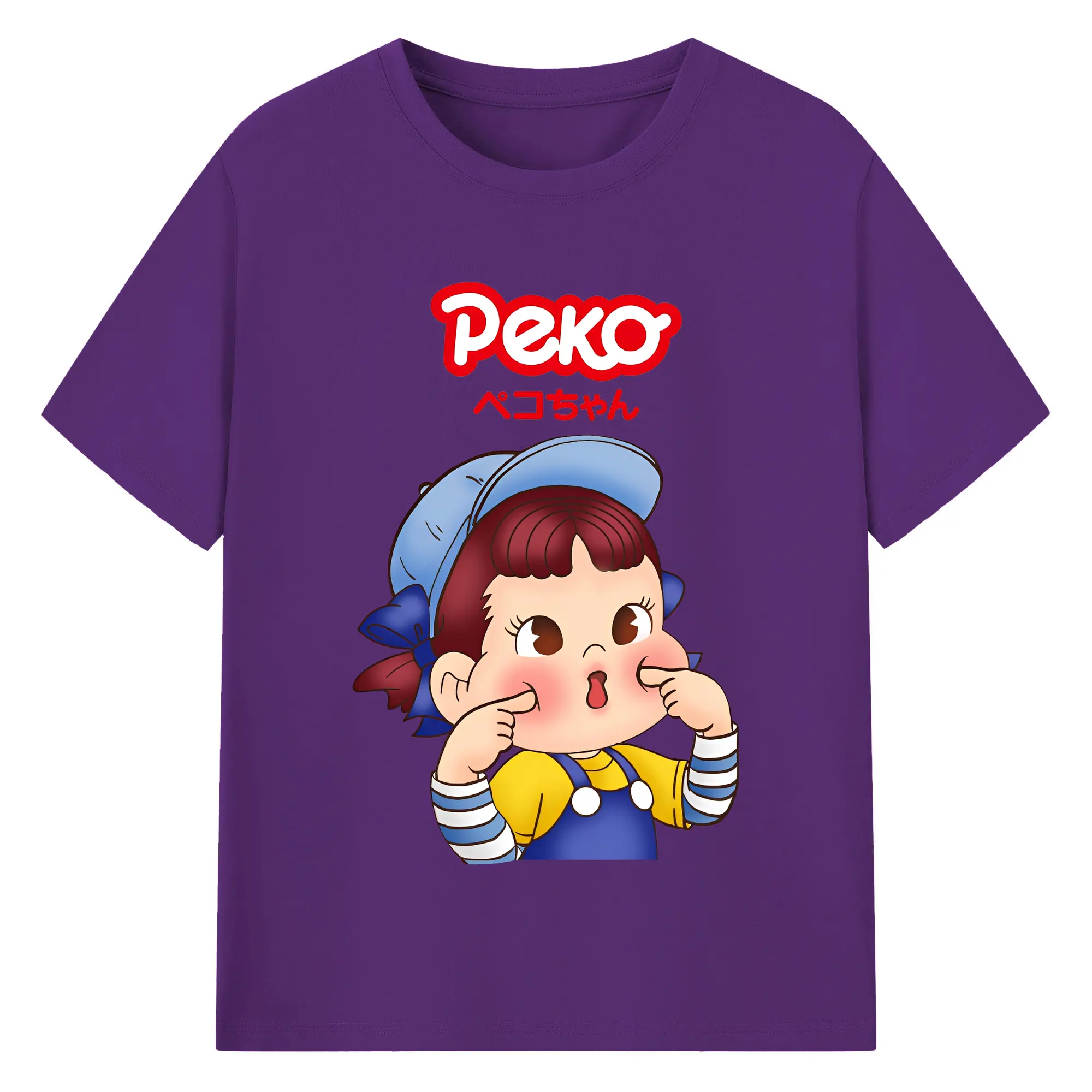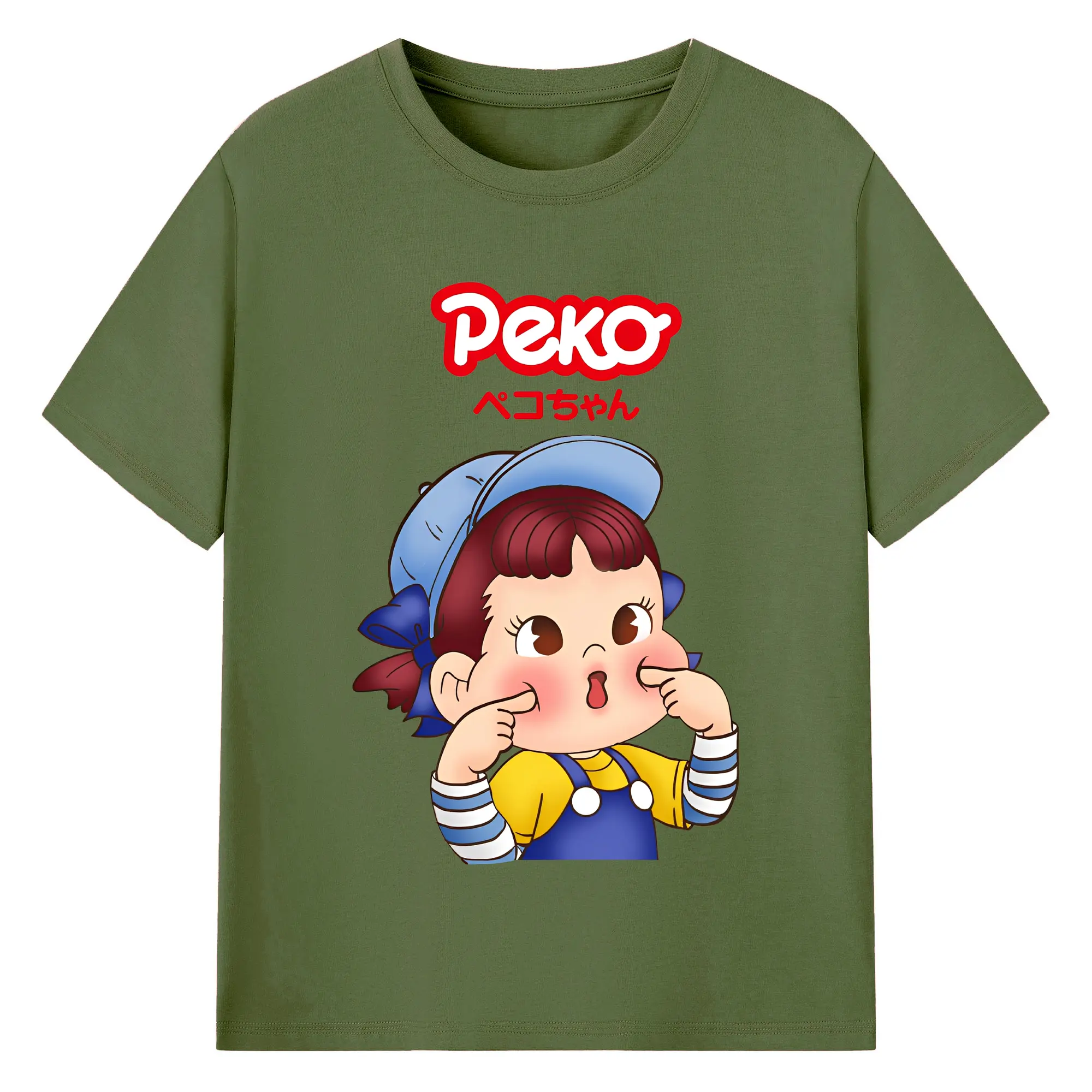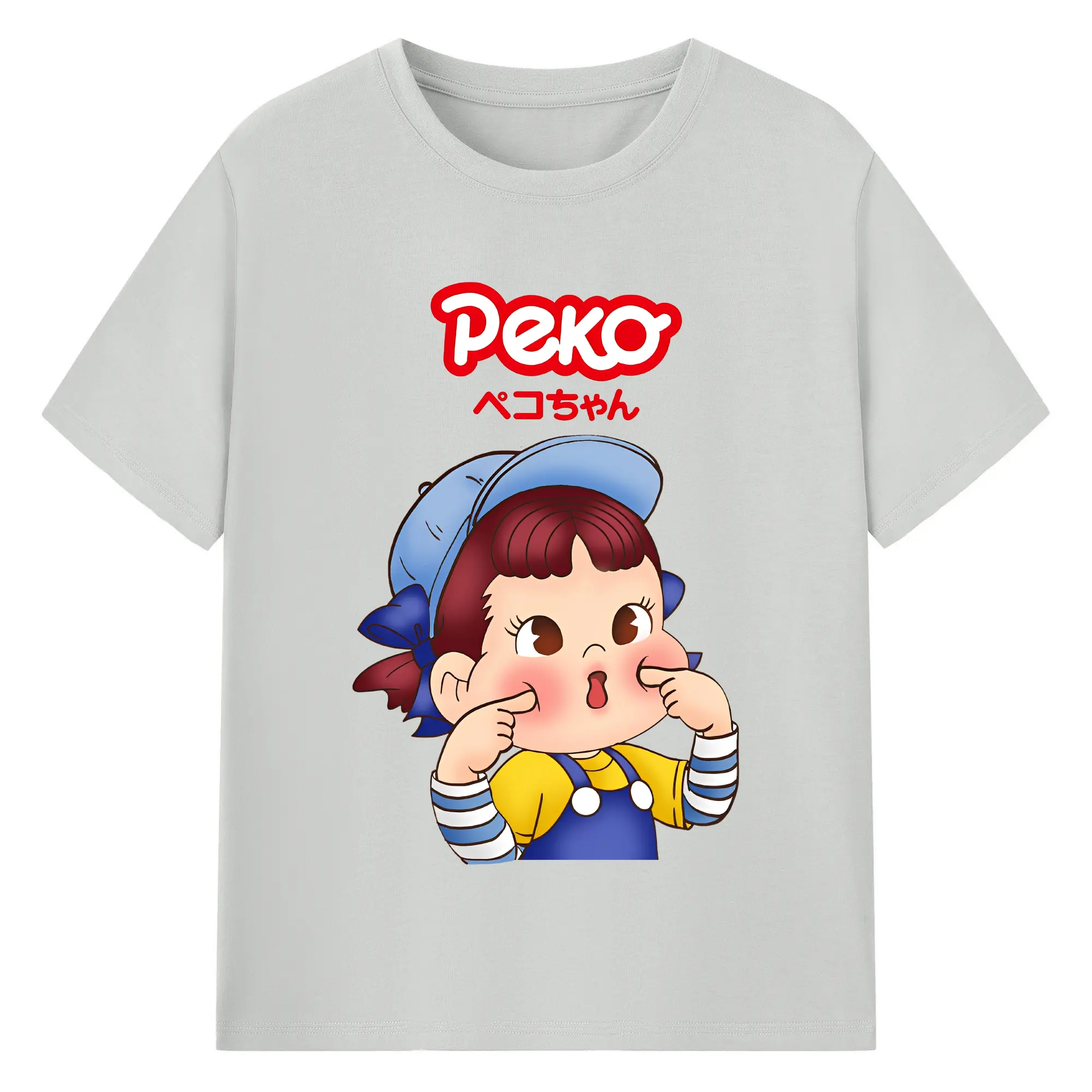 不二家ペコちゃん 変顔デザイン - 綿100% ヴィンテージ風 半袖Tシャツ ・ フロントプリント ・ 柔らか肌触り ・ 通気性 快適 ・ スポーツ カジュアル 外出用