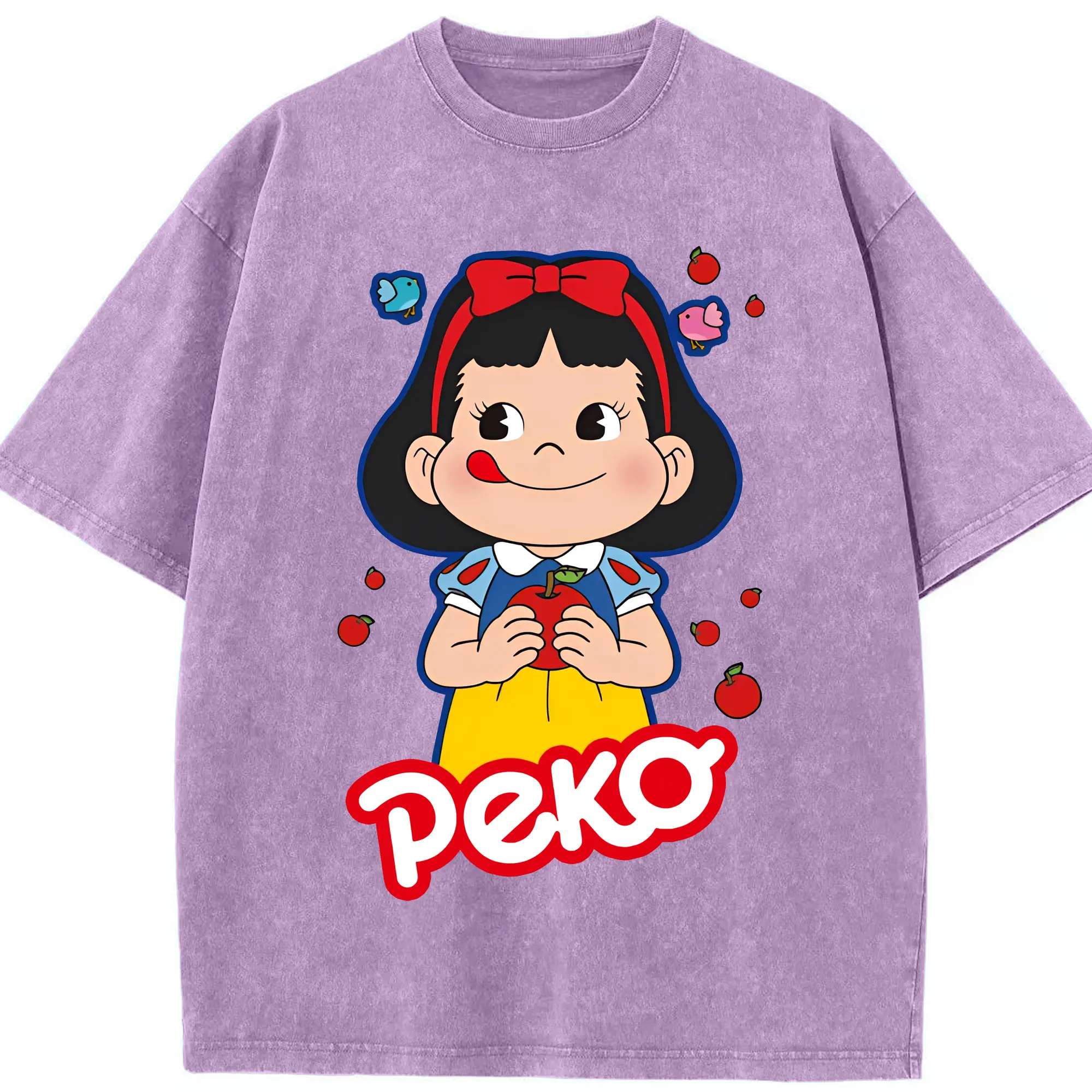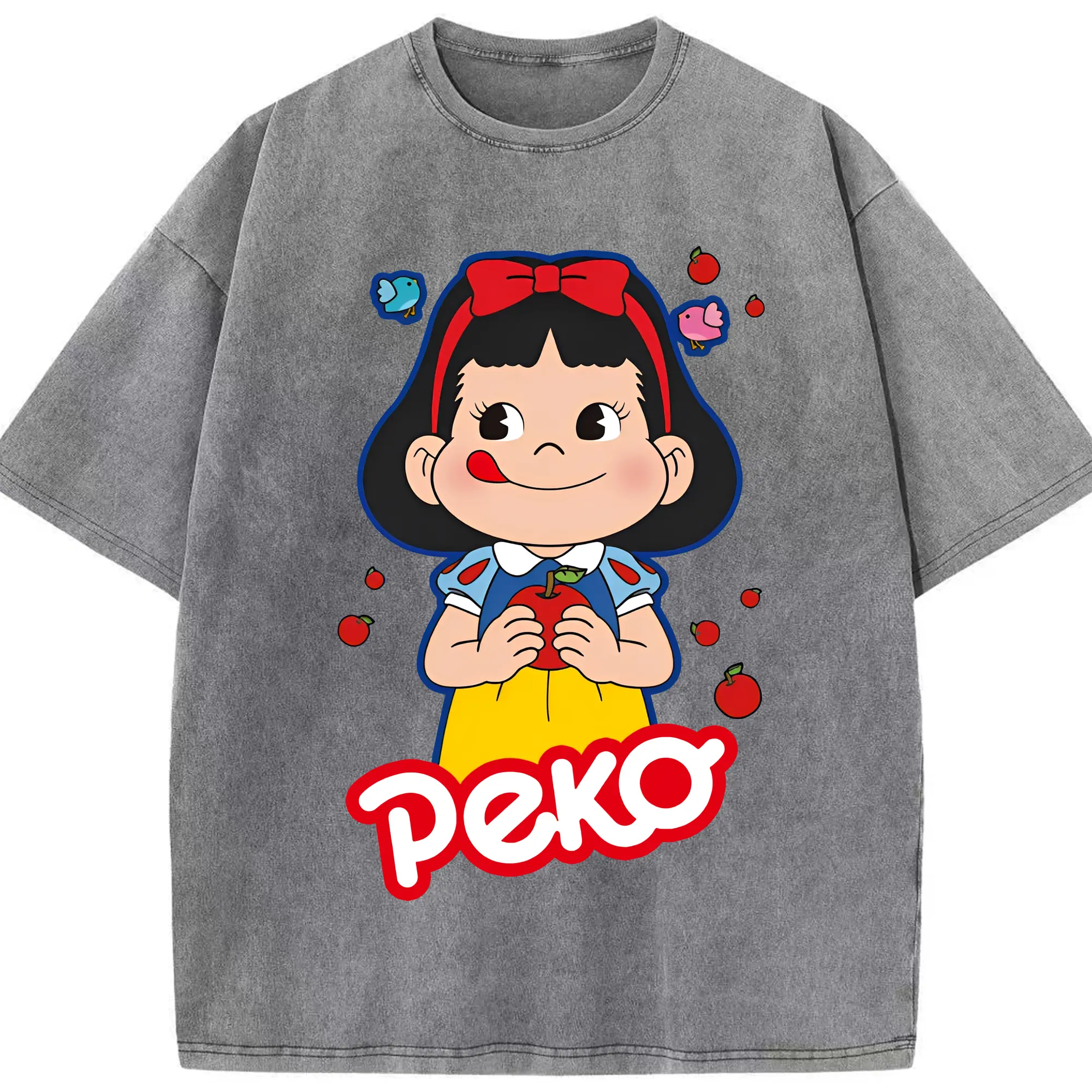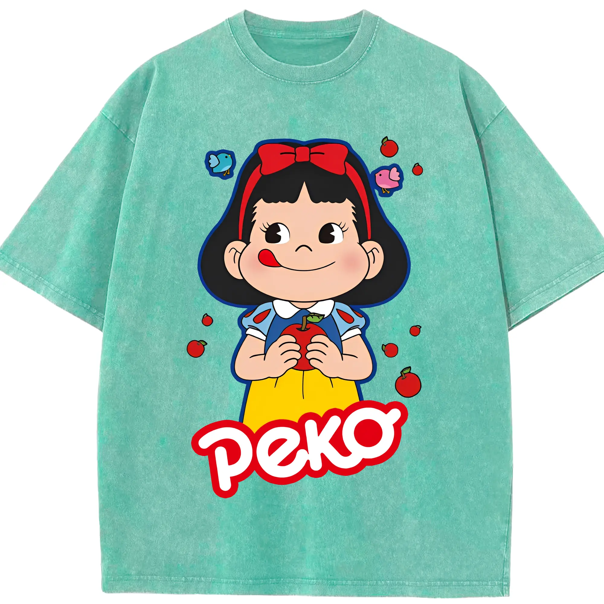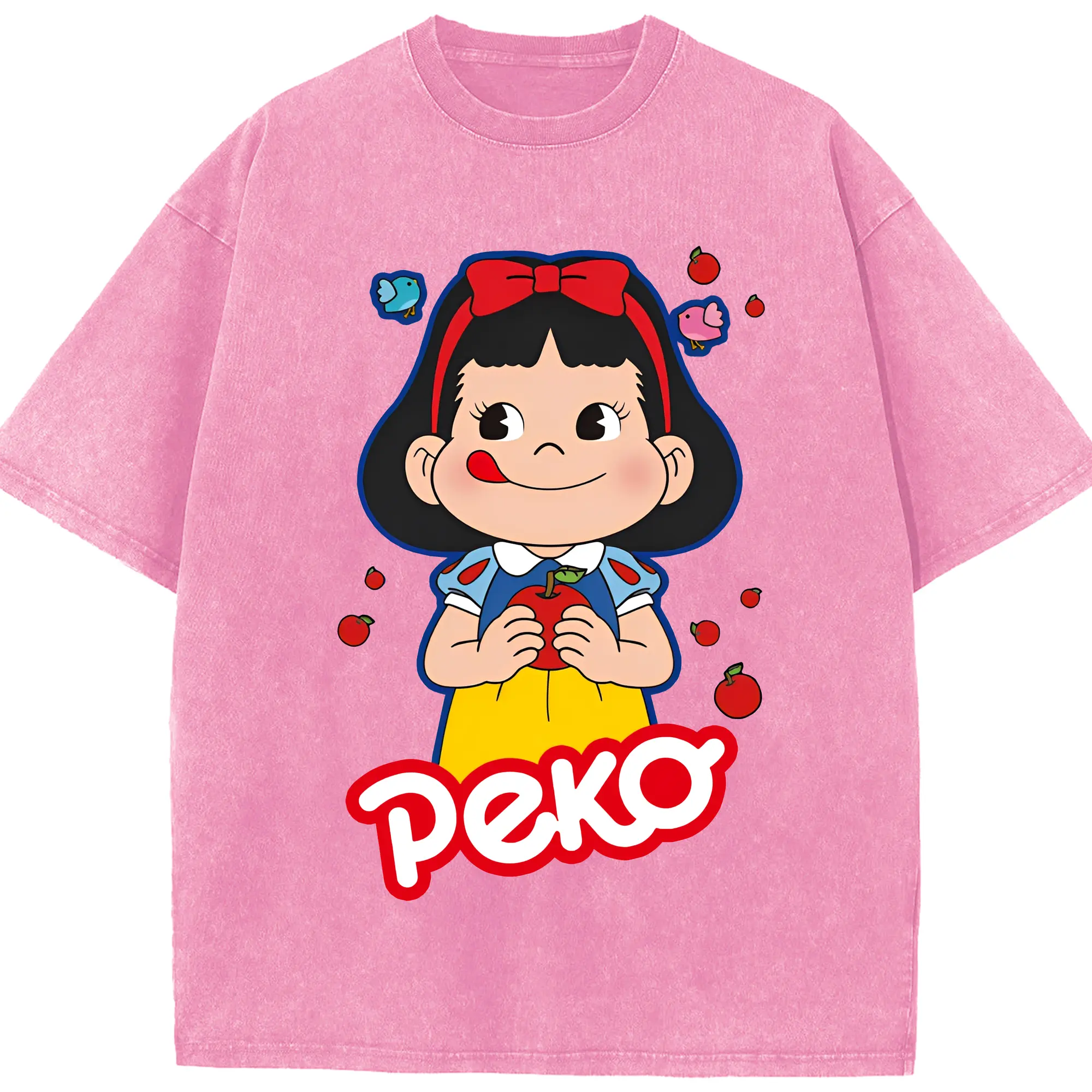 不二家ペコちゃん×白雪姫 スペシャルコラボグッズ - 綿100% 半袖Tシャツ ・ フロントプリント ・ 快適 通気性 ・ 日常使い 散歩 スポーツ用
