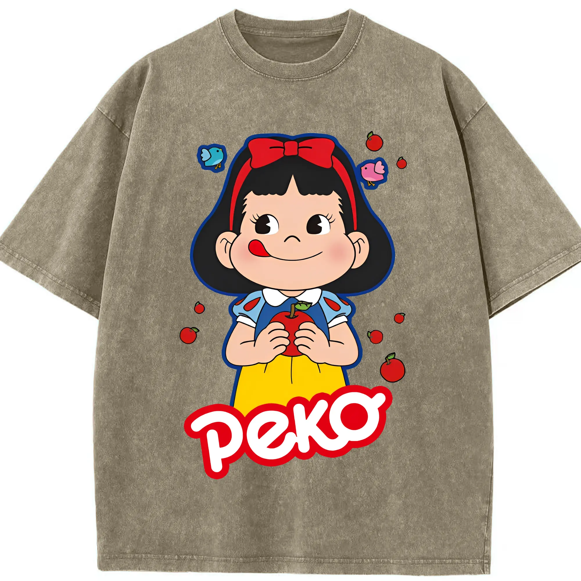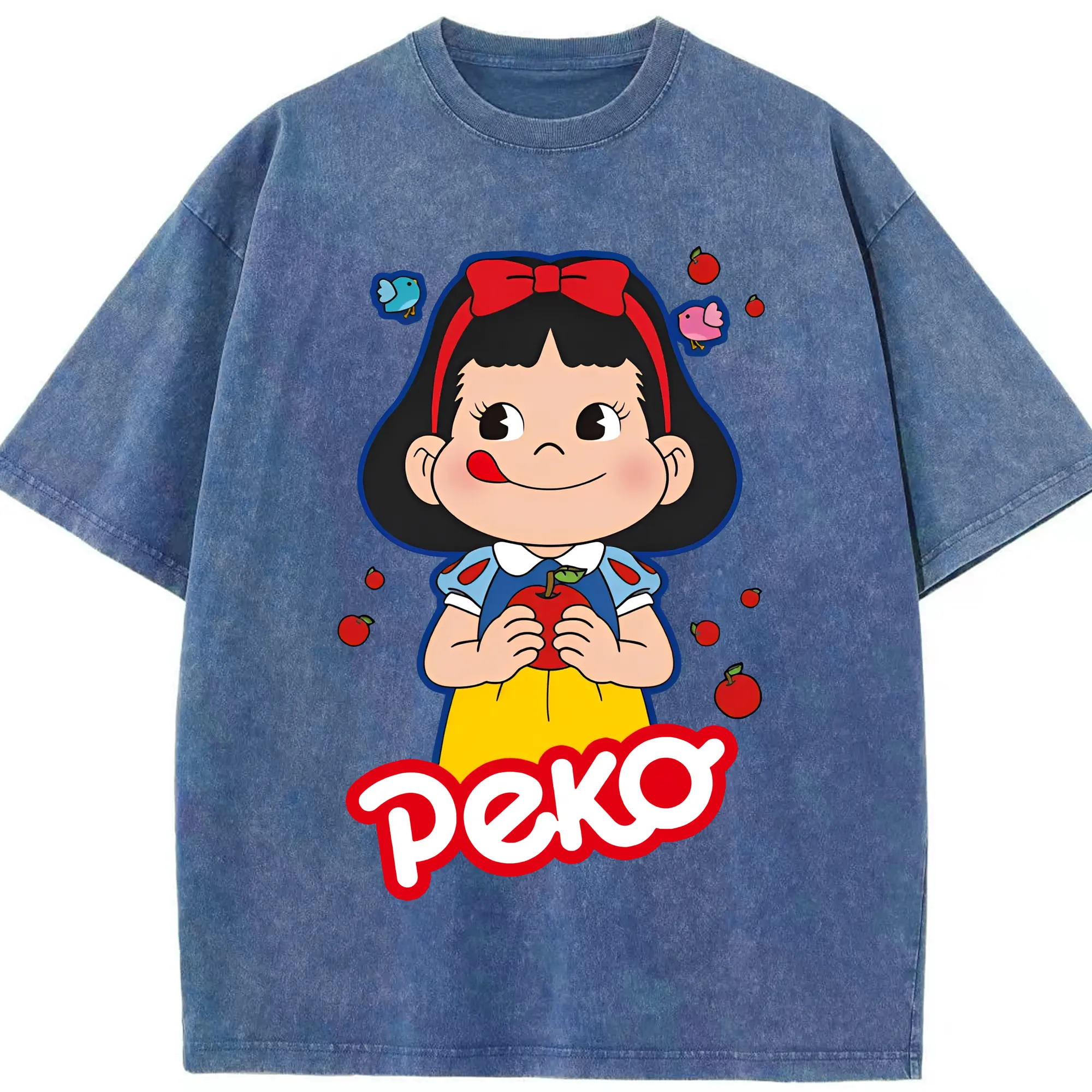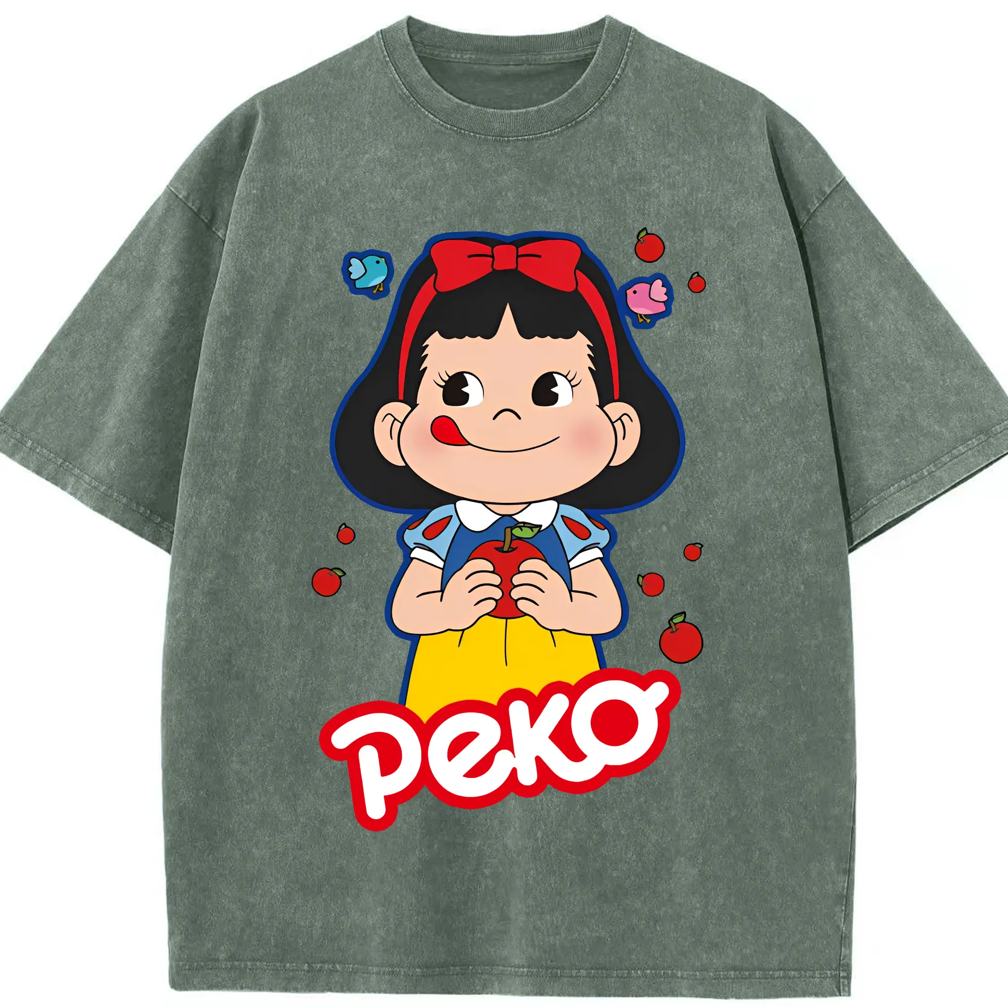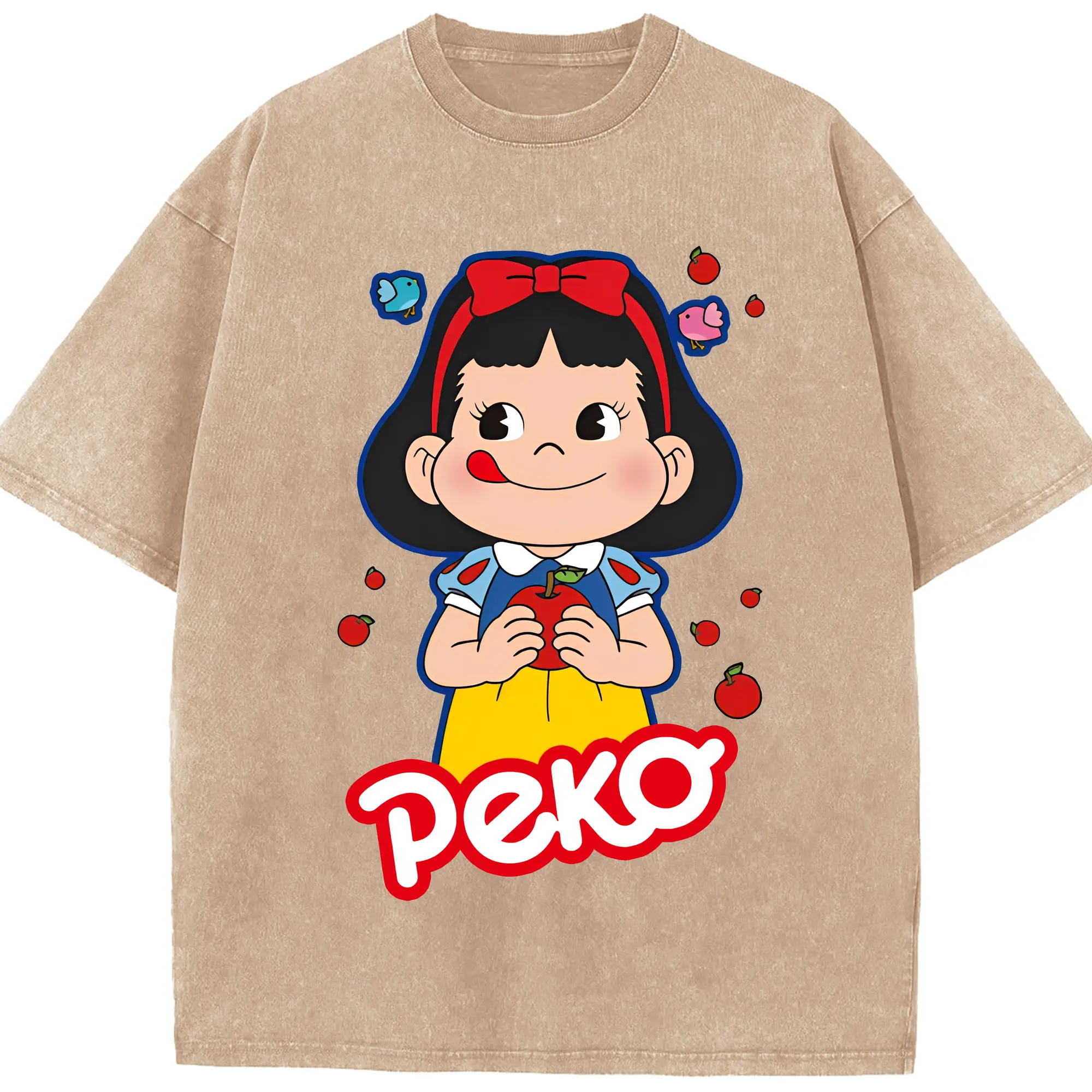不二家ペコちゃん×白雪姫 スペシャルコラボグッズ - 綿100% 半袖Tシャツ ・ フロントプリント ・ 快適 通気性 ・ 日常使い 散歩 スポーツ用
