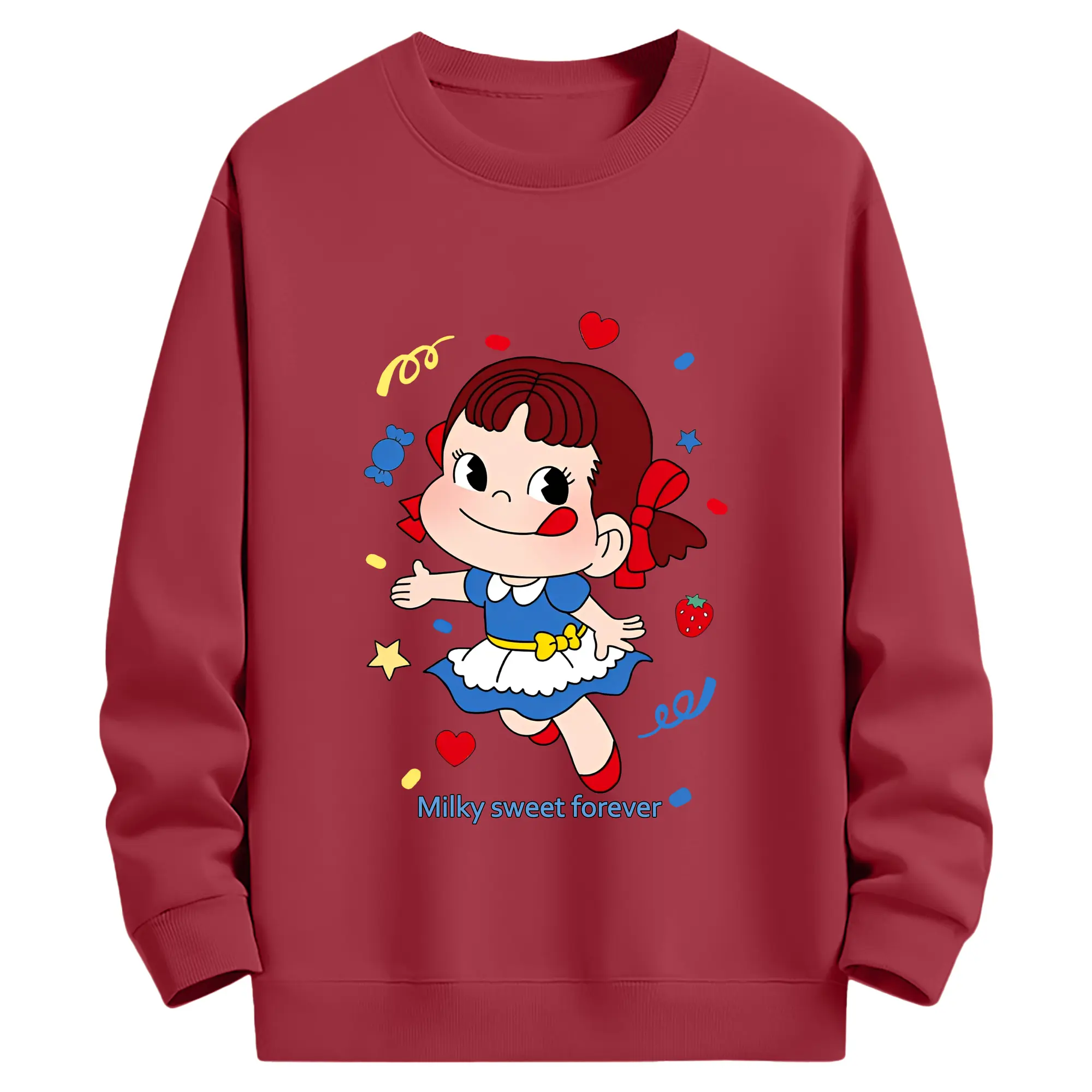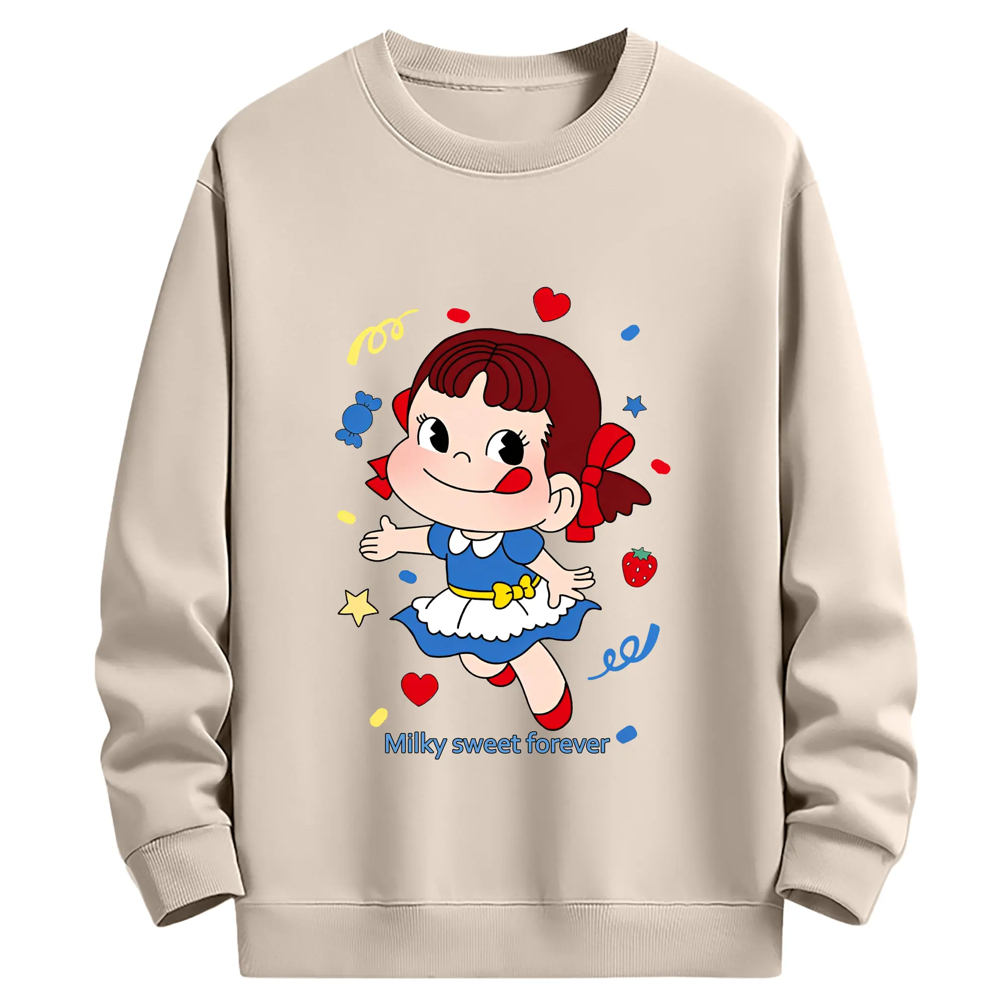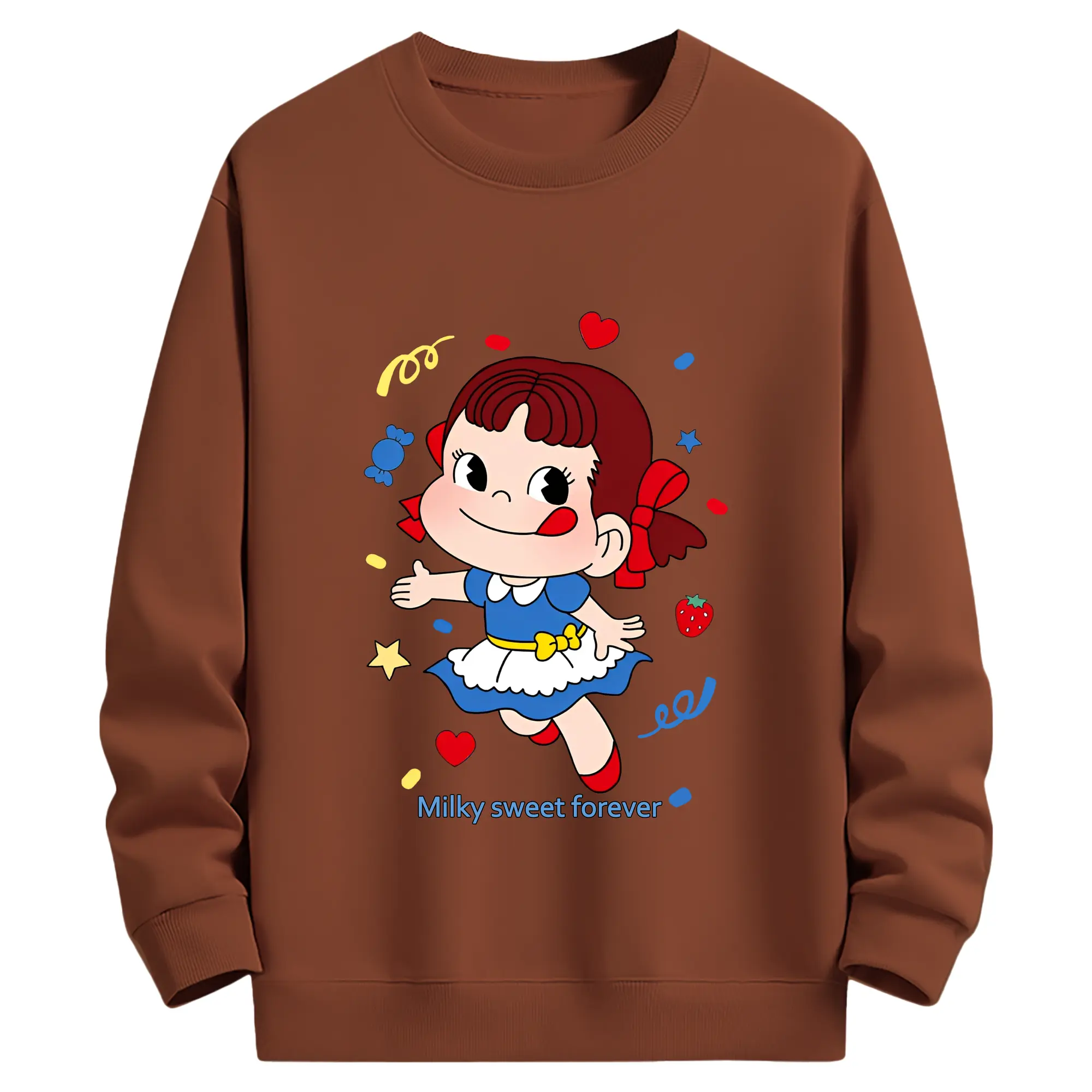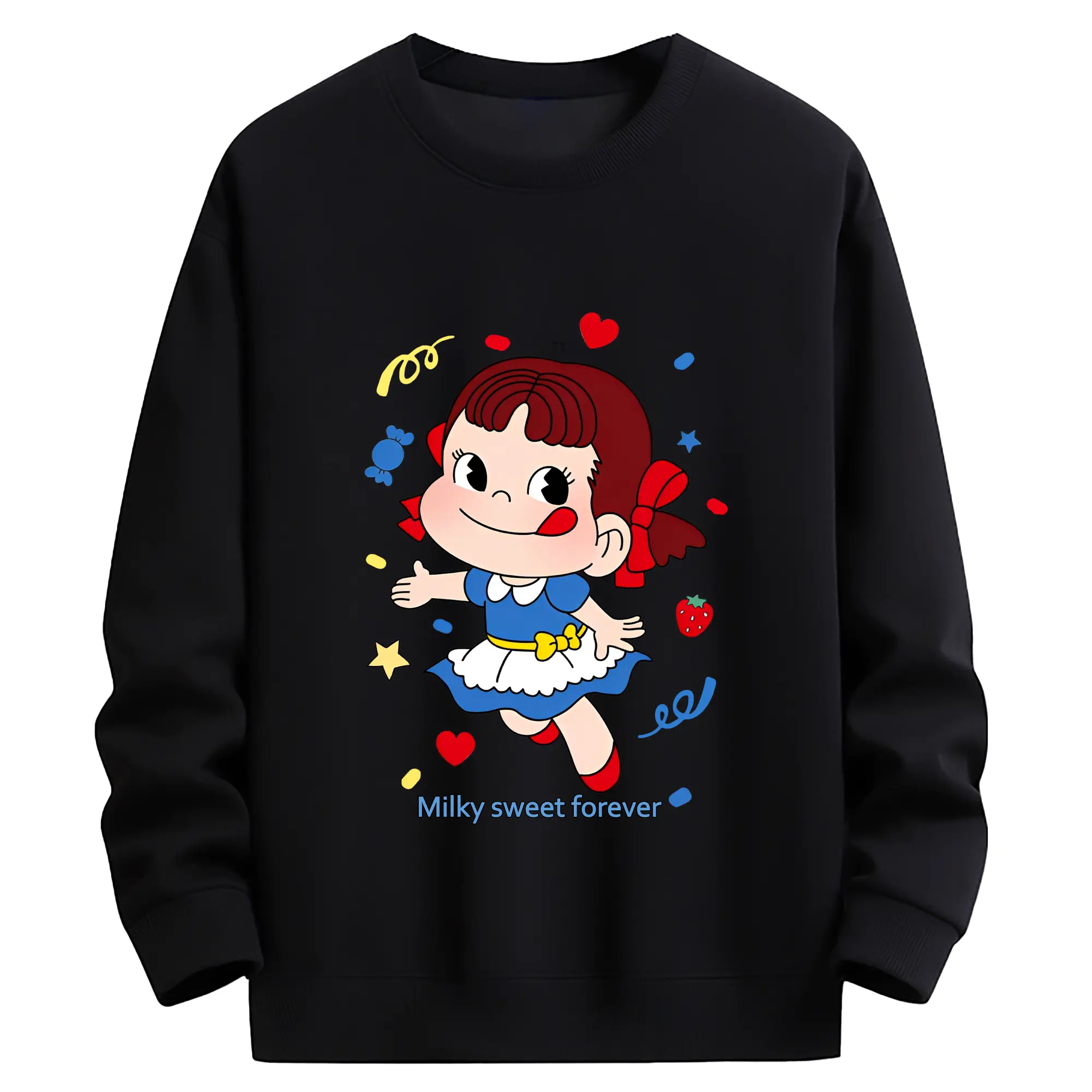 不二家 ペコちゃん スイーツ ミルク味 お菓子 - 綿100% 半袖Tシャツ ・ フロントプリント ・ 快適 通気性 ・ 日常使い 散歩 スポーツ用
