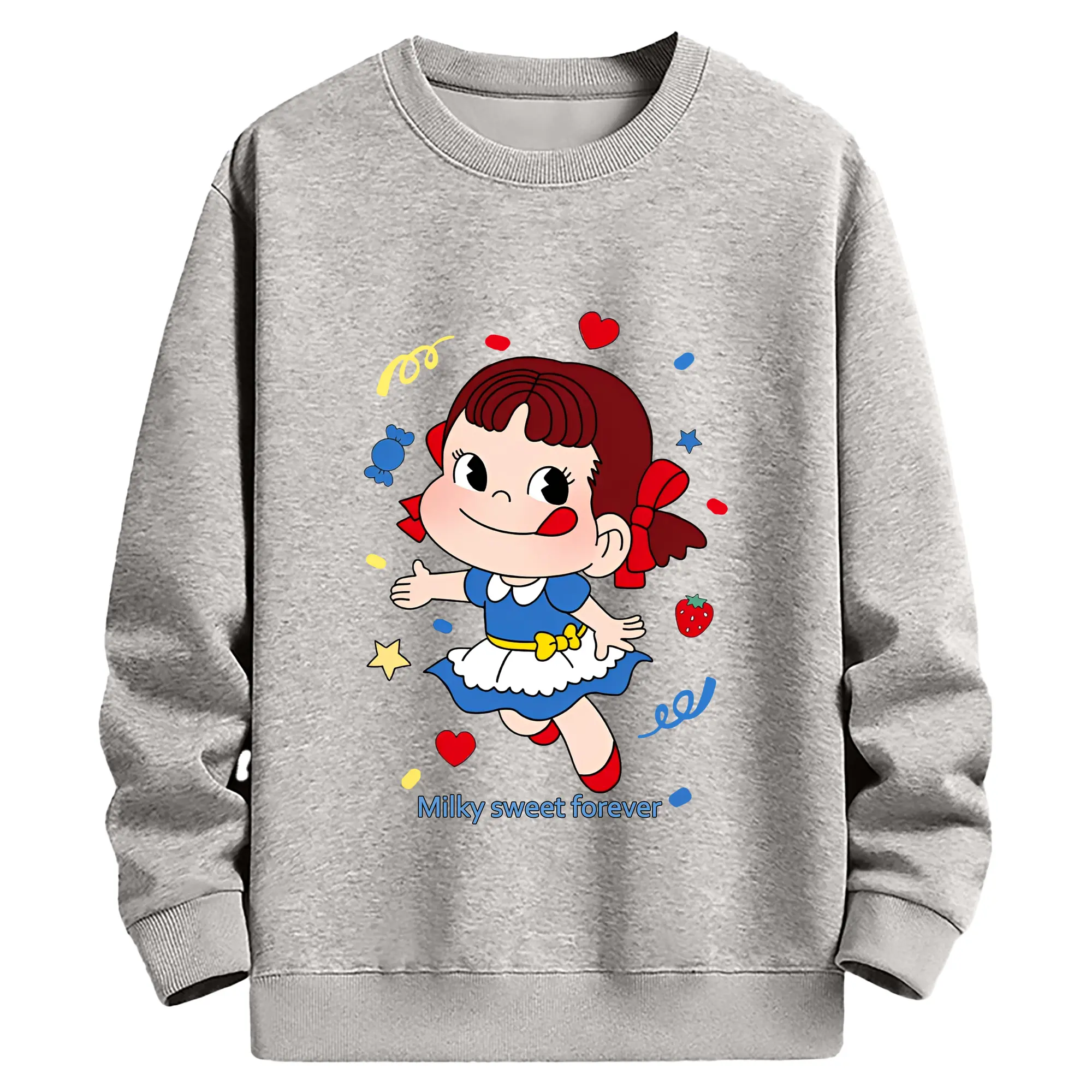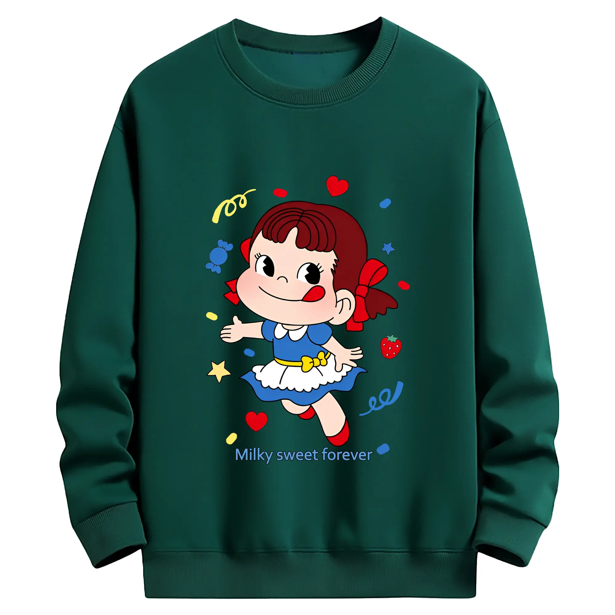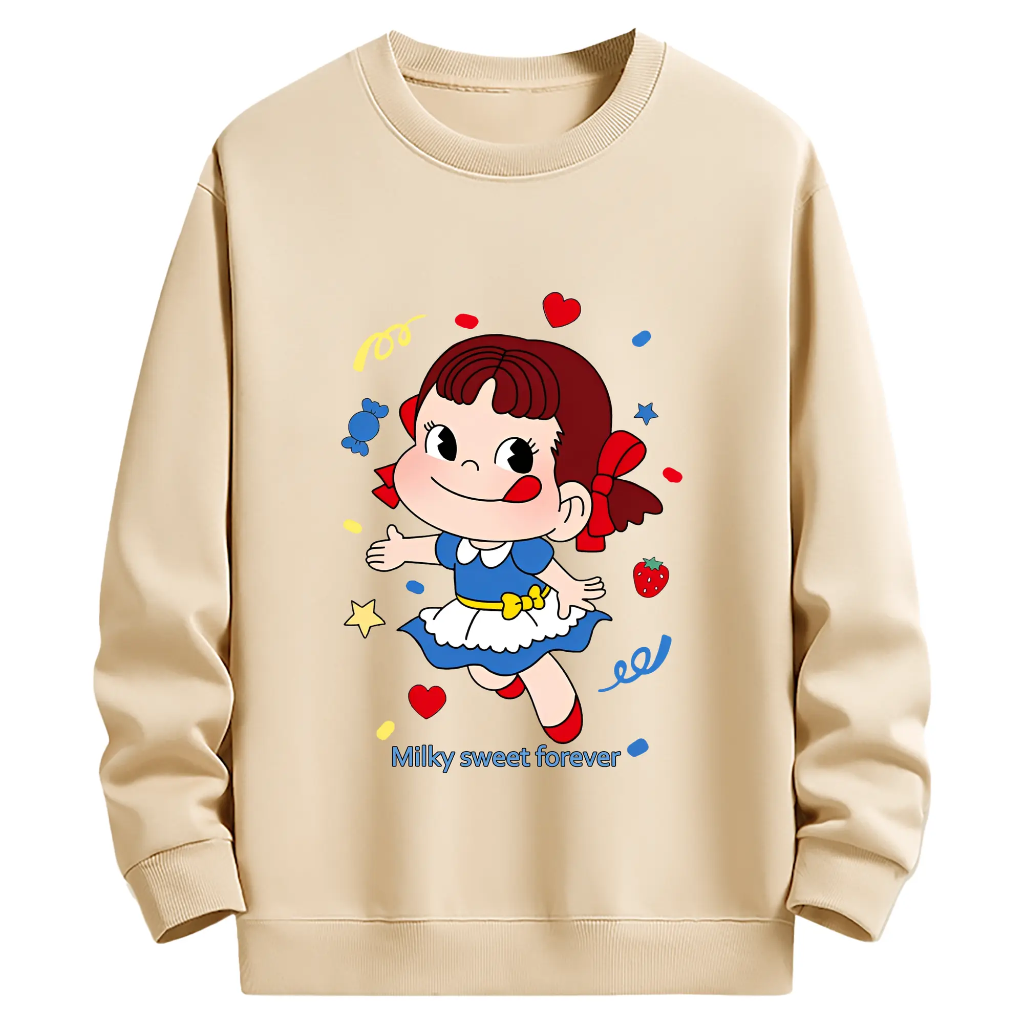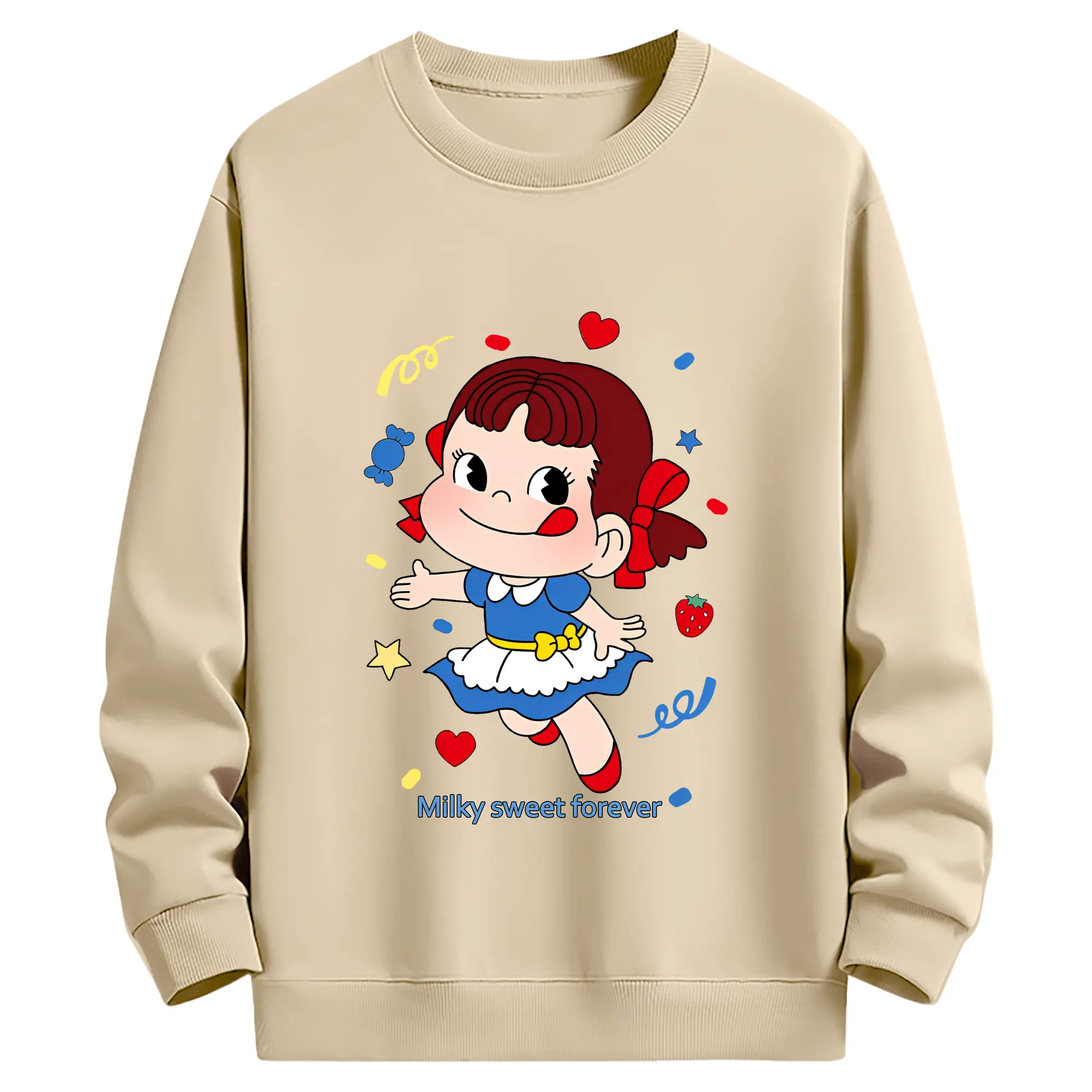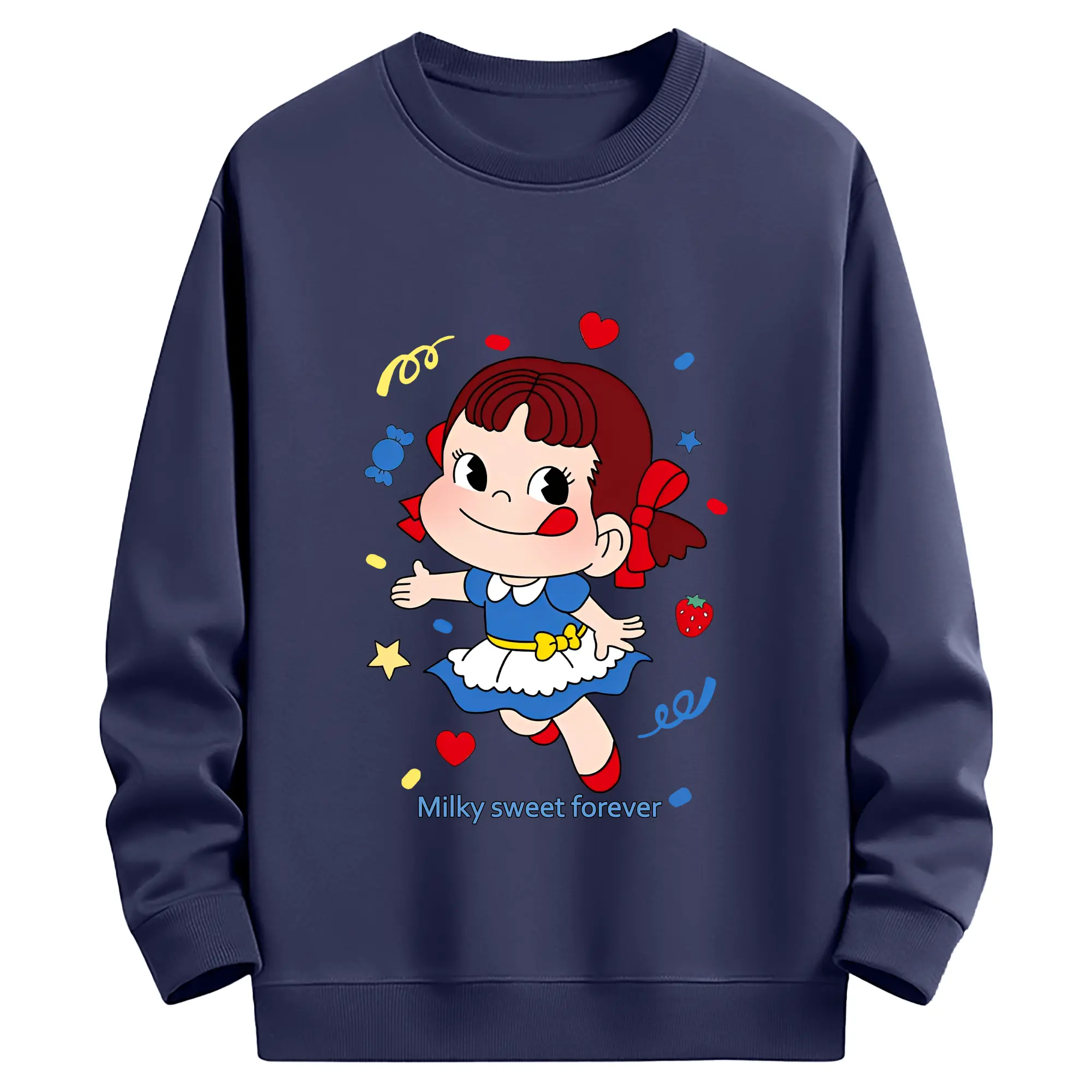 不二家 ペコちゃん スイーツ ミルク味 お菓子 - 綿100% 半袖Tシャツ ・ フロントプリント ・ 快適 通気性 ・ 日常使い 散歩 スポーツ用