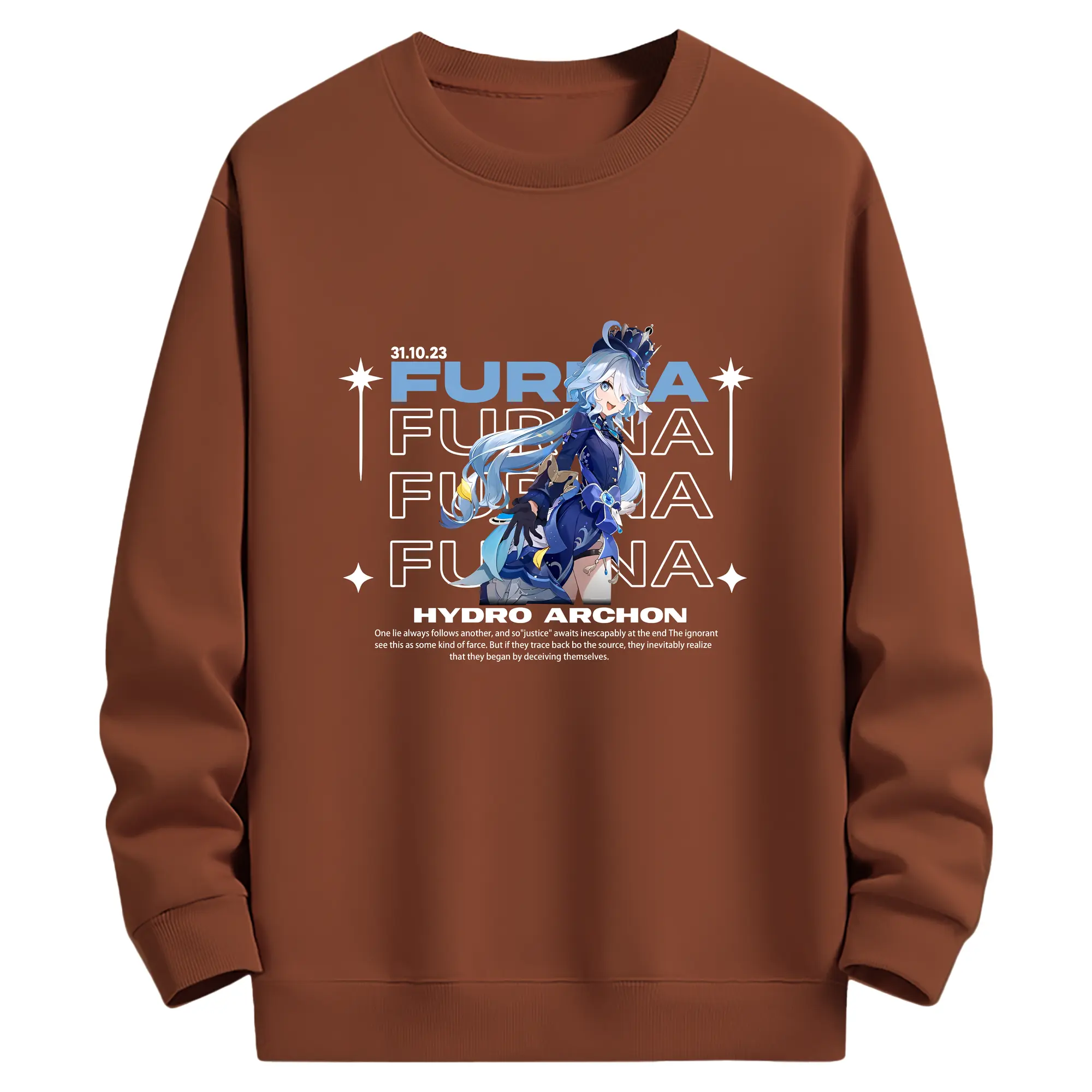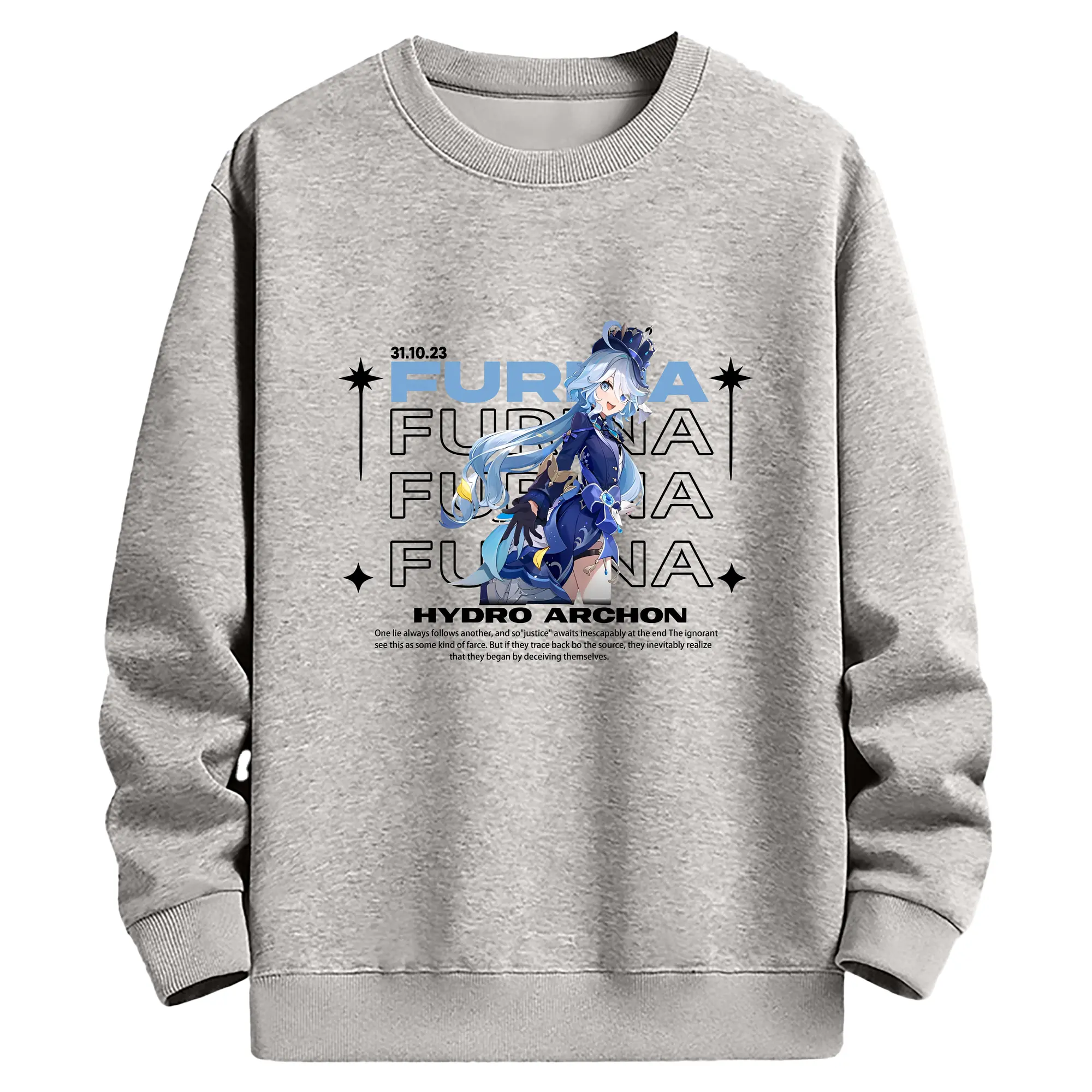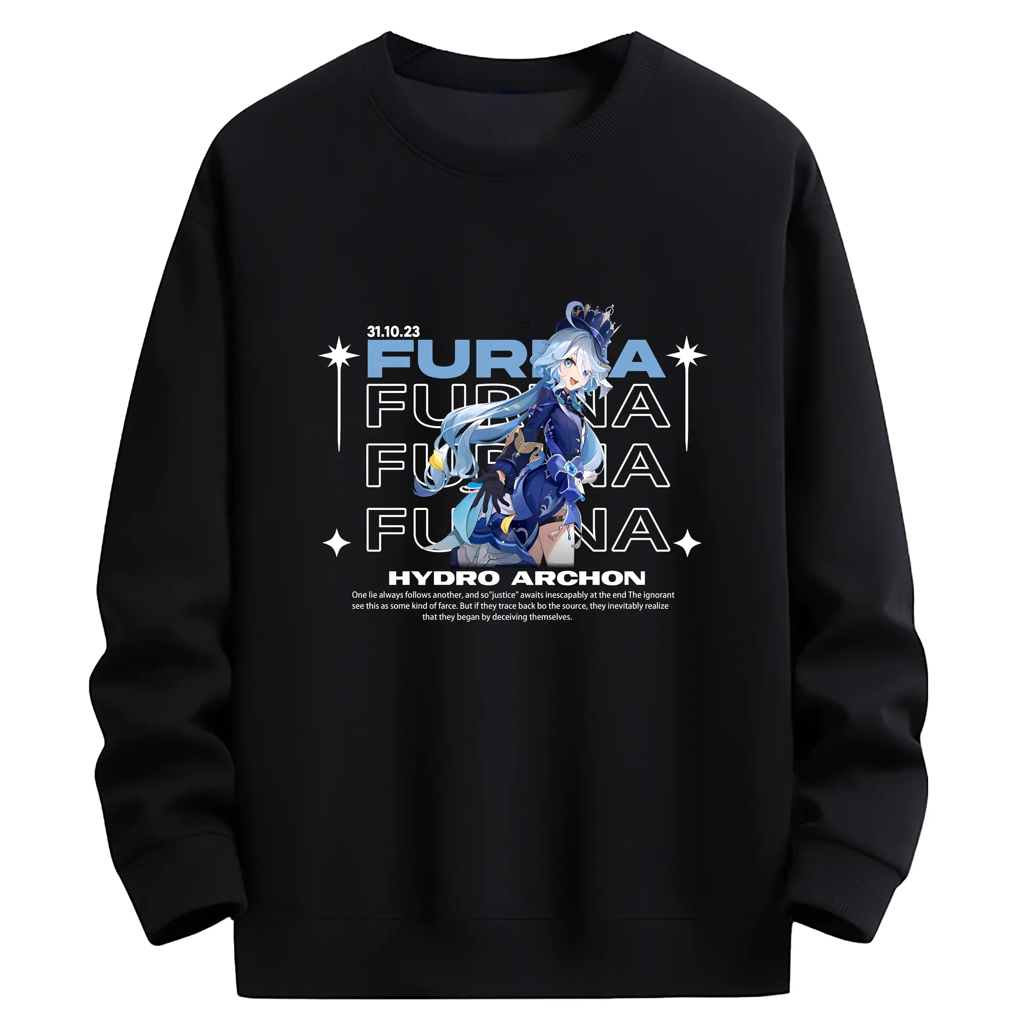 二次元 Furina ファン必見!萌えデザインキャラクター - 綿100% 半袖Tシャツ ・ フロントプリント ・ 快適 通気性 ・ 日常使い 散歩 スポーツ用