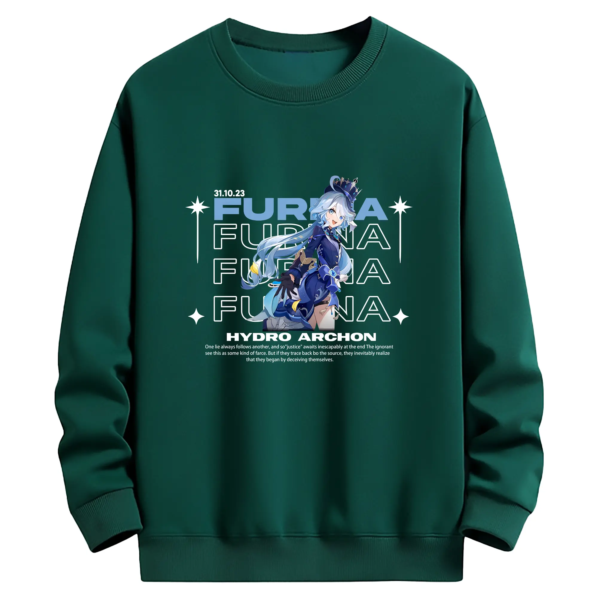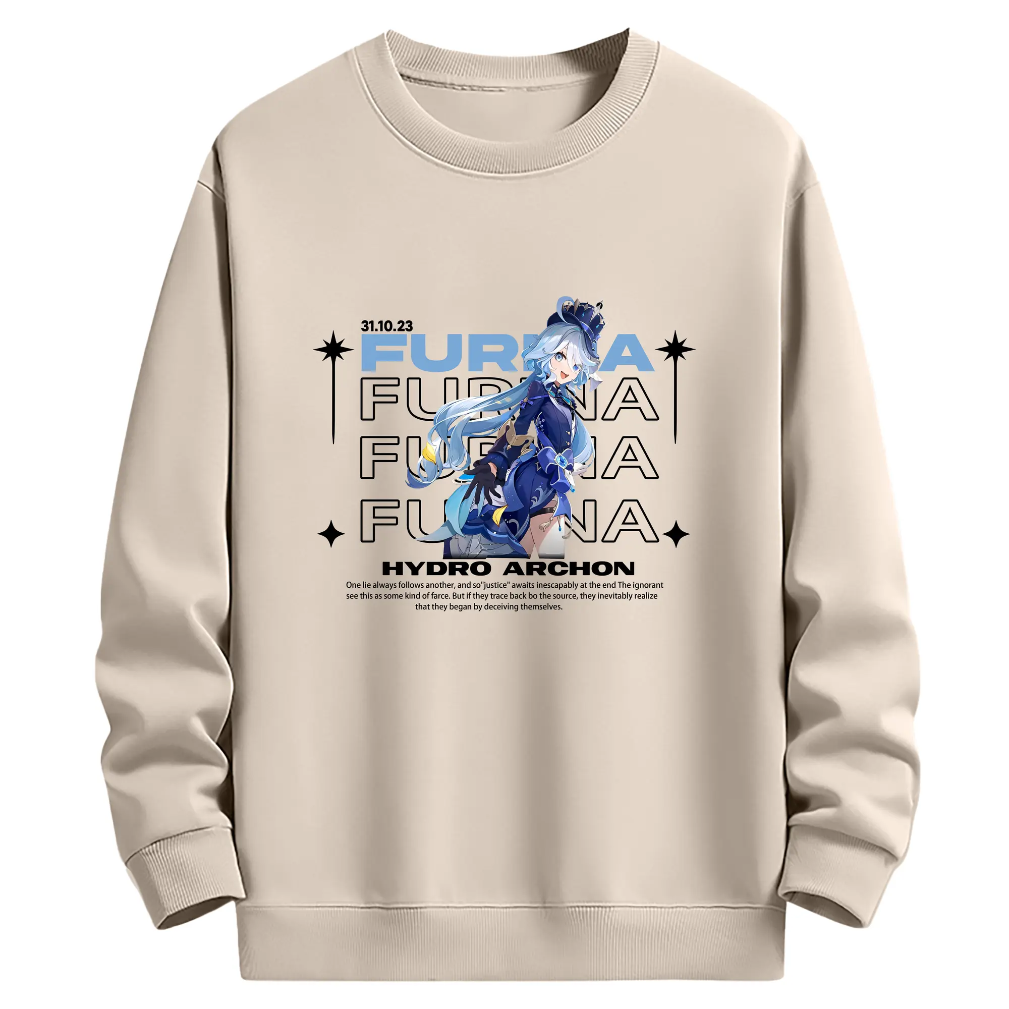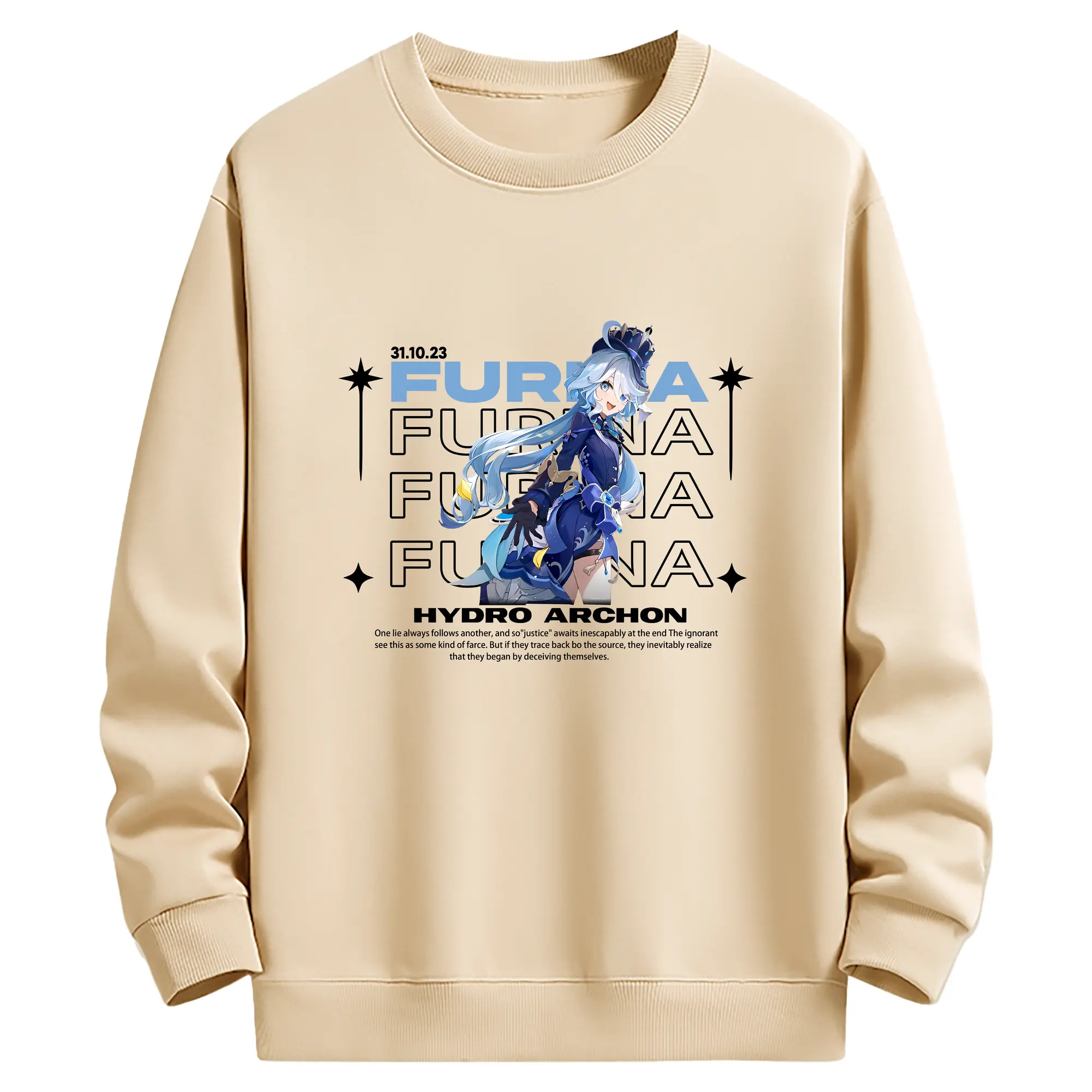二次元 Furina ファン必見!萌えデザインキャラクター - 綿100% 半袖Tシャツ ・ フロントプリント ・ 快適 通気性 ・ 日常使い 散歩 スポーツ用