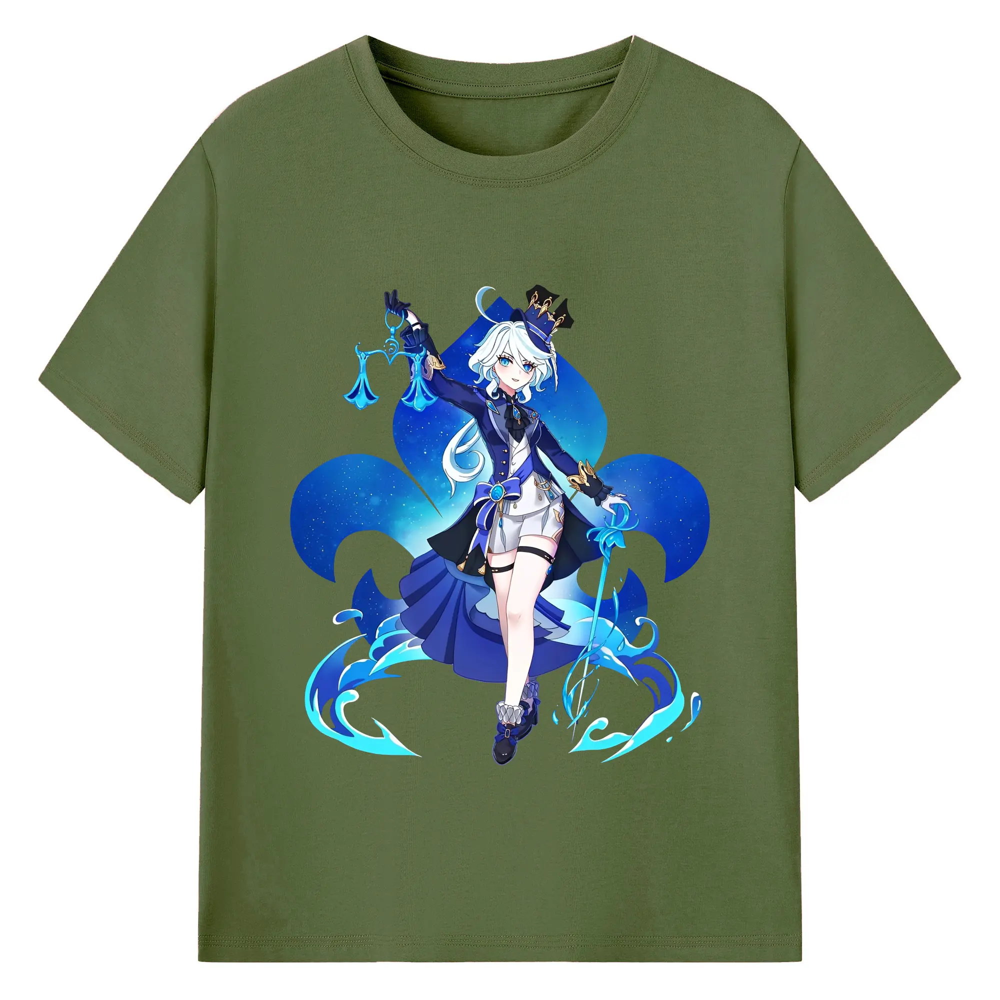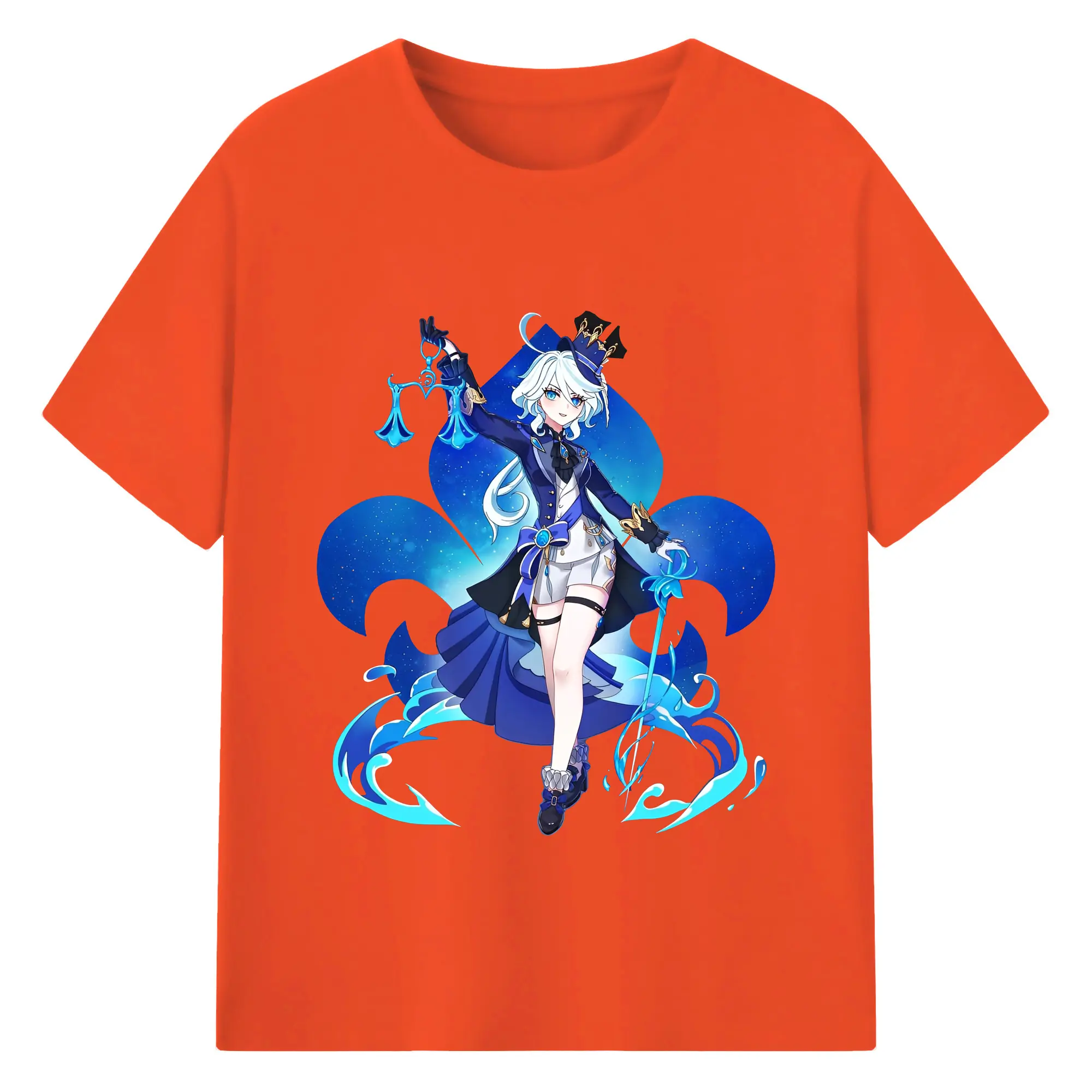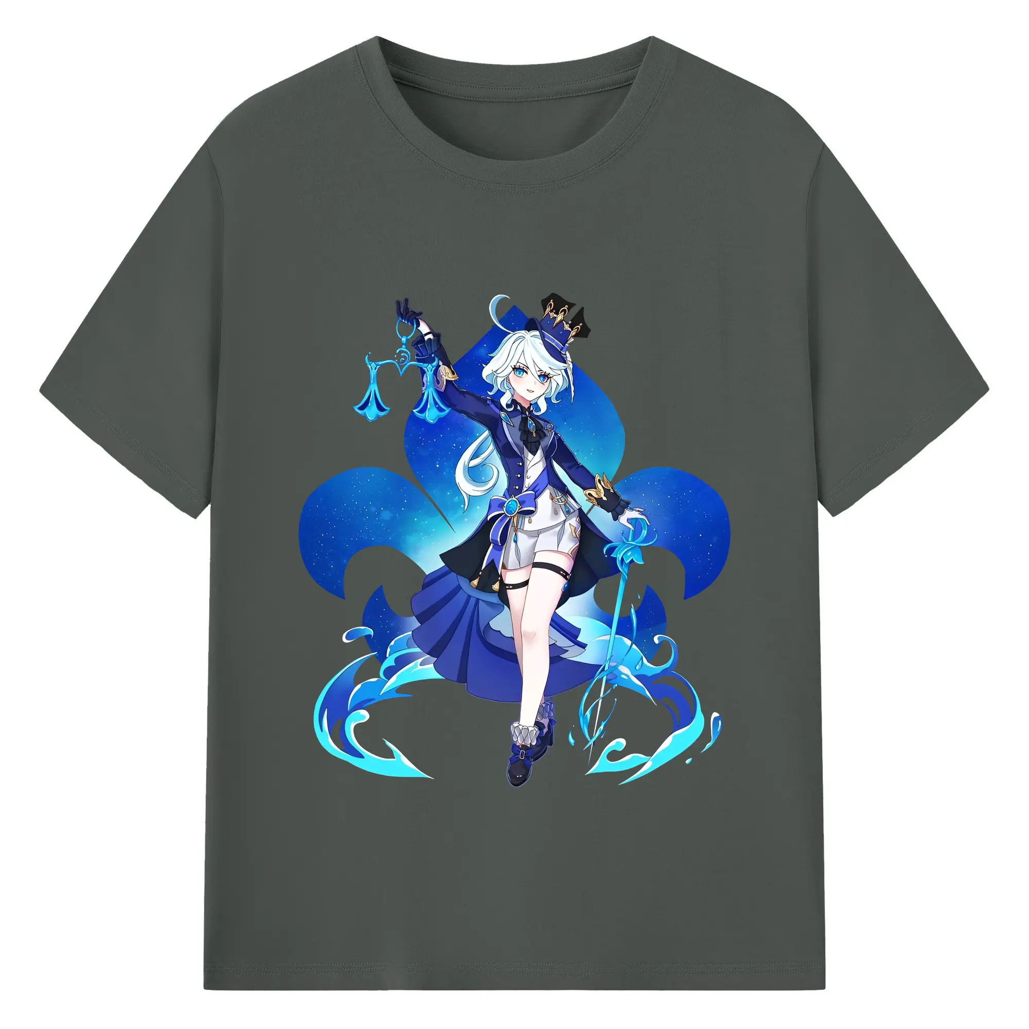 二次元 Furina 限定デザイン キャラクター - 綿100% ヴィンテージ風 半袖Tシャツ ・ フロントプリント ・ 柔らか肌触り ・ 通気性 快適 ・ スポーツ カジュアル 外出用