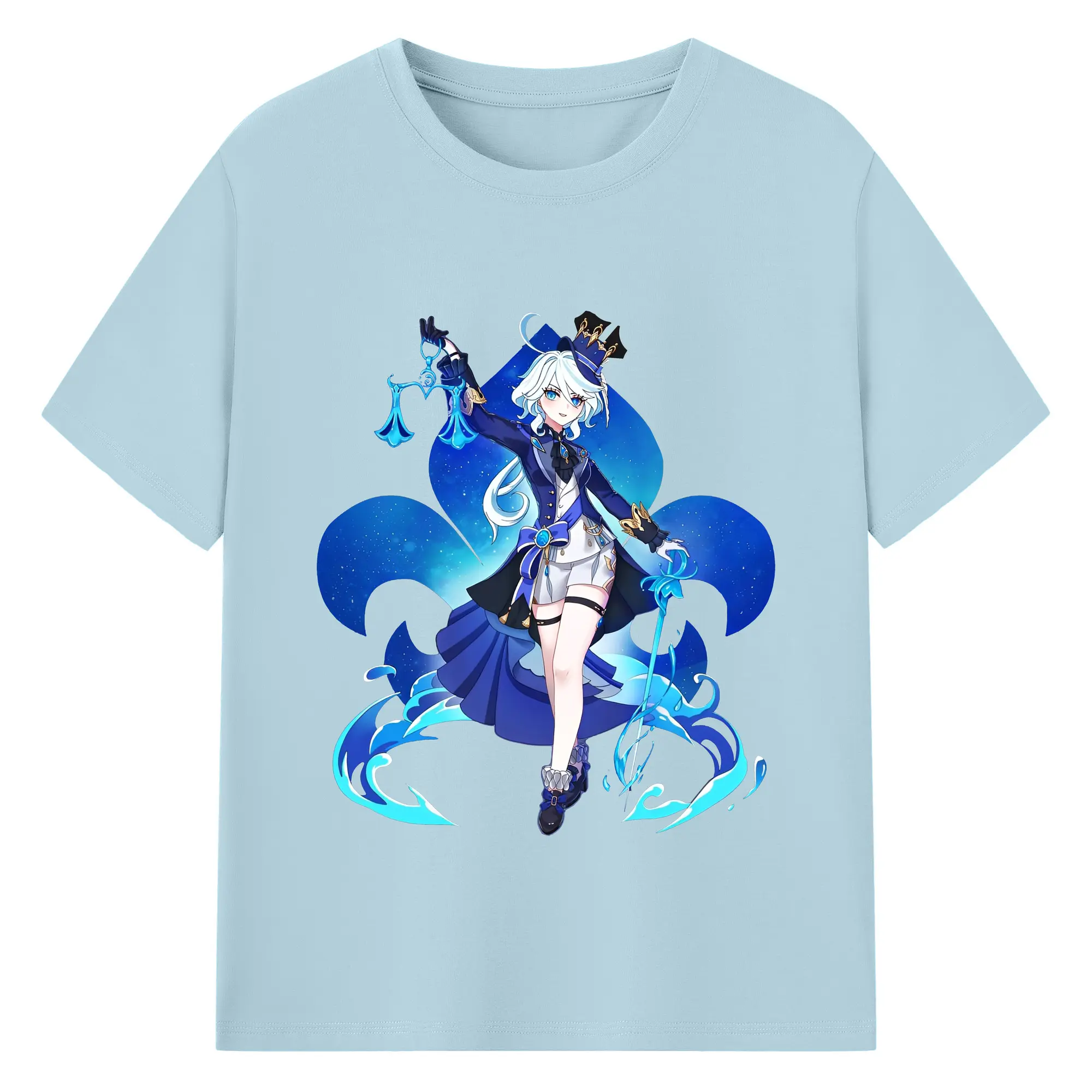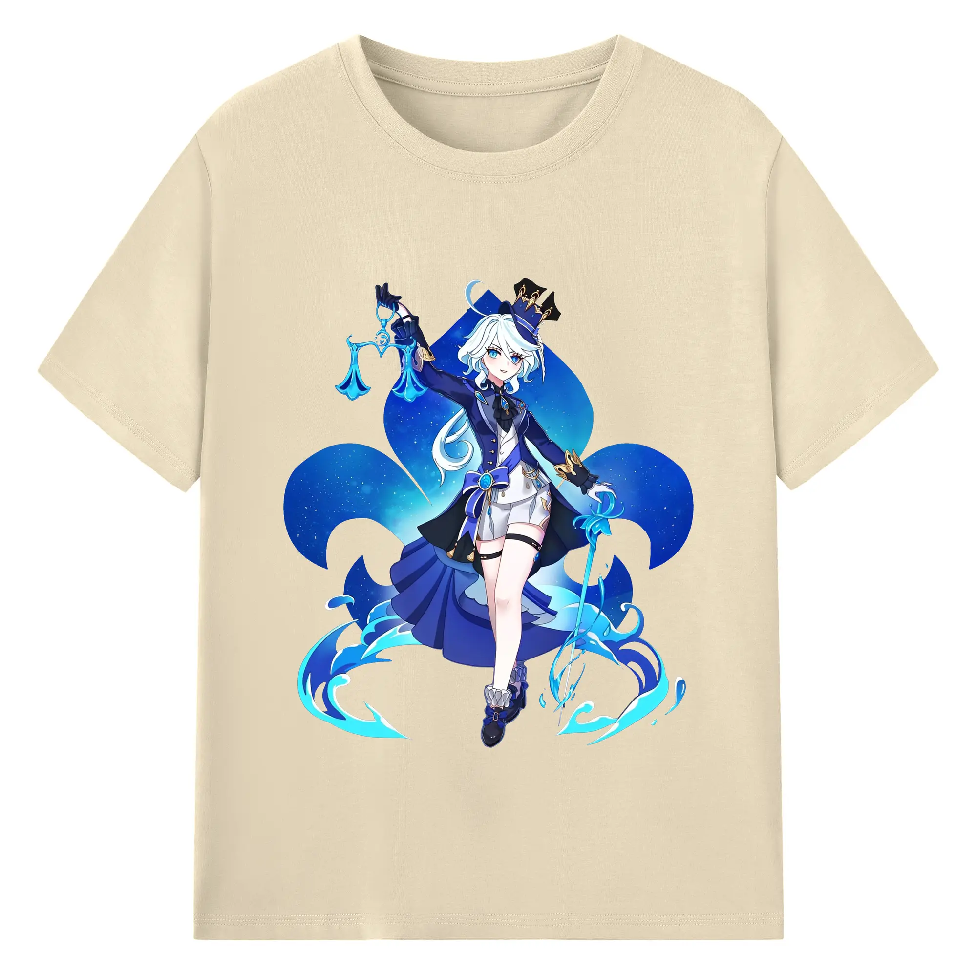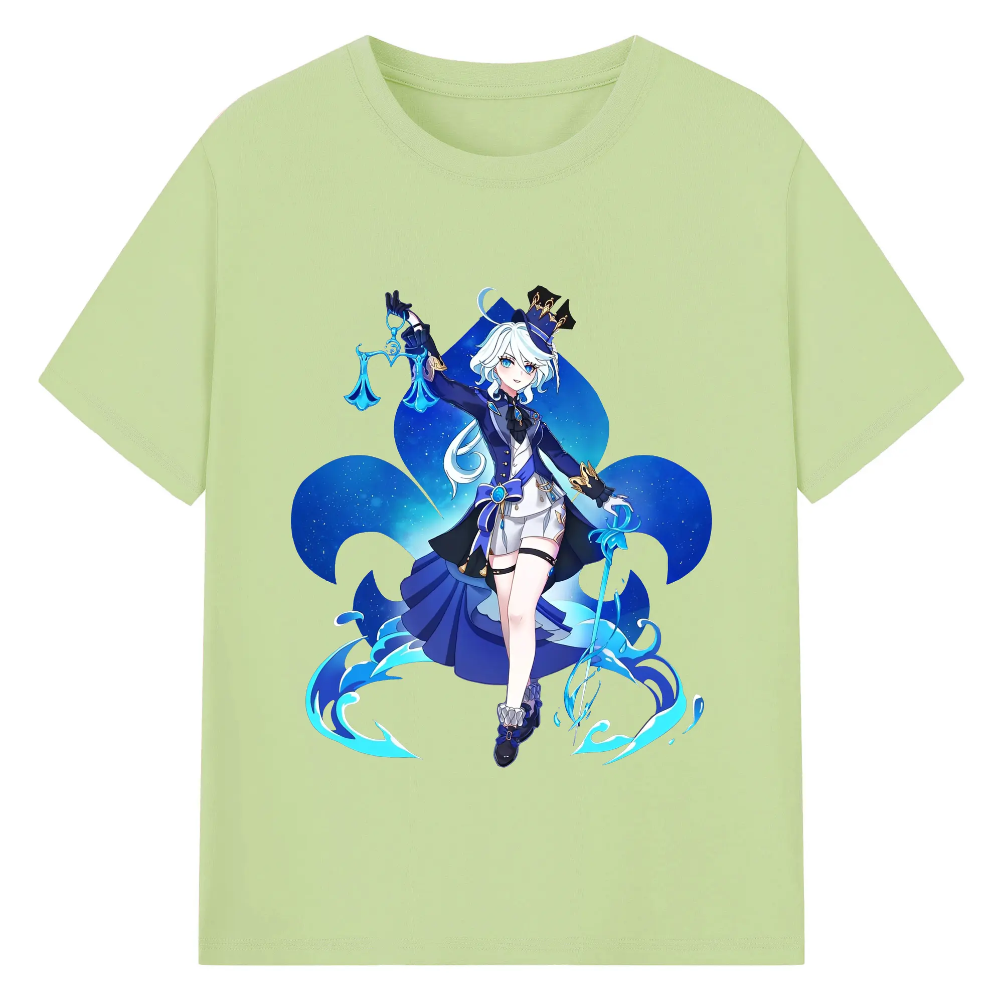 原神 ヌヴィレット 人気キャラクター 限定デザイン【2025新作】 - 綿100% 半袖Tシャツ ・ フロントプリント ・ 快適 通気性 ・ 日常使い 散歩 スポーツ用
