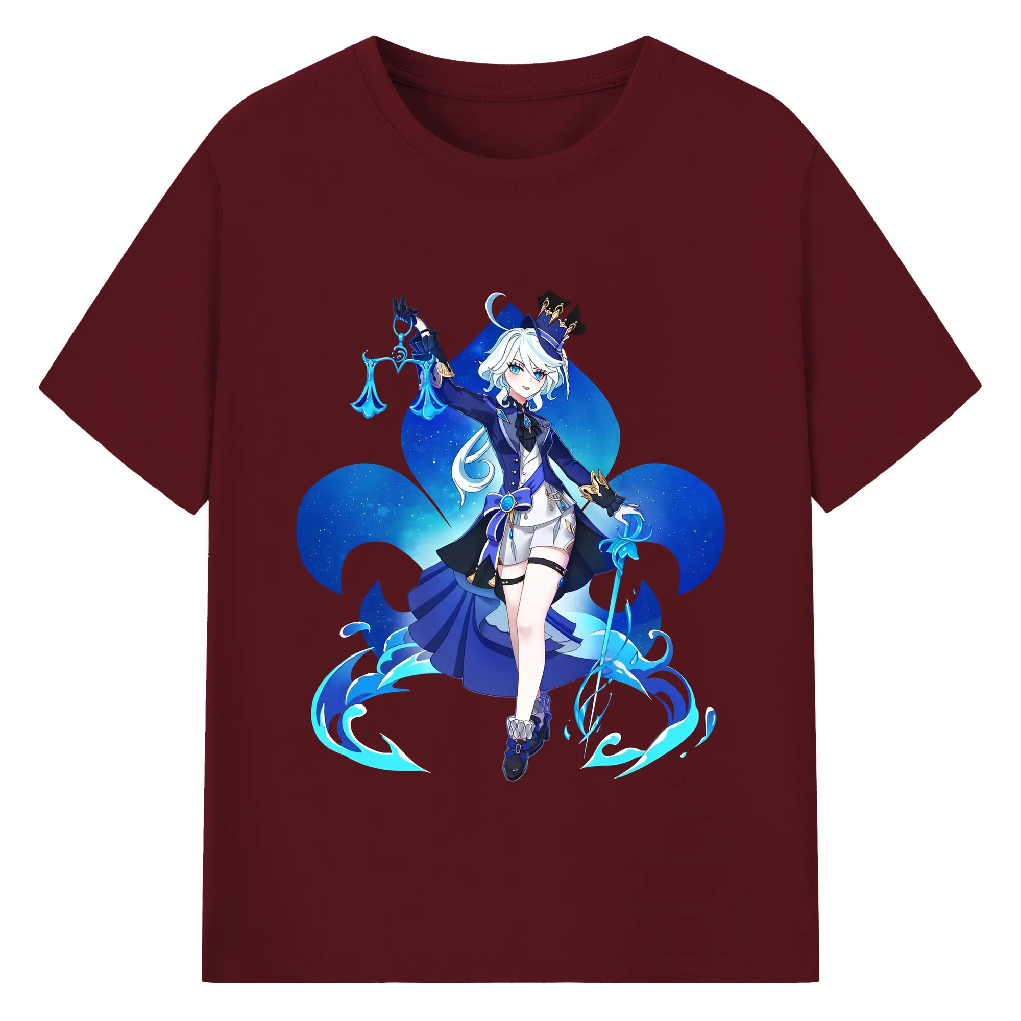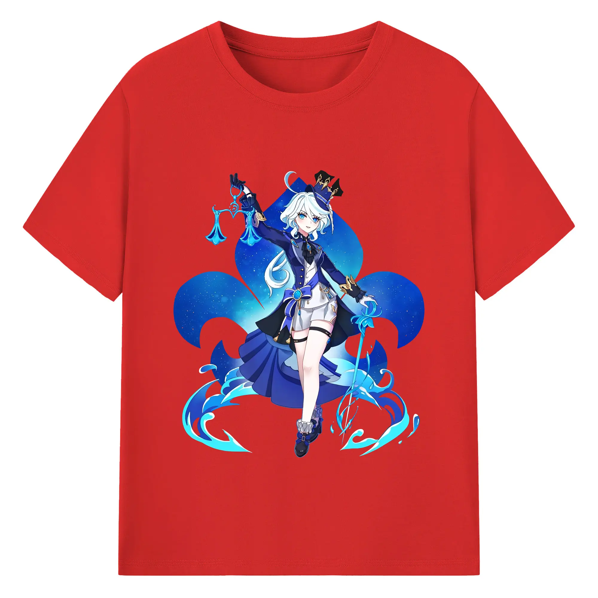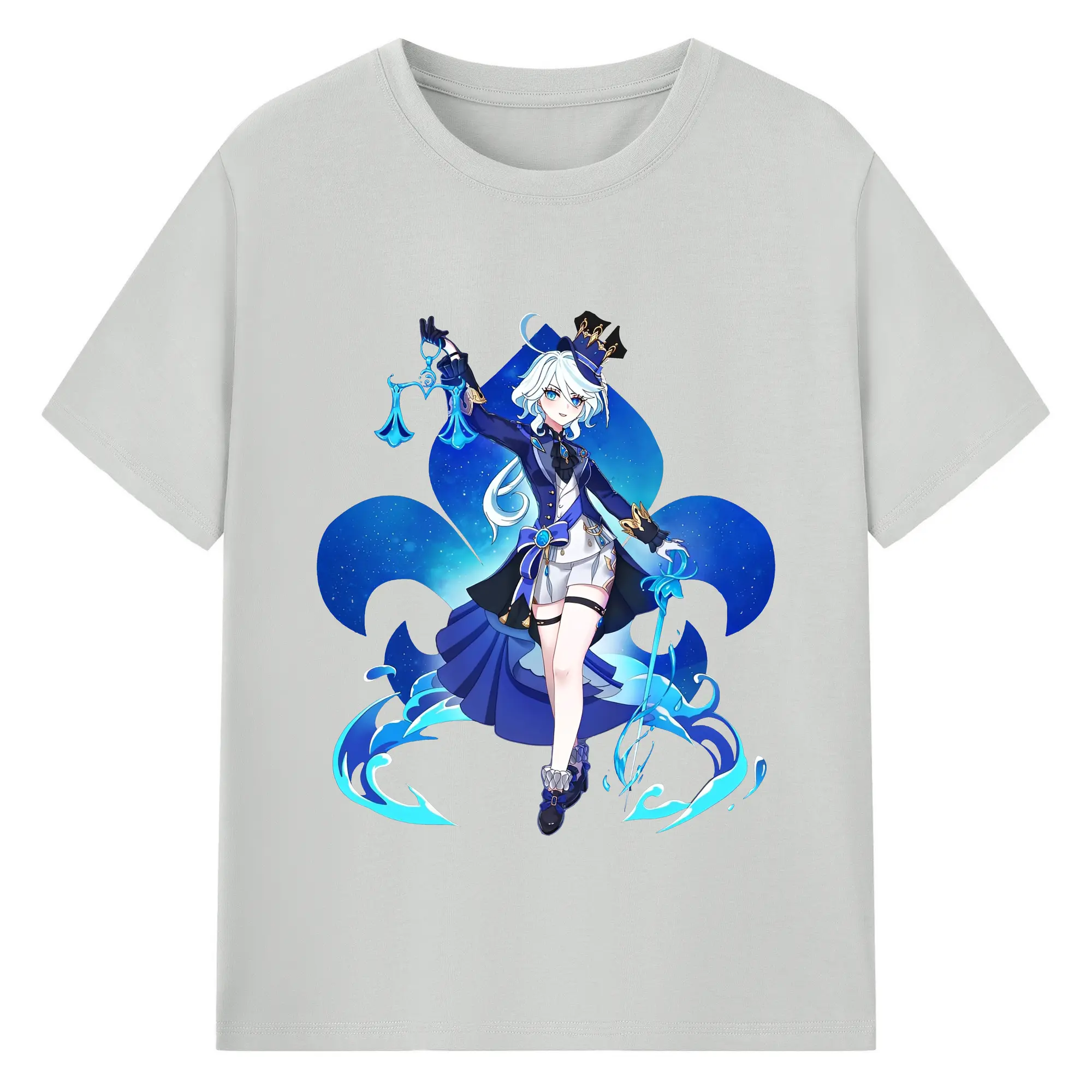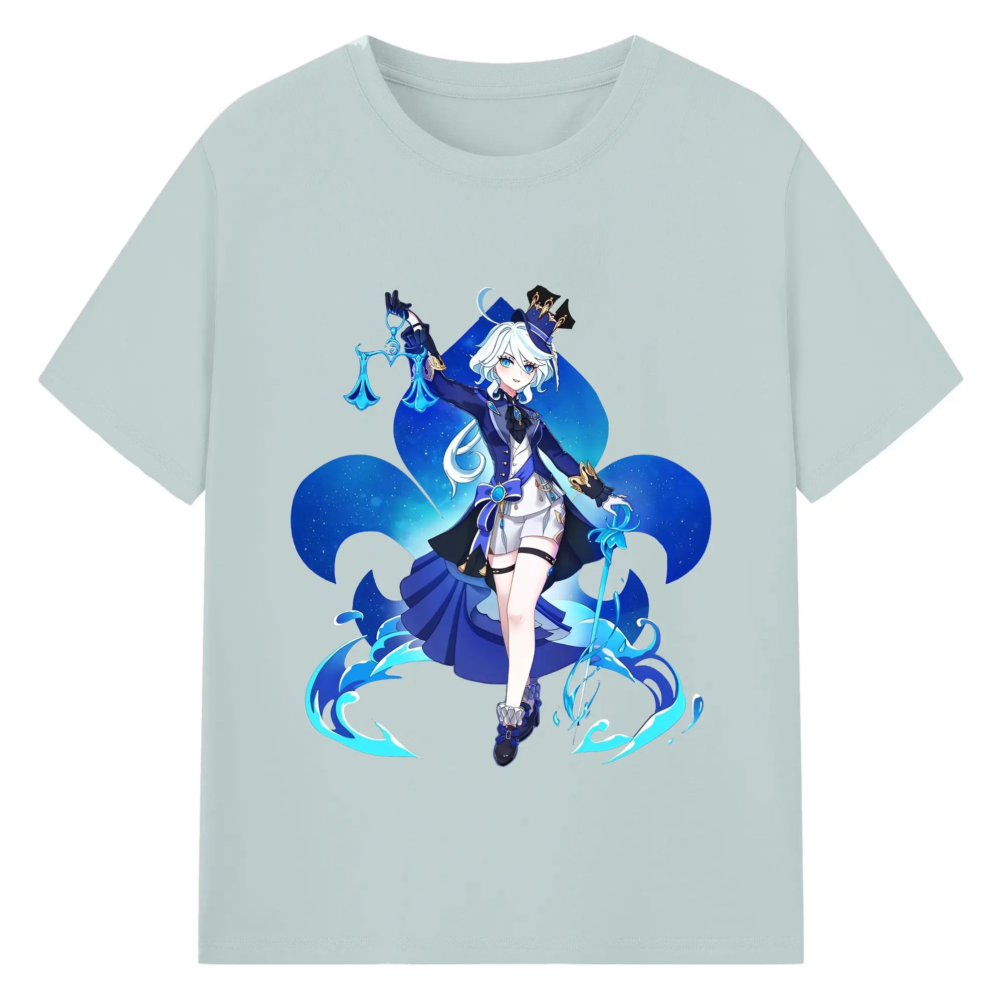 原神 ヌヴィレット 人気キャラクター 限定デザイン【2025新作】 - 綿100% 半袖Tシャツ ・ フロントプリント ・ 快適 通気性 ・ 日常使い 散歩 スポーツ用