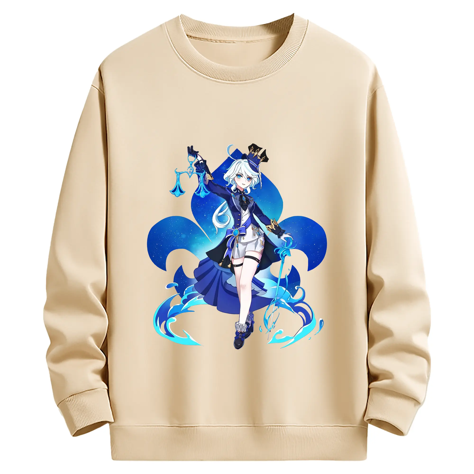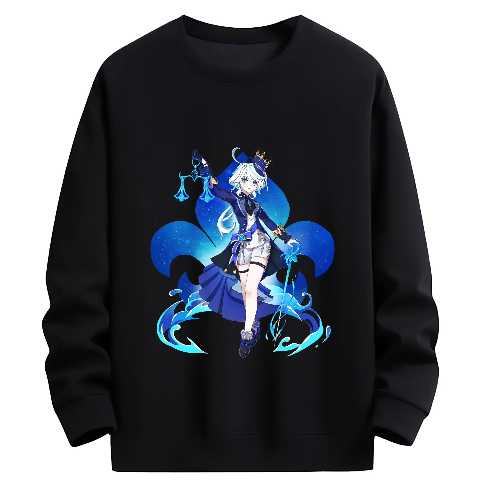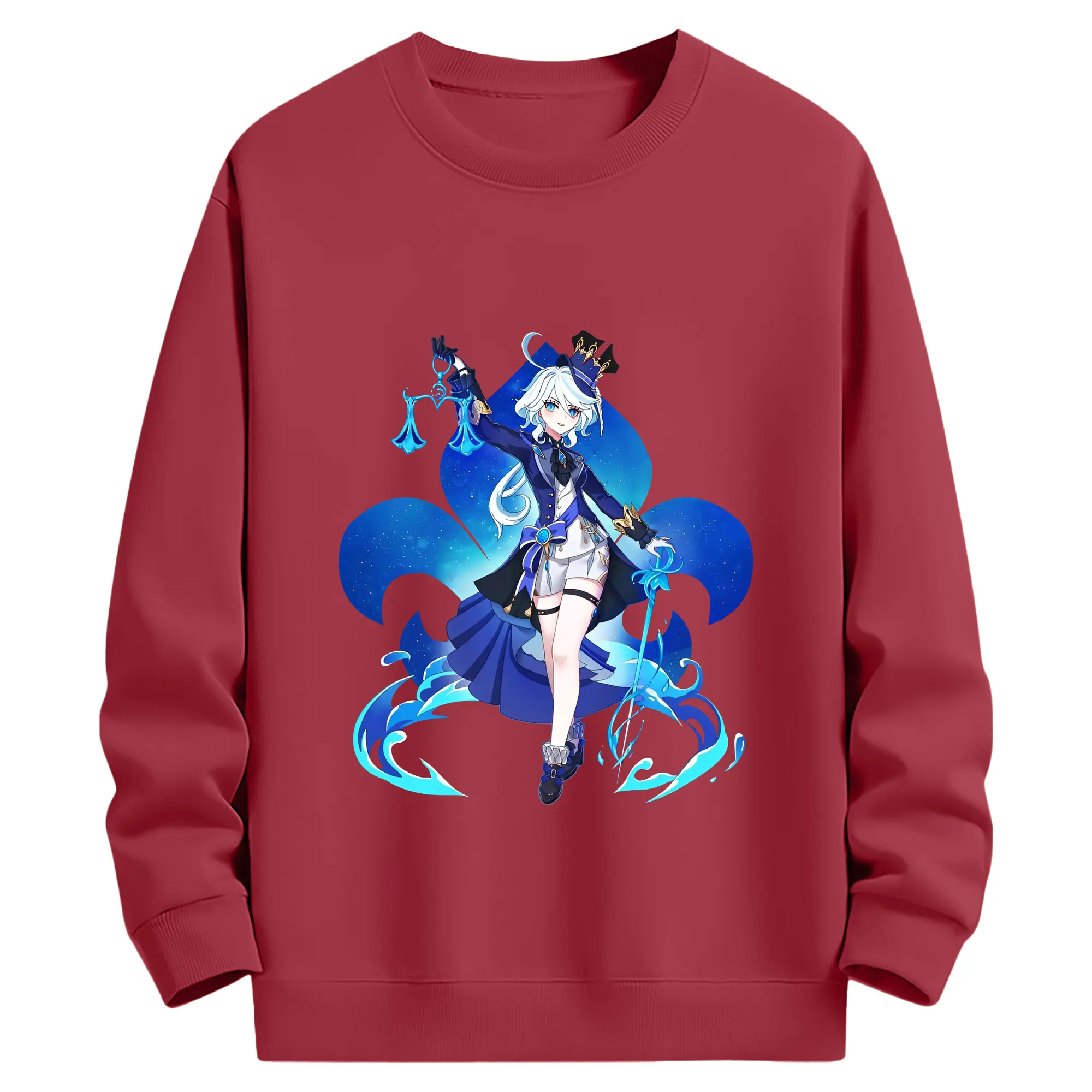 二次元 Furina 限定デザイン キャラクター - 綿100% 半袖Tシャツ ・ フロントプリント ・ 快適 通気性 ・ 日常使い 散歩 スポーツ用