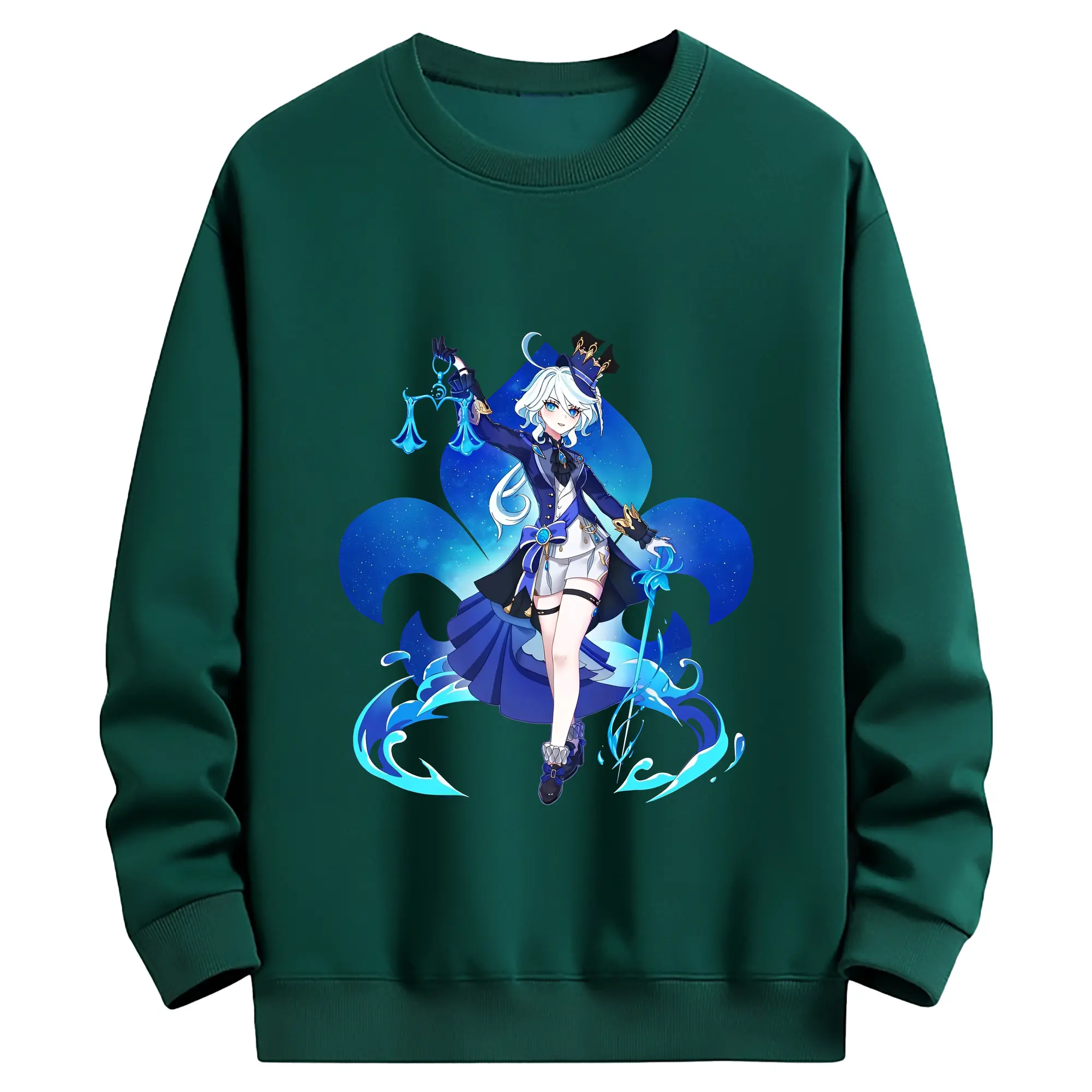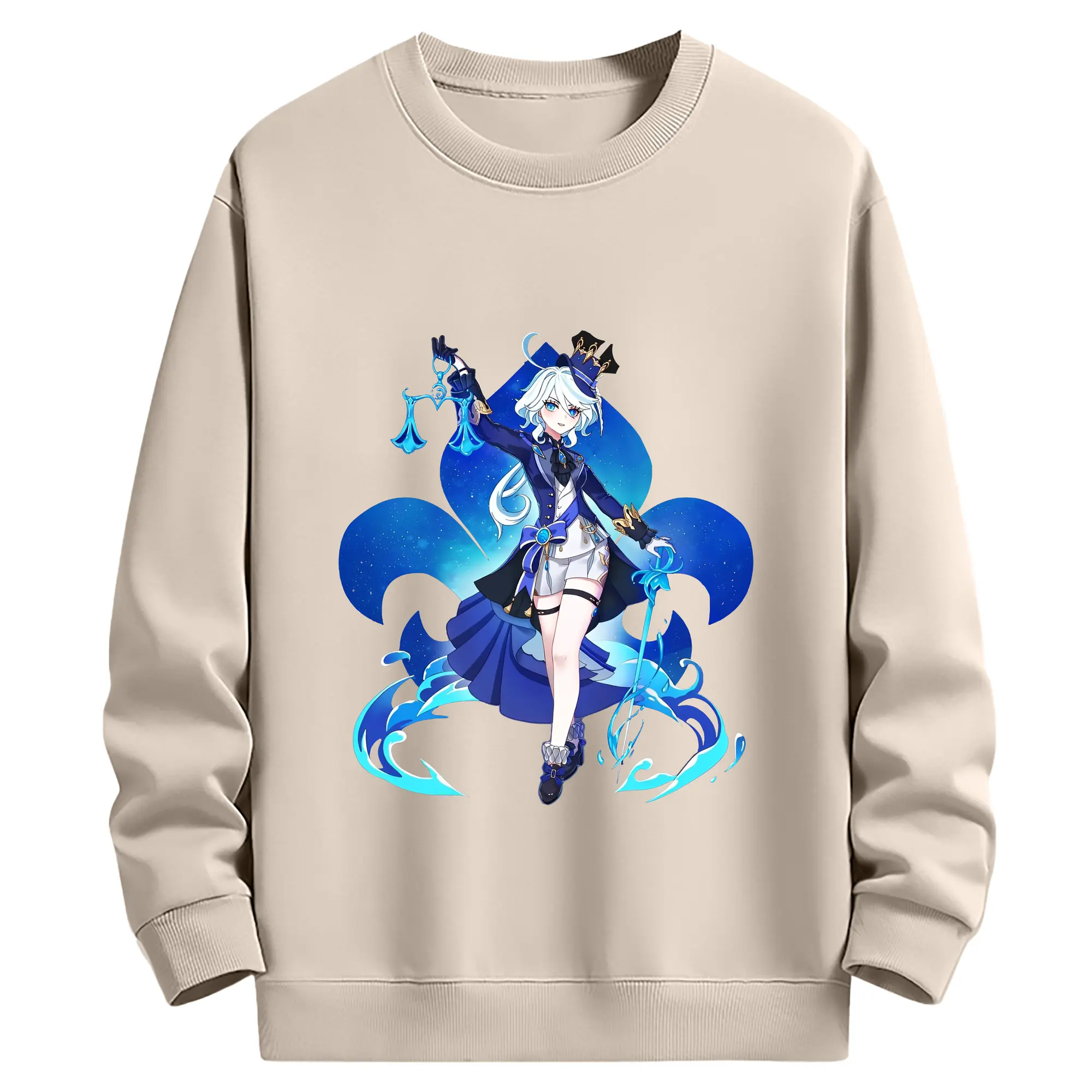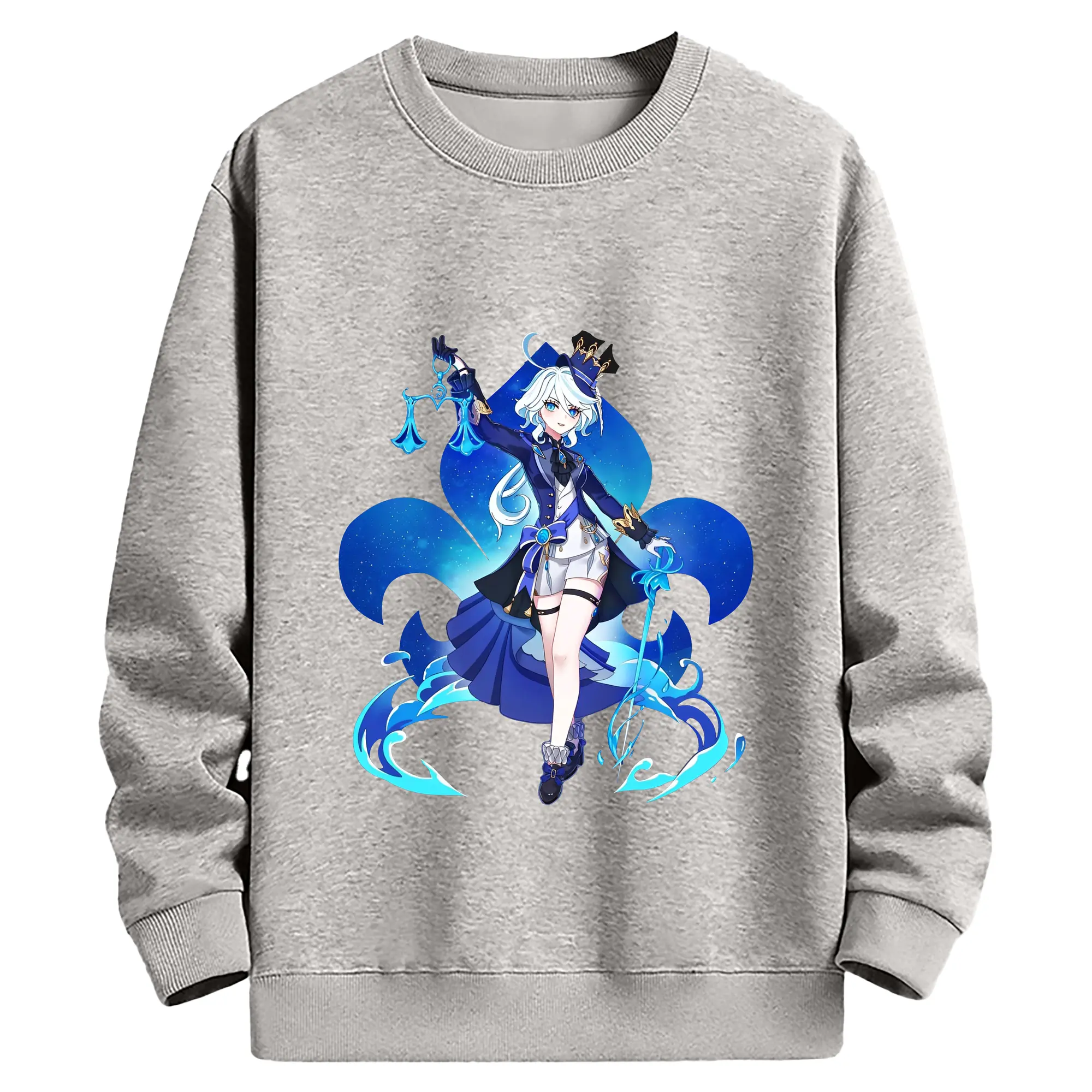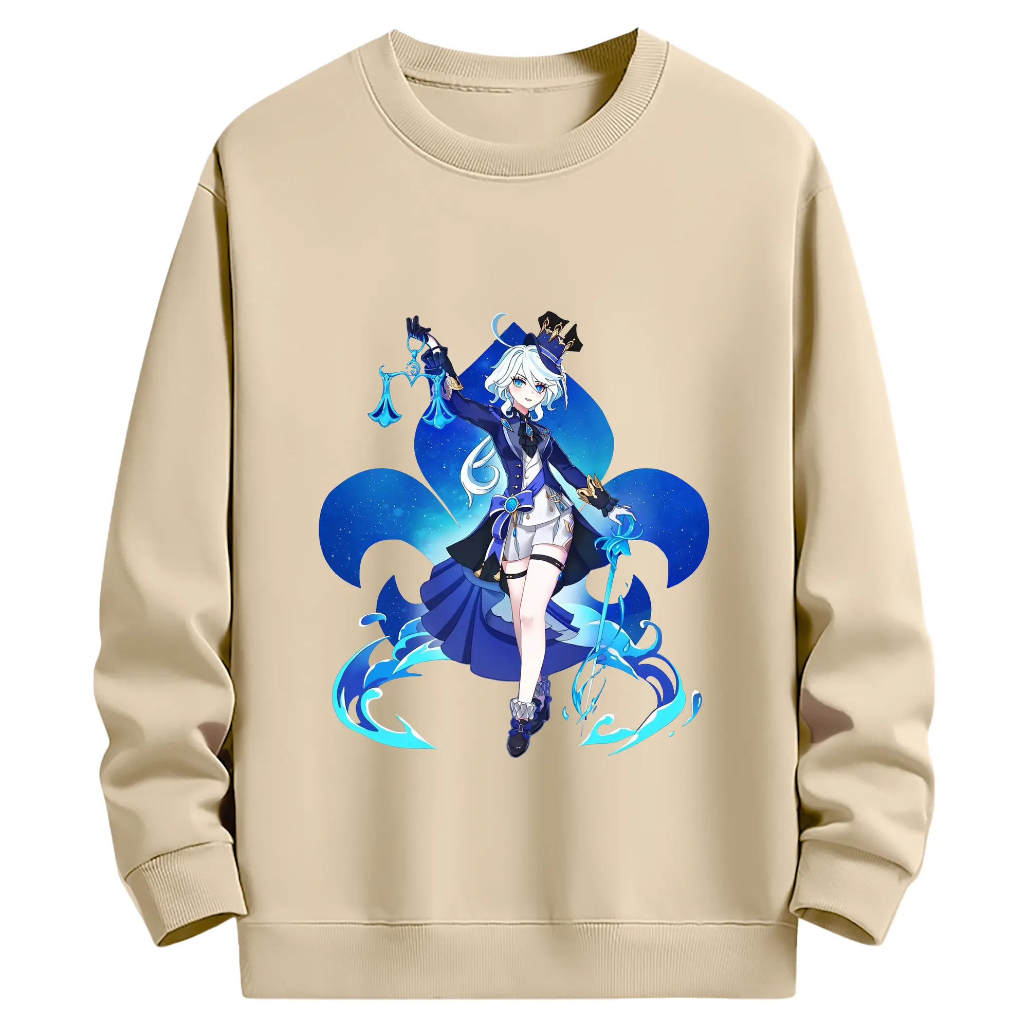 二次元 Furina 限定デザイン キャラクター - 綿100% 半袖Tシャツ ・ フロントプリント ・ 快適 通気性 ・ 日常使い 散歩 スポーツ用