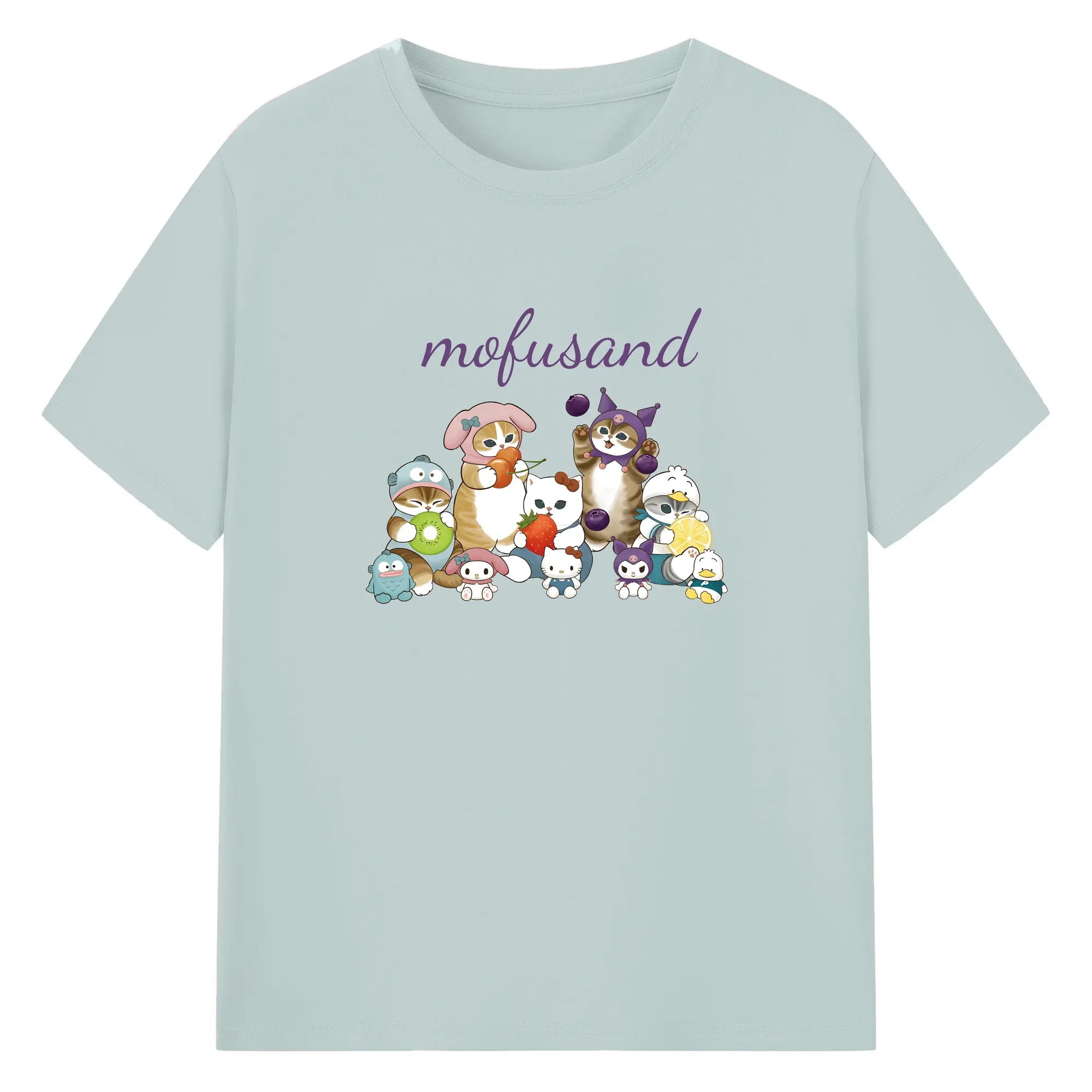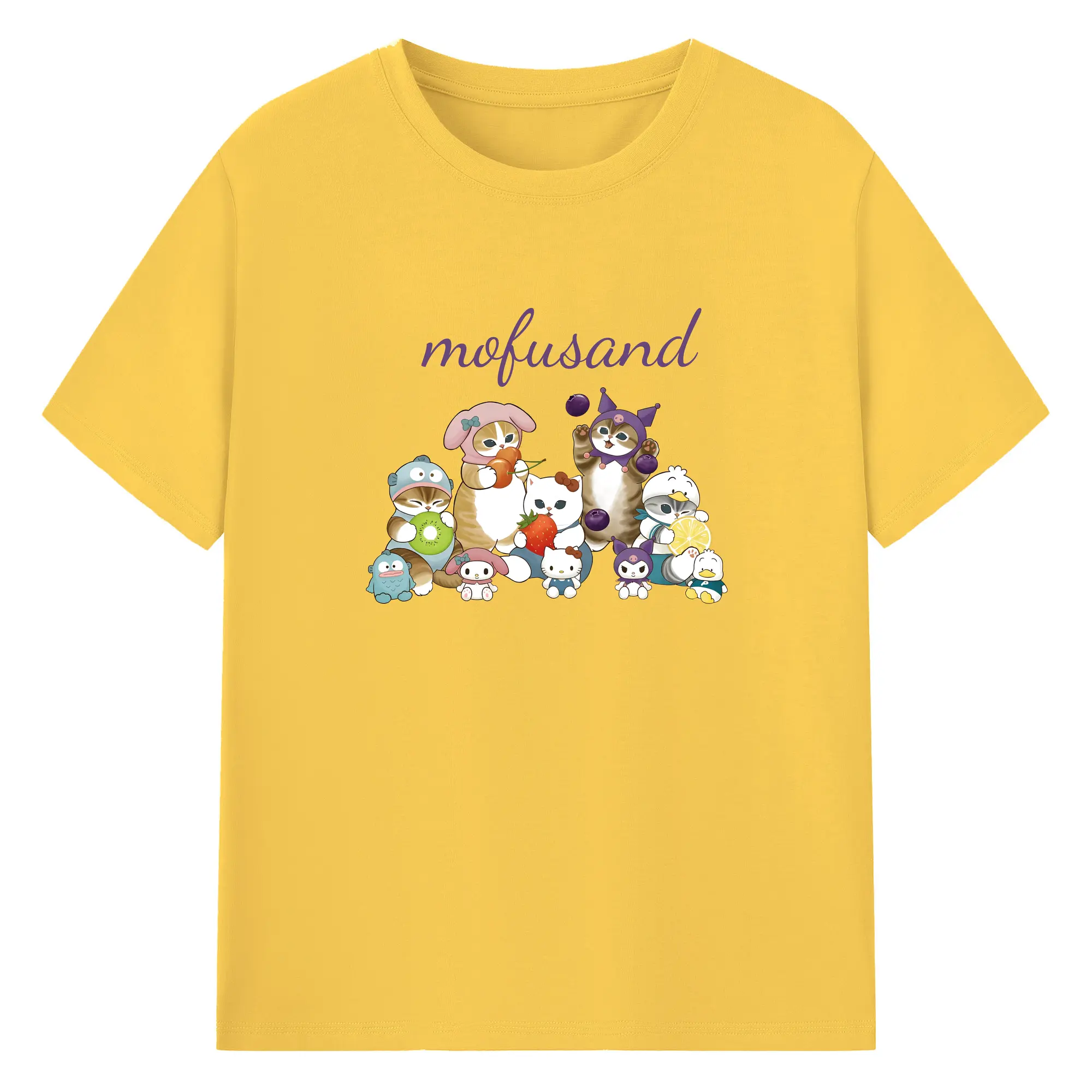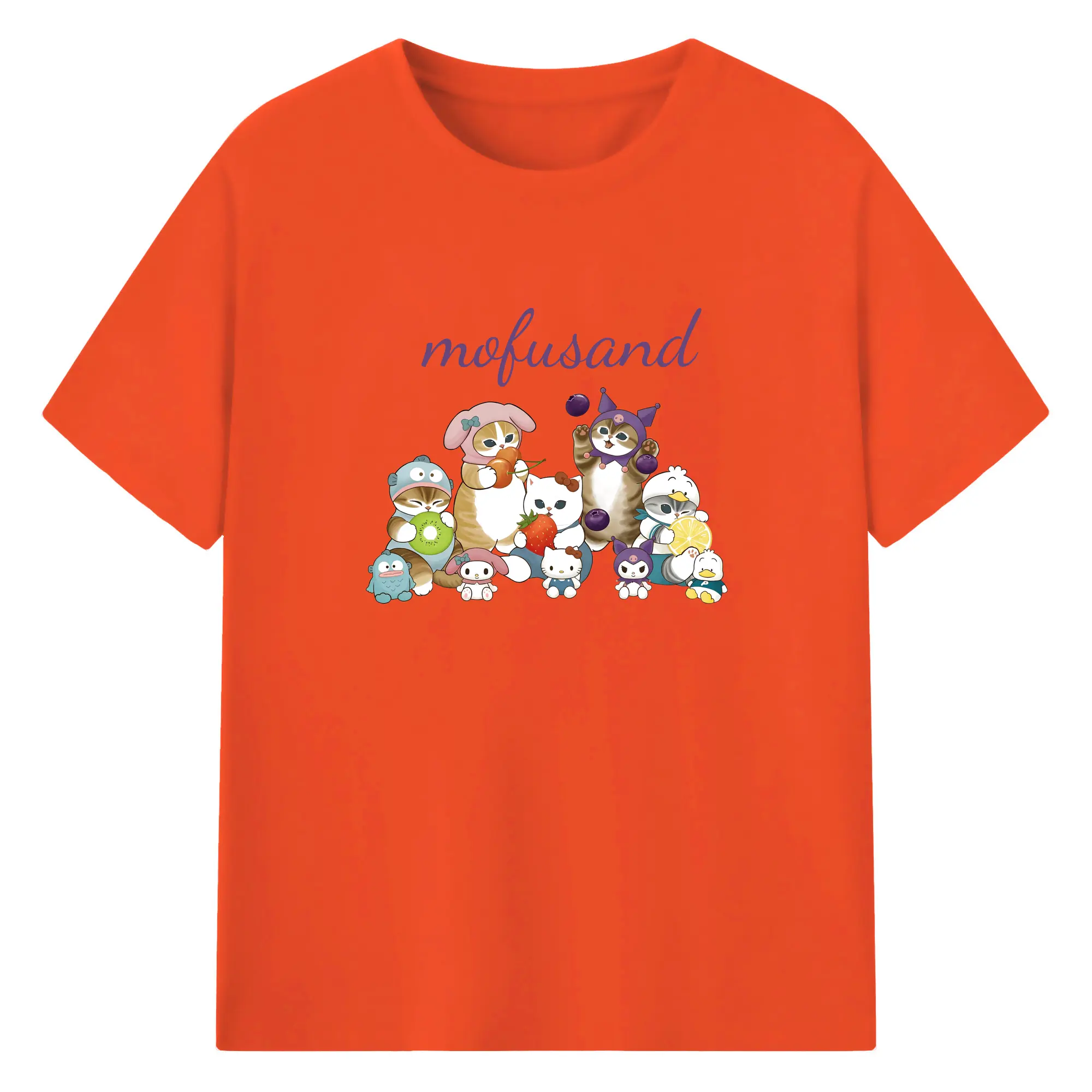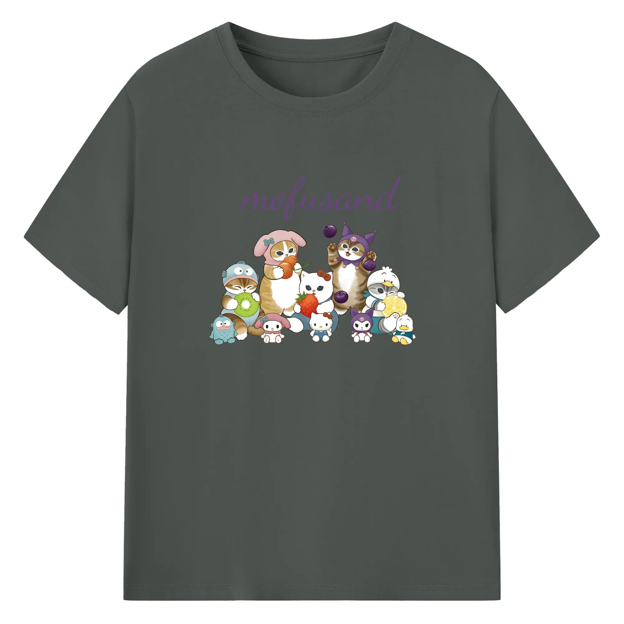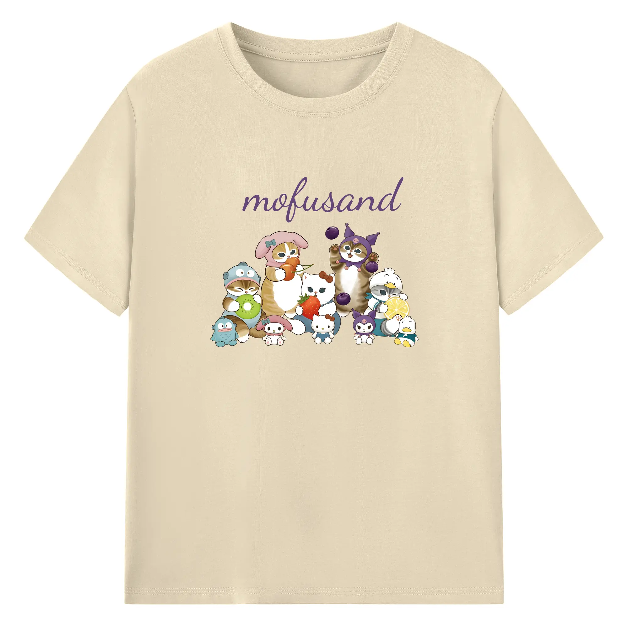 人気のmofusand&サンリオ - 綿100% ヴィンテージ風 半袖Tシャツ ・ フロントプリント ・ 柔らか肌触り ・ 通気性 快適 ・ スポーツ カジュアル 外出用