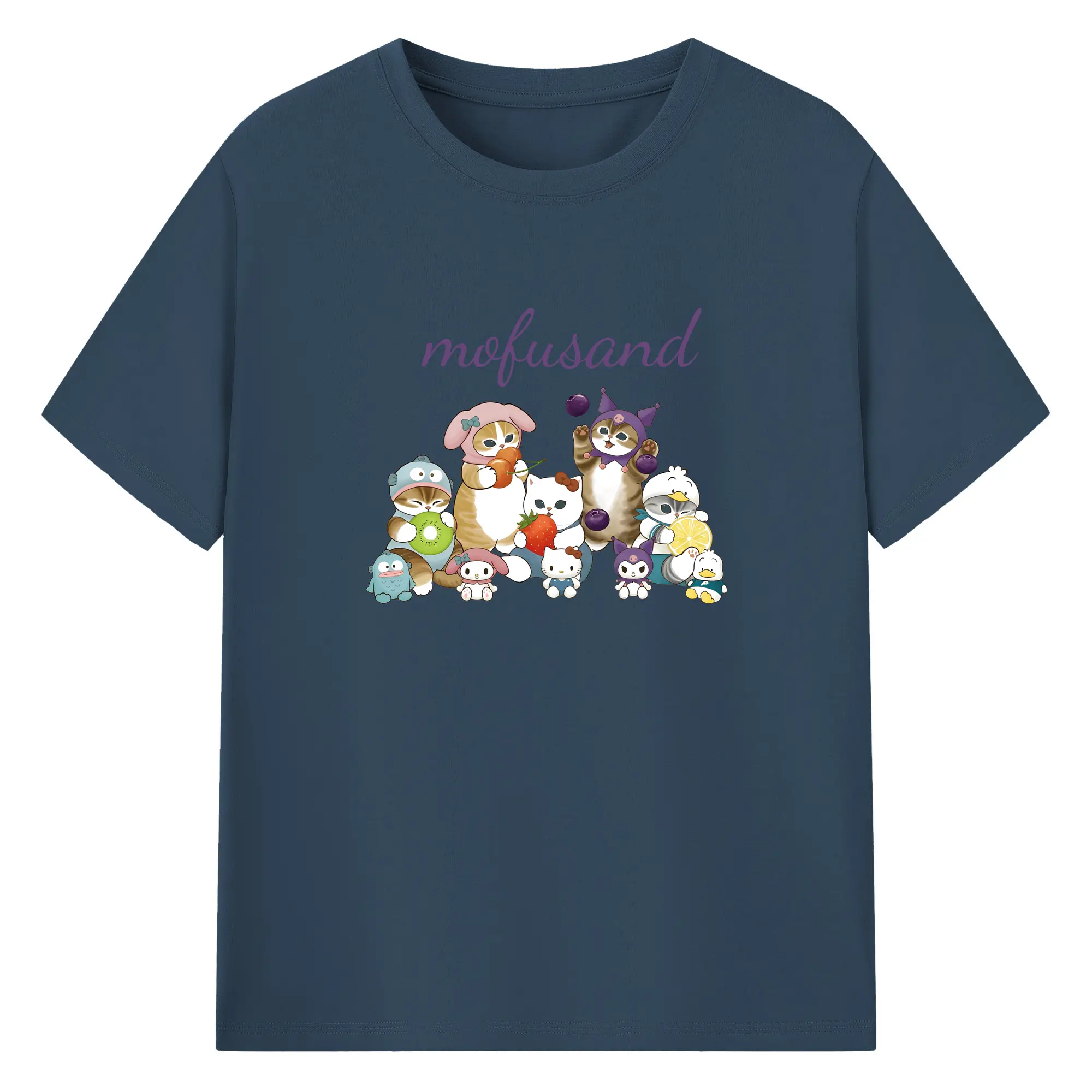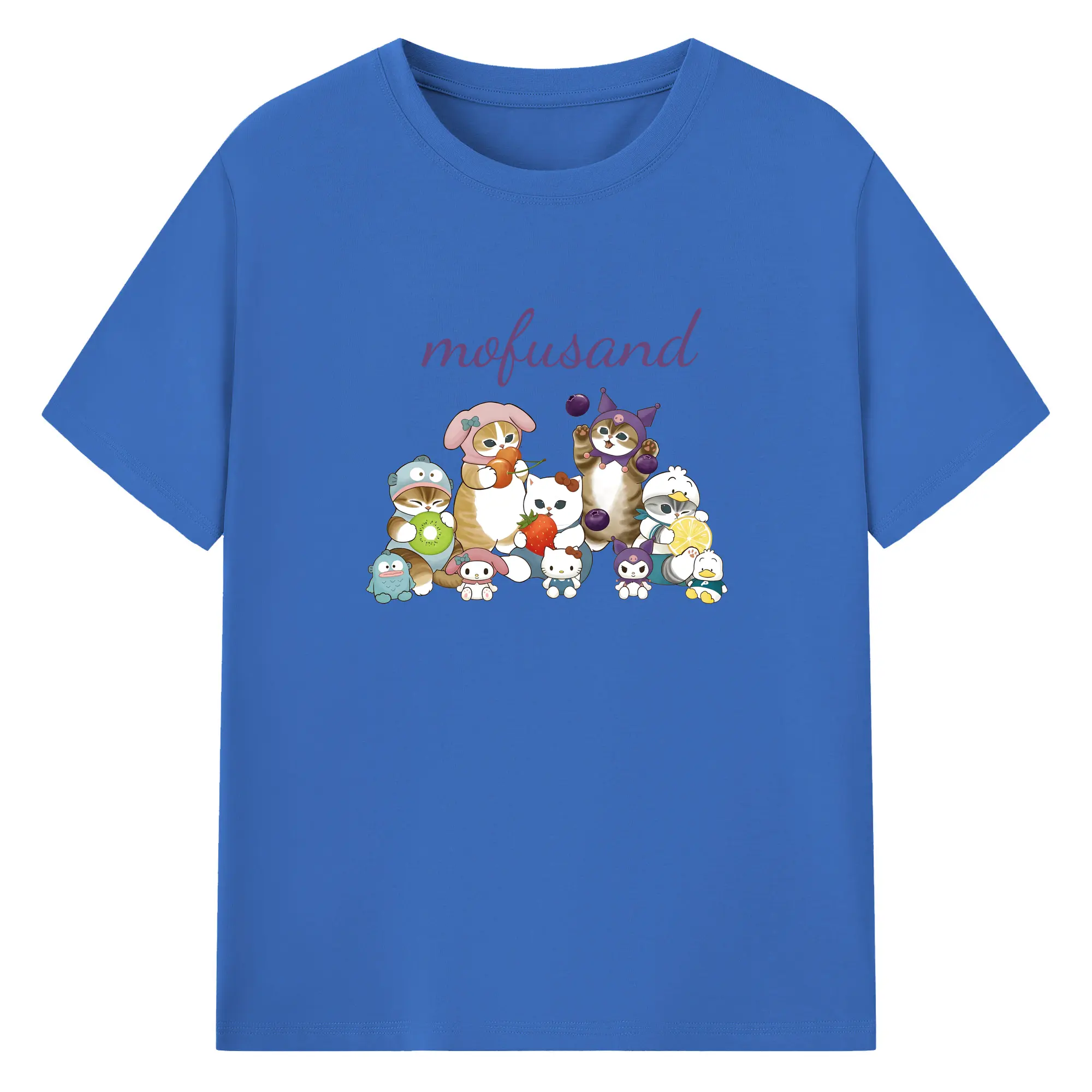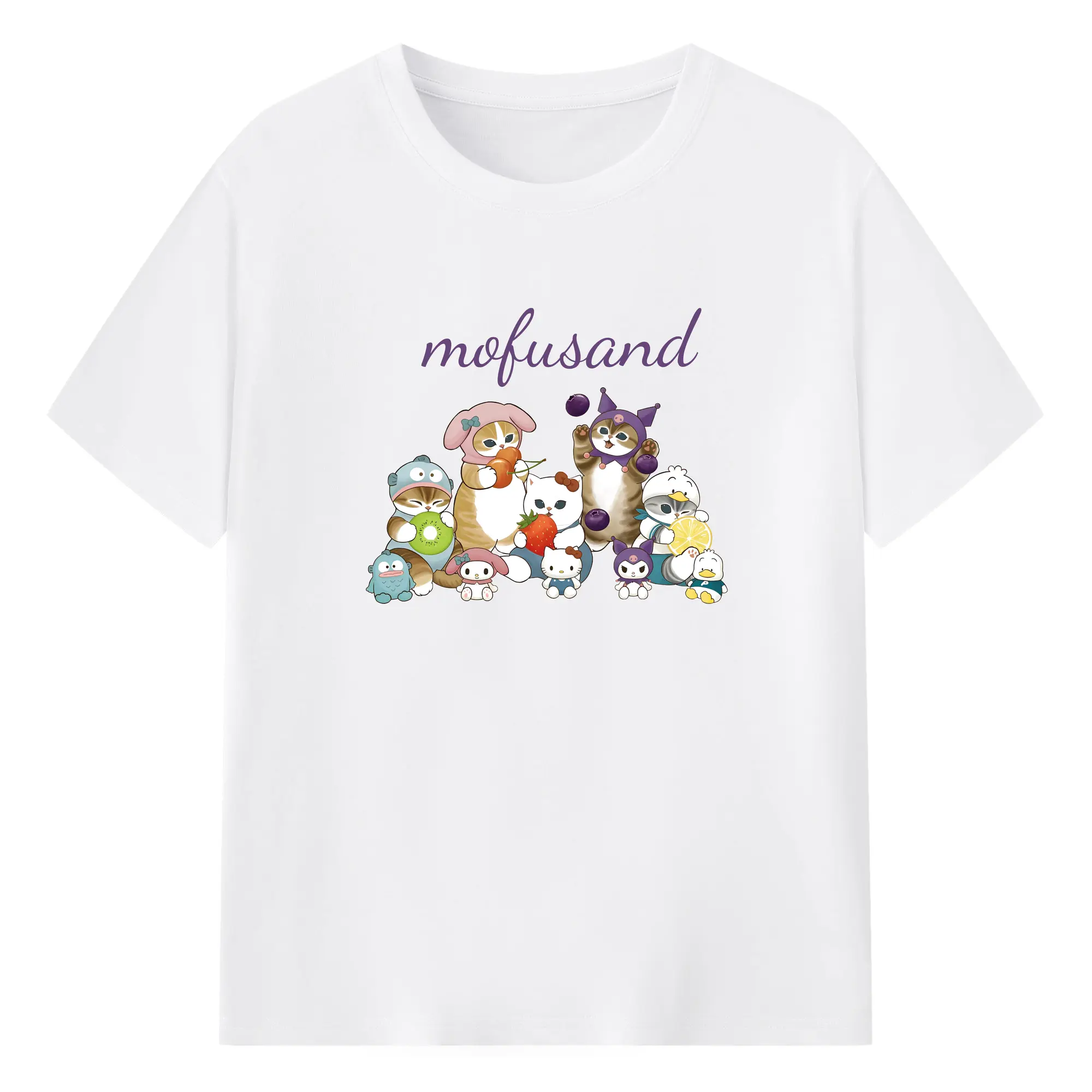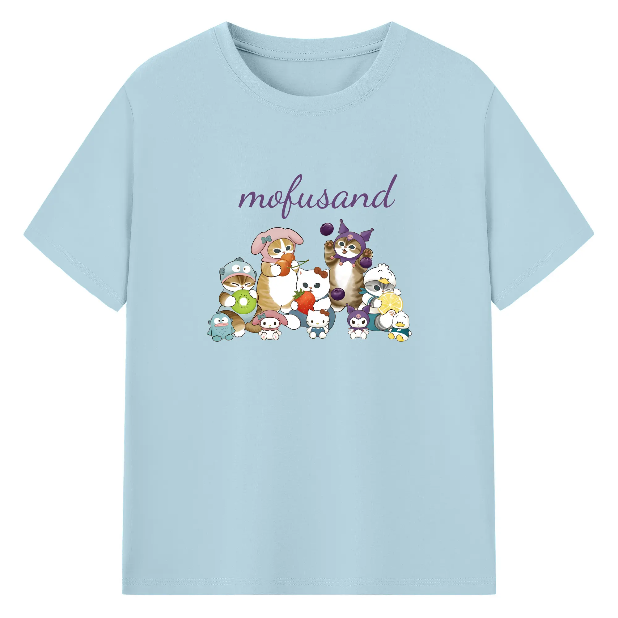 人気のmofusand&サンリオ - 綿100% ヴィンテージ風 半袖Tシャツ ・ フロントプリント ・ 柔らか肌触り ・ 通気性 快適 ・ スポーツ カジュアル 外出用