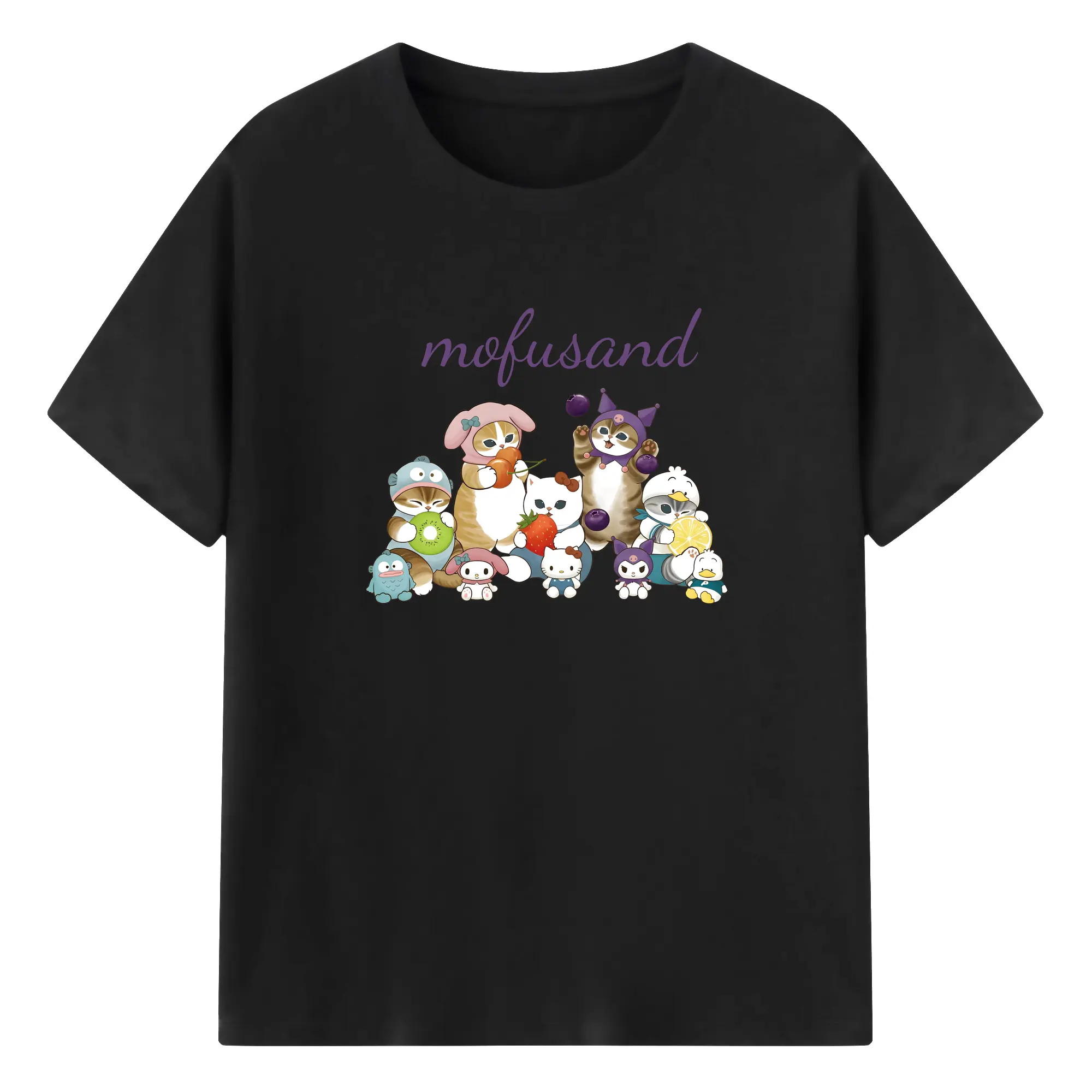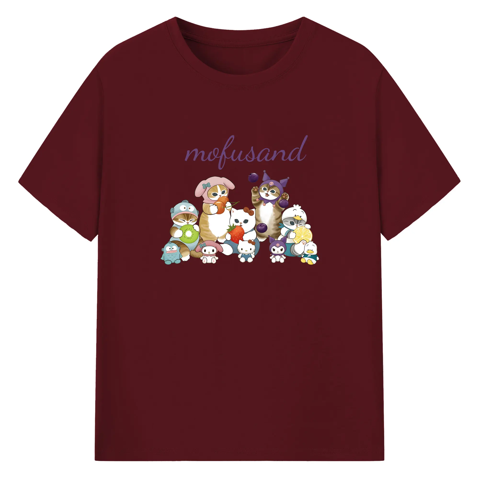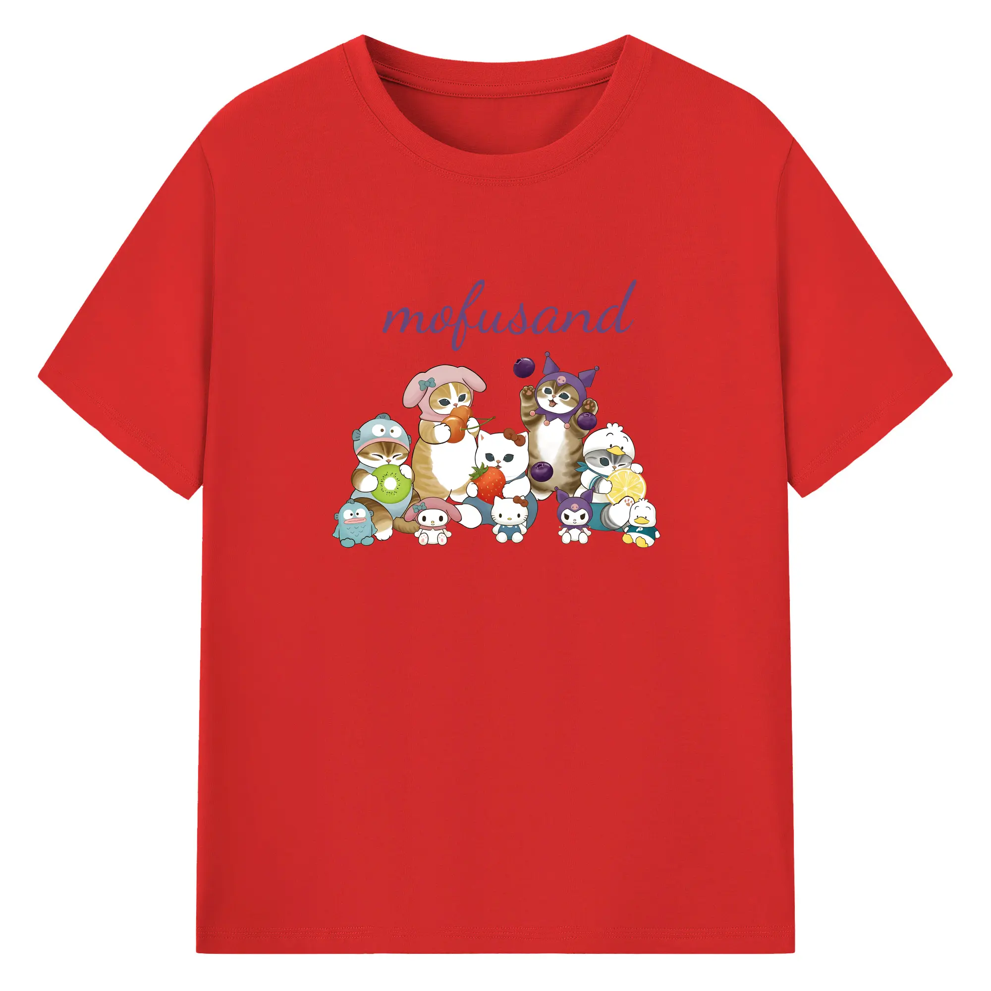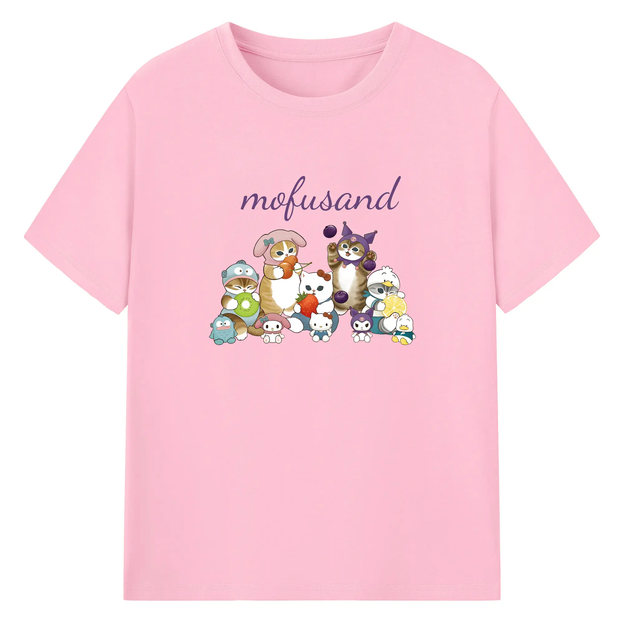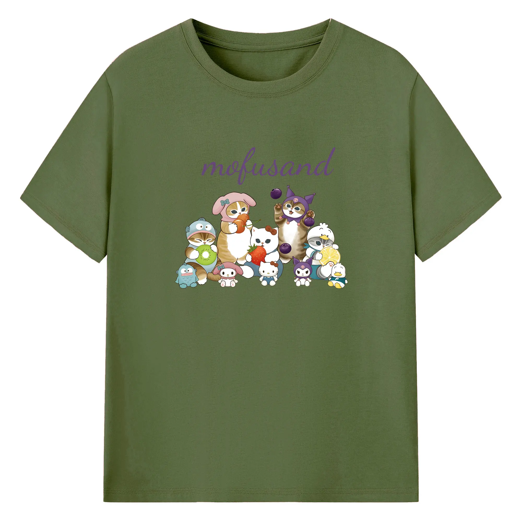 人気のmofusand&サンリオ - 綿100% ヴィンテージ風 半袖Tシャツ ・ フロントプリント ・ 柔らか肌触り ・ 通気性 快適 ・ スポーツ カジュアル 外出用