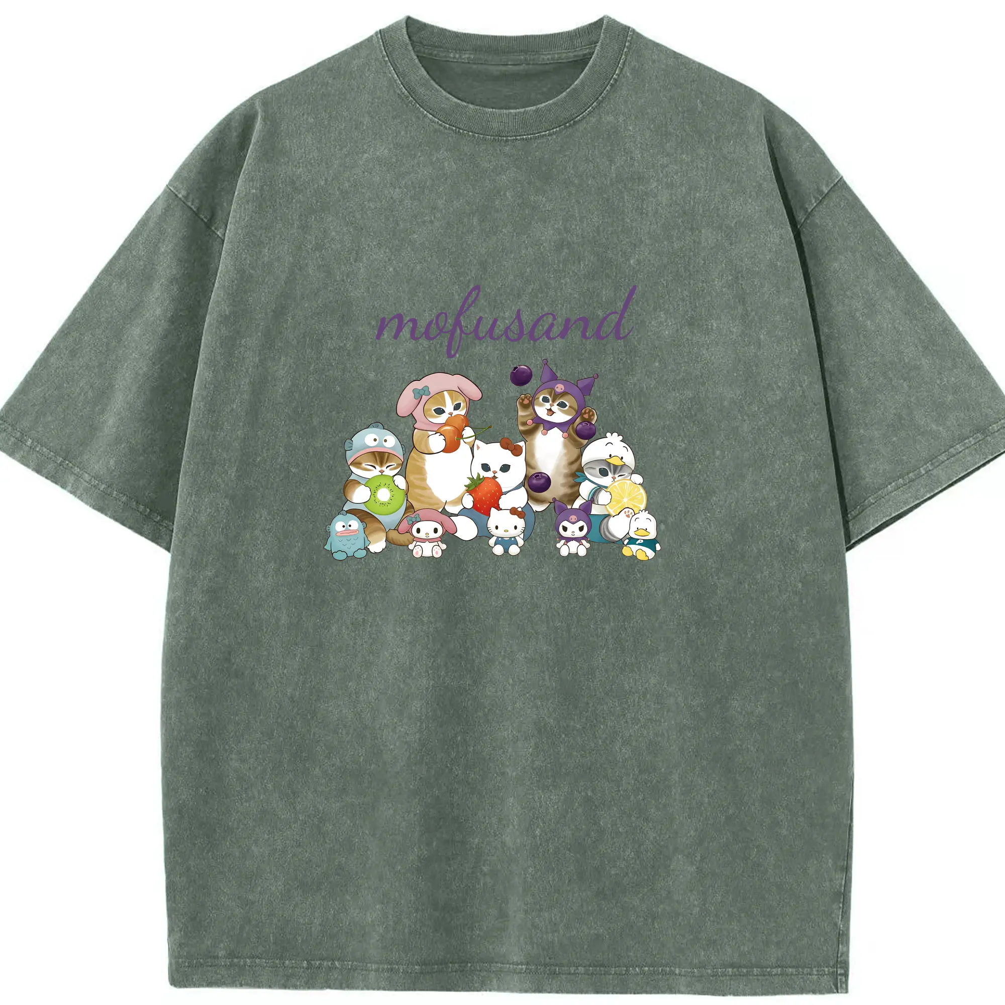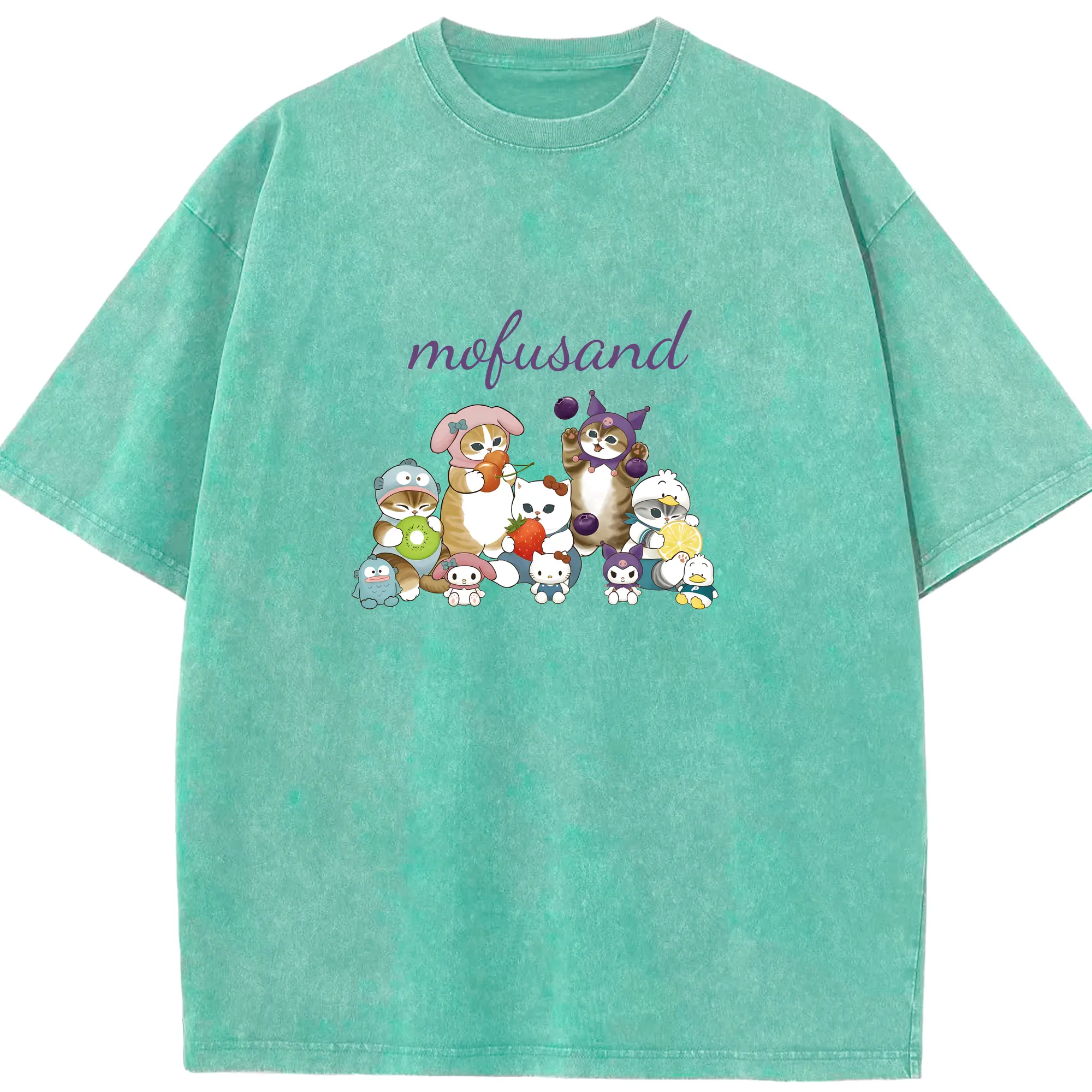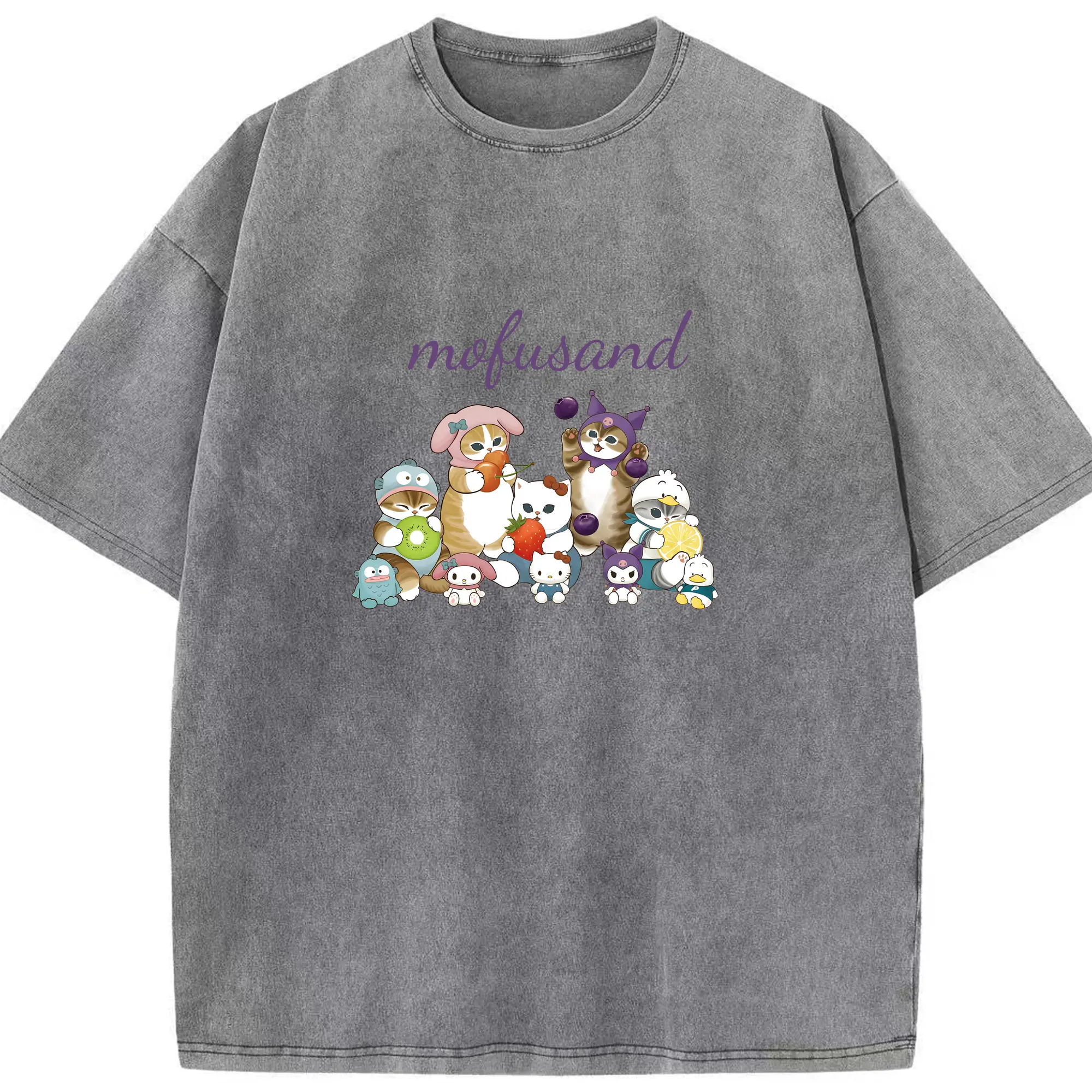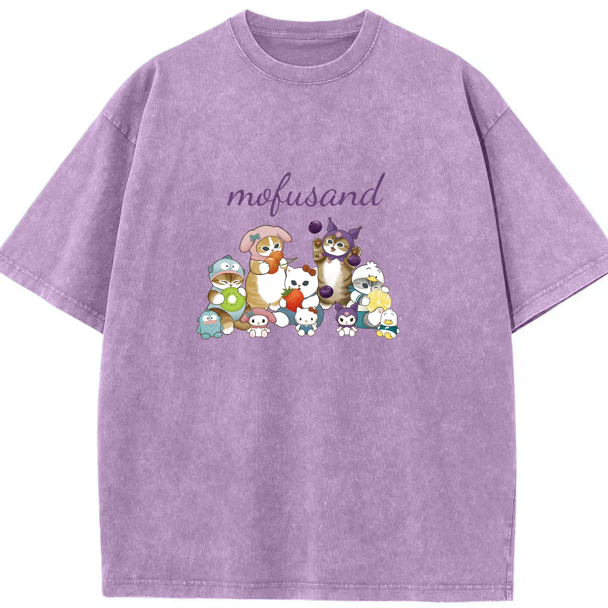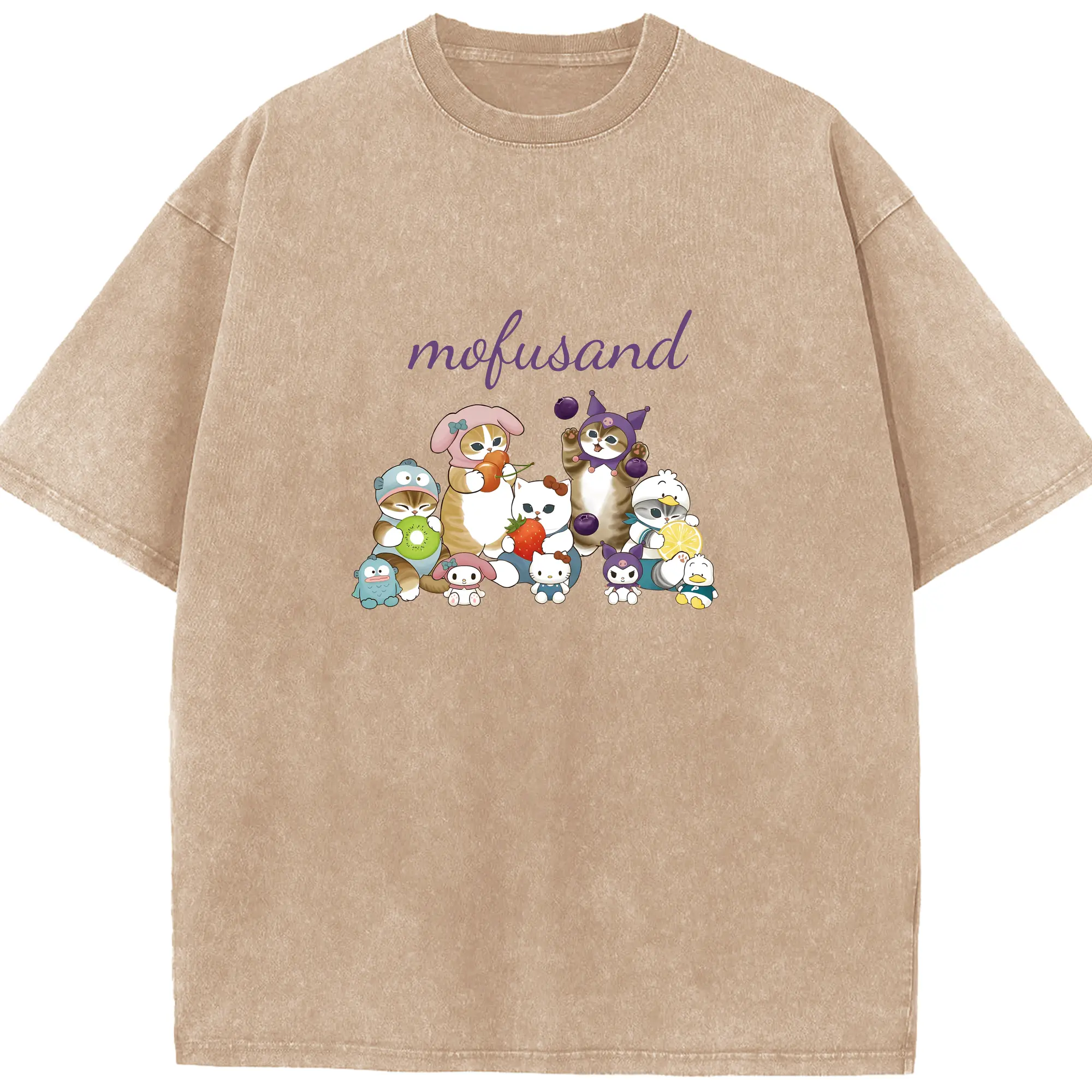 人気のmofusand&サンリオ - 綿100% 半袖Tシャツ ・ フロントプリント ・ 快適 通気性 ・ 日常使い 散歩 スポーツ用