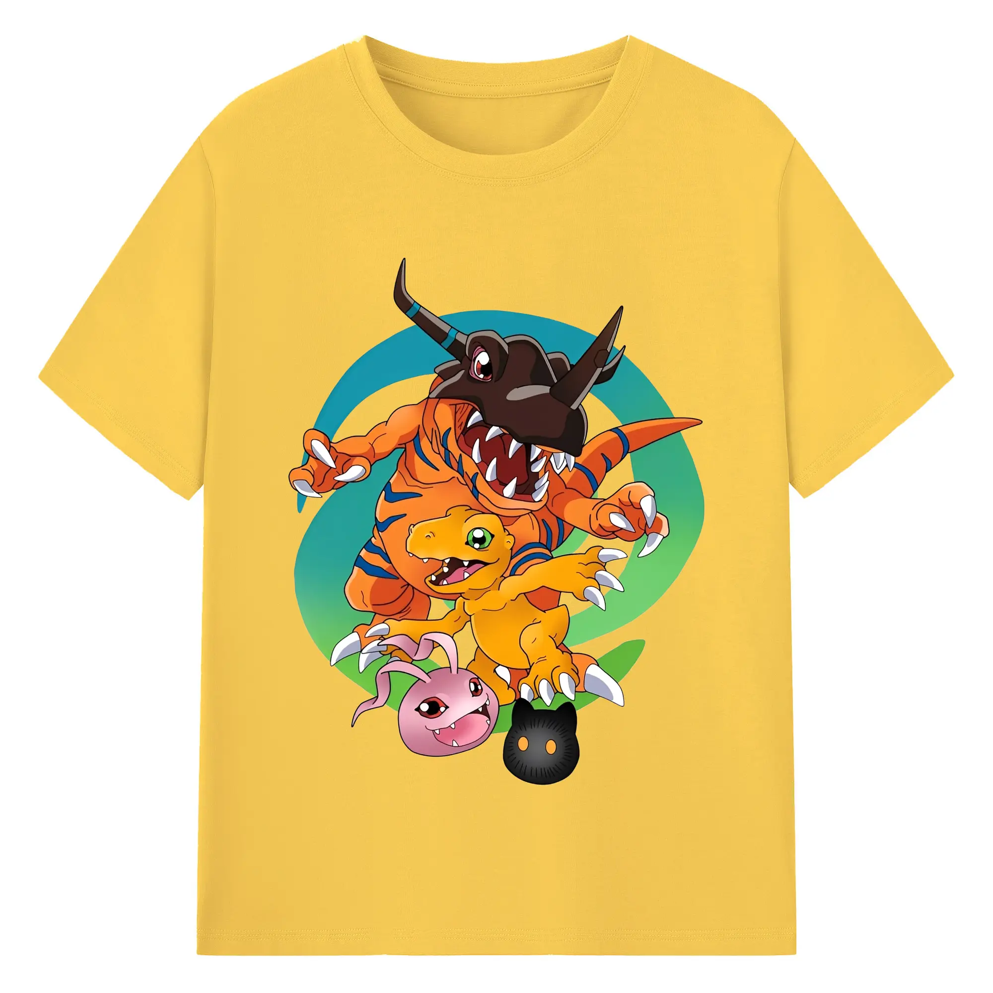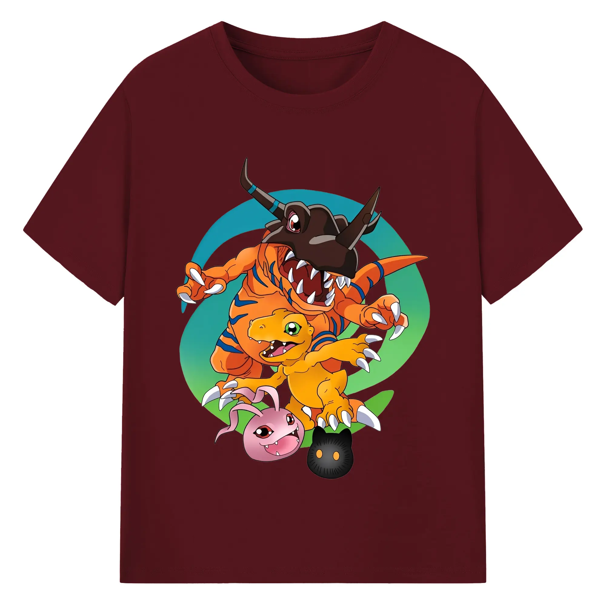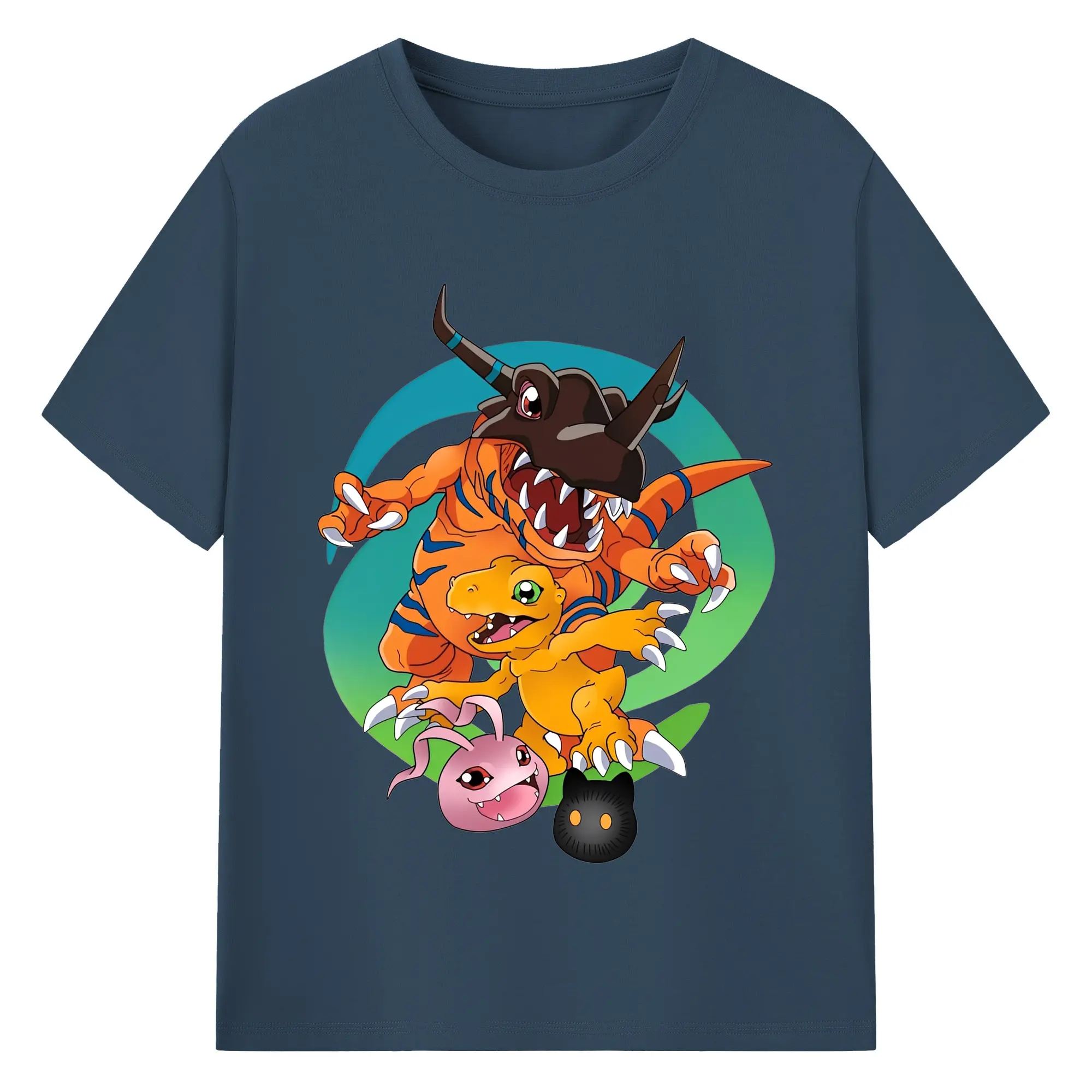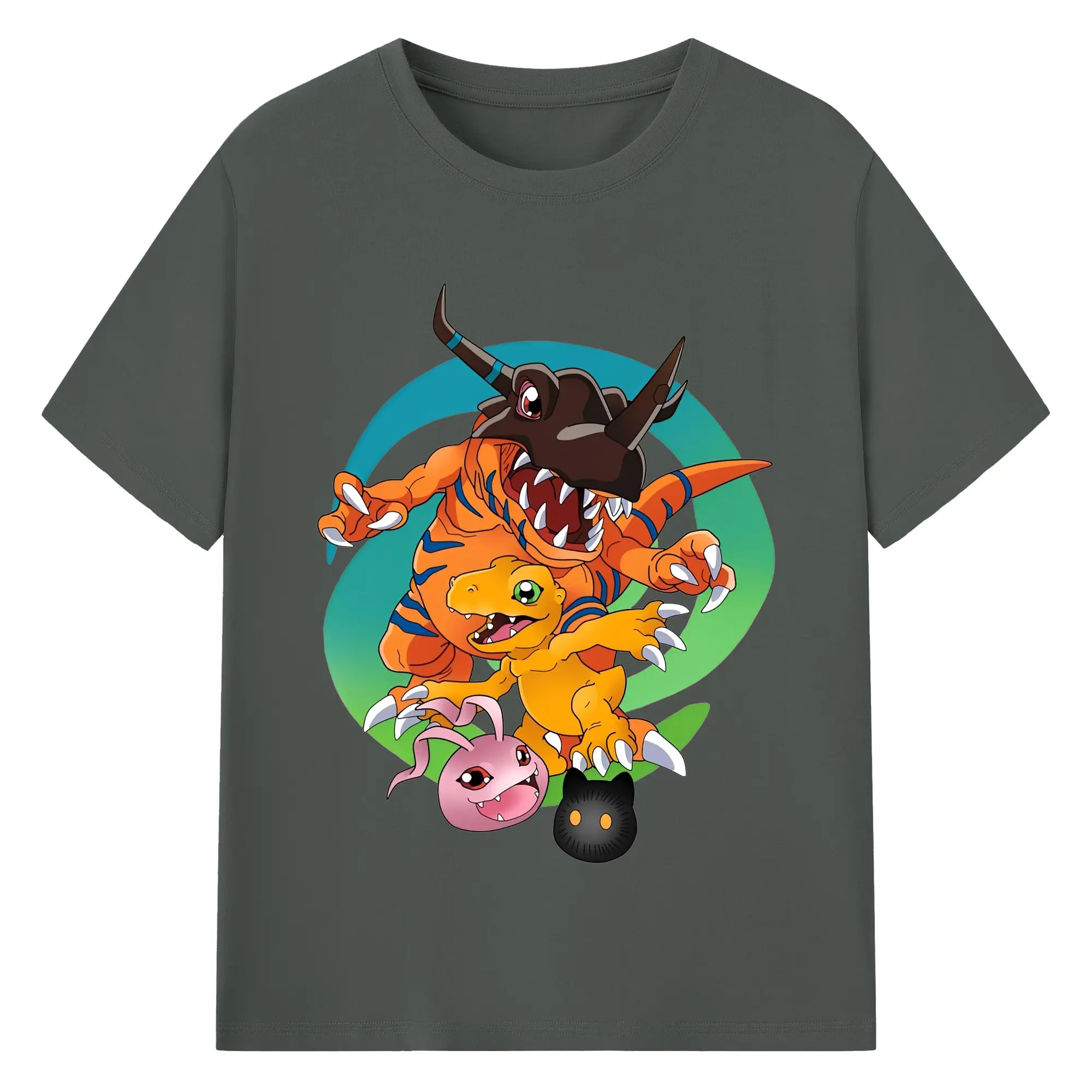 人気アグモングレイモンコロモン - 綿100% ヴィンテージ風 半袖Tシャツ ・ フロントプリント ・ 柔らか肌触り ・ 通気性 快適 ・ スポーツ カジュアル 外出用